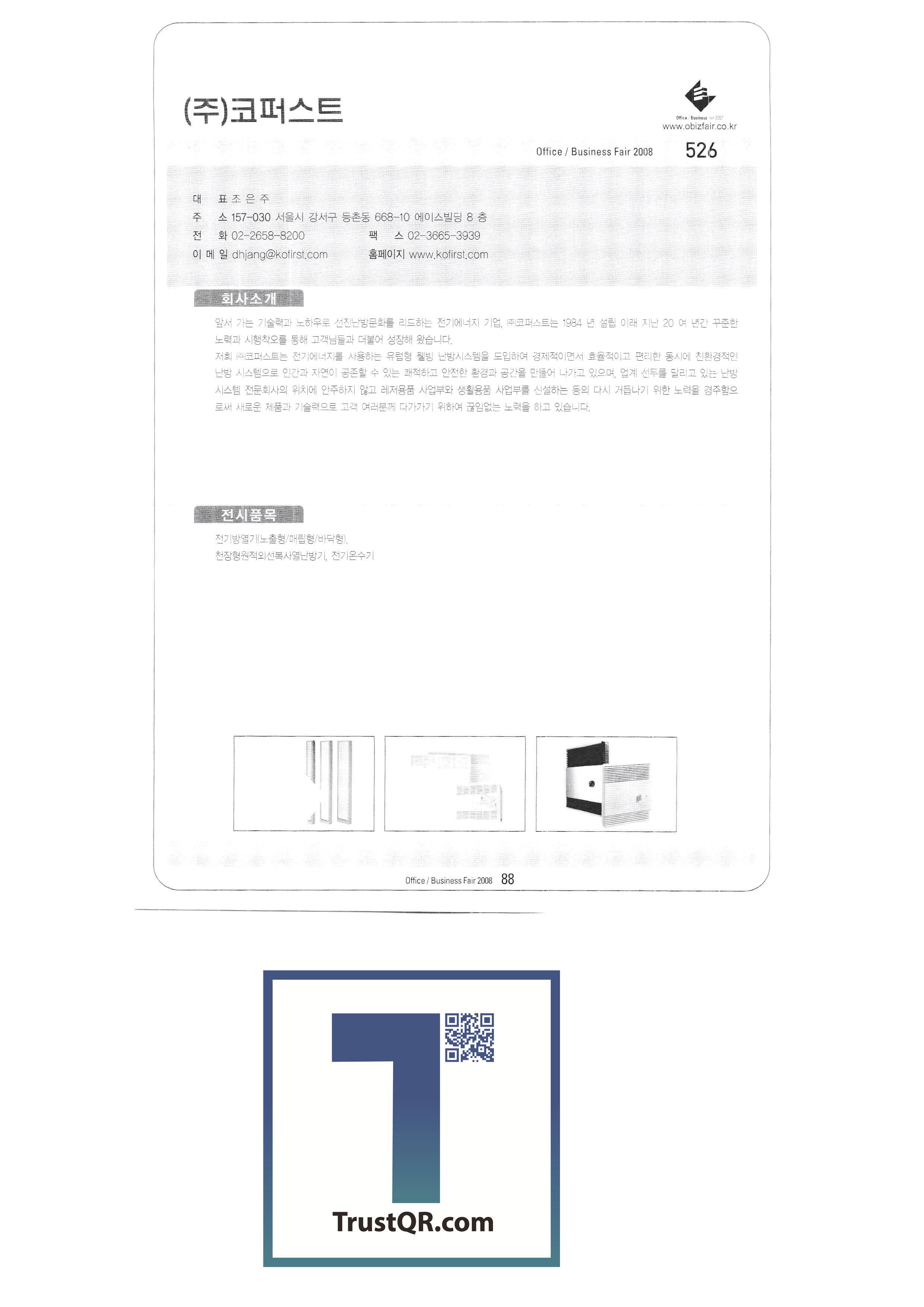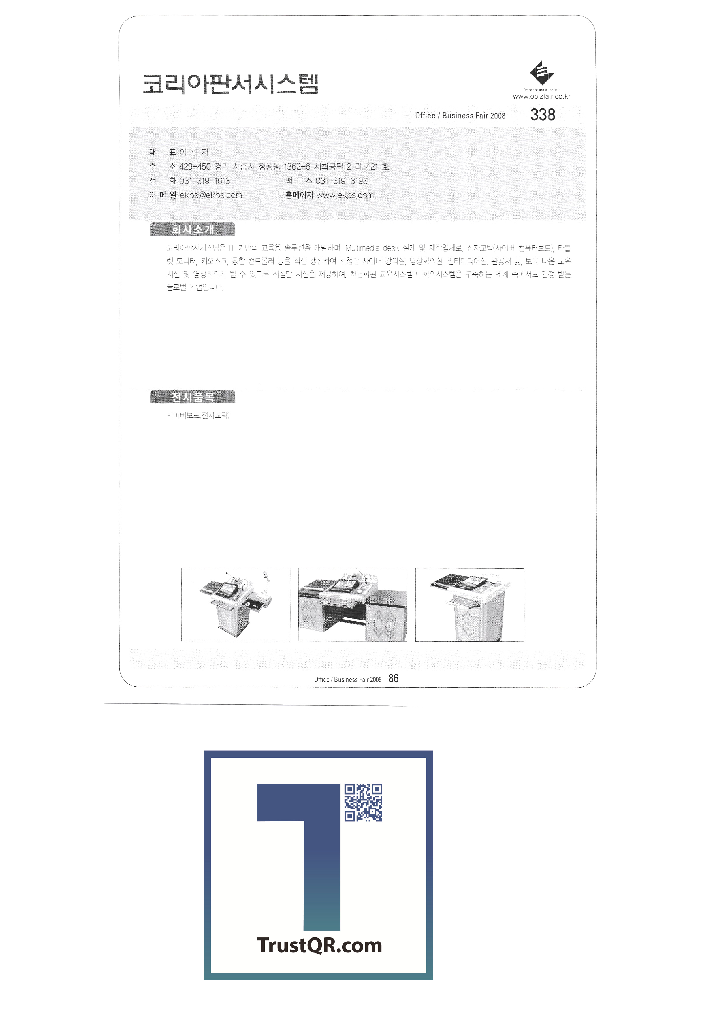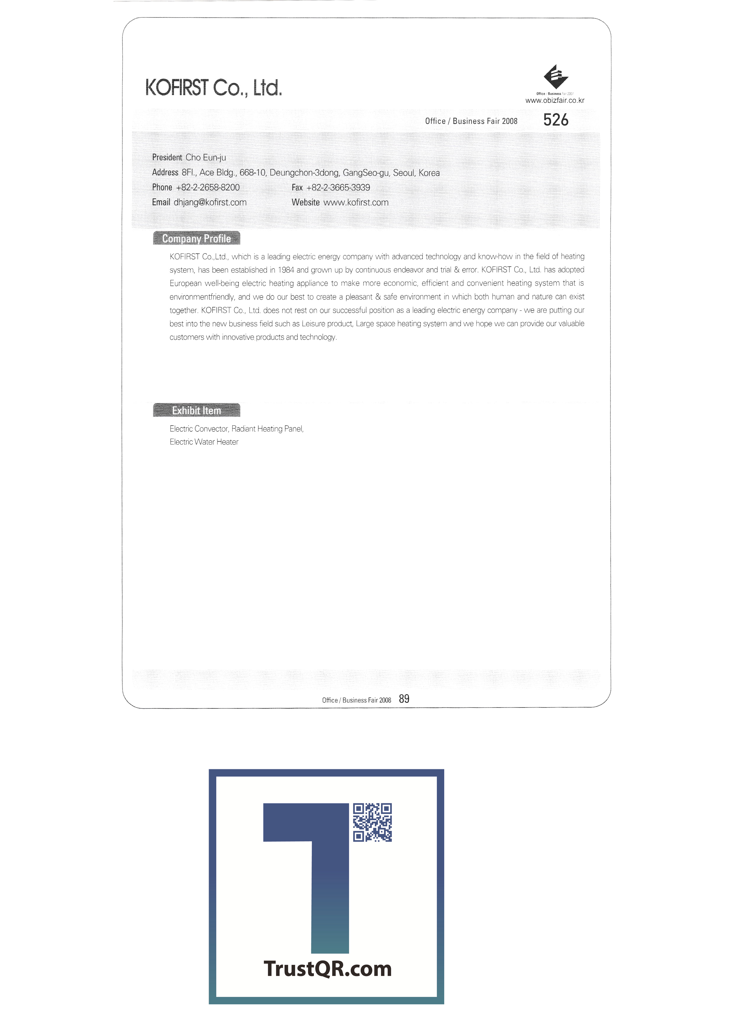 | สำนักงานครั้งที่ 3 / Business Fair 2008-3 Ktron (เอ็กซ์โป) ระบบการเขียนของเกาหลี บจก. คอปเปอร์สต์ บจก. คลีนแอร์เทค ระบบ Taechang เททบจก. ทรีเอ็มบจก. FedEx Kincos Korea Co. , Ltd. ปรินซ์อิเล็กทรอนิกส์ เกาหลี 3M ไอบีเอ็มเกาหลี Epson เกาหลี บจก. เกาหลีฟิล์ม สมาคมอุตสาหกรรม e-learning ของเกาหลี สำนักงานส่งเสริมการค้าอิเล็กทรอนิกส์ของเกาหลี Hewlett-Packard Korea Co. , Ltd. JS เทคโนโลยีสารสนเทศ |