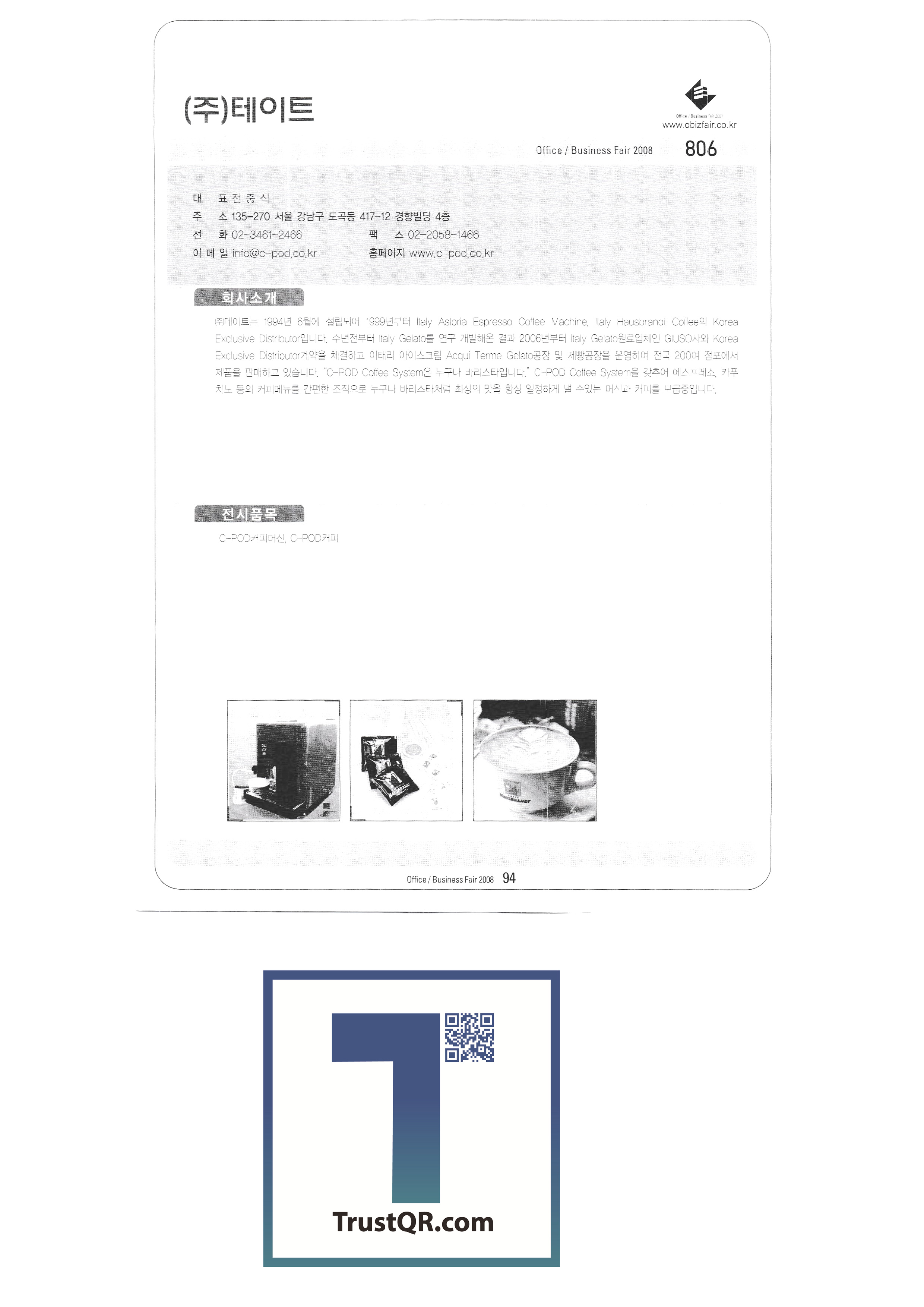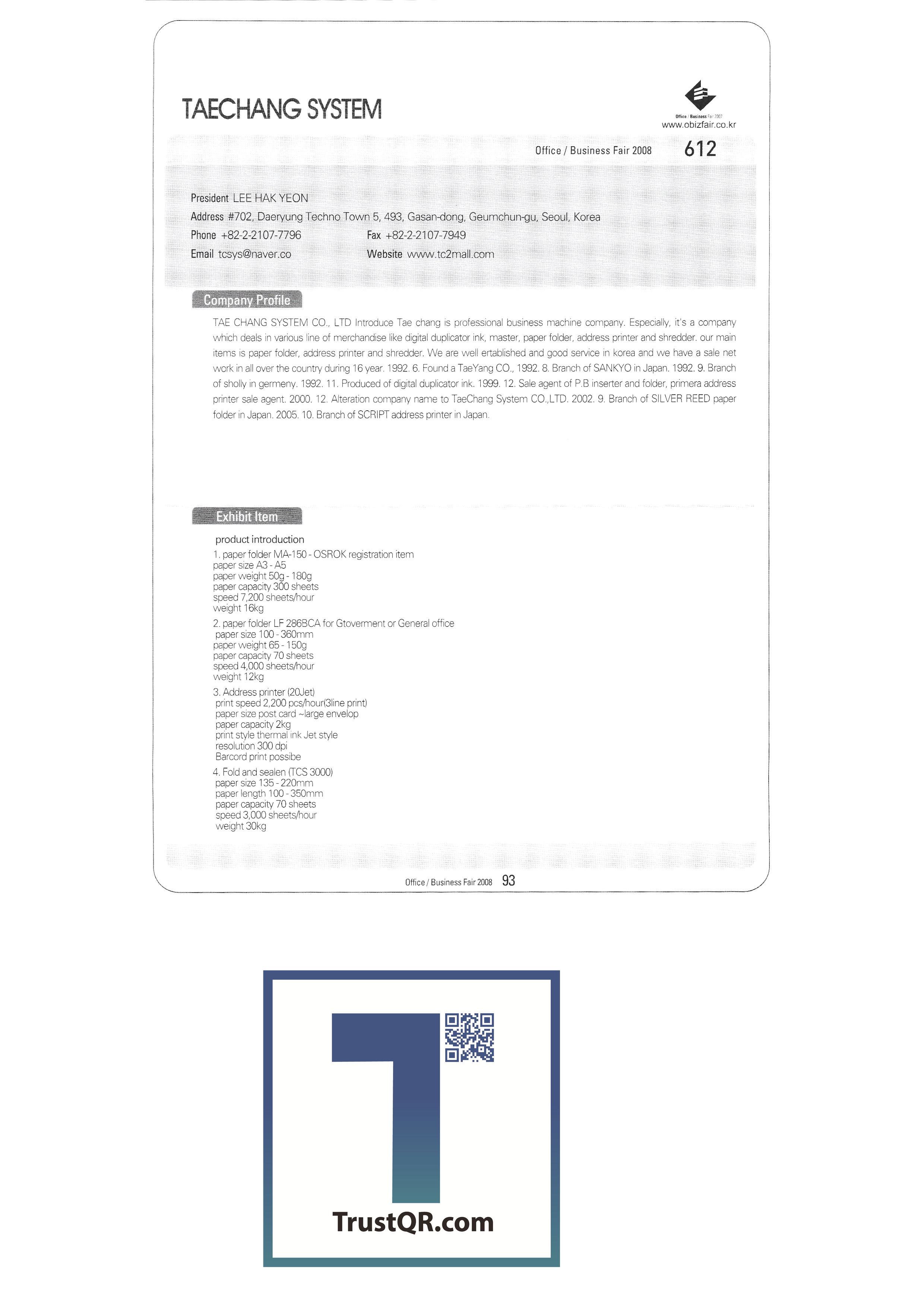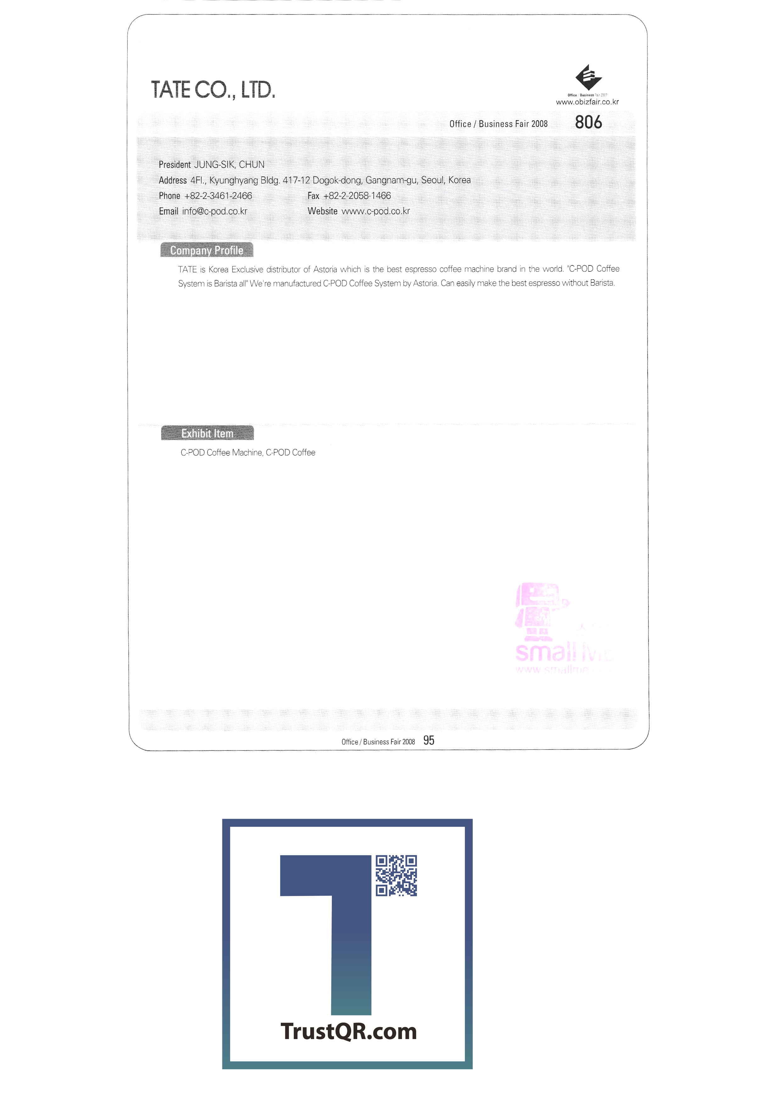 | สำนักงานครั้งที่ 3 / Business Fair 2008-3 Ktron (เอ็กซ์โป) ระบบการเขียนของเกาหลี บจก. คอปเปอร์สต์ บจก. คลีนแอร์เทค ระบบ Taechang เททบจก. ทรีเอ็มบจก. FedEx Kincos Korea Co. , Ltd. ปรินซ์อิเล็กทรอนิกส์ เกาหลี 3M ไอบีเอ็มเกาหลี Epson เกาหลี บจก. เกาหลีฟิล์ม สมาคมอุตสาหกรรม e-learning ของเกาหลี สำนักงานส่งเสริมการค้าอิเล็กทรอนิกส์ของเกาหลี Hewlett-Packard Korea Co. , Ltd. JS เทคโนโลยีสารสนเทศ |