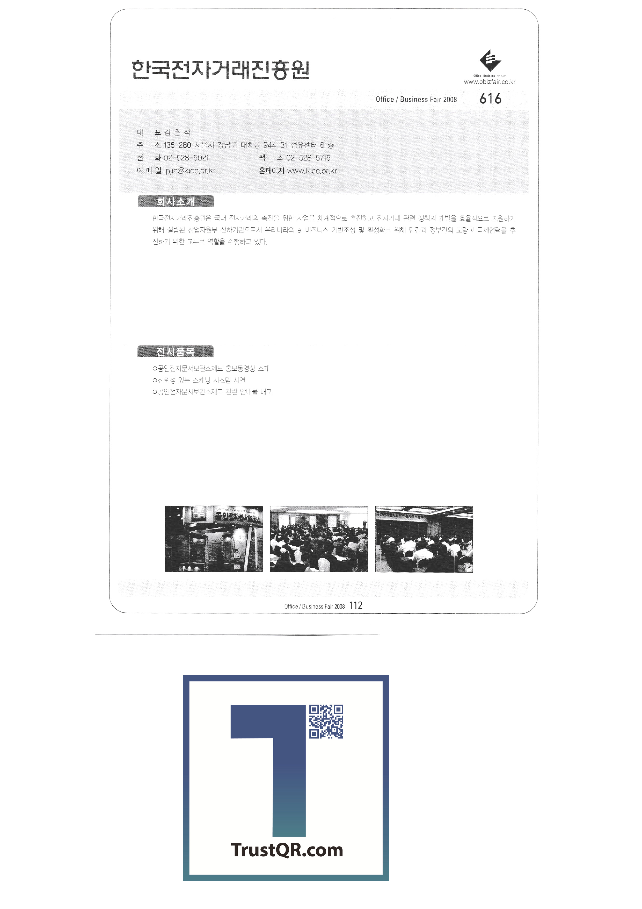 The 3rd Office/Business Fair 2008-3 Ktron (Expo) Korea Writing System Copperst Co., Ltd. Clean Air Tech Co., Ltd. Taechang System Tate Co., Ltd. TreeM Co., Ltd. FedEx Kincos Korea Co., Ltd. Prince Electronics Korea 3M Korea IBM Epson Korea Korea Film Co., Ltd. Korea e-learning industry association Korea Electronic Commerce Promotion Agency Hewlett-Packard Korea Co., Ltd. JS Information Technology |