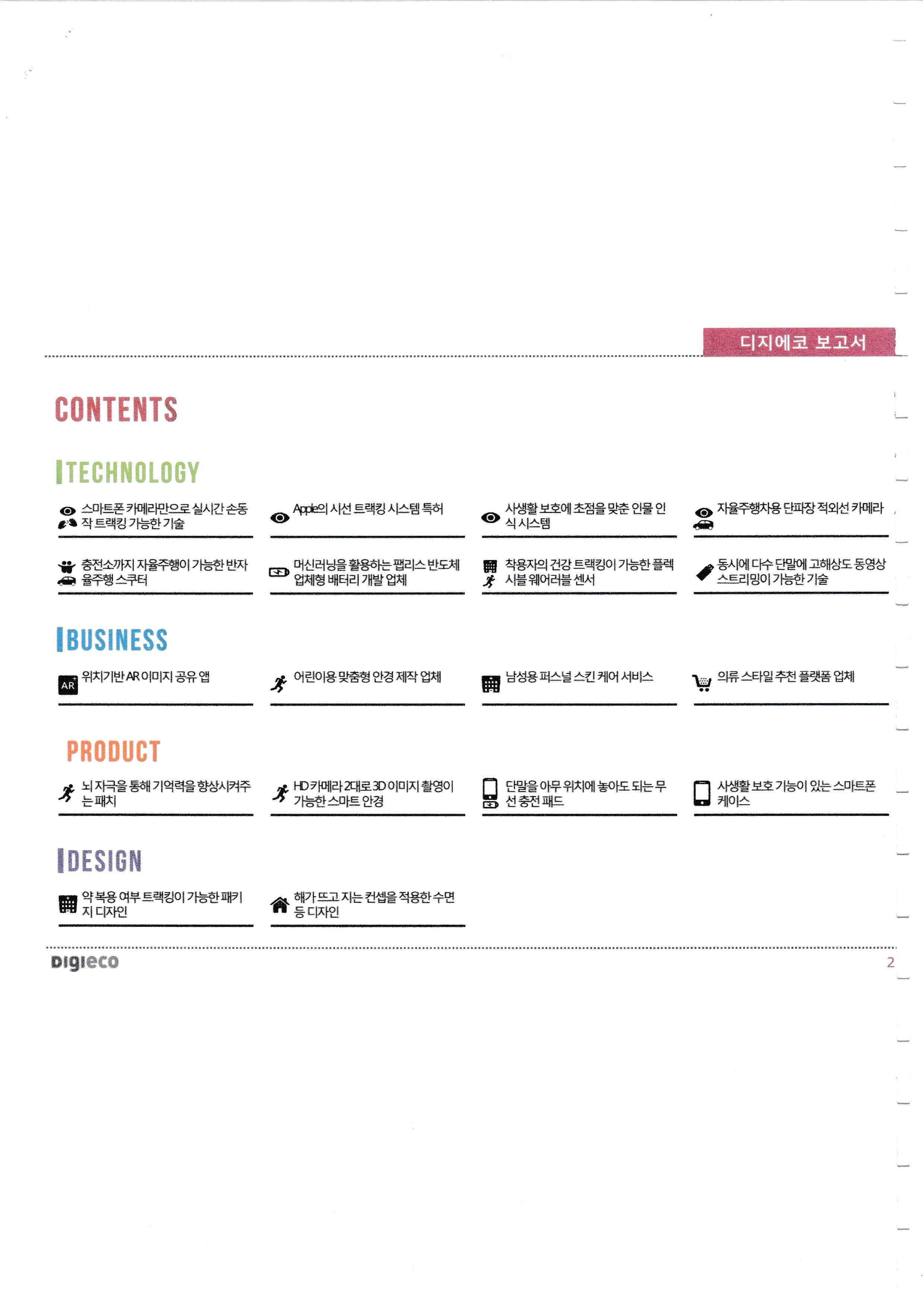 Technology that can track hand movements with only a smartphone camera, Apple gaze tracking system, Short wavelength infrared camera for autonomous vehicles, Production of customized eyeglasses for children-100% damn company in Korea, A patch that improves memory through brain stimulation, Smart glasses that can shoot 3D images with 2 HD cameras, Package that can track drug use, -Very Good, |