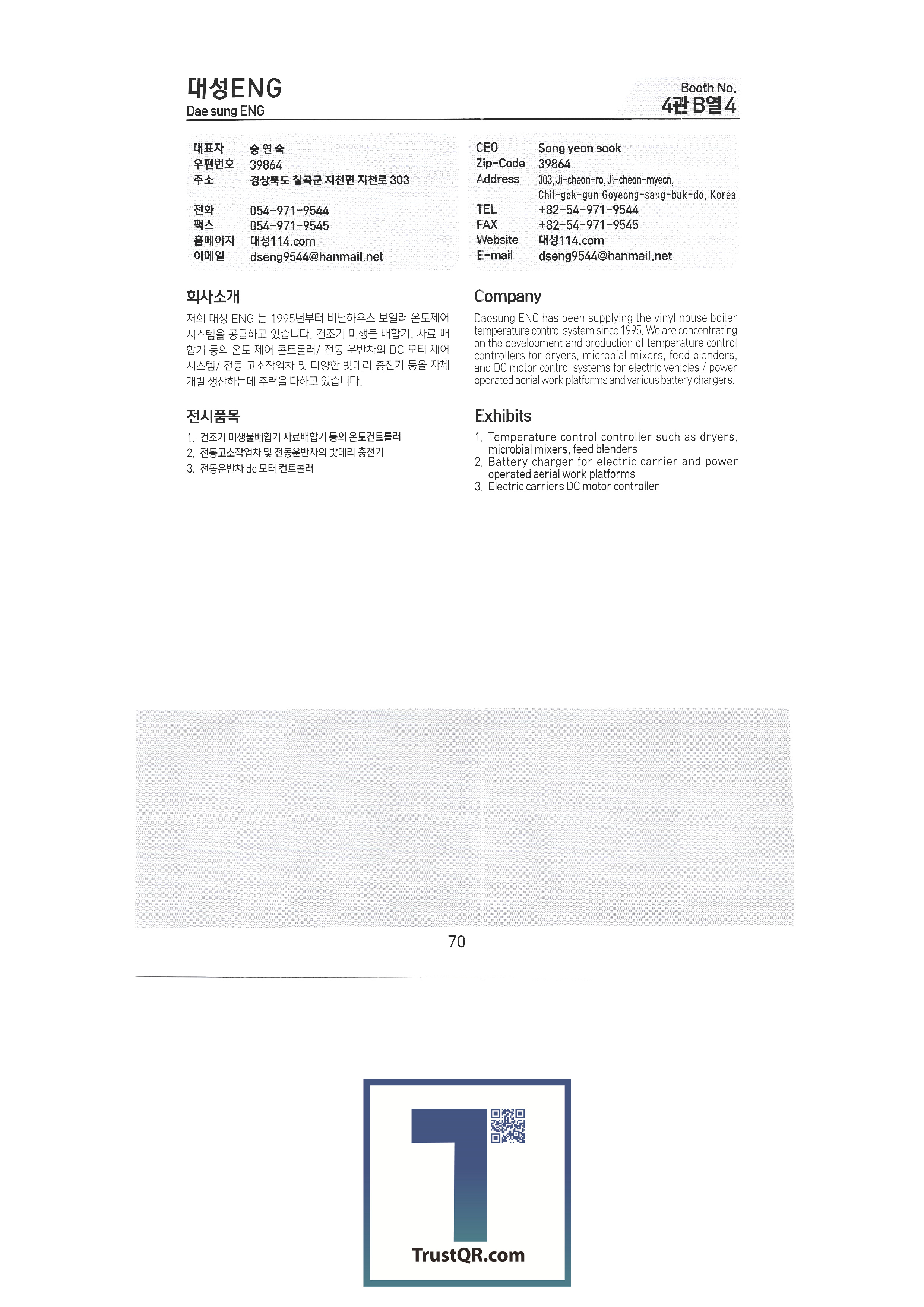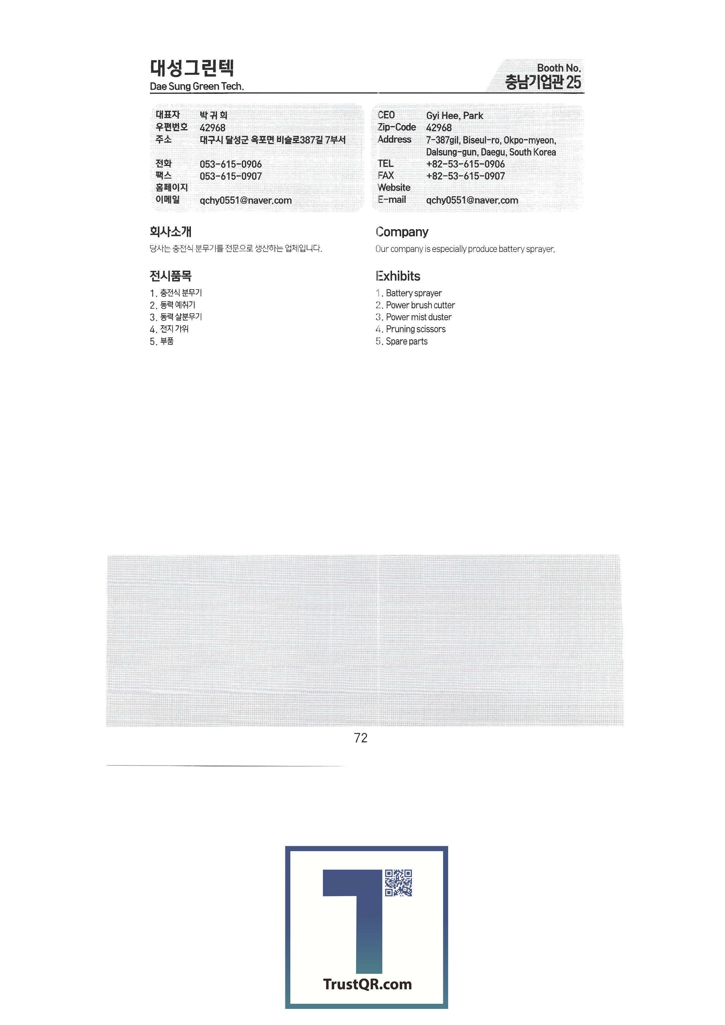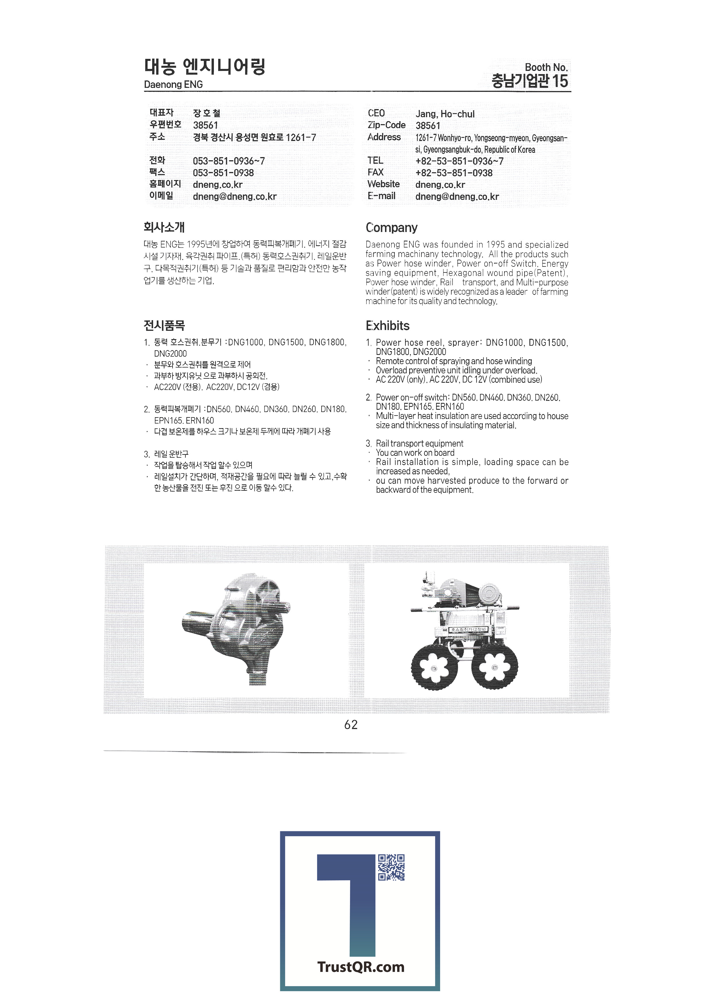 | 나라바이오 주식회사 나로엔텍 나이스위드 ㈜남경 남북농자재산업 농업회사법인 주식회사 네오 ㈜넥스트에너지코리아 농업회사법인 농부촌영농단(합) ㈜농산연구소 ㈜누보 ㈜뉴런모터스 ㈜다목에코텍 ㈜다이노 다인산업 다해하이텍 달마시안 제충국 대건산업 대경정공㈜ 대경코리아 대광파워텍 대교상사 (재)대구기계부품연구원 대구특수기공사(다스막) 대농 엔지니어링 대덕테크 대동공업 대동기업사 대동테크 주식회사 대륙기계 대륜산업㈜ ㈜대림에너지 대성 ENG 대성과수산업㈜ 대성그린텍 대성기계 ㈜대성마리프 (유)대성이엔지 대승 대신종합농기계 대양이앤브이 RC대우산업 ㈜대원전장 |