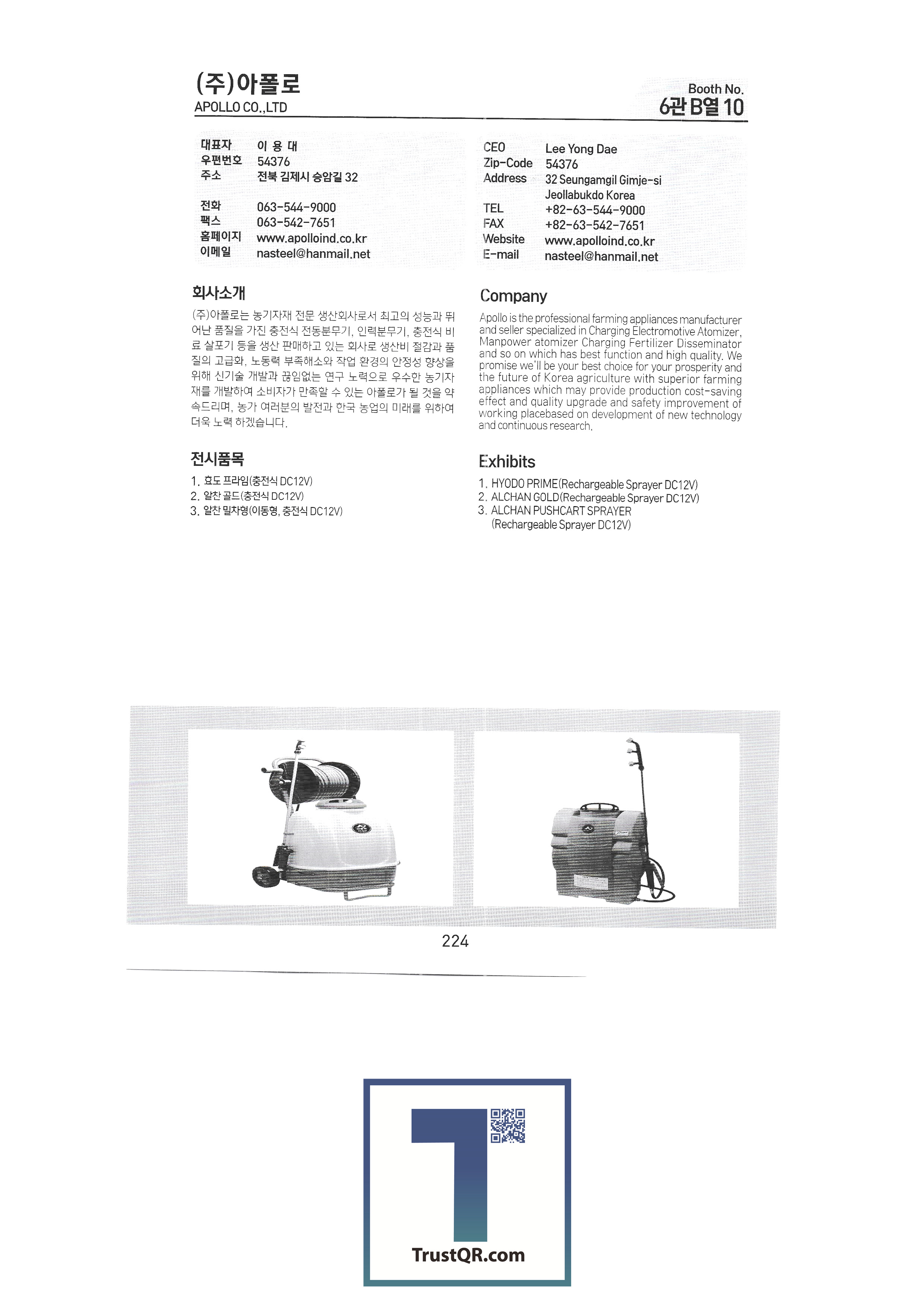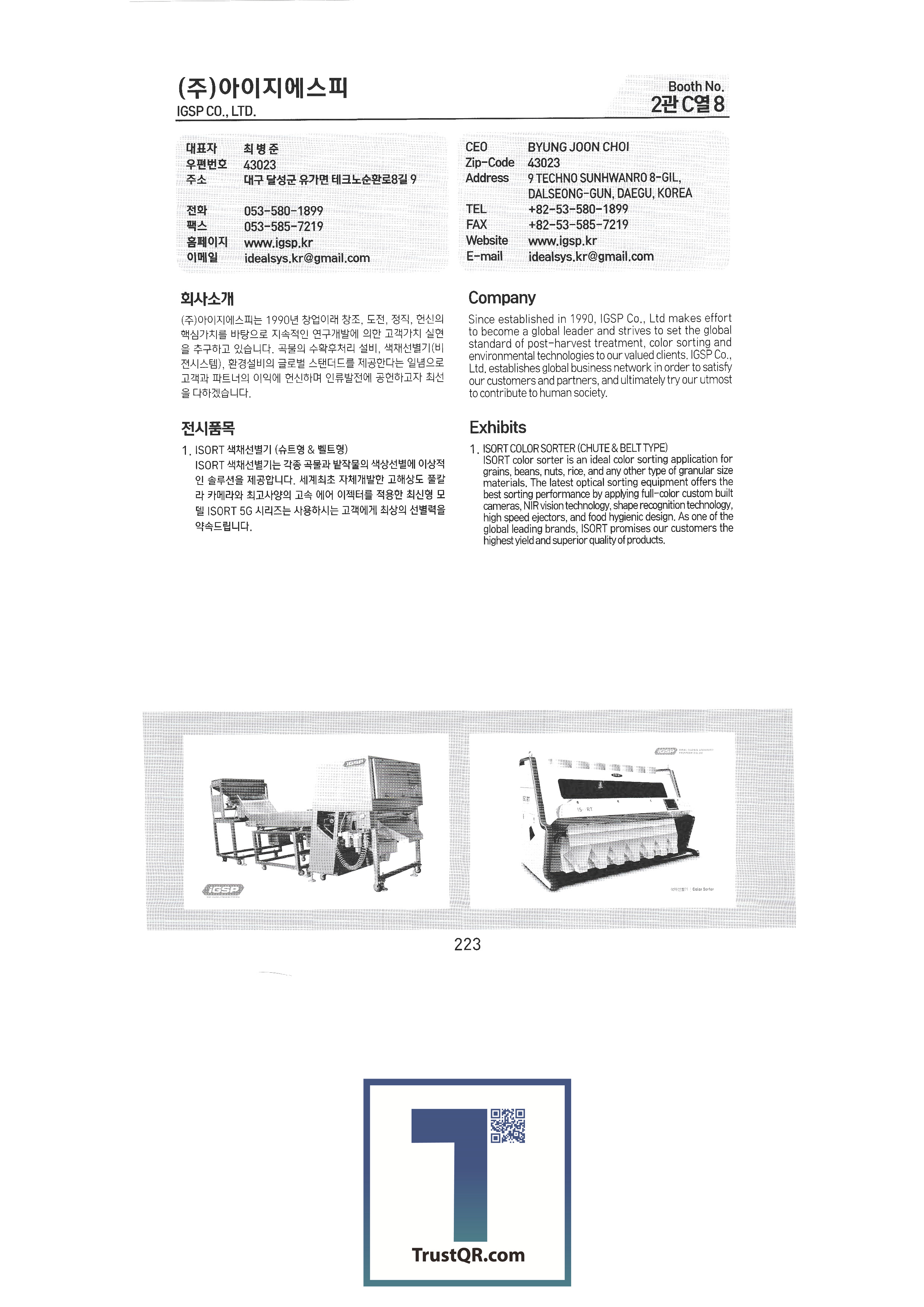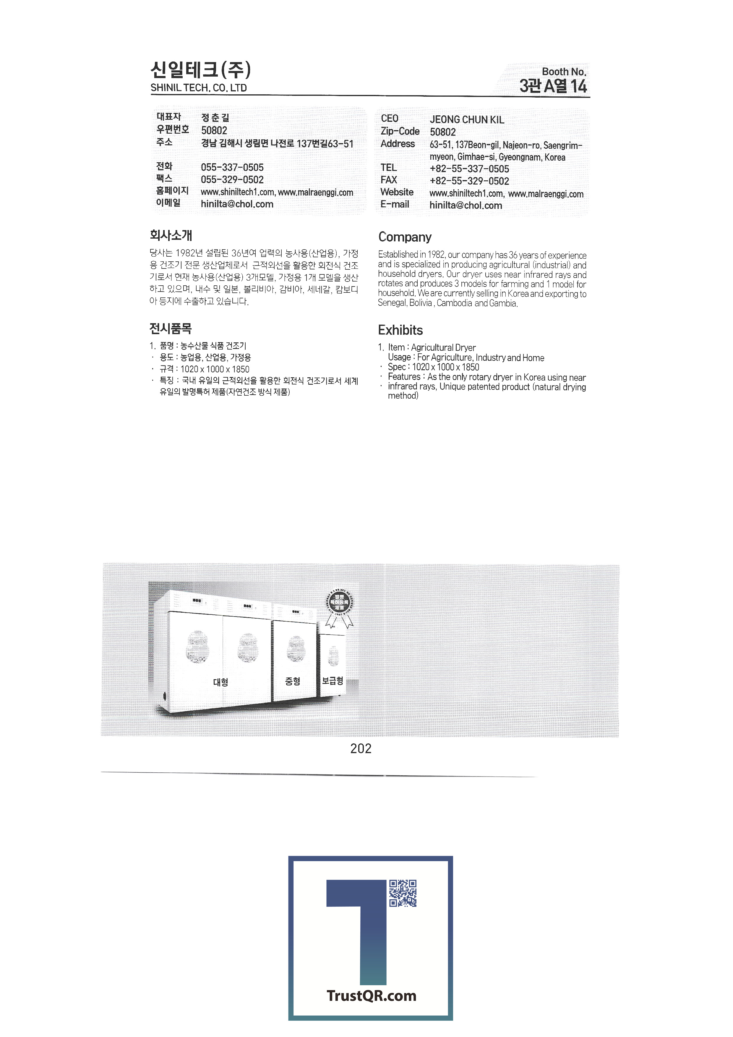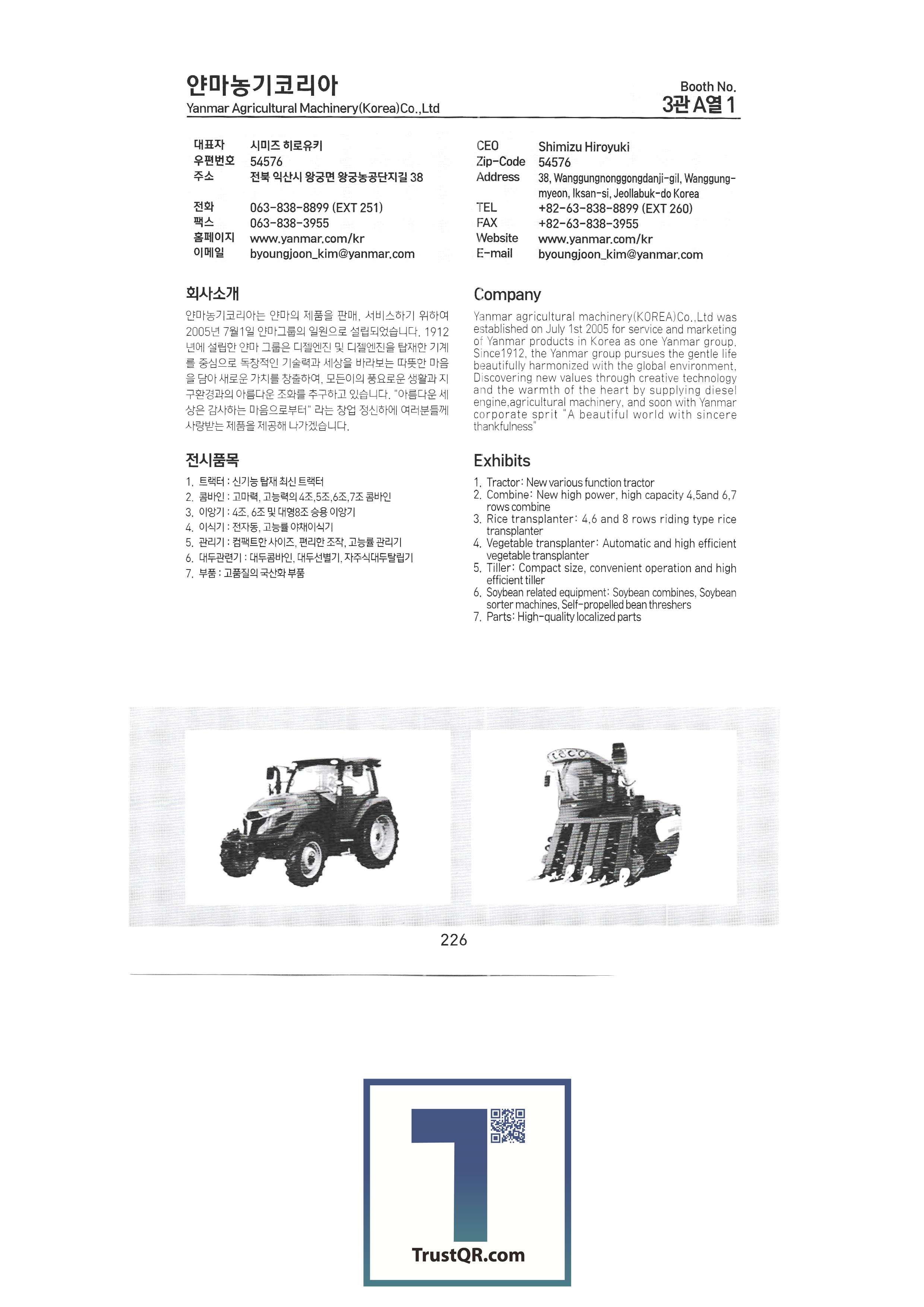 | Shinil Industries Co. , Ltd. บจก. ชินิลเทค ชินจินไฮดรอลิก บริษัท ชินฮันเอเทค จำกัด ความแม่นยำของชินฮวา บริษัท Shinheung Industrial Shinheung Enterprise Co. , Ltd. ซิลตี้บจก. บริษัท ซันยองแมชชีนเนอรี่อินดัสตรี จำกัด ซีแอนด์ซีเทค เครื่องเจาะเมล็ดพันธุ์ C.H.S สถาบันวิจัย C & Tech อากัง จำกัด บจก. เกียรติยศฟาร์ม Abant Korea Co. , Ltd. บจก. อาซาบะแทฮวา อาซุงแม่นยำ อุตสาหกรรมเครื่องจักรกลเอเชีย บจก. เอเชียเทค บจก. เอเชียต้นกล้า Ideaon บจก. ไอจีเอสพี อพอลโล บจก. อันซองอินดัสเตรียล / อโกรส์บจก. ยันม่าร์เครื่องจักรกลการเกษตรเกาหลี เอสบีอุตสาหกรรม SH บจก. บจก. เอส. เอ็น. พี. ซิสเต็ม เครื่องจักร SM Daedong บจก. เอสเอ็มเพียว เอสจีทีคอร์ปอเรชั่น HSM บจก. เอชเจ 9 อินน์ เอแพคบจก. ยืนยัน บจก. อีโคโซลาร์เทค บจก. อีโคพาส L&S LSMtron |