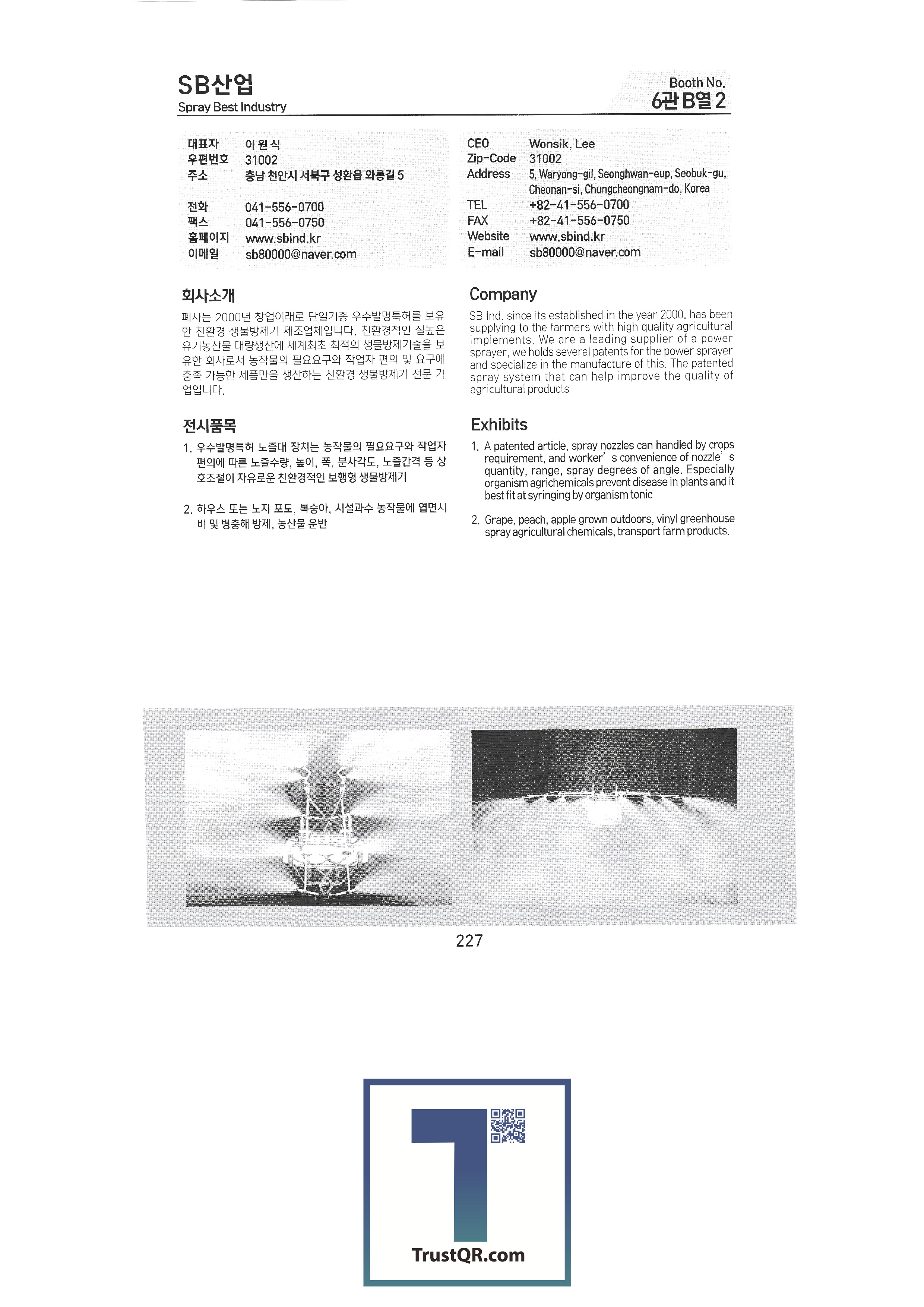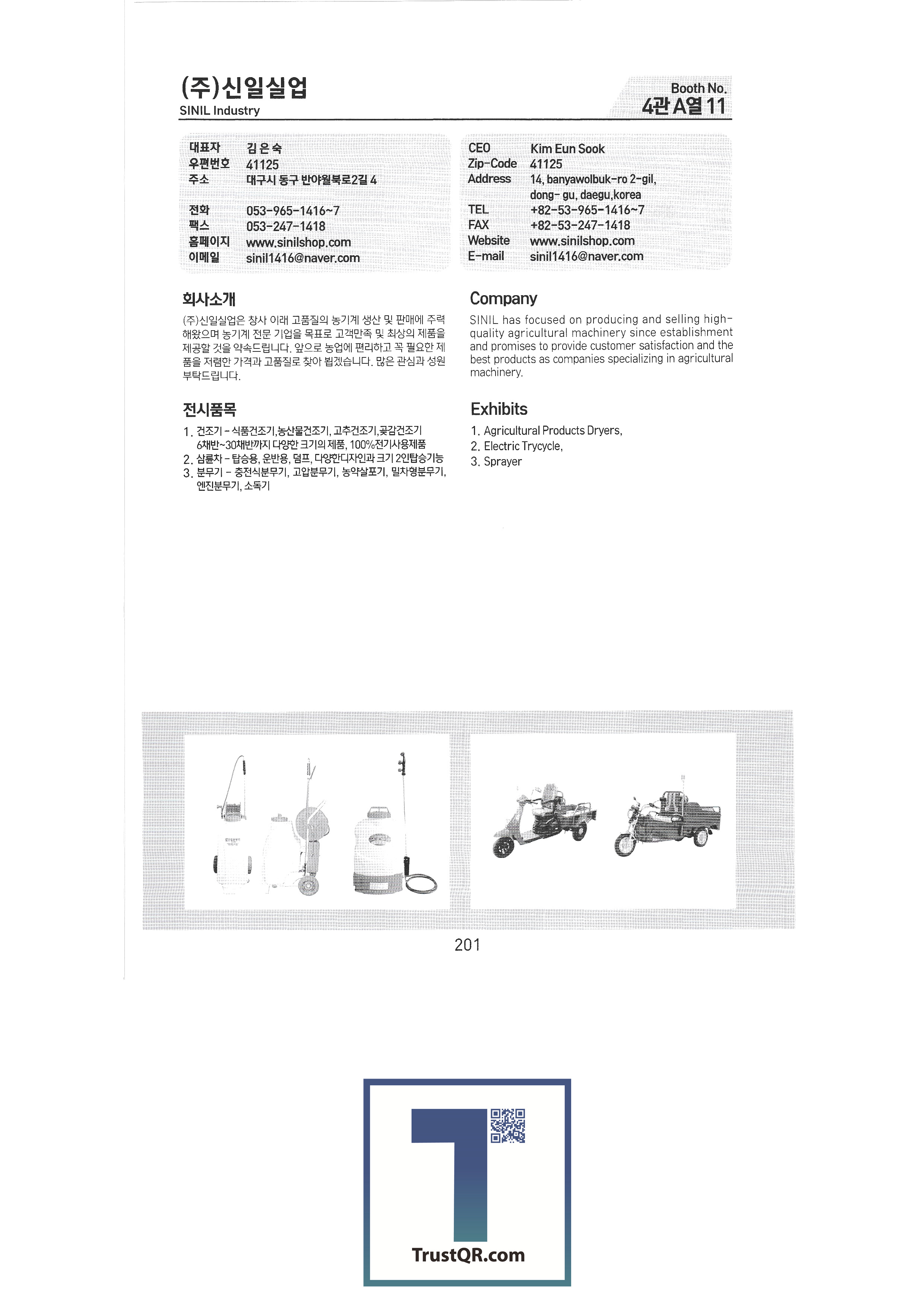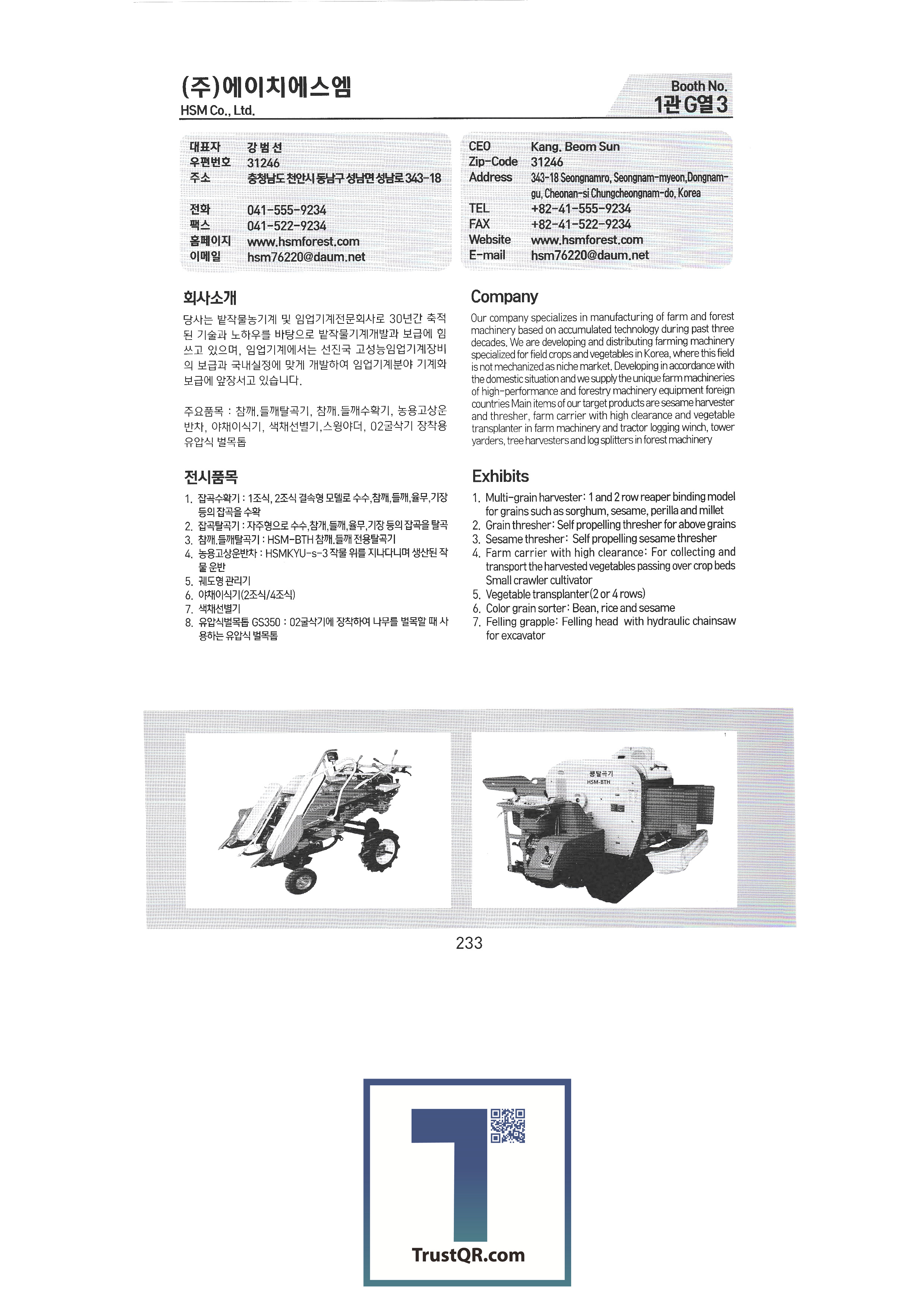 Shinil Industries Co., Ltd. Shinil Tech Co., Ltd. Shinjin Hydraulic Shinhan Atech Co., Ltd. Shinhwa Precision Shinheung Industrial Company Shinheung Enterprise Co., Ltd. Silty Co., Ltd. Ssangyong Machinery Industry Co., Ltd. C&C Tech C.H.S branching seed drill C&Tech Research Institute Agang Co., Ltd. Honor Farm Co., Ltd. Abant Korea Co., Ltd. Asaba Taehwa Co., Ltd. Asung Precision Asia Machinery Industry Asia Tech Co., Ltd. Asia Seedling Co., Ltd. Ideaon IGSP Co., Ltd. Apollo Anseong Industrial Co., Ltd./Agros Co., Ltd. Yanmar Agricultural Machinery Korea SB Industry SH Co., Ltd. SNP System Co., Ltd. SM Daedong Machinery SM Pure Co., Ltd. SGT Corporation HSM HJ9 Inn Co., Ltd. Apack Co., Ltd. Aperm Eco Solar Tech Co., Ltd. Eco Pass Co., Ltd. L&S LSMtron |