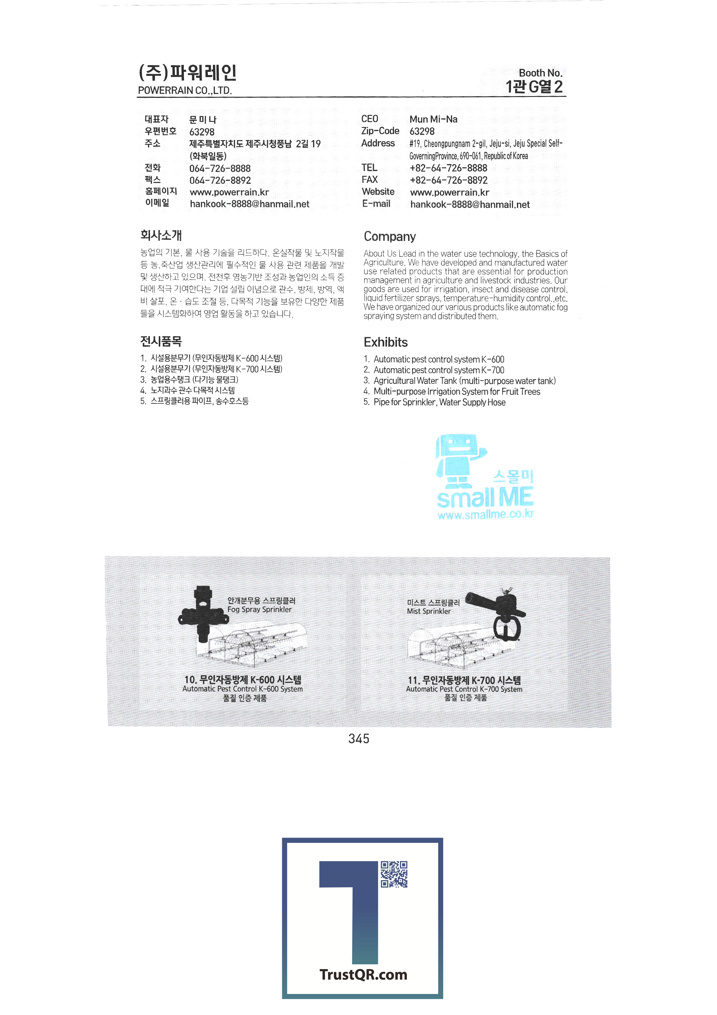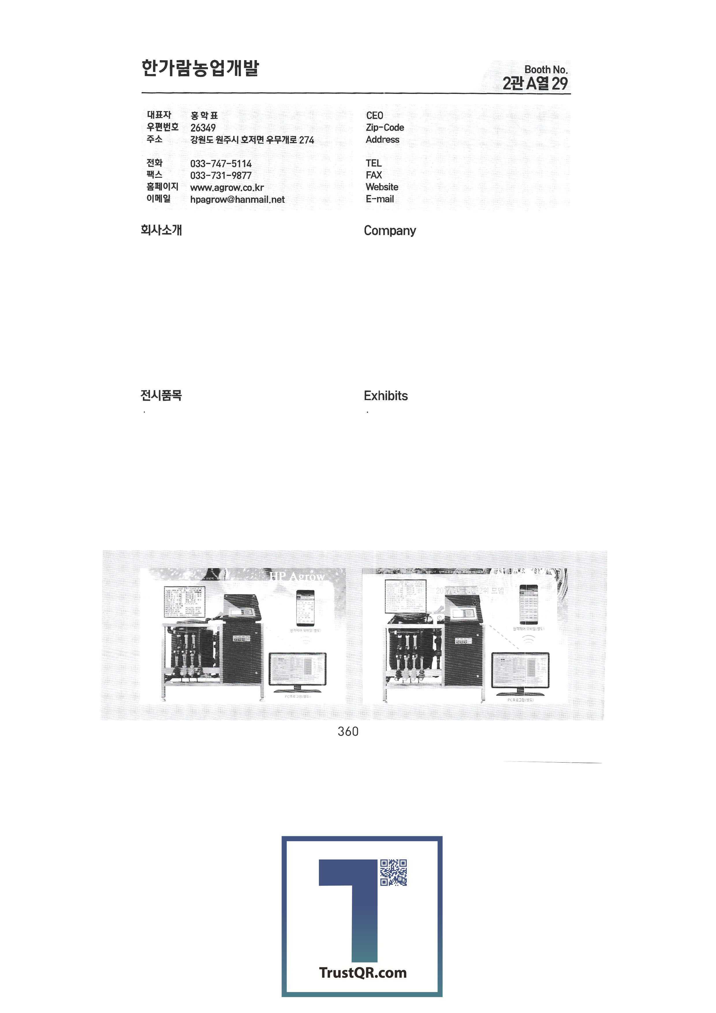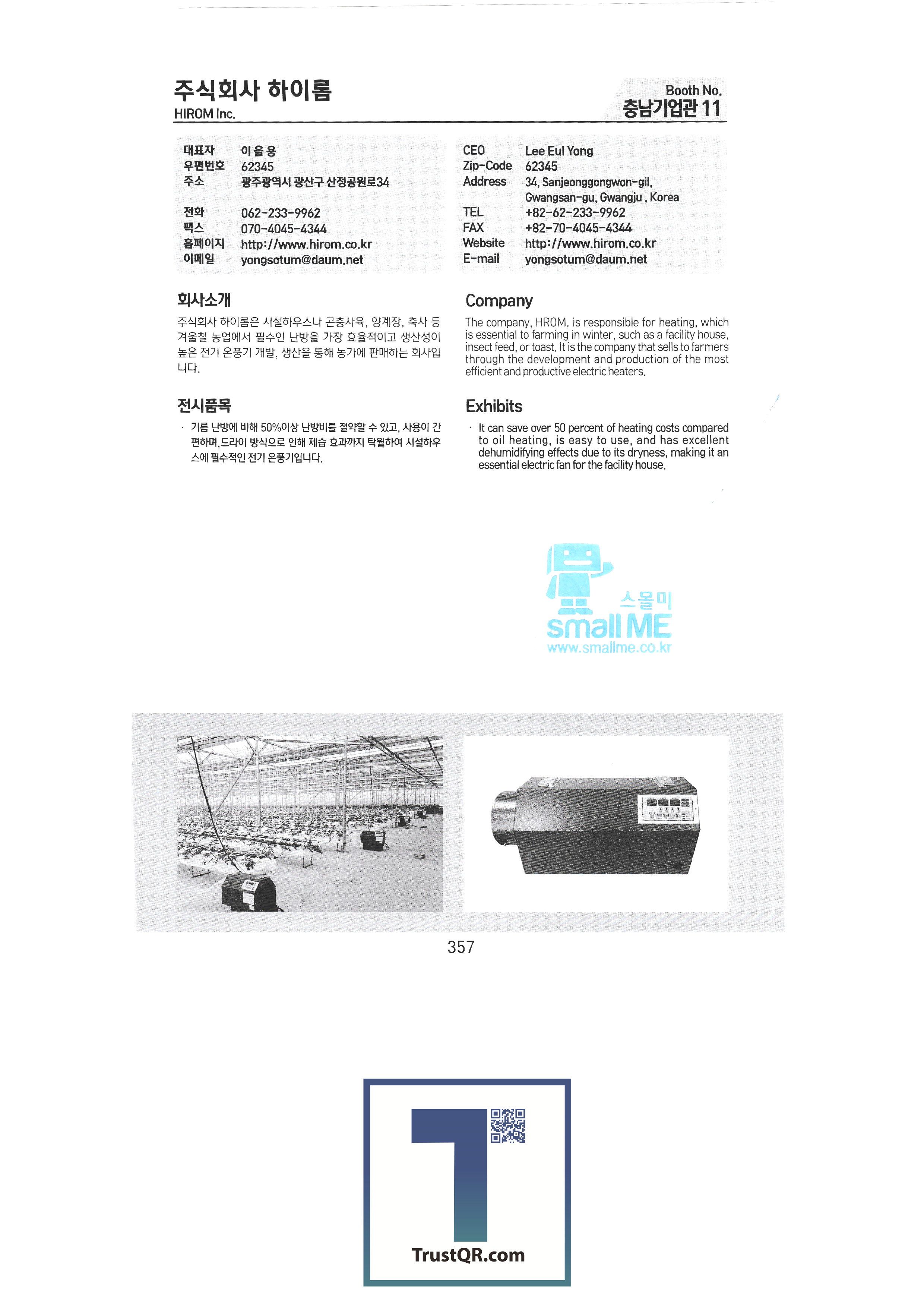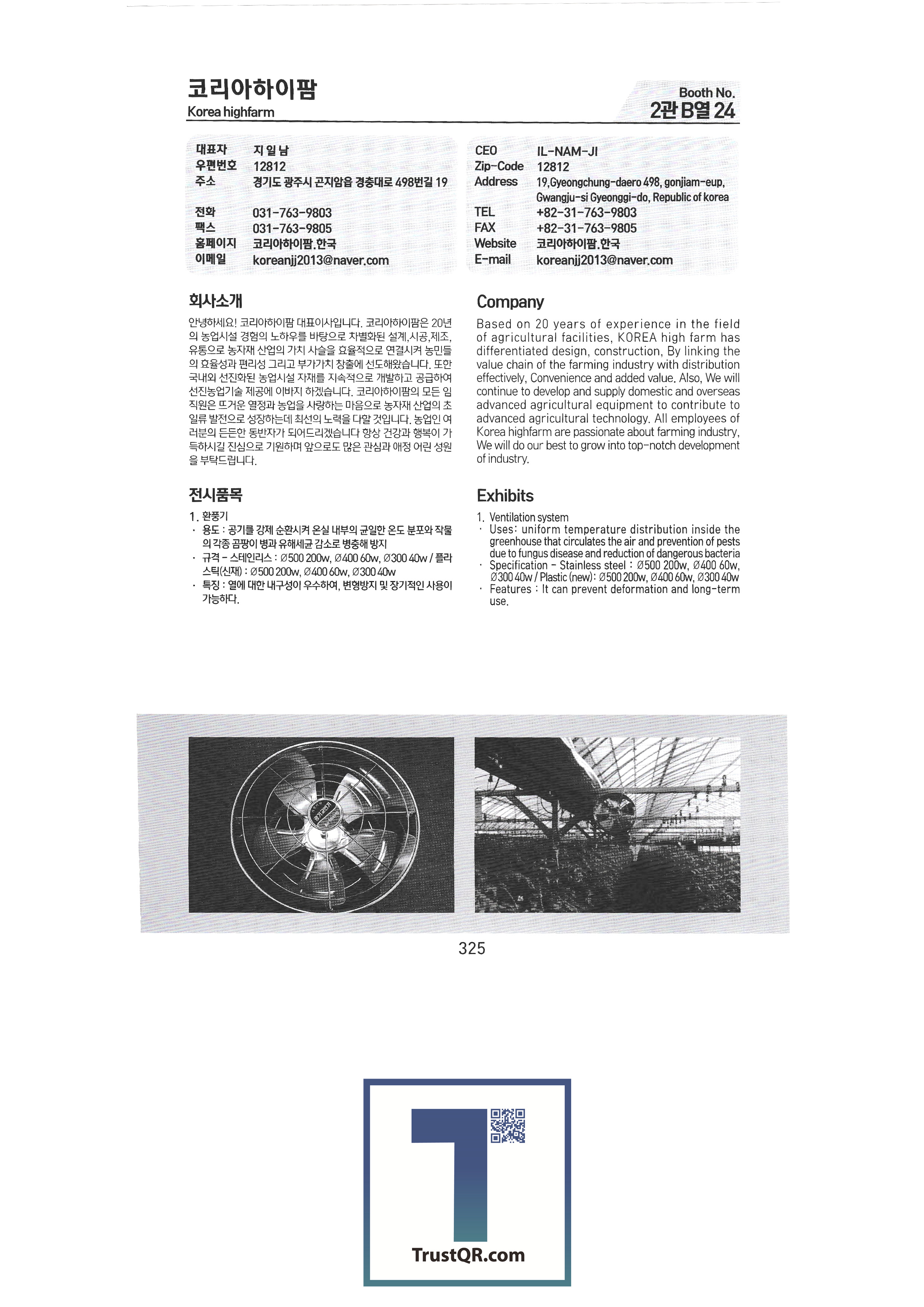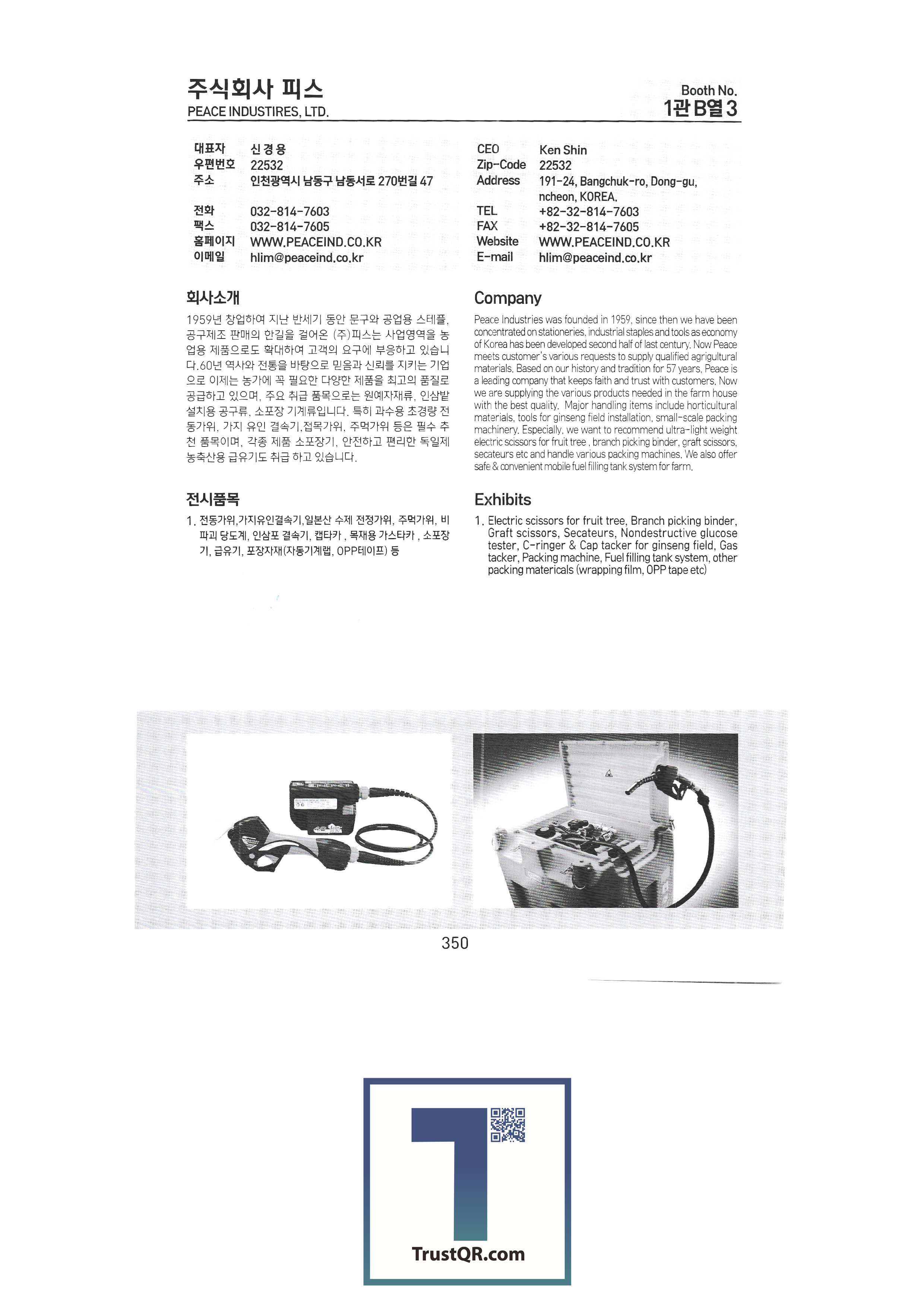 | (유)코리아농업개발/스벤손코리아 ㈜코리아아그로 코리아하이팜 ㈜코리아화스너 코메론 농업회사법인㈜코코스토리 ㈜쿨테이너 ㈜타이아스 탄젠트 코퍼레이션 주식회사 태광공업 태광에이텍㈜ ㈜태광이앤비 태광종합기계 ㈜태성공업 태영산업 태웅농기계 태창농기계 태흥이가공업사 투와이 주식회사 트윈 ㈜특수정밀 티에마 ㈜파워레인 주식회사 파이랜드 ㈜팜한농 풍조농기계 프라임코리아 주식회사 피스 필수기계 ㈜필텍산업 하나 ㈜하나 ㈜하다 하이드로텍㈜ 주식회사 하이롬 ㈜하이온 ㈜하이온코리아 한가람농업개발 한국네타핌(유) 한국농림시스템㈜ |