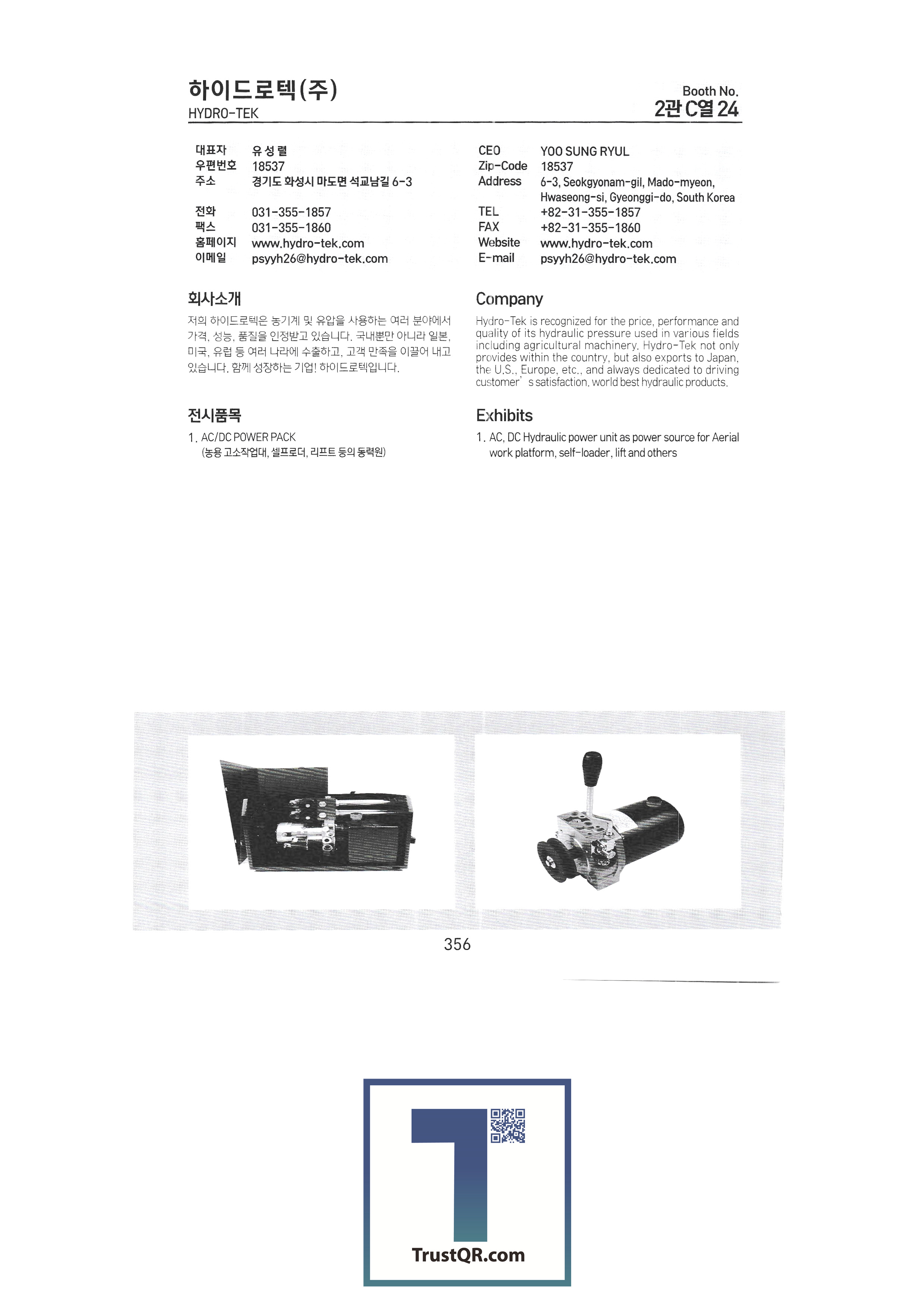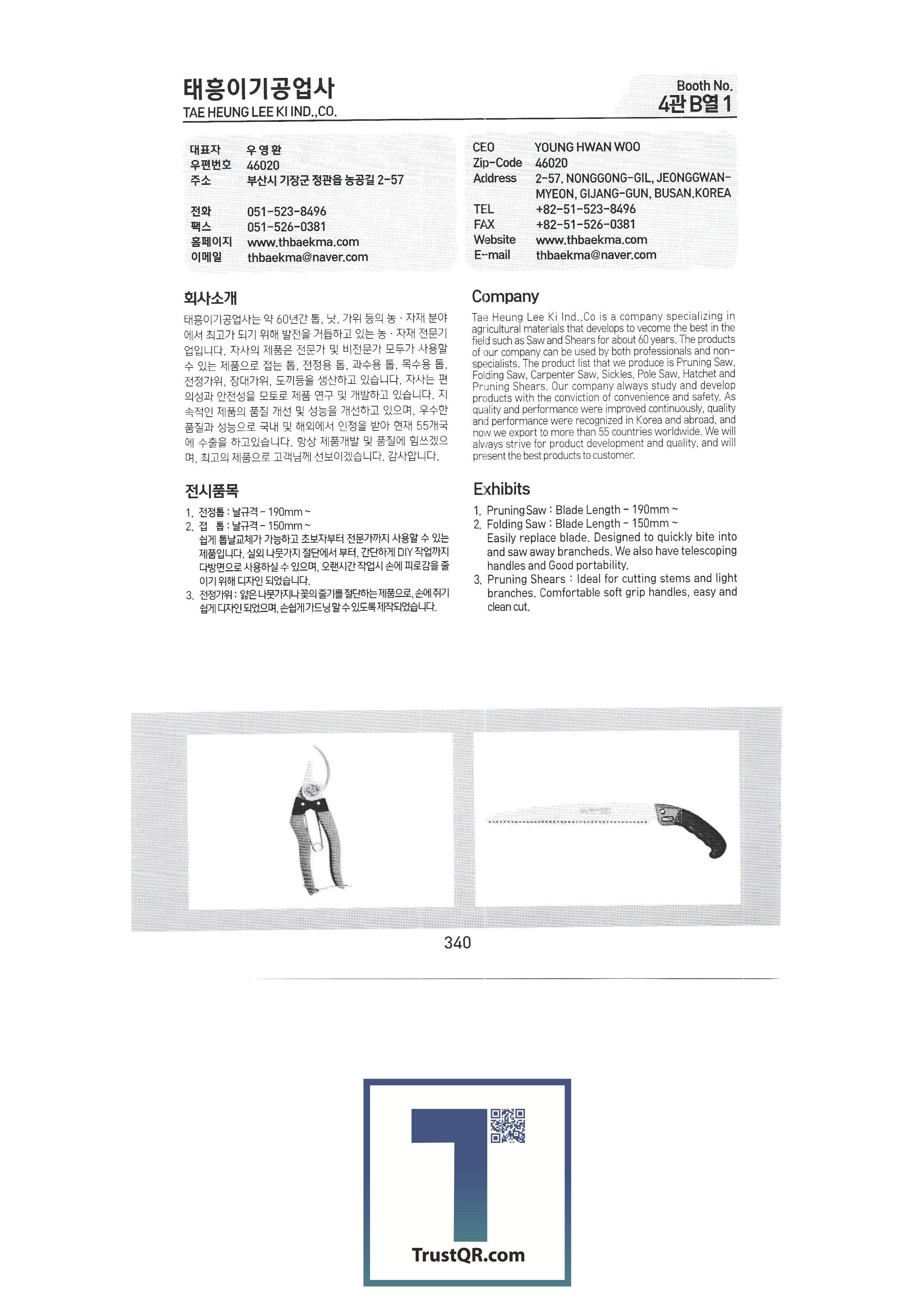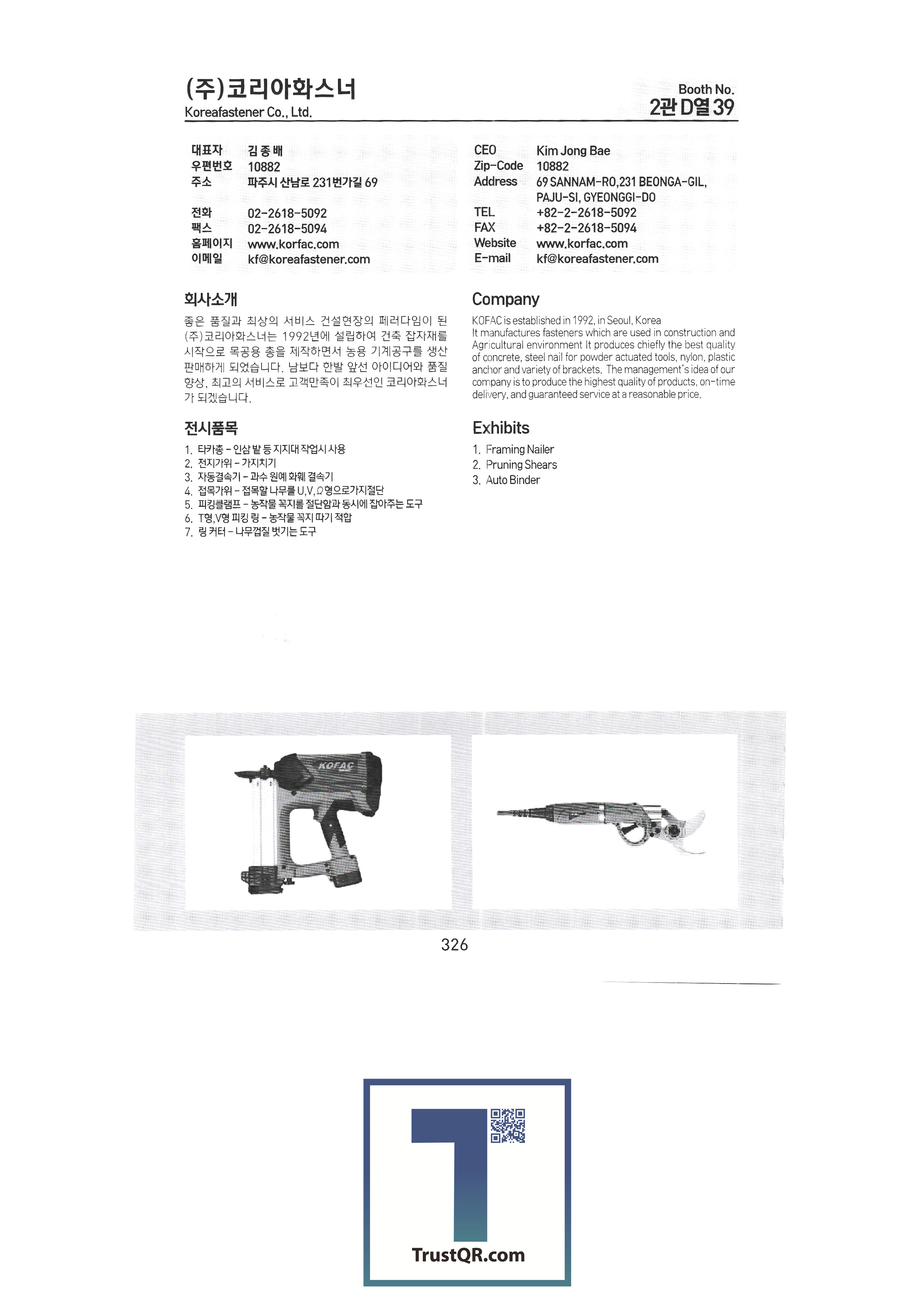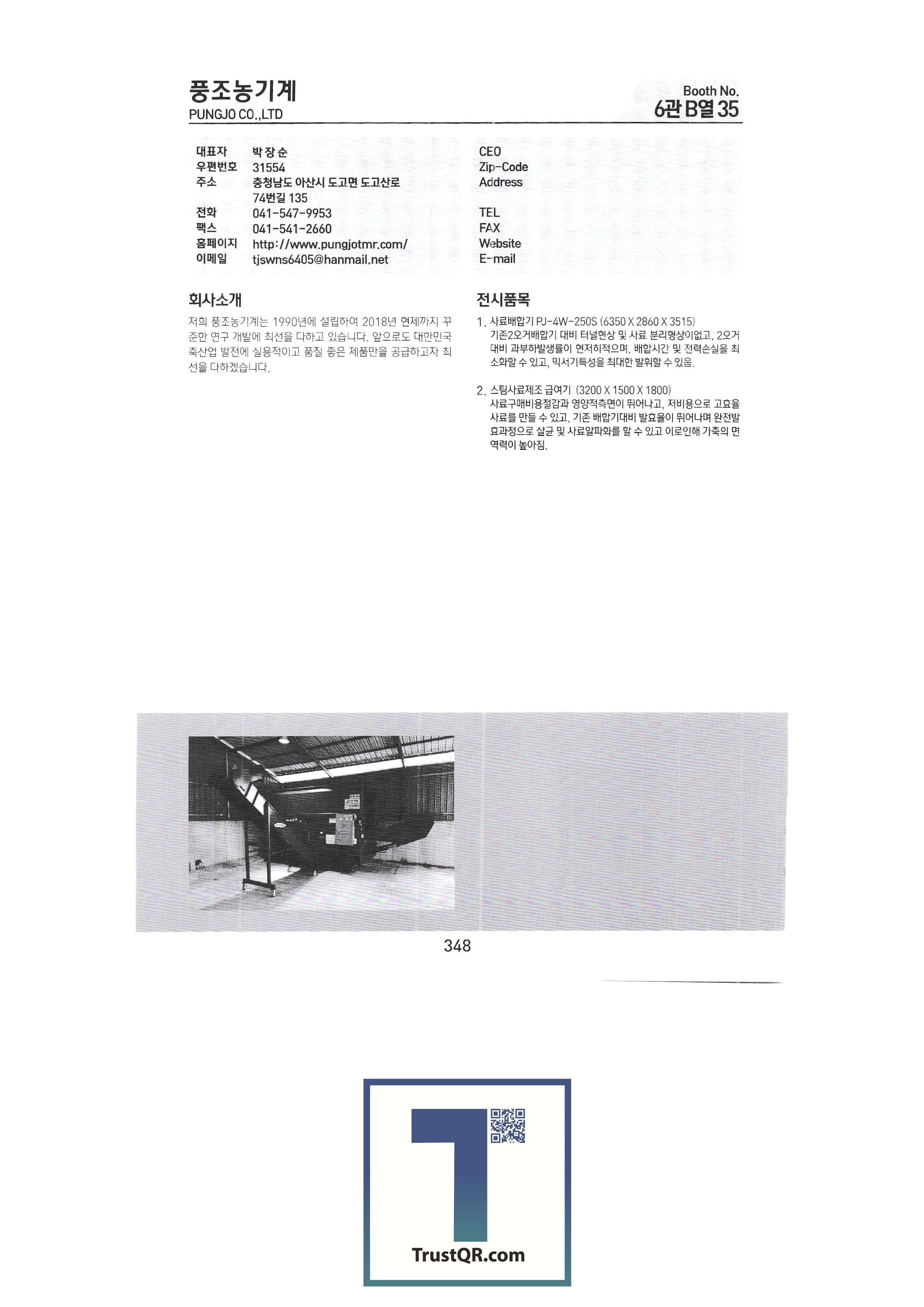 | (유)코리아농업개발/스벤손코리아 ㈜코리아아그로 코리아하이팜 ㈜코리아화스너 코메론 농업회사법인㈜코코스토리 ㈜쿨테이너 ㈜타이아스 탄젠트 코퍼레이션 주식회사 태광공업 태광에이텍㈜ ㈜태광이앤비 태광종합기계 ㈜태성공업 태영산업 태웅농기계 태창농기계 태흥이가공업사 투와이 주식회사 트윈 ㈜특수정밀 티에마 ㈜파워레인 주식회사 파이랜드 ㈜팜한농 풍조농기계 프라임코리아 주식회사 피스 필수기계 ㈜필텍산업 하나 ㈜하나 ㈜하다 하이드로텍㈜ 주식회사 하이롬 ㈜하이온 ㈜하이온코리아 한가람농업개발 한국네타핌(유) 한국농림시스템㈜ |