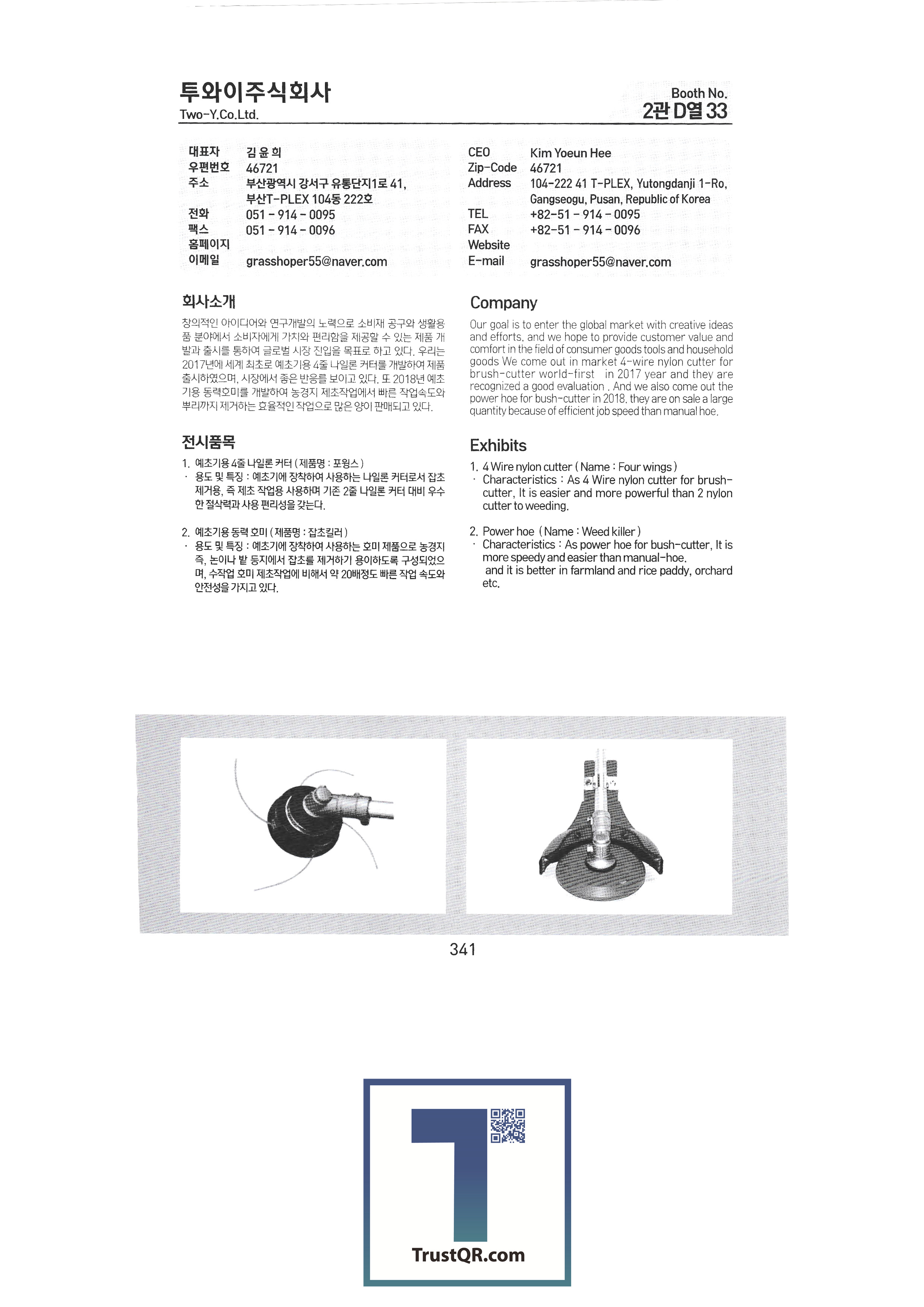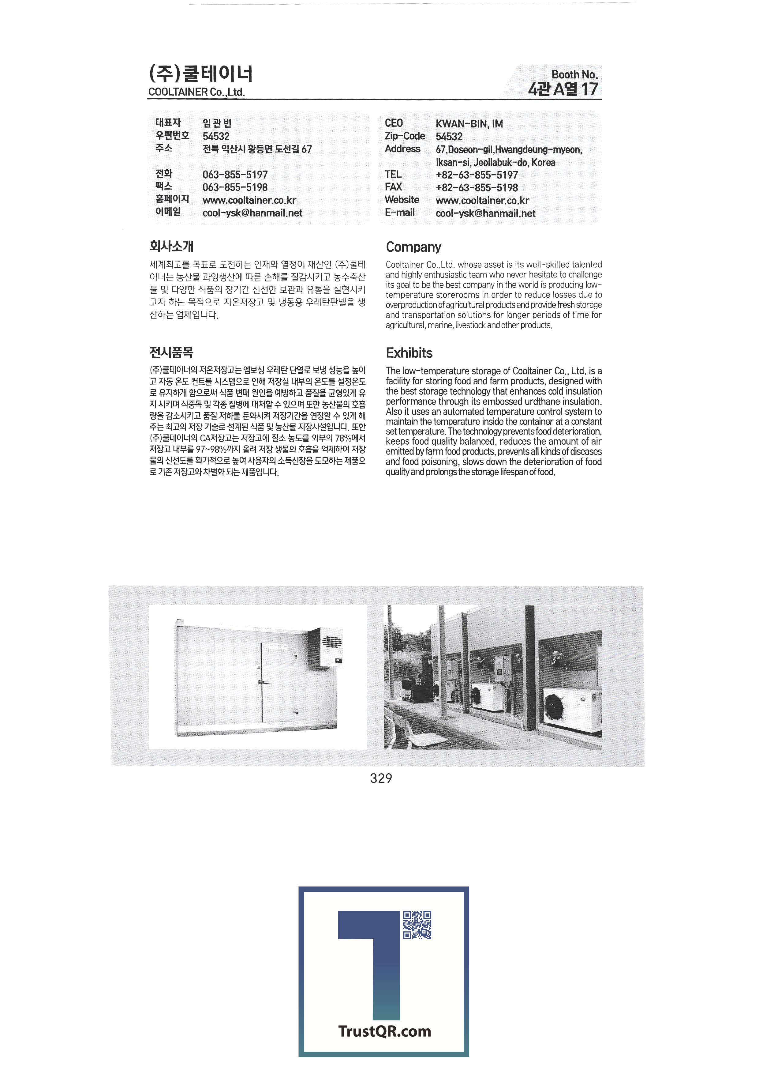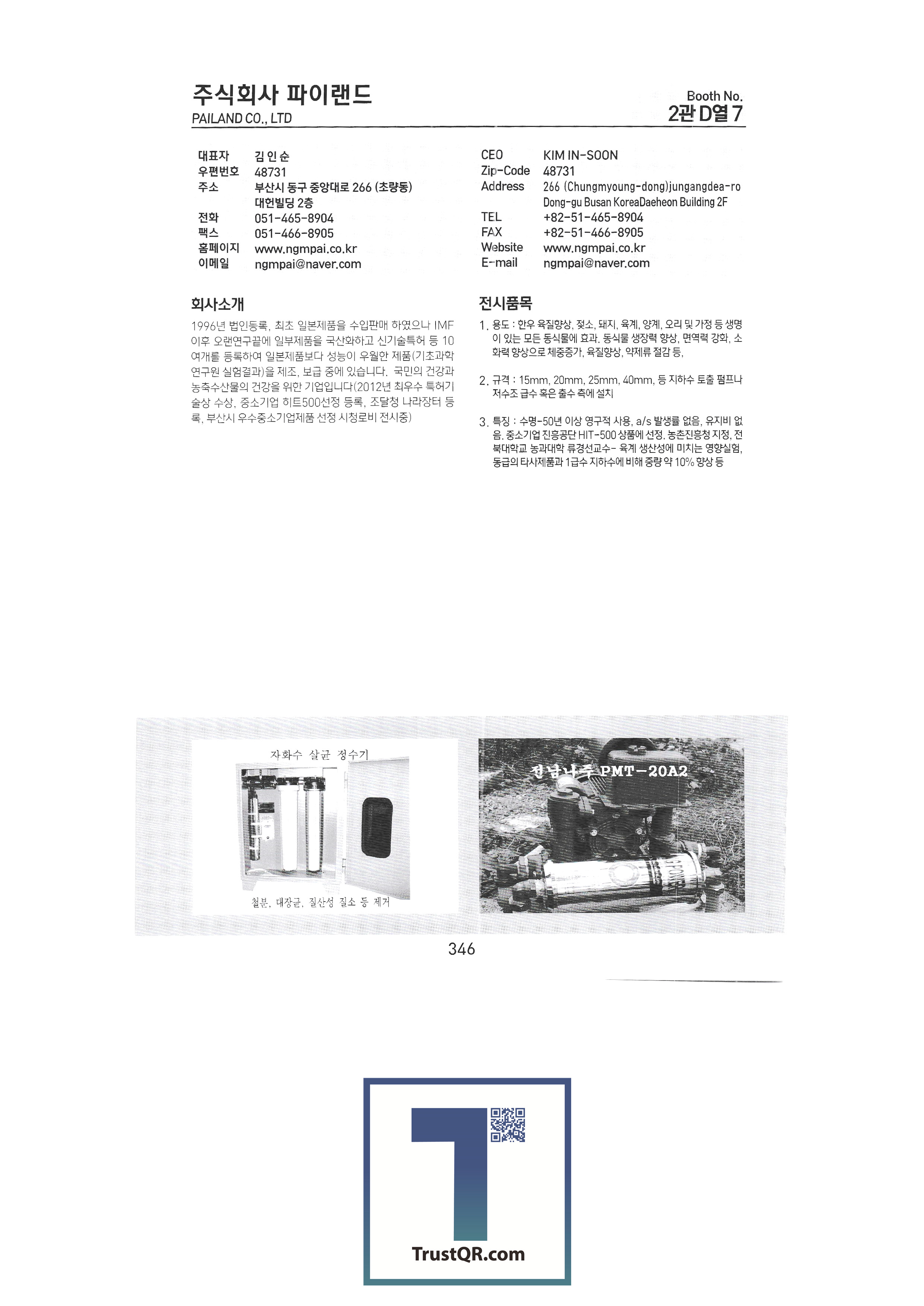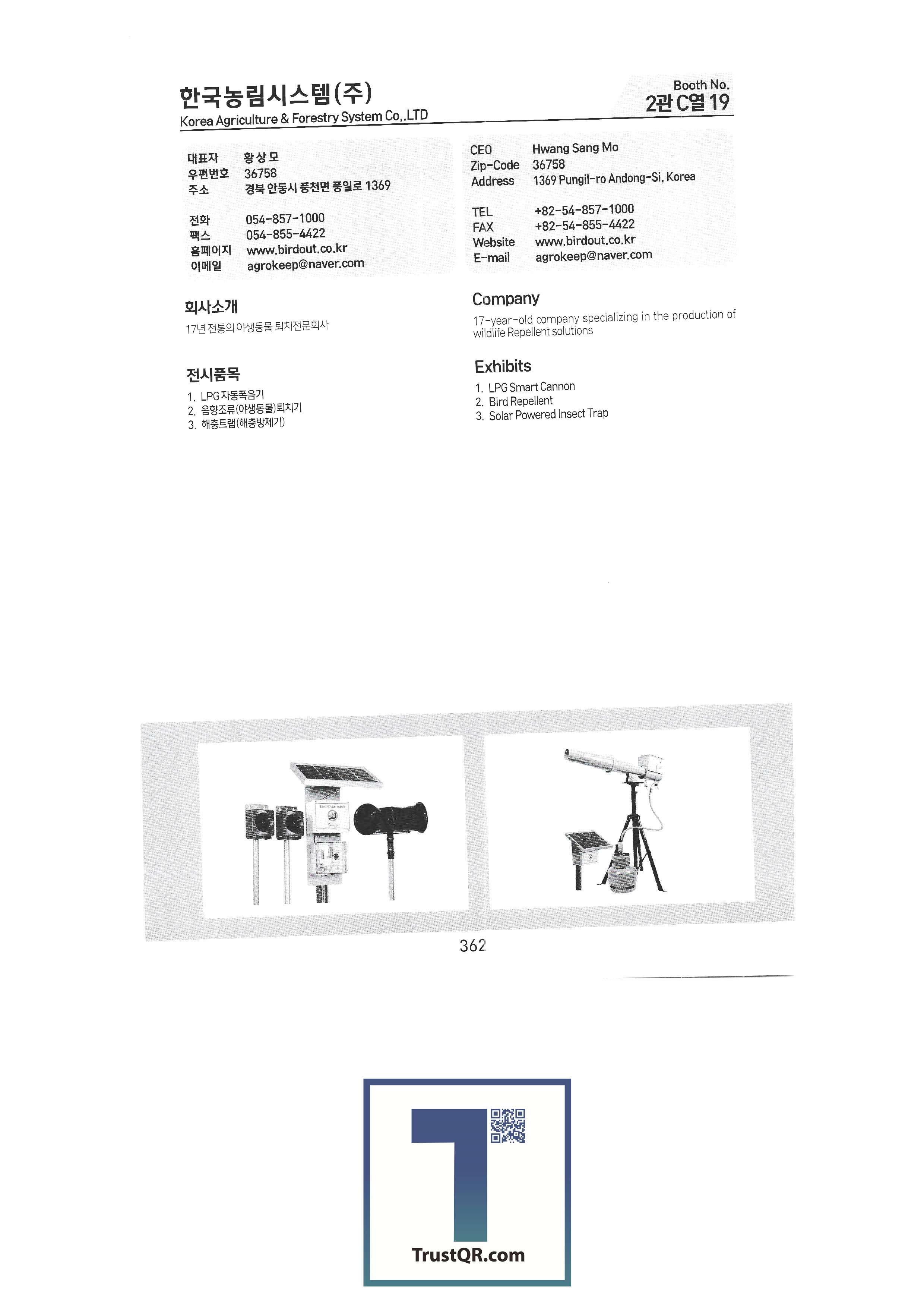 | (유)코리아농업개발/스벤손코리아 ㈜코리아아그로 코리아하이팜 ㈜코리아화스너 코메론 농업회사법인㈜코코스토리 ㈜쿨테이너 ㈜타이아스 탄젠트 코퍼레이션 주식회사 태광공업 태광에이텍㈜ ㈜태광이앤비 태광종합기계 ㈜태성공업 태영산업 태웅농기계 태창농기계 태흥이가공업사 투와이 주식회사 트윈 ㈜특수정밀 티에마 ㈜파워레인 주식회사 파이랜드 ㈜팜한농 풍조농기계 프라임코리아 주식회사 피스 필수기계 ㈜필텍산업 하나 ㈜하나 ㈜하다 하이드로텍㈜ 주식회사 하이롬 ㈜하이온 ㈜하이온코리아 한가람농업개발 한국네타핌(유) 한국농림시스템㈜ |