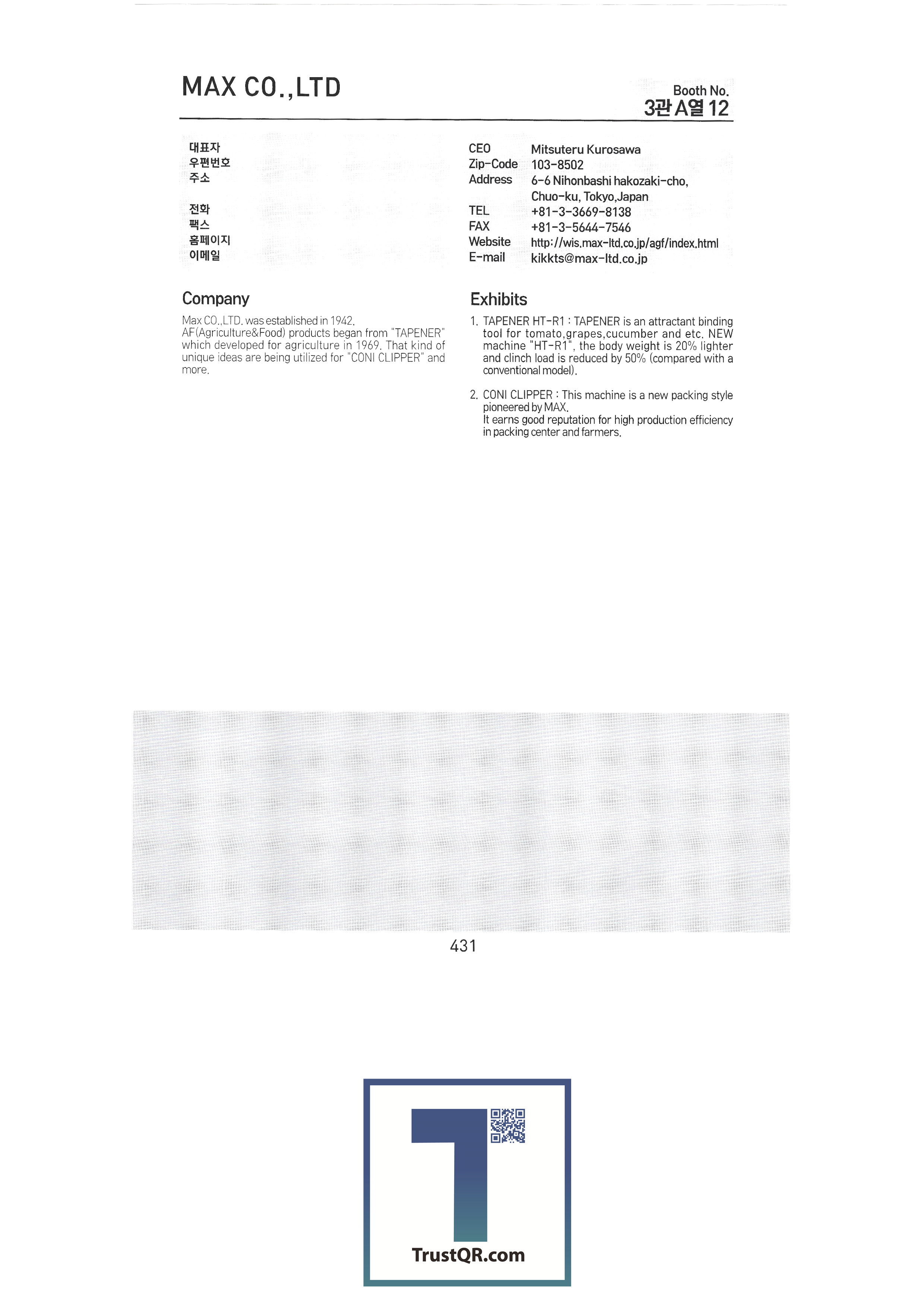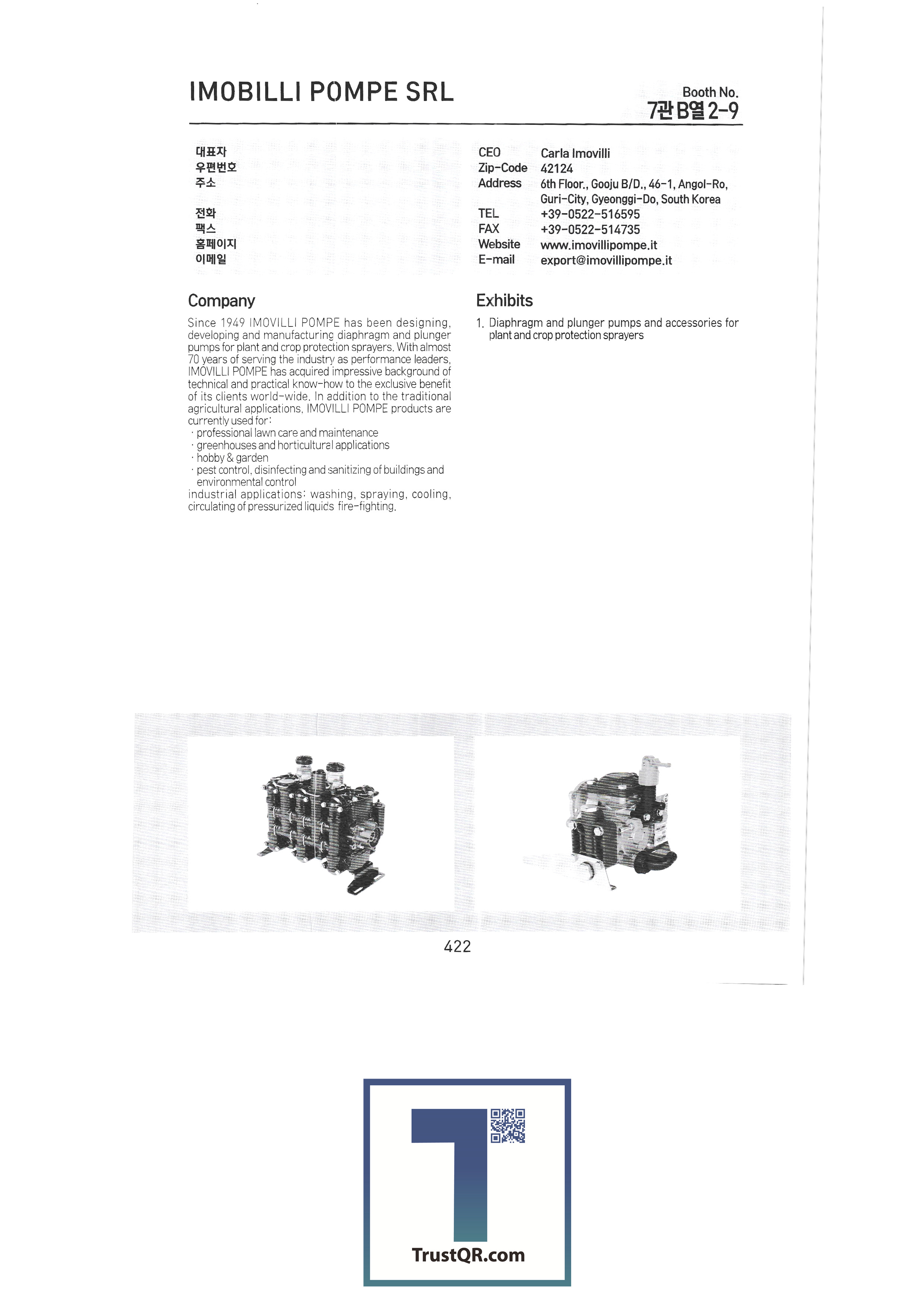 | 미푸코㈜ / 네덜란드 미푸코종자㈜ / 네덜란드 미푸코그린㈜ / 네덜란드 Certhon / 네덜란드 코퍼트 주식회사 / 네덜란드 LOGIQS B.V. / 네덜란드 Delphy BV / 네덜란드 CogaskoreaB.V / 네덜란드 Poclain Hydraulics / 프랑스 ADR SPA / 이탈리아 AGRI PARTS SRL / 이탈리아 AMA SPA / 이탈리아 ANNOVI REVERBERI SPA / 이탈리아 COBO SPA / 이탈리아 COMET SpA / 이탈리아 EUROCARDAN SPA / 이탈리아 FEDERUNACOMA / 이탈리아 IMOBILLI POMPE SRL / 이탈리아 ITALIAN TRADE COMMISSION - Seoul Office / 이탈리아 ZAPPETTIFICIO MUZZI SCARL / 이탈리아 IE-IE CORPORATION / 대만 TAIWAN AGRICULTURAL MACHINERY MANUFACTURERS' / 대만 CHIA WANG OIL HYDRUALIC INDUSTRIAL CO / 대만 TAIWAN SHENNONG SOCIAL ENTERPRISE CORP., / 대만 Jyen Herr Enterprise Co. Ltd. / 대만 SUNCUE COMPANY LTD. / 대만 MAX CO.,LTD / 일본 HANGZHOU XIAOSHAN HONGQI FRICTION MATERIALCO.,LTD / 중국 SHANDONG BOFA POWER MACHINERY CO.,LTD / 중국 Zhejiang Changheng Machinery Co., Ltd. / 중국 Yantai Future Automatic Equipments Co.,Ltd / 중국 TAIZHOU SHENGSHI YUANLIN MECHANICAL AND ELECTRICAL TECHNOLOGY CO.,LTD. / 중국 주식회사 은성테크 주식회사 장신산업 YM인터내쇼날 대건금속 대명코리아 대일상사 한국구보다 주식회사 백암물산 |