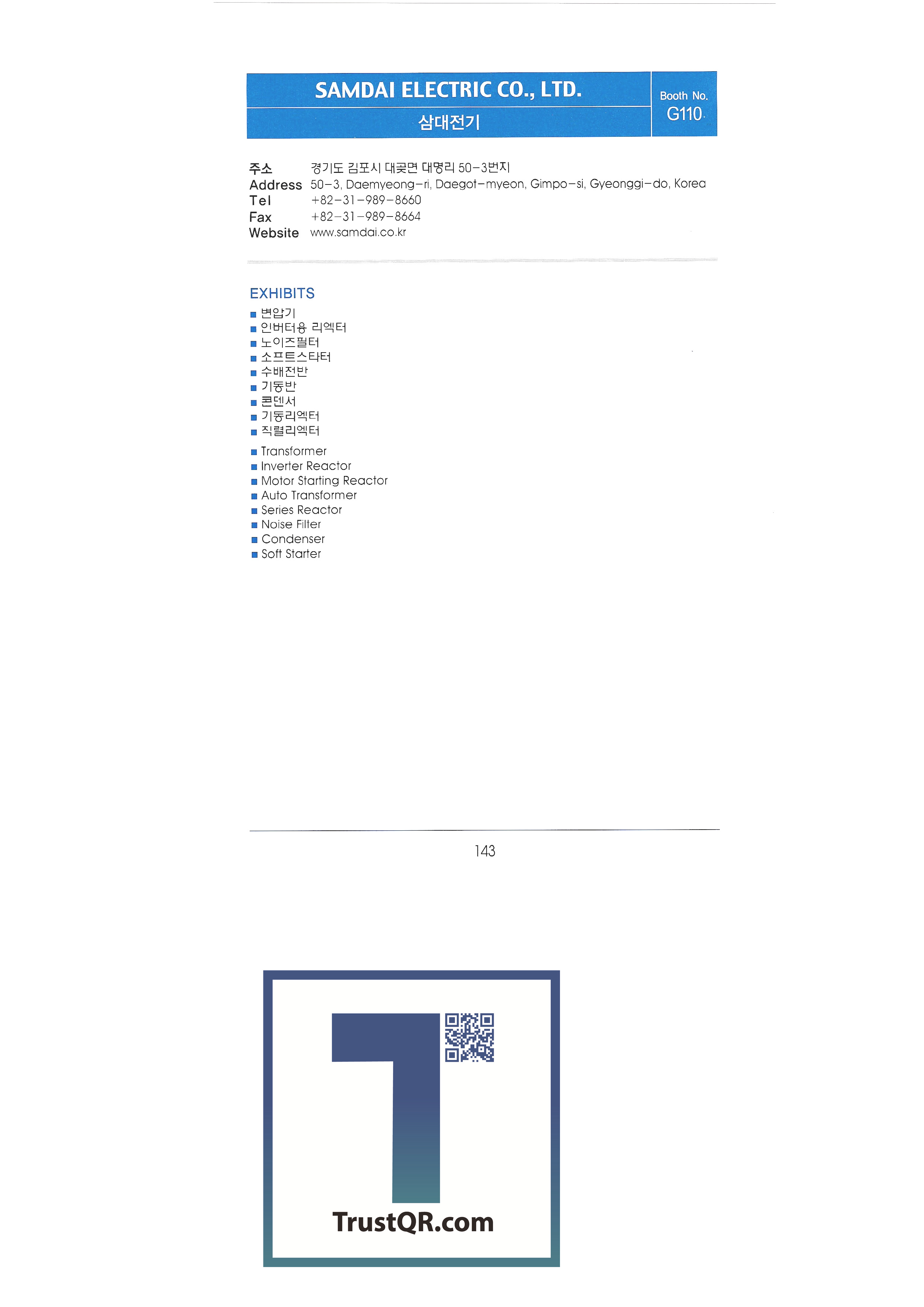 | Gwangseong Instrument แอลแอนด์เอสเมทัล เทคโนโลยี MIK อุตสาหกรรม Miseong มอร์แกนเกาหลี นาโนพีแอนด์ซี Noise Premier Lab ล็อคโหนดเกาหลี Buksung Bestec อสค โอซองเมกกะพาวเวอร์ PNC เทค Phoenix Technics เทคโนโลยีพืช PNS Powertron เทคโนโลยีคุณภาพไฟฟ้า โซลูชั่นนายกรัฐมนตรี เทคโนโลยีเครื่องมือวัดรายเดือน วันธรรมดา รีลเทค รีฟอร์มเทค สมาเทคโนโซลูชั่น แสมดำการไฟฟ้า ชุด Samho Samhoe อุตสาหกรรม แซมฮยอนชุน สามขวางปล สามสังวรคอร์ปอเรชั่น Samhwa DSP สามวา EOCR Samyoung Piltech สื่อ Sangeun ด้านบนของโต๊ะ Savit Max Sejin Instruments โซกัง ENC Saebit Tech Sewon Entech ซีอุน T.N.S |