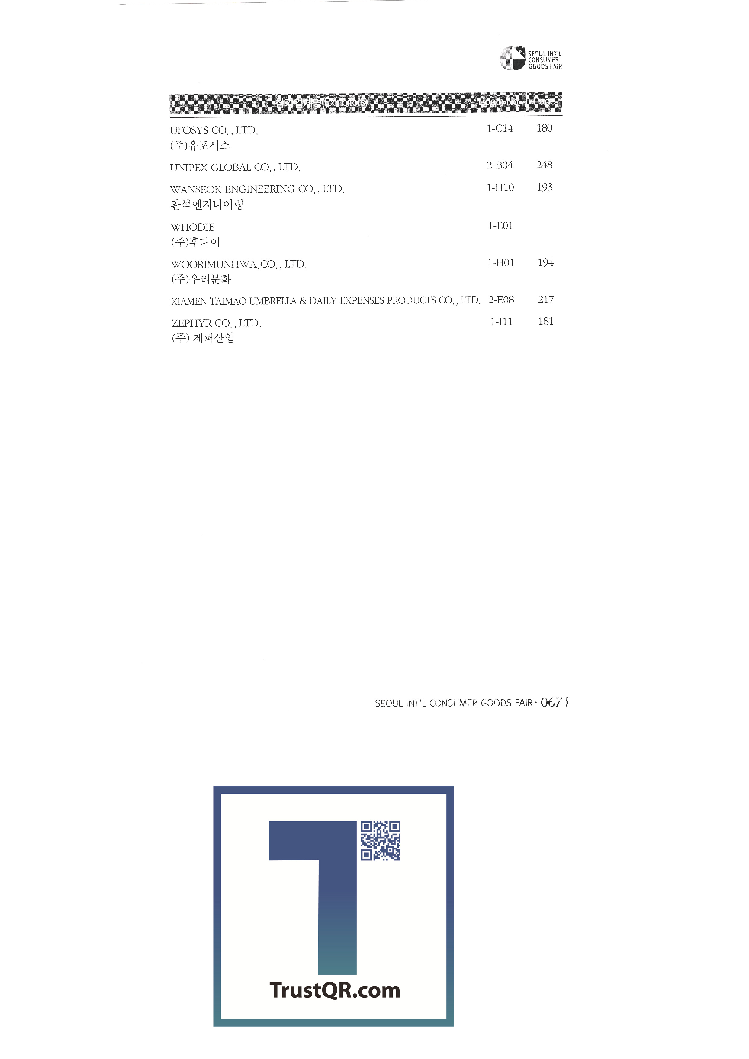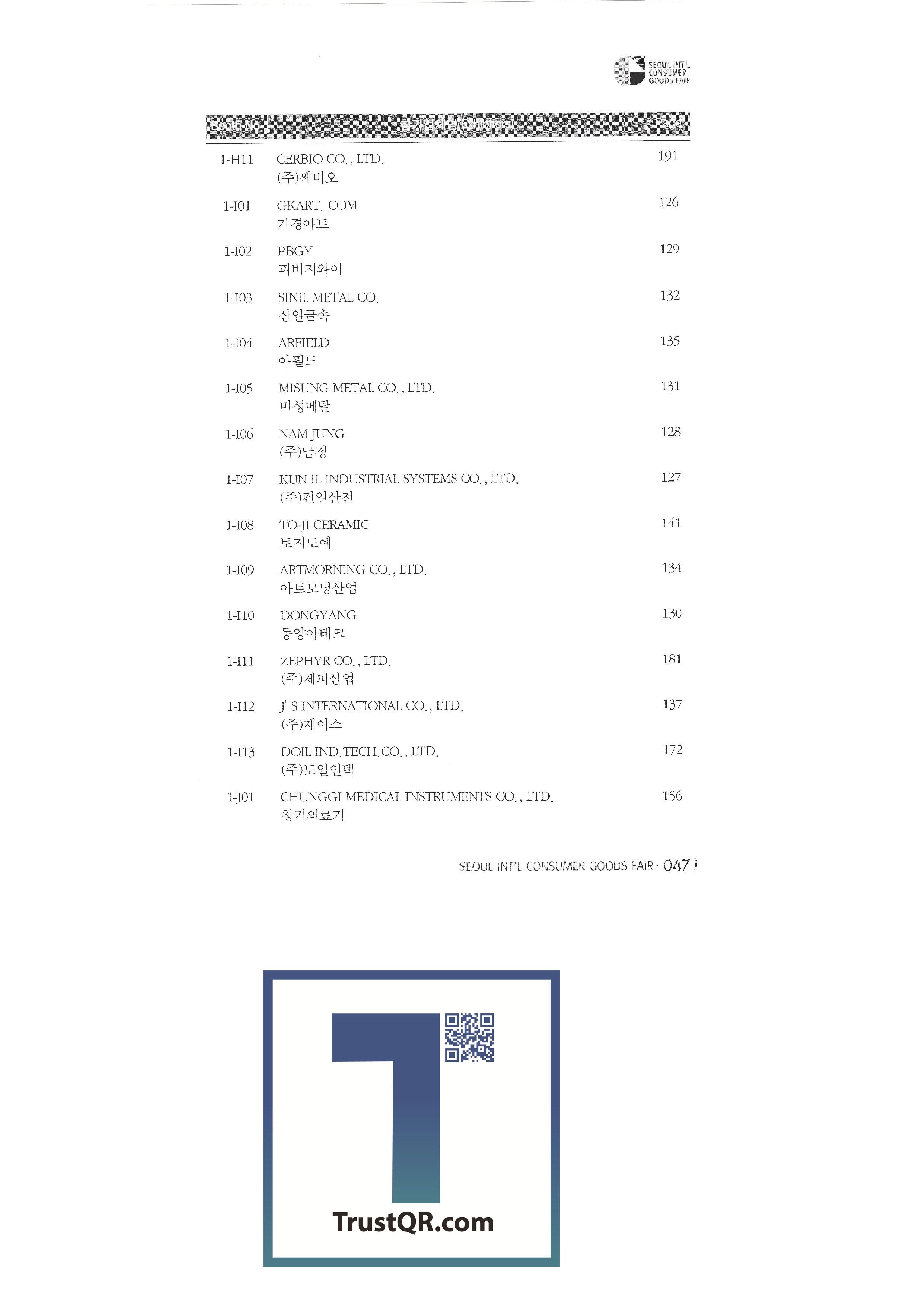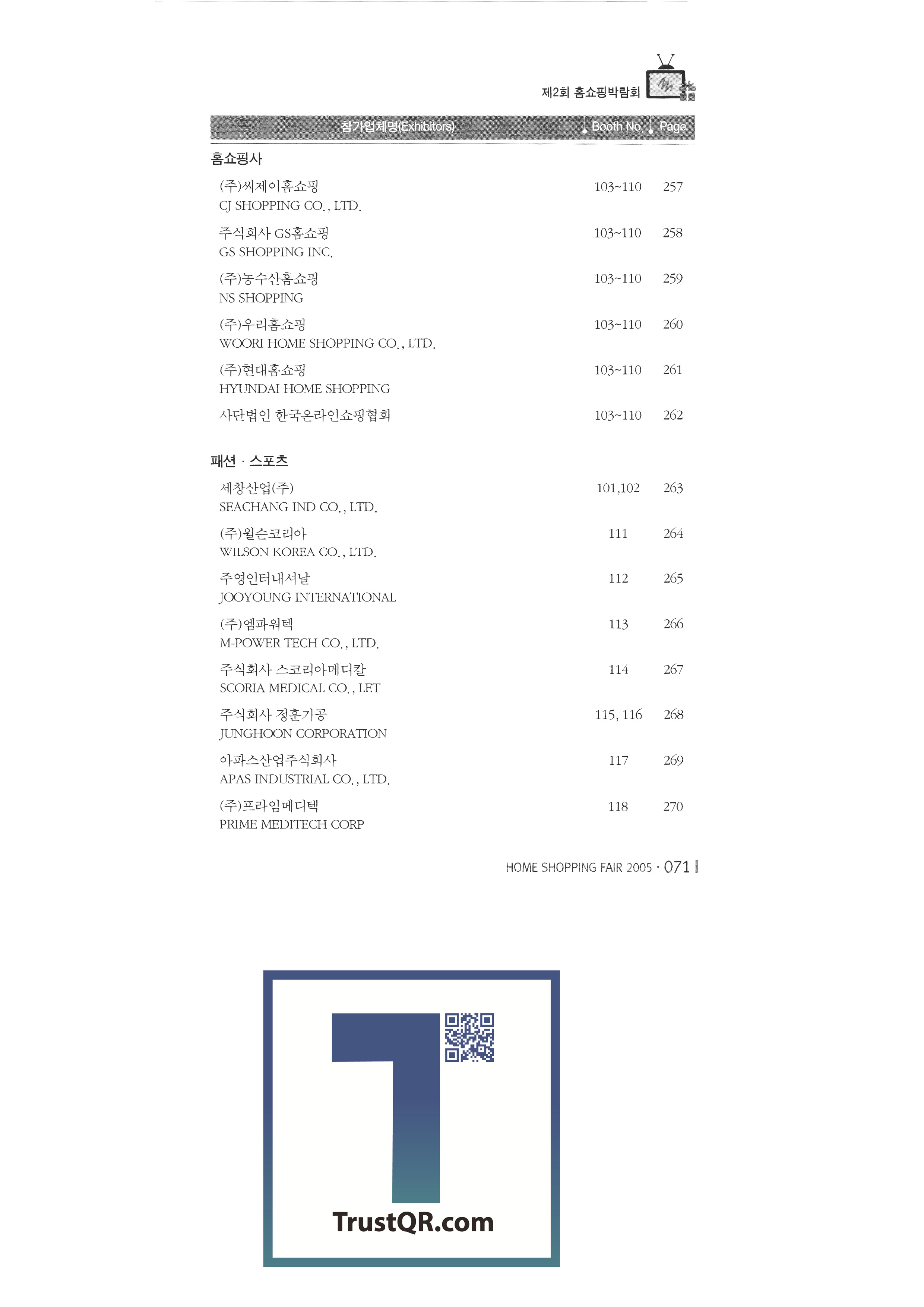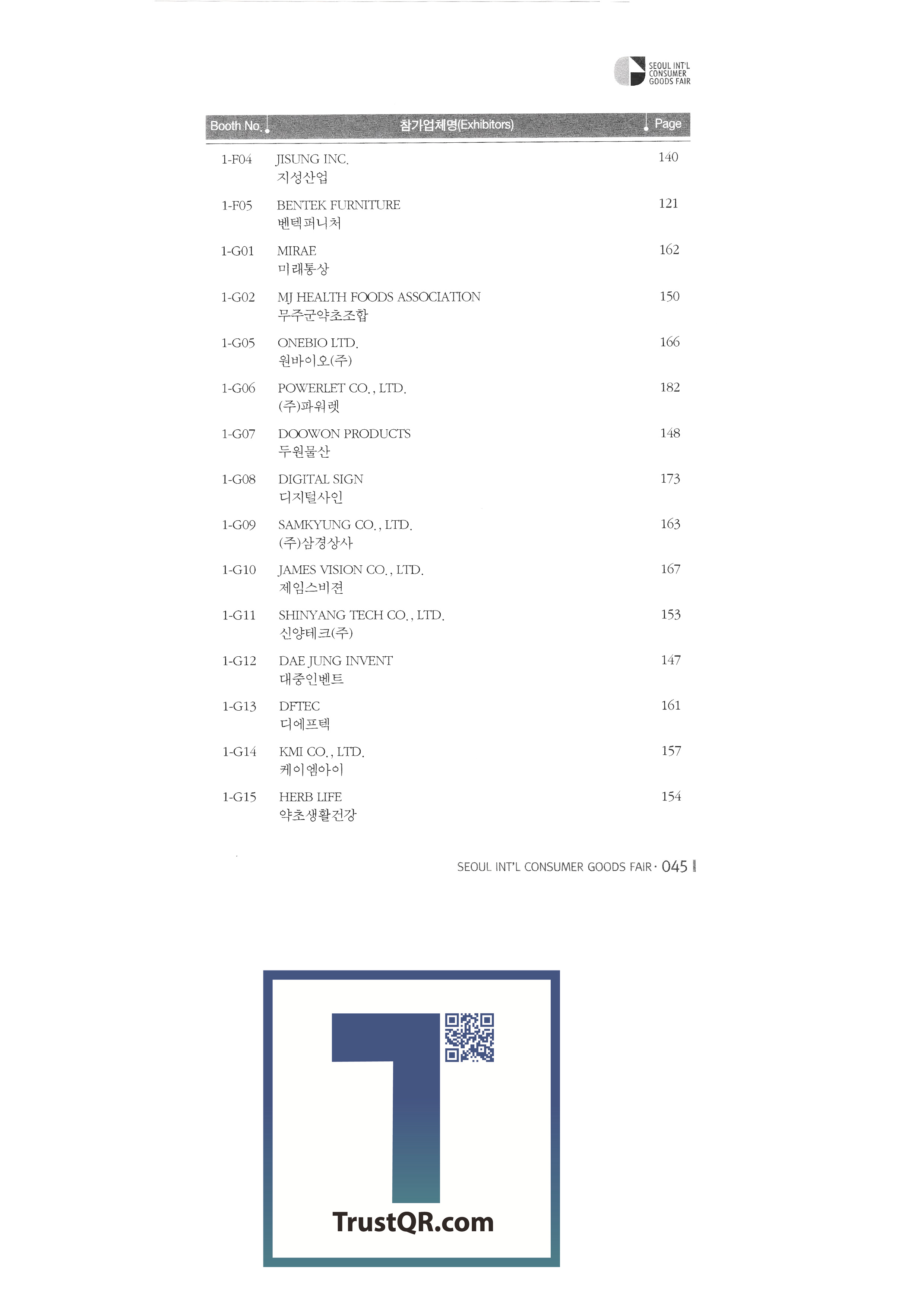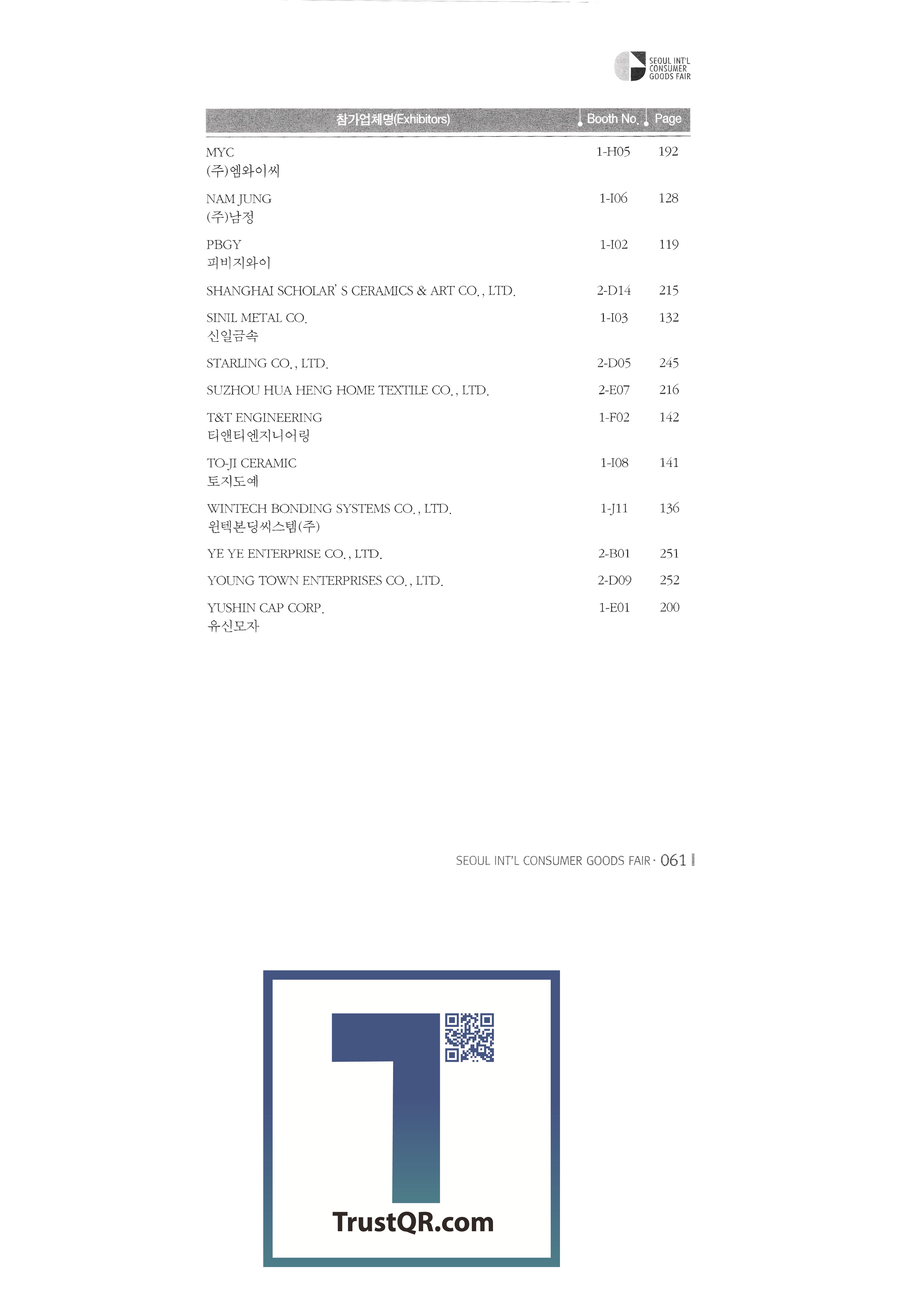 2005, International Consumer Goods Fair, Kyung & Yong Korea Kisan Electric Dongyang Trading Co., Ltd. Dongyang House McHan Industries Morning Sense Samyang Home Appliances |