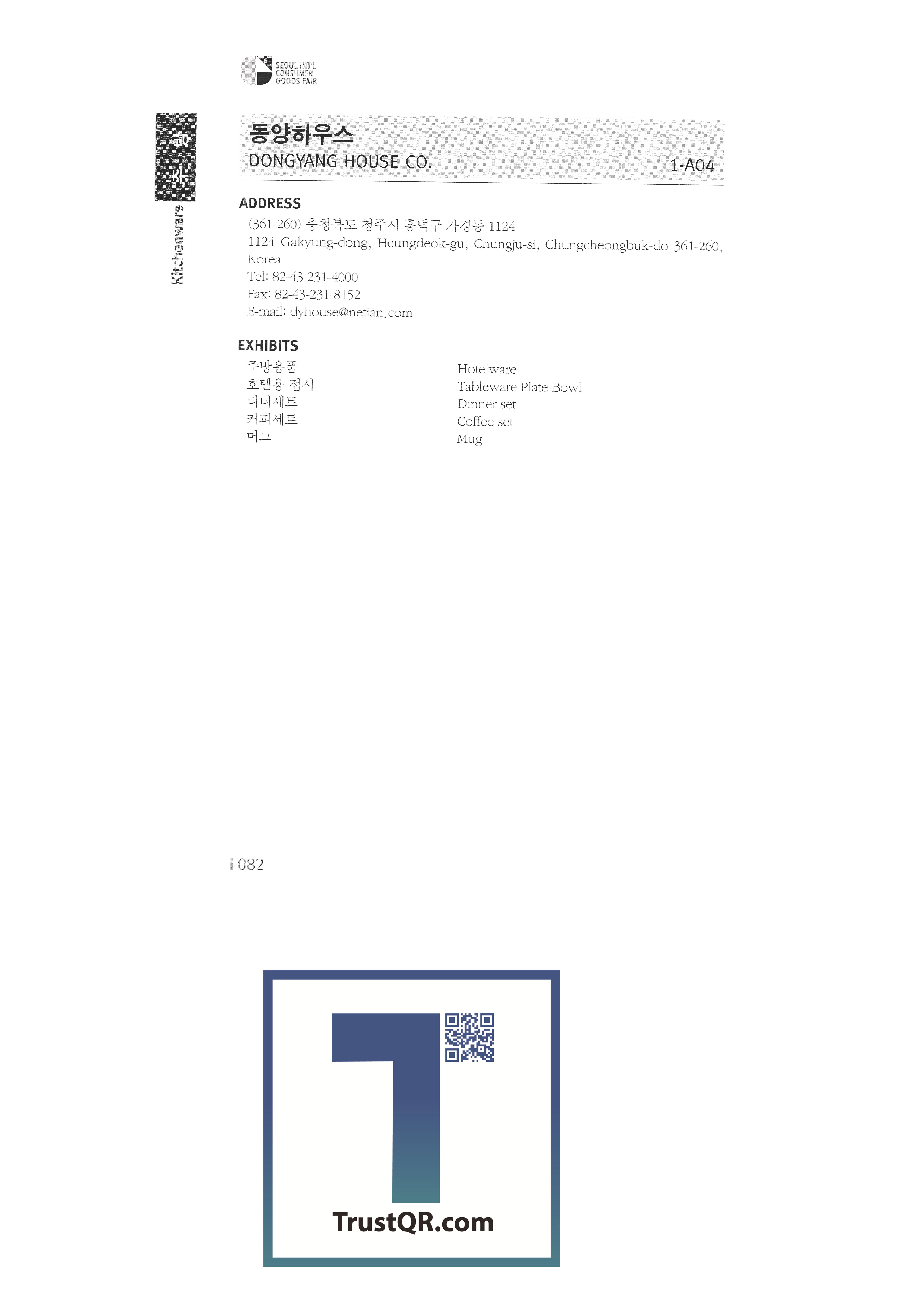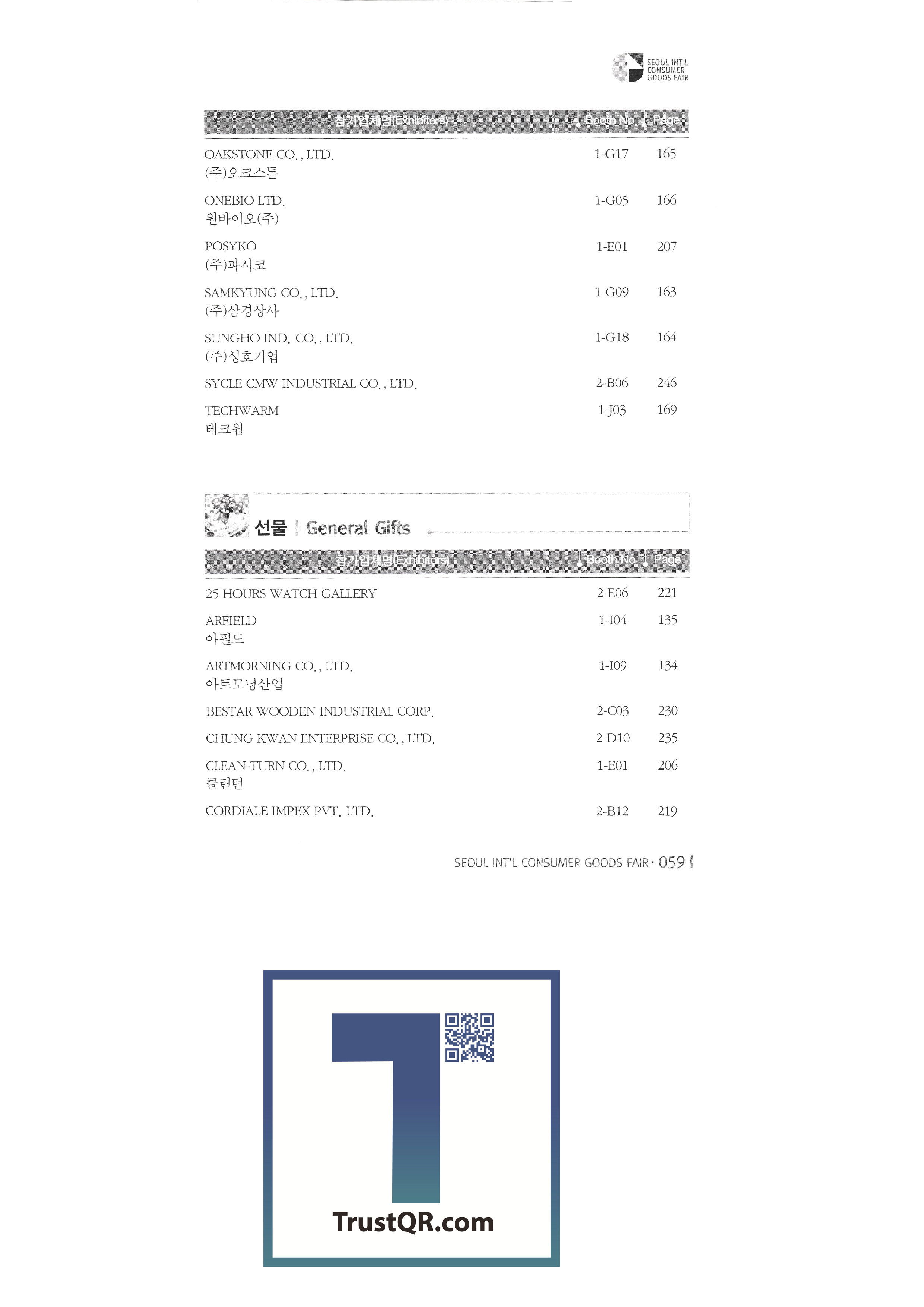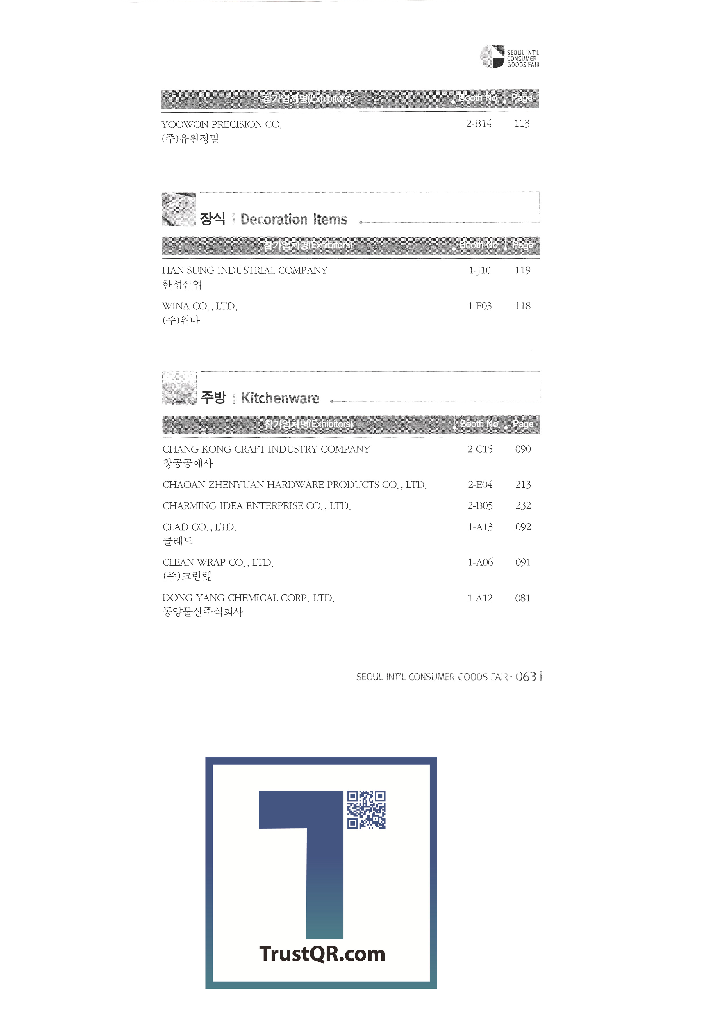 | ปี 2548 งานแสดงสินค้าอุปโภคบริโภคระหว่างประเทศ คยอง & ยงเกาหลี กิสานการไฟฟ้า Dongyang Trading Co. , Ltd. บ้าน Dongyang McHan Industries ความรู้สึกตอนเช้า เครื่องใช้ในบ้าน Samyang |