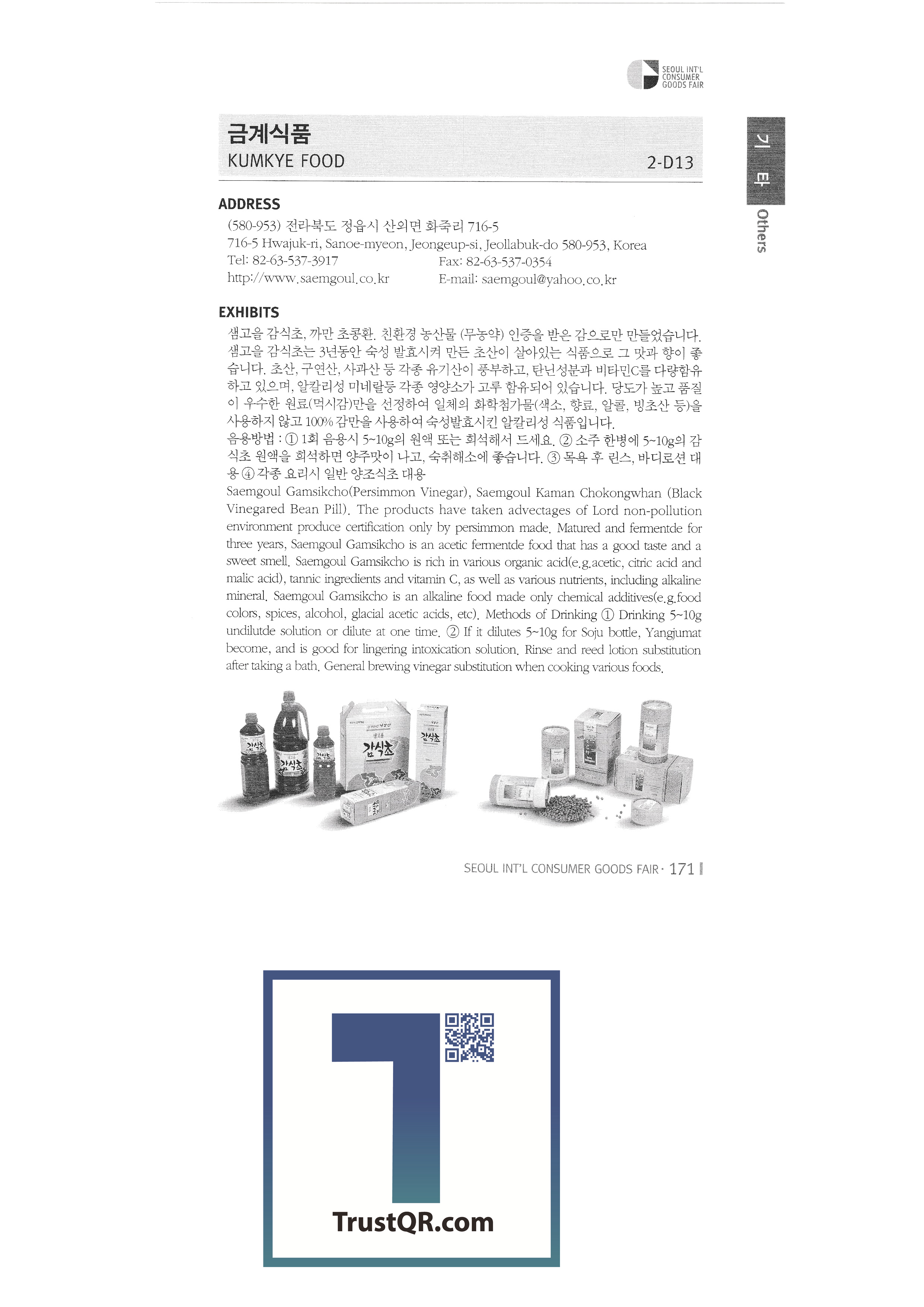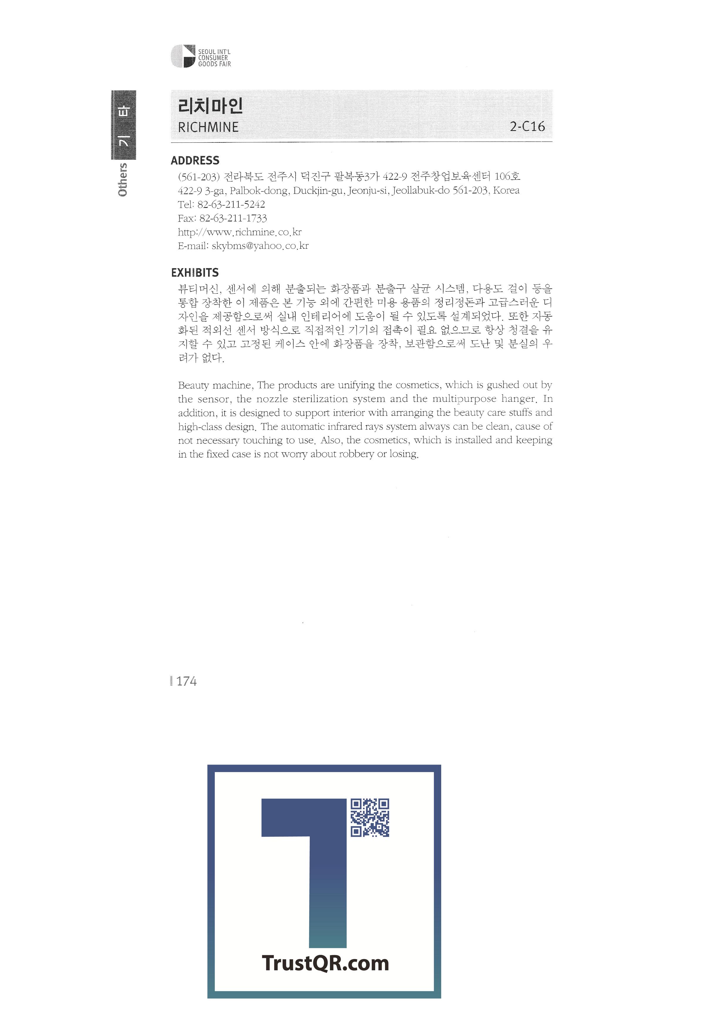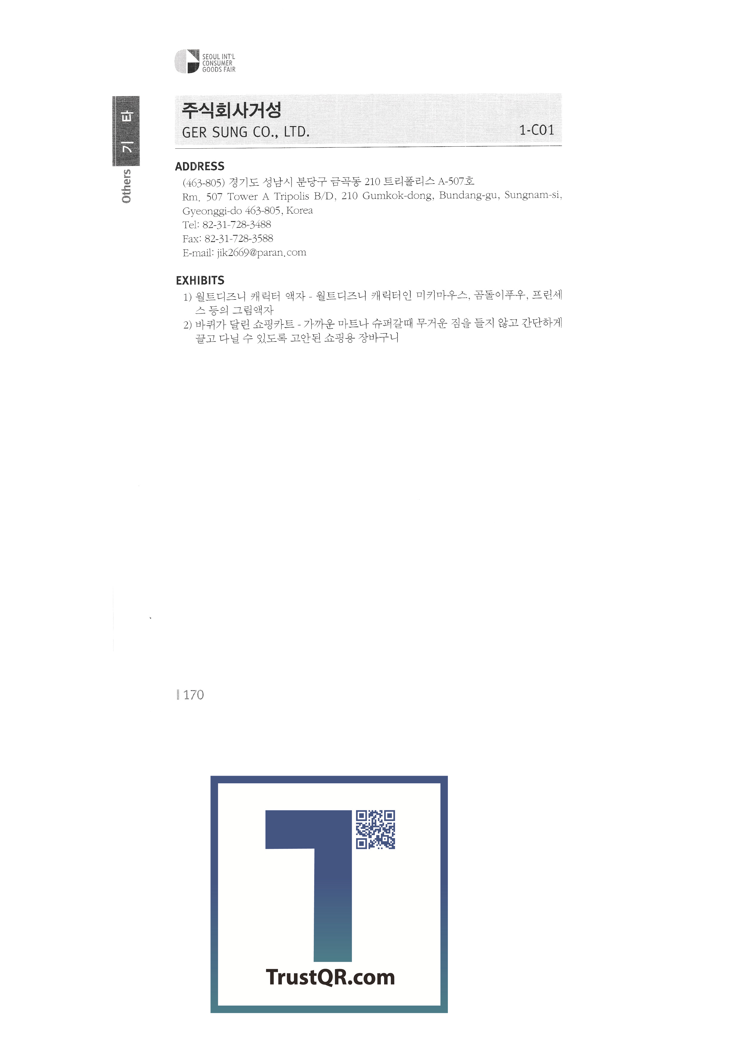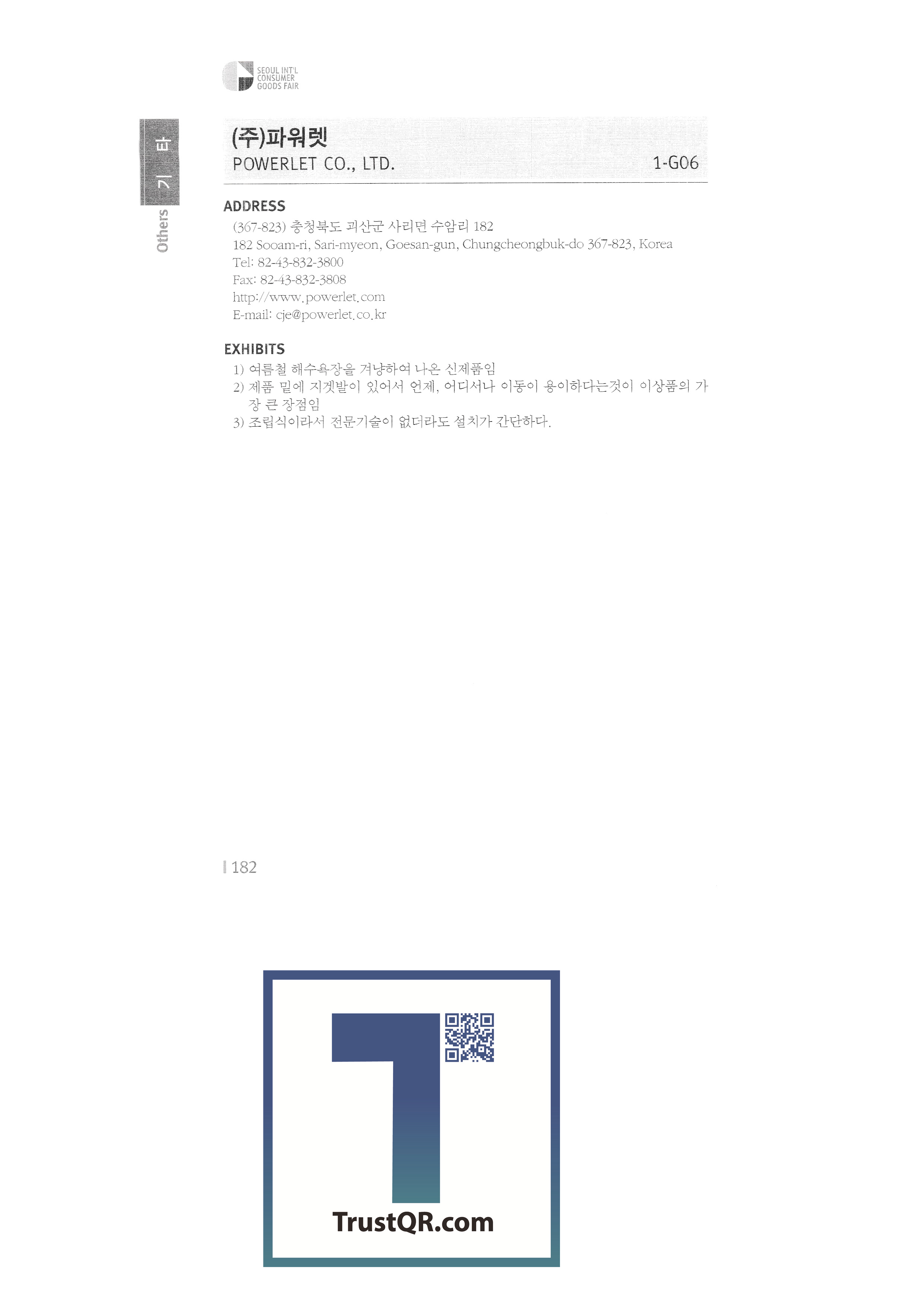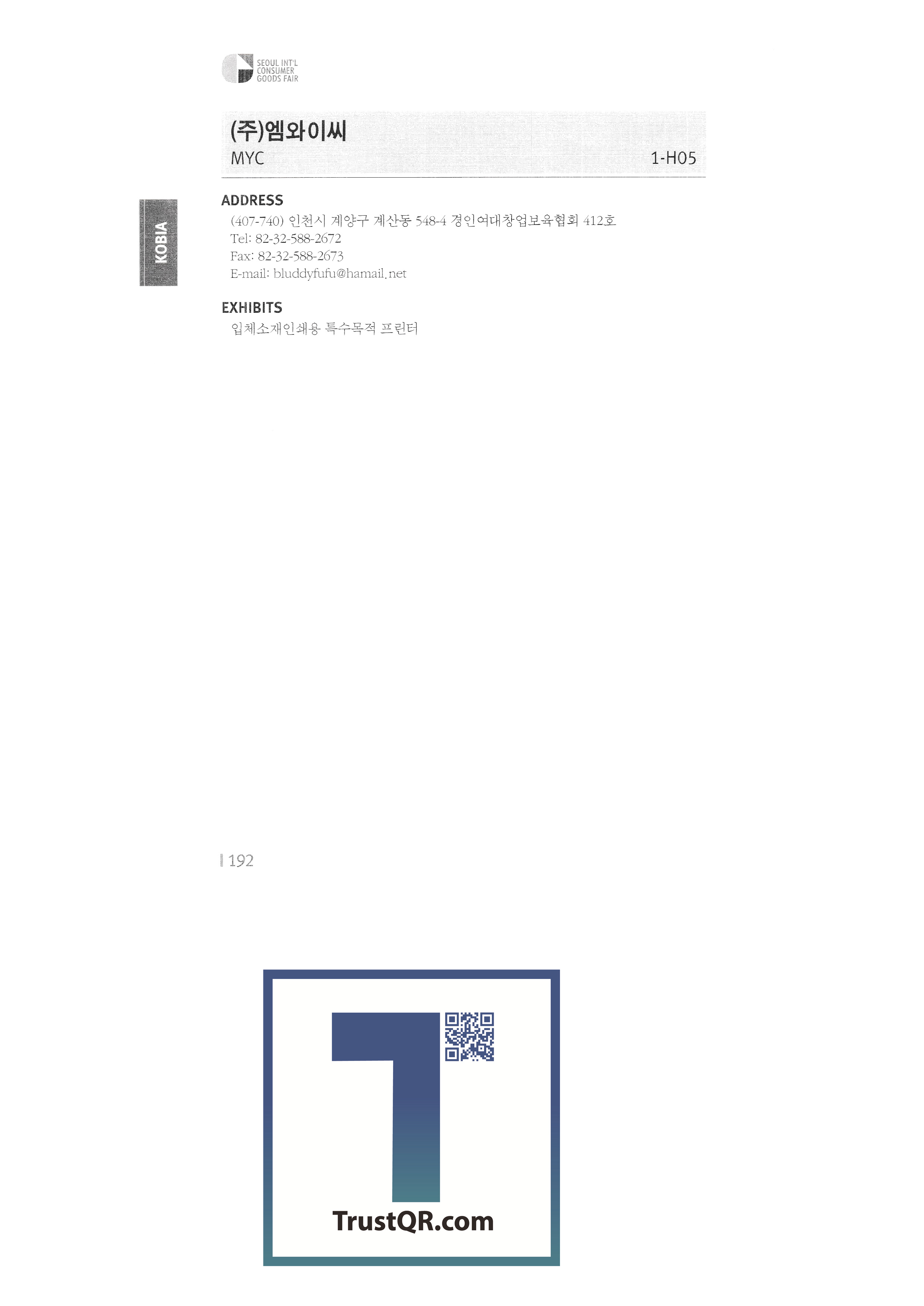 2005, International Consumer Goods Fair, Onebio Co., Ltd. James Vision KMG Co., Ltd. Tech Worm Geoseong Co., Ltd. Geumgye Food Doil Intech Digital sign Richmine Madangsoe Co., Ltd. Maekyung Bias Guide Samjung Clean Master Co., Ltd. Smit Industry A-Tech Co., Ltd. Euphoresis Co., Ltd. Zephyr Industry Co., Ltd. Powerlet Co., Ltd. Phil Aroma Hannaeum Co., Ltd. Hana Tools Co., Ltd. Korea Business Incubation Association Gaiamo Co., Ltd. Daishin Horticultural Corporation Mom Kid Craft Shinhwa BLOWER Sevio Co., Ltd. MWC Wanseok Engineering Woori Culture Wooyeon MS Korea Clean System Seoul Regional Small and Medium Business Administration Dowzone Farm Move Zone J Yushin Hat Yupyeong Technology Co., Ltd. Movens JC Tech Co., Ltd. Jinyang Medical Trade Charmsori Electronic Communication |