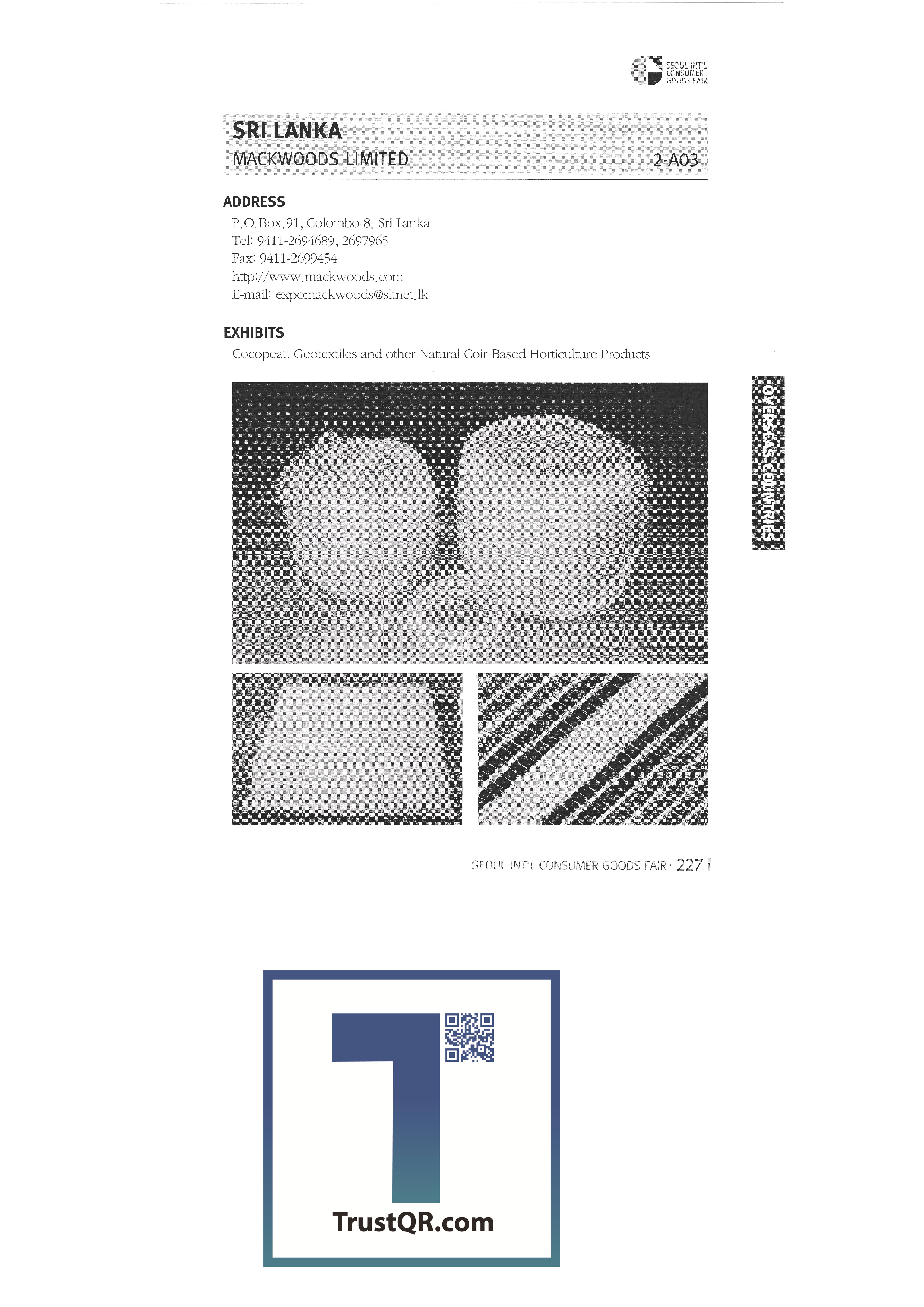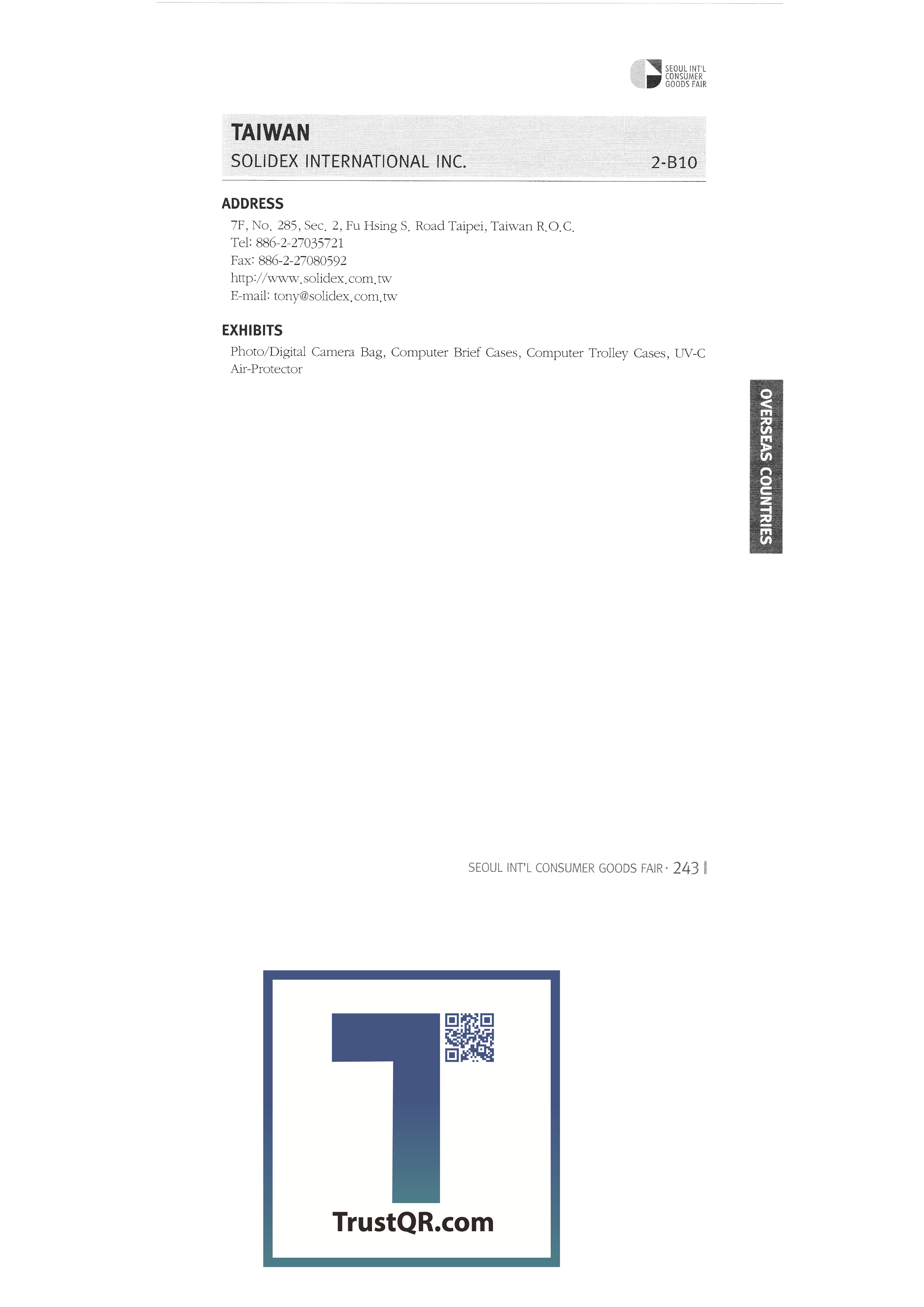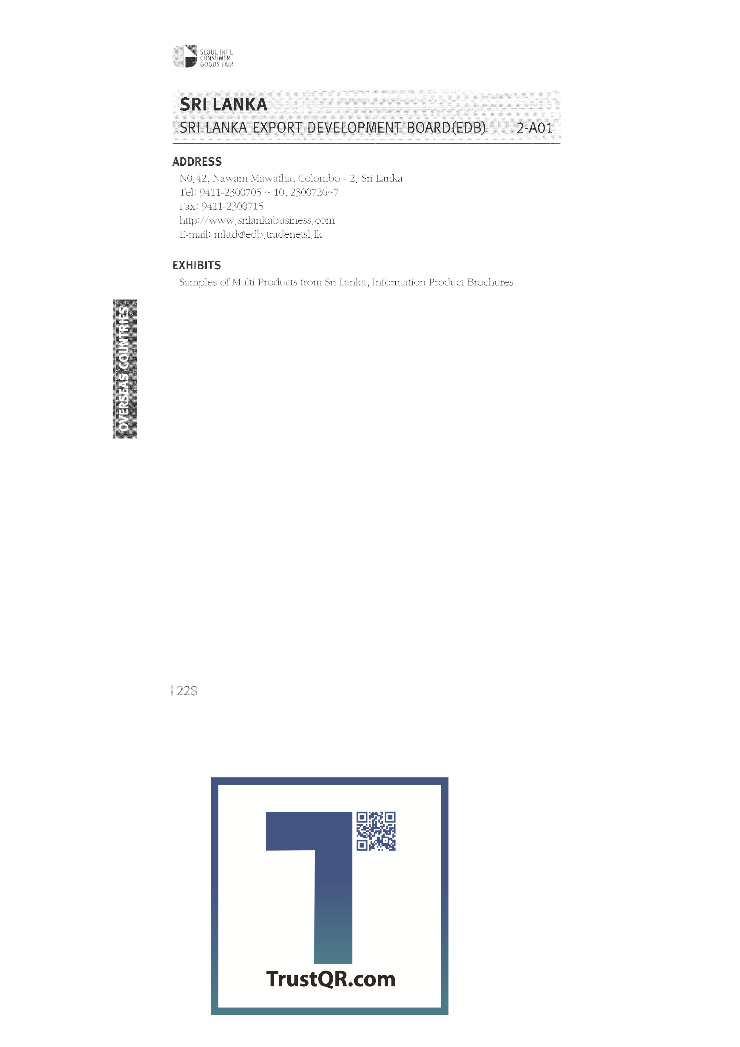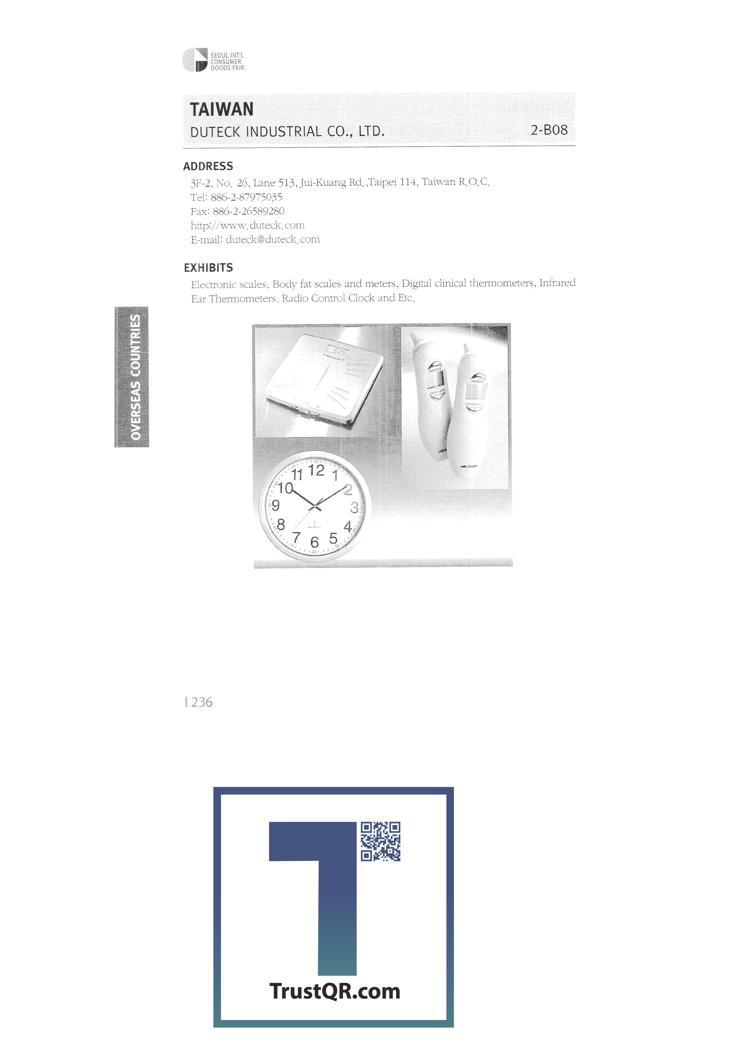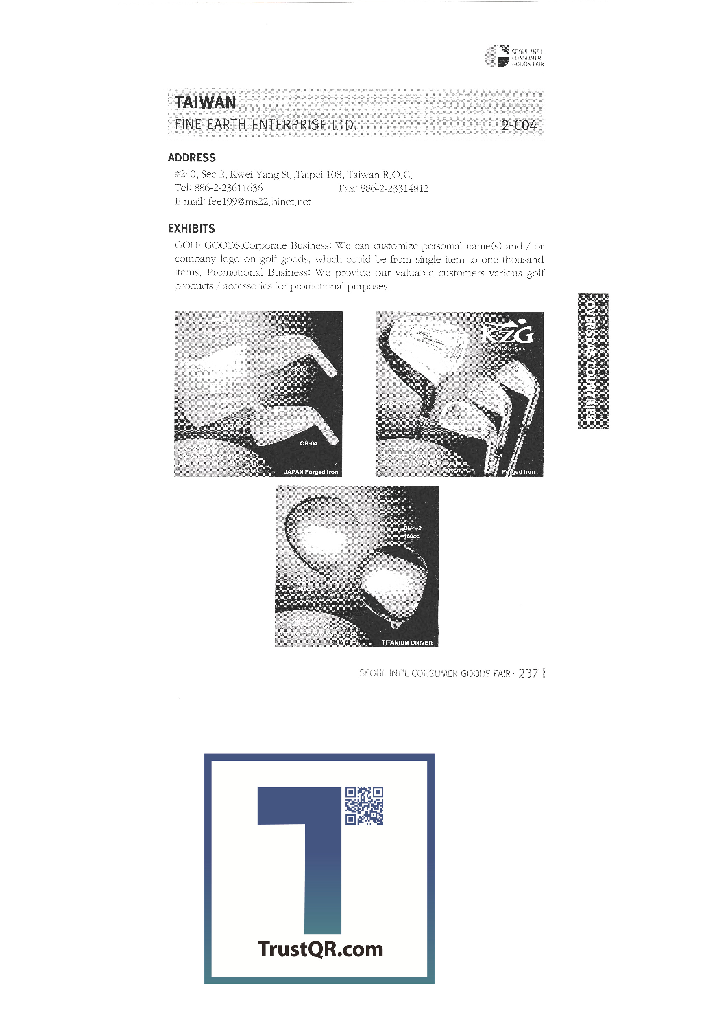 2005, International Consumer Goods Fair, Clinton Pacifico Co., Ltd. Herbal Medicine Village PROMED KOREA PTY.LTD. CHANGSHU LIBAO DECORATIVE MATERIAL CO.,LTD CHAOAN ZHENYUAN HARDWARE PRODUCTS CO.,LTD SELLERS UNION CO.,LTD SHANGIHAI SCHOLAR'S CERAMICS & ART CO., LTD SUZHOU HUA HENG HOME TEXTILE CO.,LTD XIAMEN TAIMAO UMBRELLA & DAILY EXPENSES PRODUCTS CO.,LTD RED STAR CERAMICS LIMITED CORDIALE IMPEX PVT.LTD HOYU INDUSTRY INC. 25 HOURS WATCH GALLERY SANSON HOUSWERE & KITCHENWARE PROJECTS CRYSTAL QUALITY EXPORTS GREEN WAY ASIA ENTERPRISES HEIM ENGINEERING HENRY BATIKS(PVT) LTD MACKWOODS LIMITED SRI LANKA EXPORT DEVELOPMENT BOARD(EDB) SUVIK EXPO(PVT) LTD BESTAR WOODEN INDUSTRIAL CORP BRIDGE ELITE INC CHARMING IDEA ENTERPRISE CO.,LTD CHIU KUANG HSING CO.,LTD CHUAN MEI HARDWARE INTERNATIONAL CO.,LTD CHUNG KWAN ENTERPRISE CO.,LTD DUTECK INDUSTRIAL CO.,LTD FINE EARTH ENTERPRISE LTD GOOD YARD ENTERPRISE CO.,LTD HNK INT'L CO.,LTD INLIR IND.CORP. NEW GREEN LIFE CORP SMOOTH SAILING INDUSTRY CO.,LTD SOLIDEX INTERNATIONAL INC. SOUNDER TAIWAN CORP STARLING CO.,LTD SYCLE CMW INDUSTRIAL CO.,LTD |