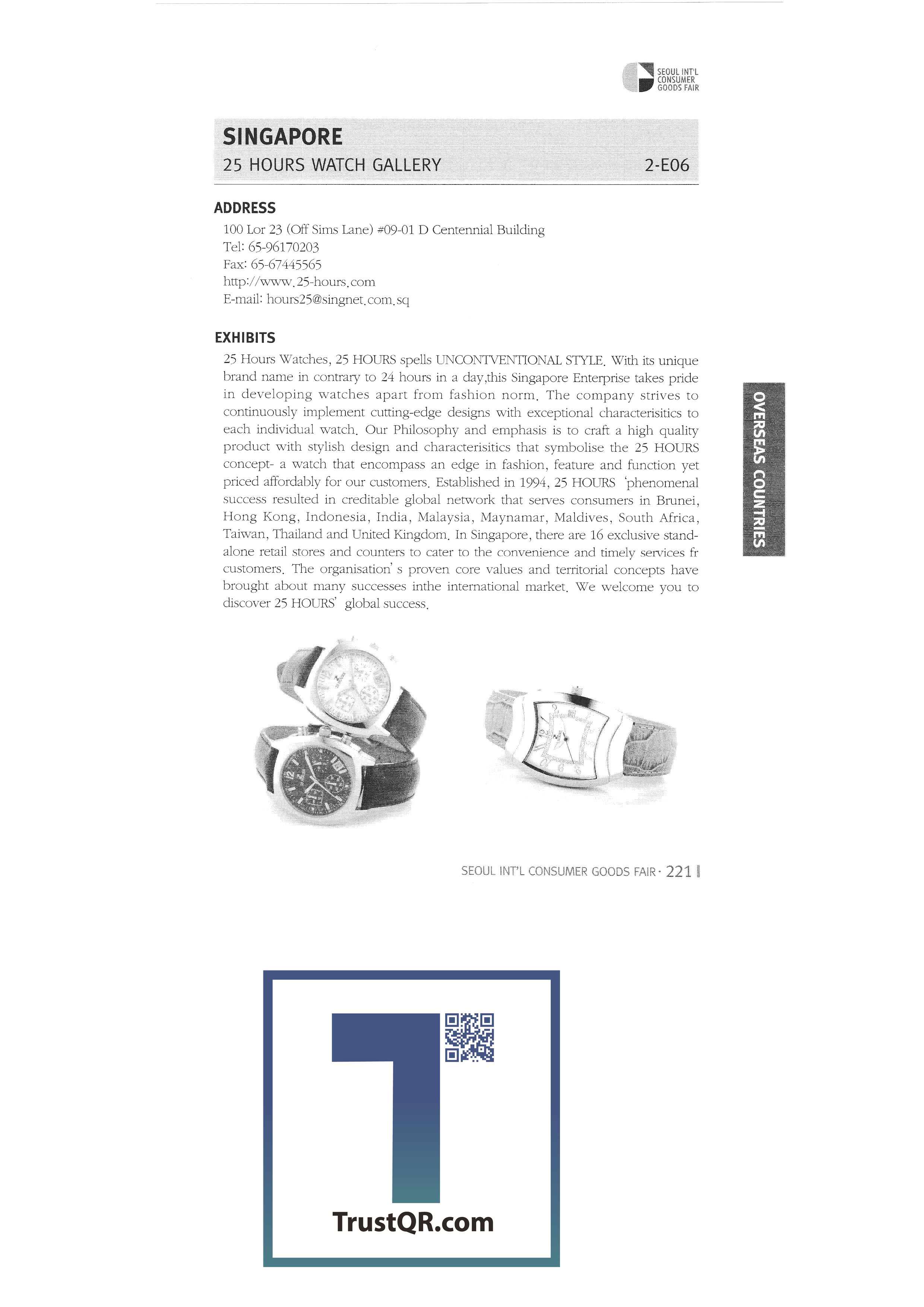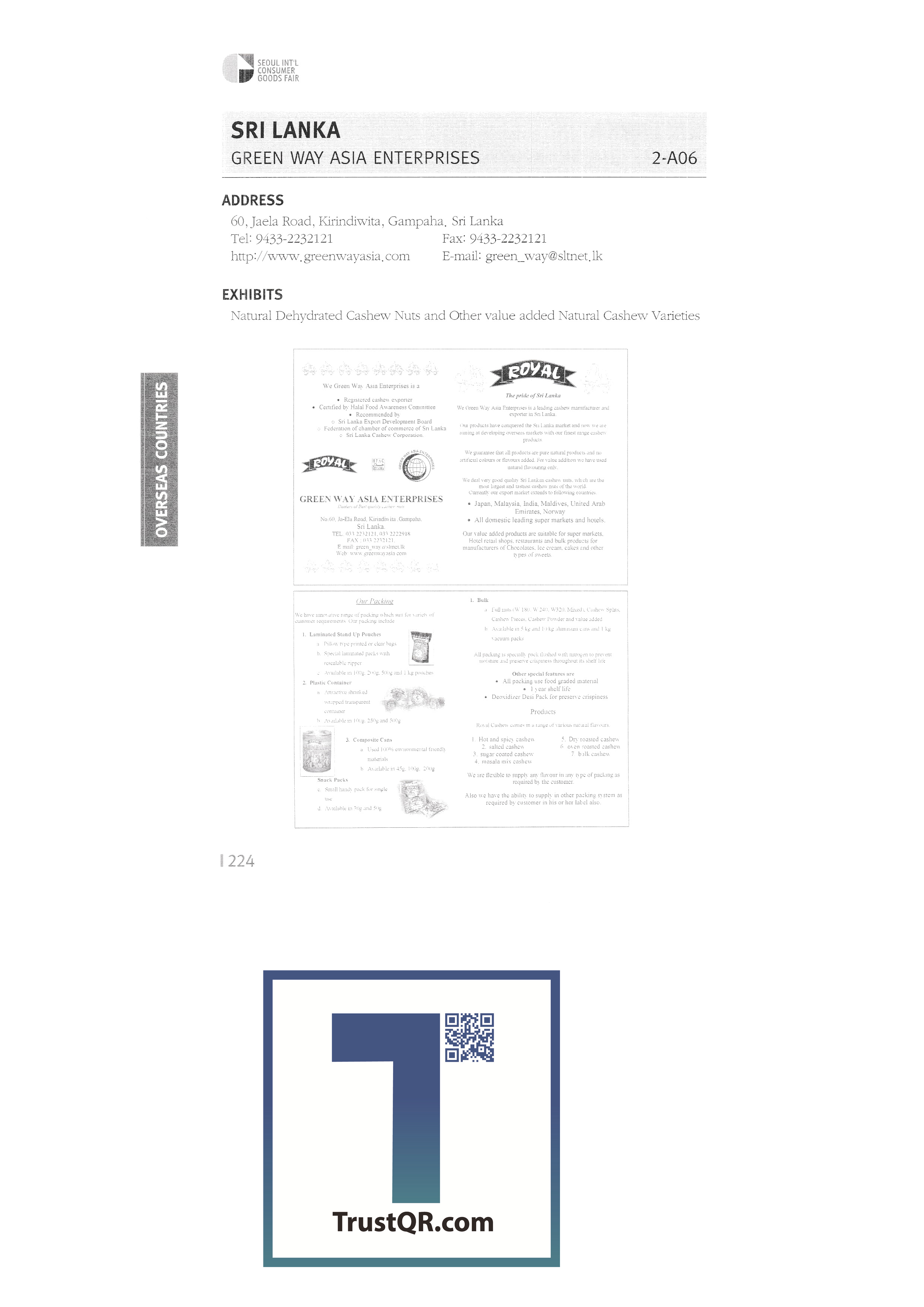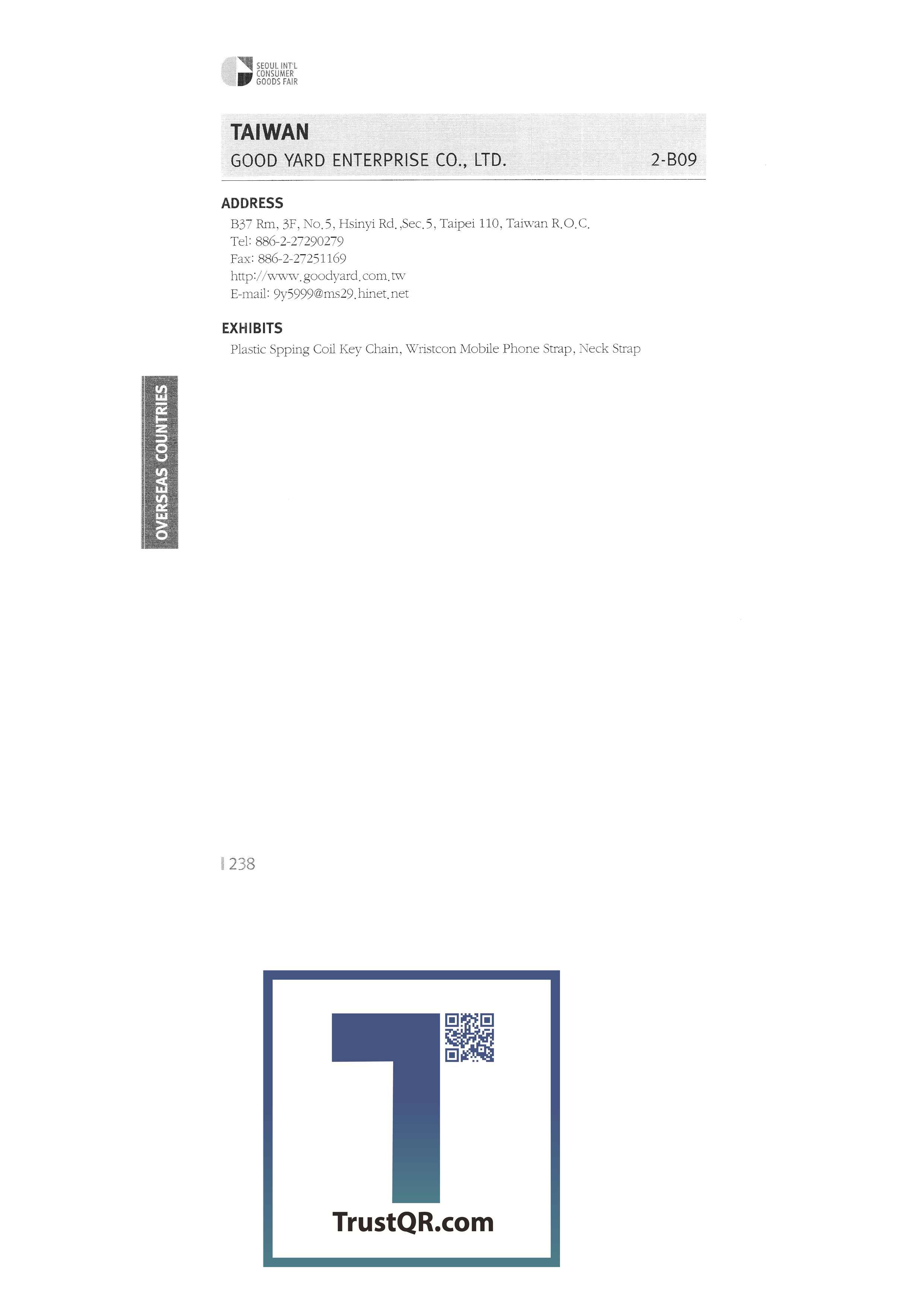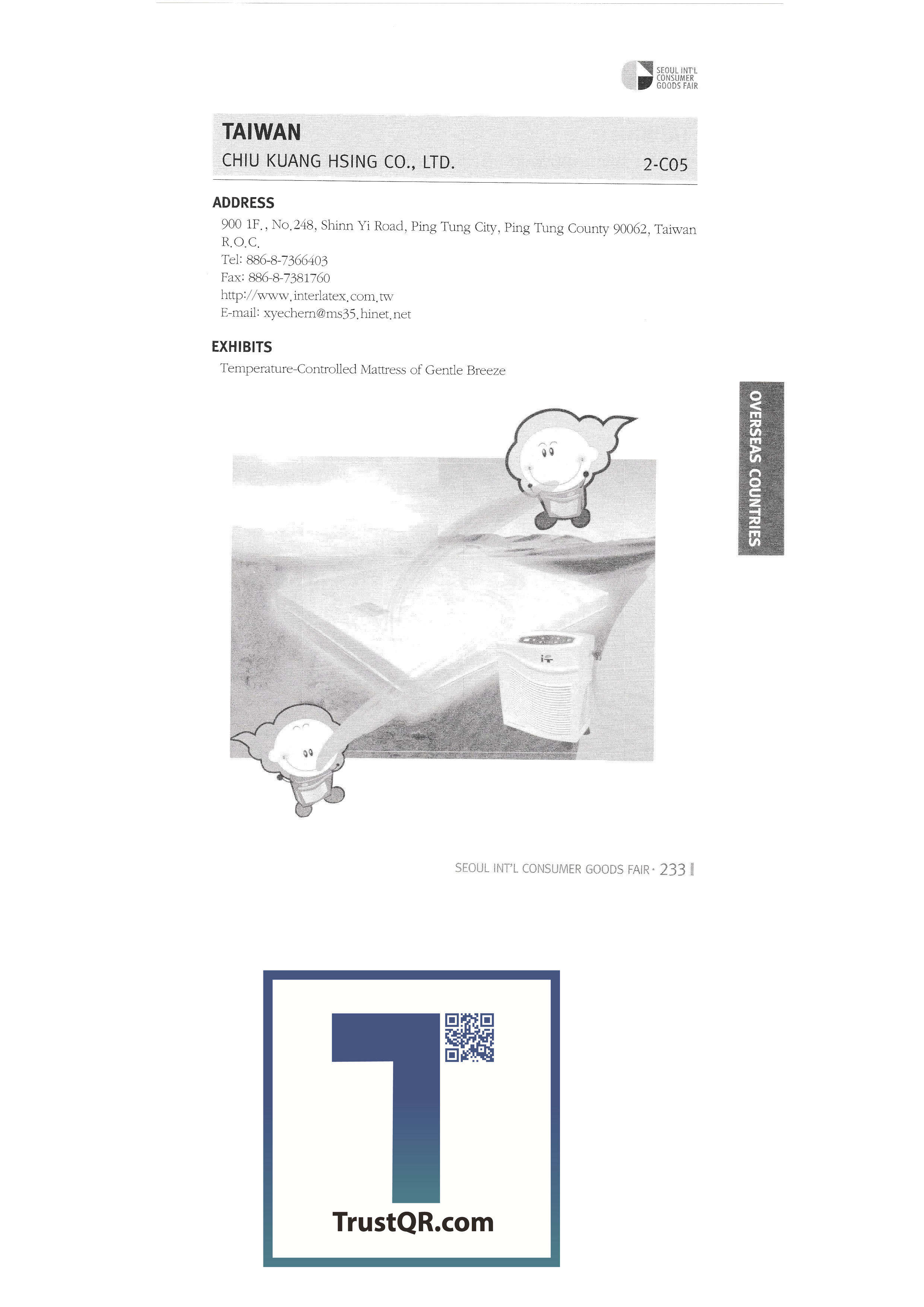 2005, International Consumer Goods Fair, Clinton Pacifico Co., Ltd. Herbal Medicine Village PROMED KOREA PTY.LTD. CHANGSHU LIBAO DECORATIVE MATERIAL CO.,LTD CHAOAN ZHENYUAN HARDWARE PRODUCTS CO.,LTD SELLERS UNION CO.,LTD SHANGIHAI SCHOLAR'S CERAMICS & ART CO., LTD SUZHOU HUA HENG HOME TEXTILE CO.,LTD XIAMEN TAIMAO UMBRELLA & DAILY EXPENSES PRODUCTS CO.,LTD RED STAR CERAMICS LIMITED CORDIALE IMPEX PVT.LTD HOYU INDUSTRY INC. 25 HOURS WATCH GALLERY SANSON HOUSWERE & KITCHENWARE PROJECTS CRYSTAL QUALITY EXPORTS GREEN WAY ASIA ENTERPRISES HEIM ENGINEERING HENRY BATIKS(PVT) LTD MACKWOODS LIMITED SRI LANKA EXPORT DEVELOPMENT BOARD(EDB) SUVIK EXPO(PVT) LTD BESTAR WOODEN INDUSTRIAL CORP BRIDGE ELITE INC CHARMING IDEA ENTERPRISE CO.,LTD CHIU KUANG HSING CO.,LTD CHUAN MEI HARDWARE INTERNATIONAL CO.,LTD CHUNG KWAN ENTERPRISE CO.,LTD DUTECK INDUSTRIAL CO.,LTD FINE EARTH ENTERPRISE LTD GOOD YARD ENTERPRISE CO.,LTD HNK INT'L CO.,LTD INLIR IND.CORP. NEW GREEN LIFE CORP SMOOTH SAILING INDUSTRY CO.,LTD SOLIDEX INTERNATIONAL INC. SOUNDER TAIWAN CORP STARLING CO.,LTD SYCLE CMW INDUSTRIAL CO.,LTD |