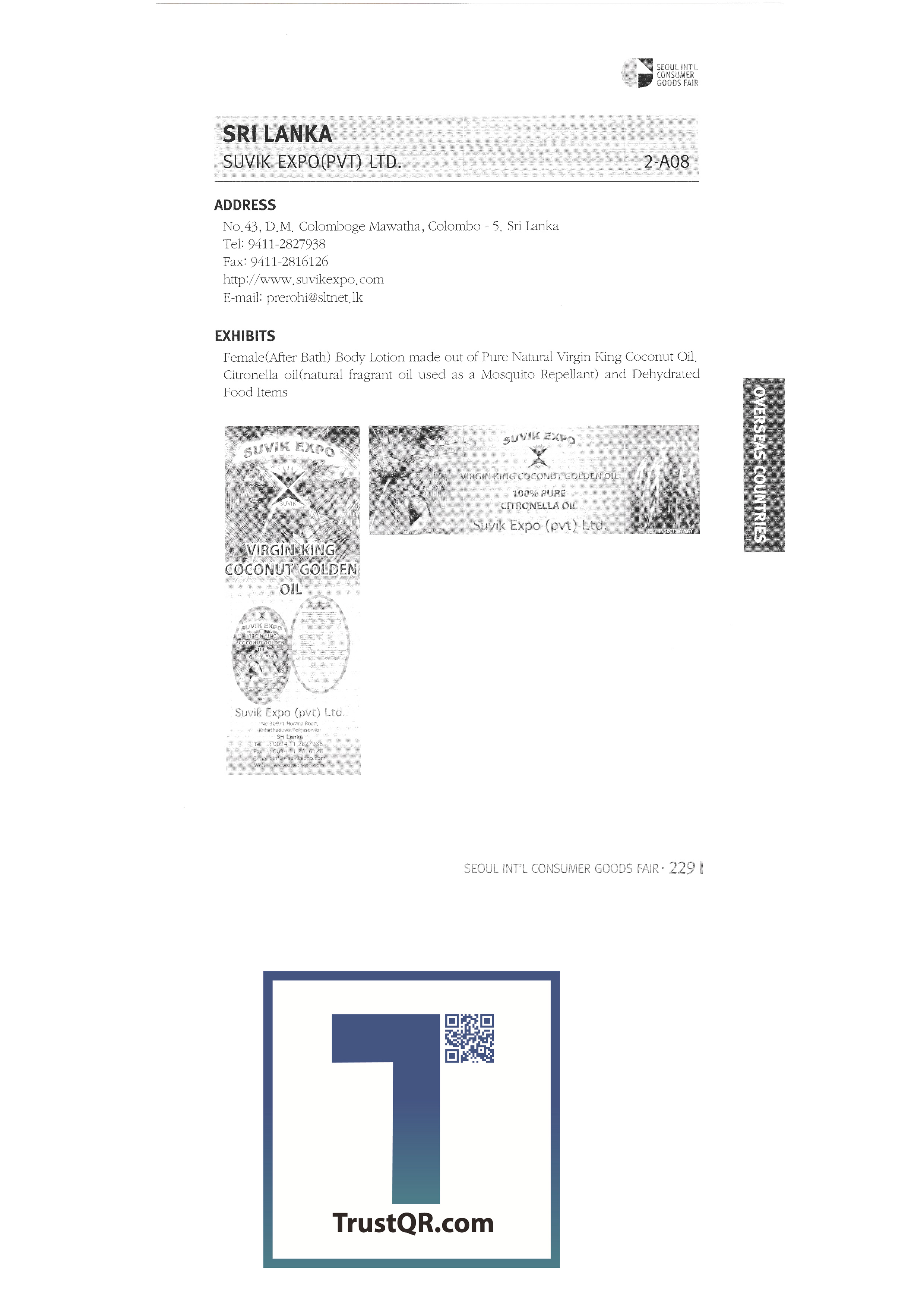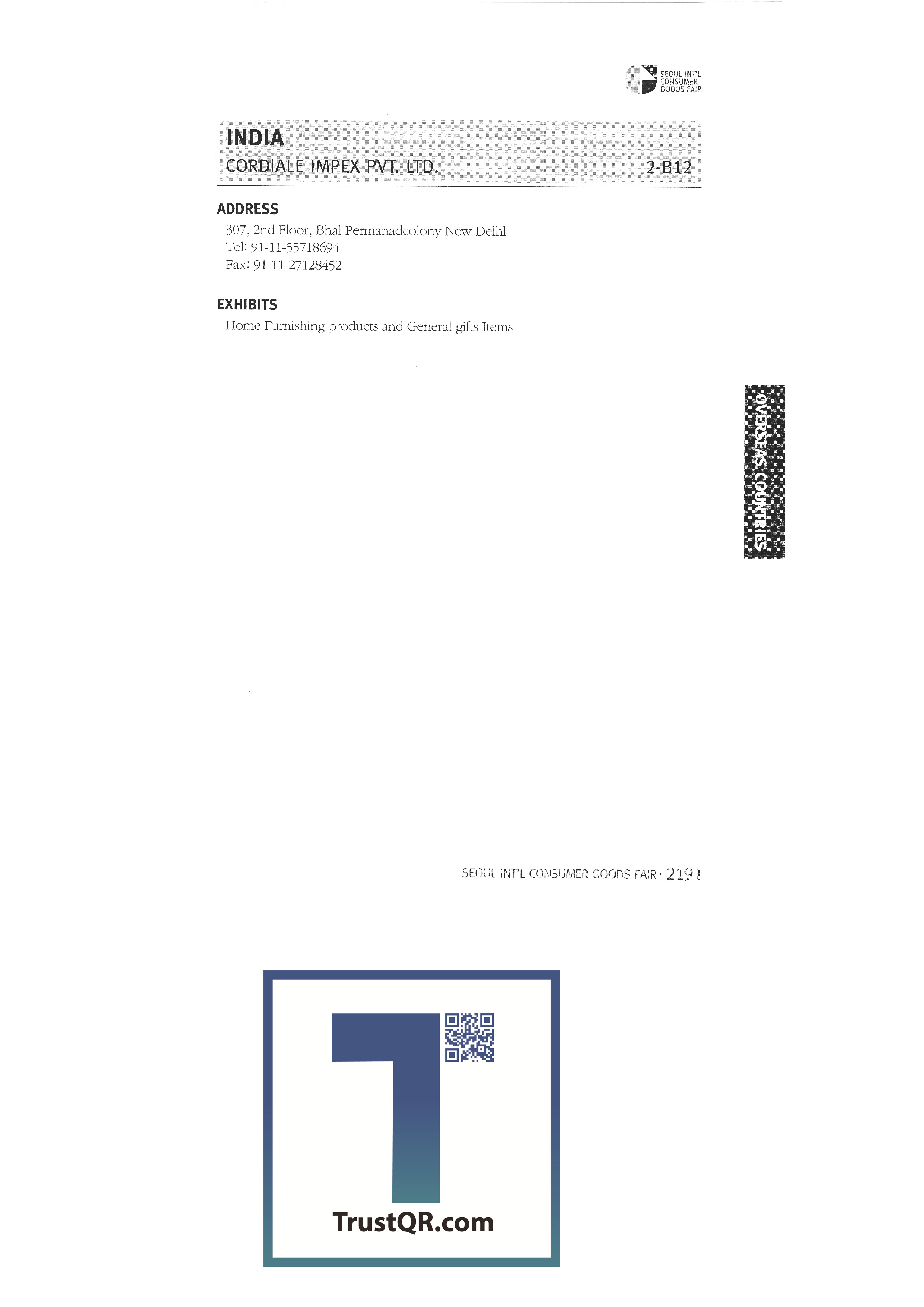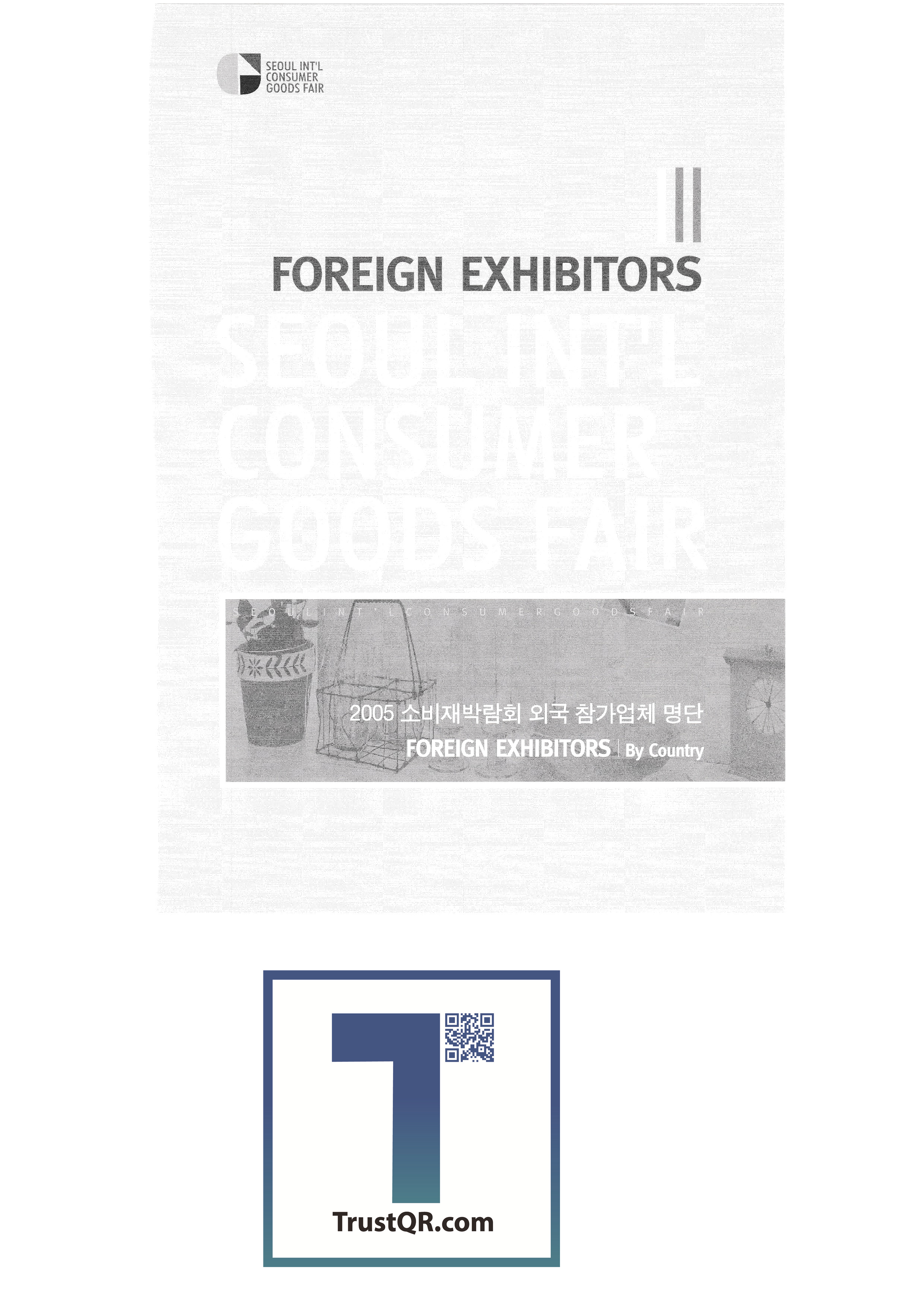 2005, 국제 소비재 박람회, 클린턴 ㈜파시코 ㈜한약마을 PROMED KOREA PTY.LTD. CHANGSHU LIBAO DECORATIVE MATERIAL CO.,LTD CHAOAN ZHENYUAN HARDWARE PRODUCTS CO.,LTD SELLERS UNION CO.,LTD SHANGIHAI SCHOLAR'S CERAMICS & ART CO., LTD SUZHOU HUA HENG HOME TEXTILE CO.,LTD XIAMEN TAIMAO UMBRELLA & DAILY EXPENSES PRODUCTS CO.,LTD RED STAR CERAMICS LIMITED CORDIALE IMPEX PVT.LTD HOYU INDUSTRY INC. 25 HOURS WATCH GALLERY SANSON HOUSWERE & KITCHENWARE PROJECTS CRYSTAL QUALITY EXPORTS GREEN WAY ASIA ENTERPRISES HEIM ENGINEERING HENRY BATIKS(PVT) LTD MACKWOODS LIMITED SRI LANKA EXPORT DEVELOPMENT BOARD(EDB) SUVIK EXPO(PVT) LTD BESTAR WOODEN INDUSTRIAL CORP BRIDGE ELITE INC CHARMING IDEA ENTERPRISE CO.,LTD CHIU KUANG HSING CO.,LTD CHUAN MEI HARDWARE INTERNATIONAL CO.,LTD CHUNG KWAN ENTERPRISE CO.,LTD DUTECK INDUSTRIAL CO.,LTD FINE EARTH ENTERPRISE LTD GOOD YARD ENTERPRISE CO.,LTD HNK INT'L CO.,LTD INLIR IND.CORP. NEW GREEN LIFE CORP SMOOTH SAILING INDUSTRY CO.,LTD SOLIDEX INTERNATIONAL INC. SOUNDER TAIWAN CORP STARLING CO.,LTD SYCLE CMW INDUSTRIAL CO.,LTD |