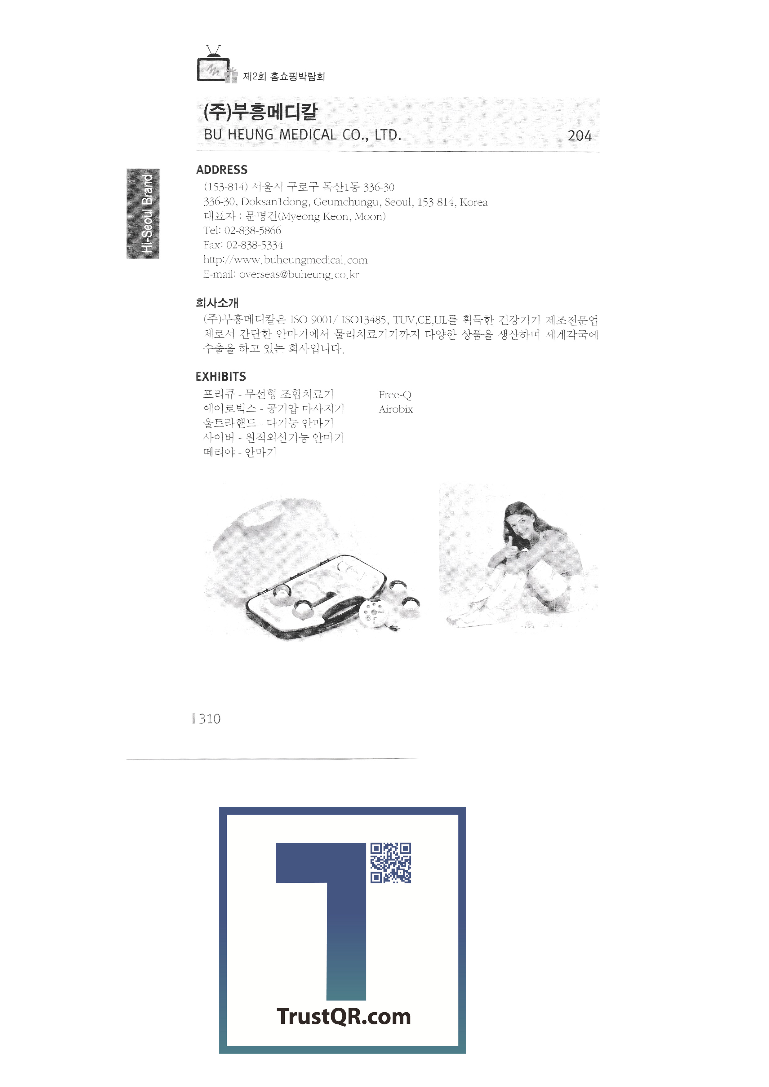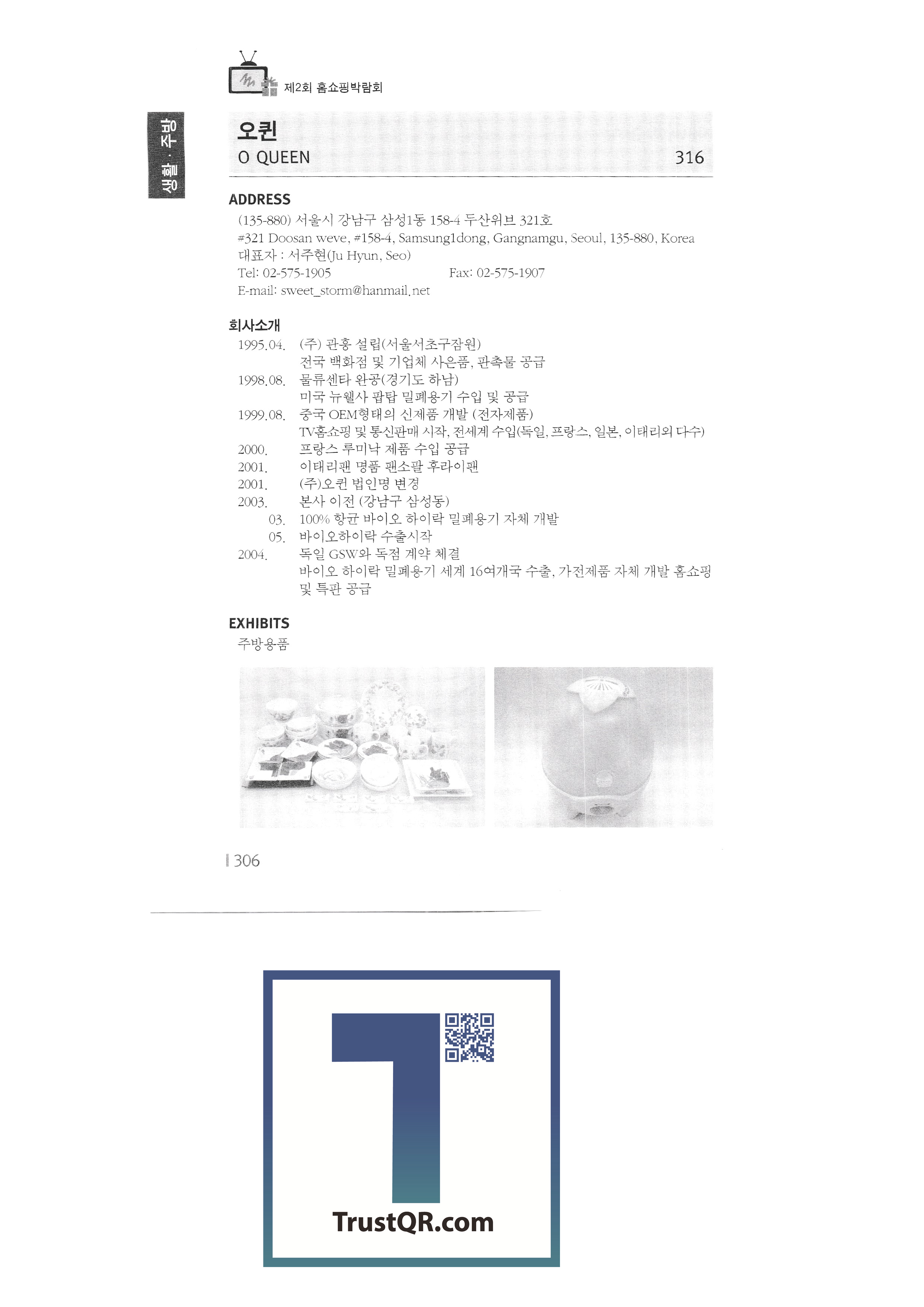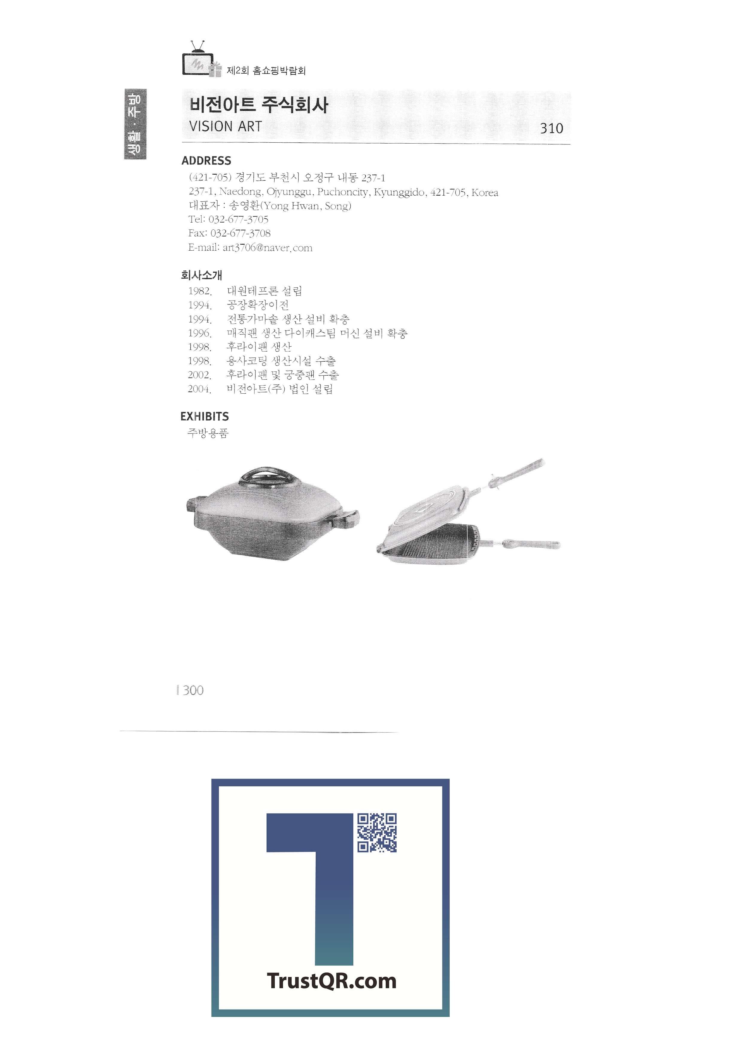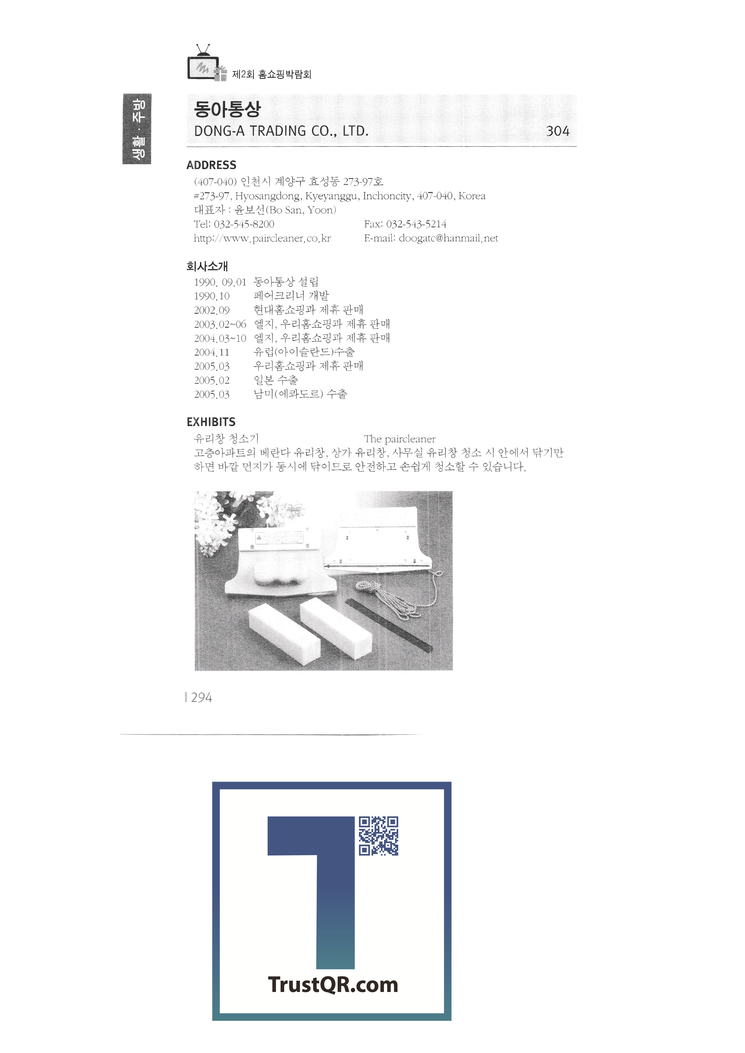 2005, International Consumer Goods Fair, MD Korea Dazzle Co., Ltd. Woori Foods Meerworld J&C Hyunjin Gardening Dong-A Trading Manu Crystal Neo & Neo Seokyung Tech Jungwoo C&C Myeongmoon LC Vision Art Co., Ltd. Perfect Neck Need MDPro Doa Dream Janus Airfall Corporation O'Queen Sungbu Trading Co., Ltd. Aintech information K.I.C.A Booheung Medical Co., Ltd. Coas Zenic Hanil World Co., Ltd. Bunix Inc. Day System Co., Ltd. Jeju High-Tech Industry Promotion Agency Aran Jeju Love Jeju Dawon Farming Association Corporation |