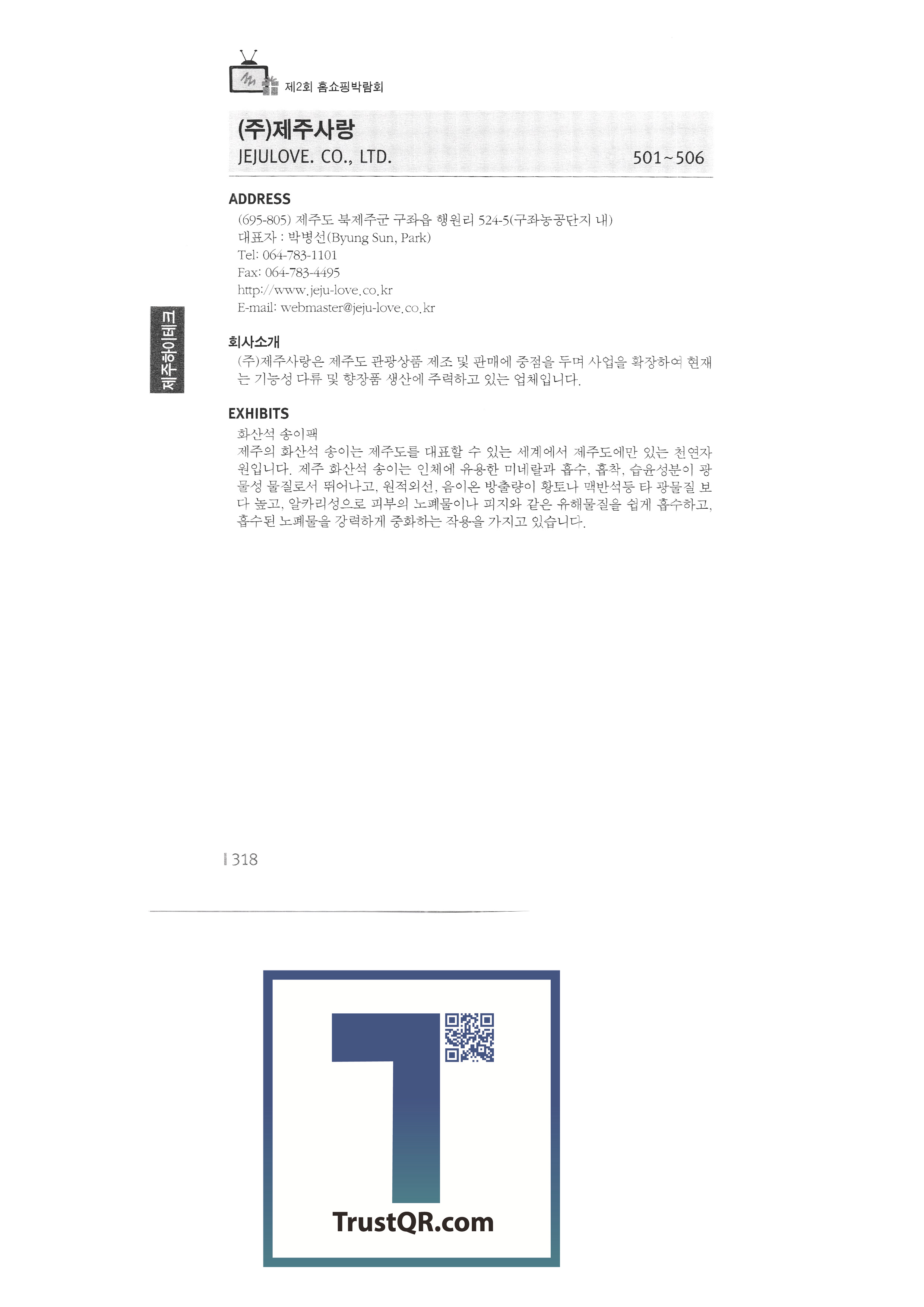 | ปี 2548 งานแสดงสินค้าอุปโภคบริโภคระหว่างประเทศ เอ็ม. ดี. เกาหลี บจก. แดซเซิล Woori Foods เมียร์เวิร์ล เจแอนด์ซี การทำสวนฮยอนจิน ดงอาเทรดดิ้ง แมนยูคริสตัล นีโอแอนด์นีโอ ซอคยองเทค จองอู C&C Myeongmoon LC วิชั่นอาร์ตบจก. ต้องการคอที่สมบูรณ์แบบ MDPro Doa Dream เจนัส บริษัท Airfall โอควีน Sungbu Trading Co. , Ltd. ข้อมูล Aintech เค Booheung Medical Co. , Ltd. Coas Zenic Hanil World Co. , Ltd. Bunix Inc. บจก. เดย์ซิสเต็ม สำนักงานส่งเสริมอุตสาหกรรมไฮเทคของเชจู อรัญ เชจูรัก เชจู Dawon Farming Association Corporation |