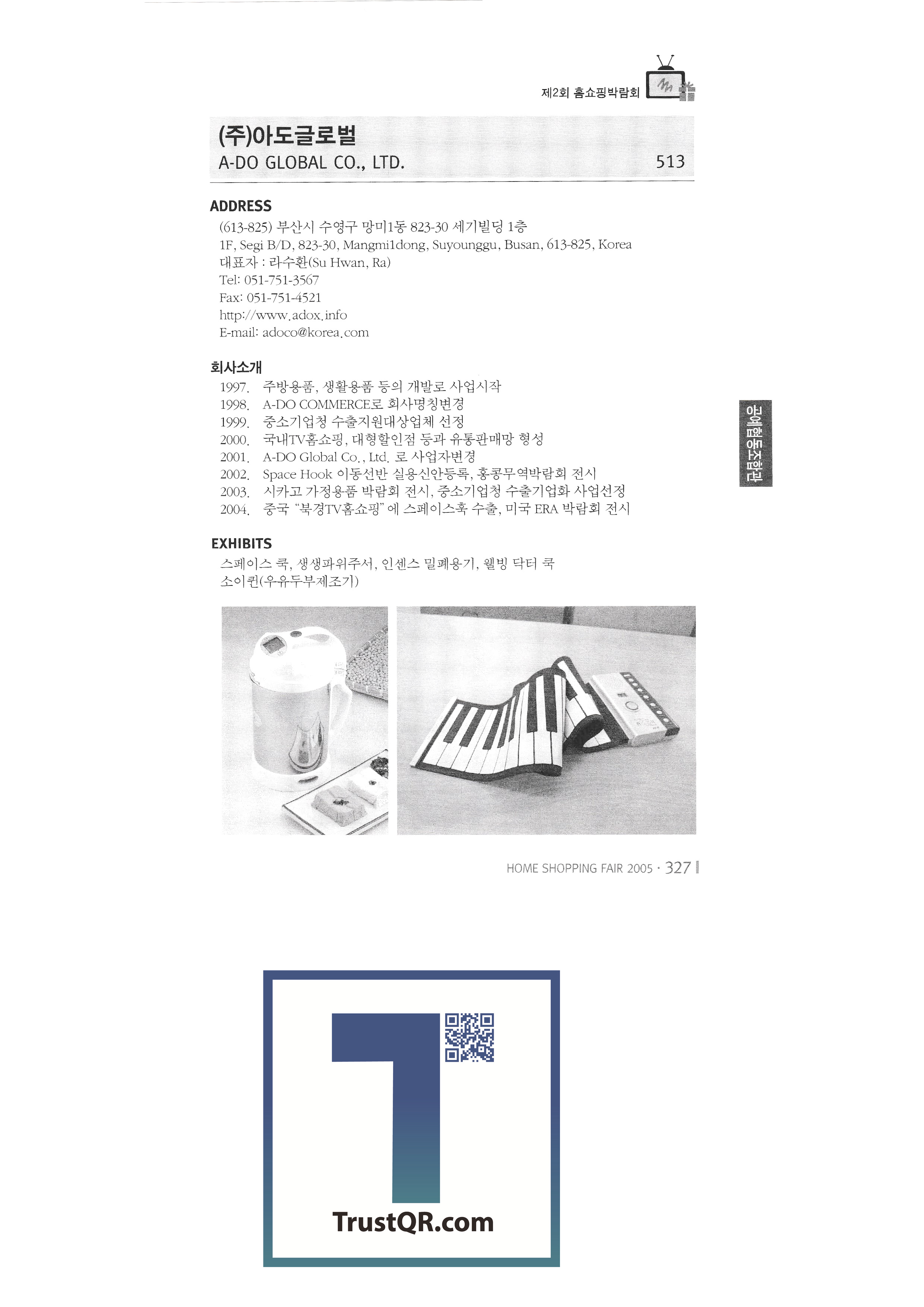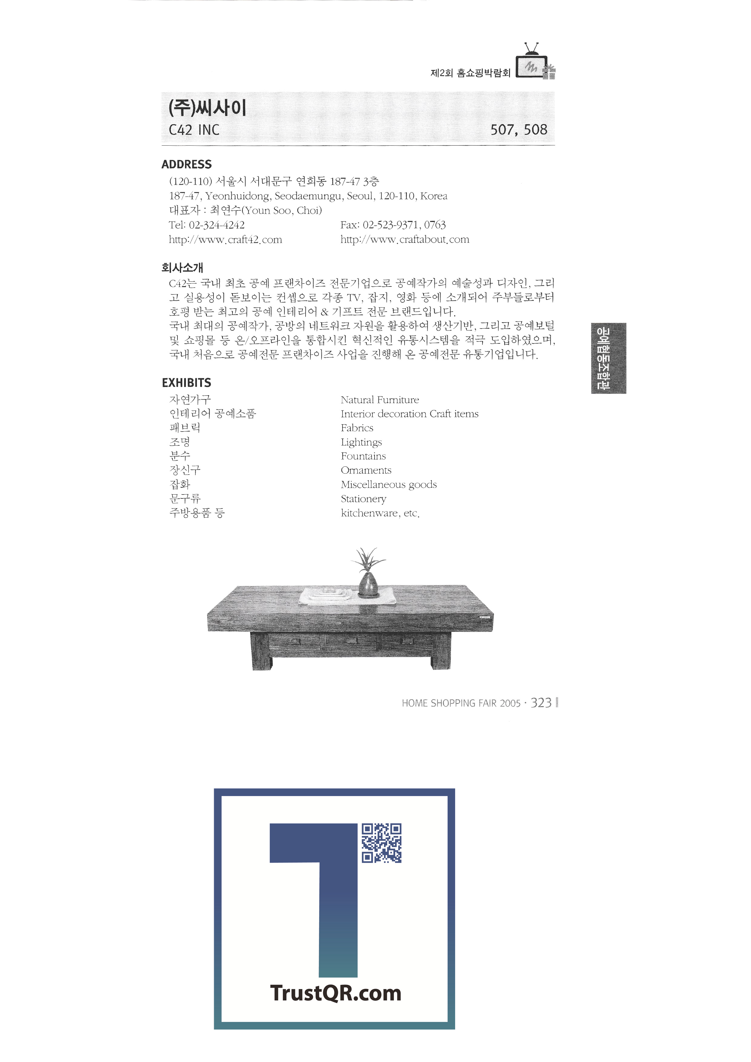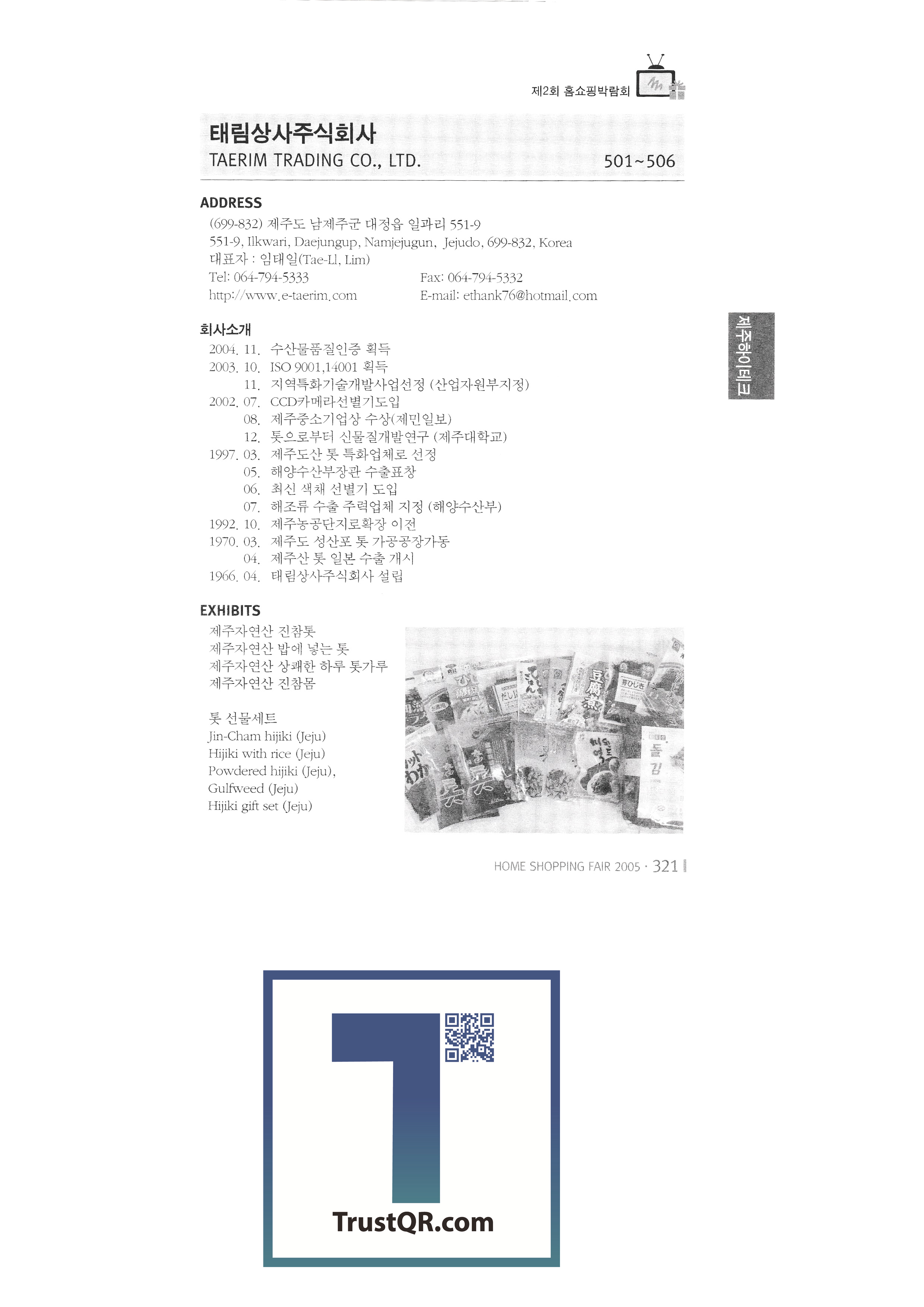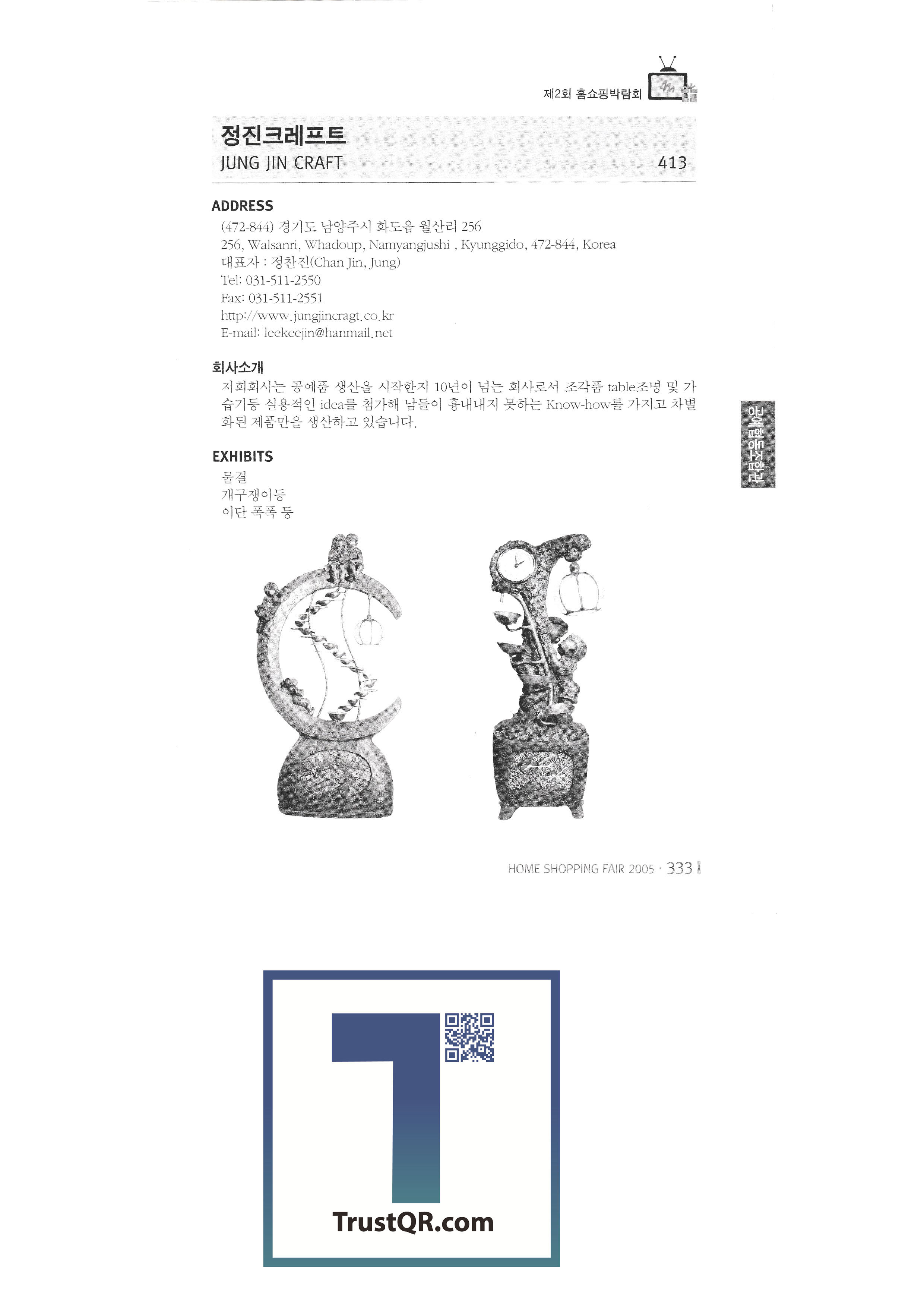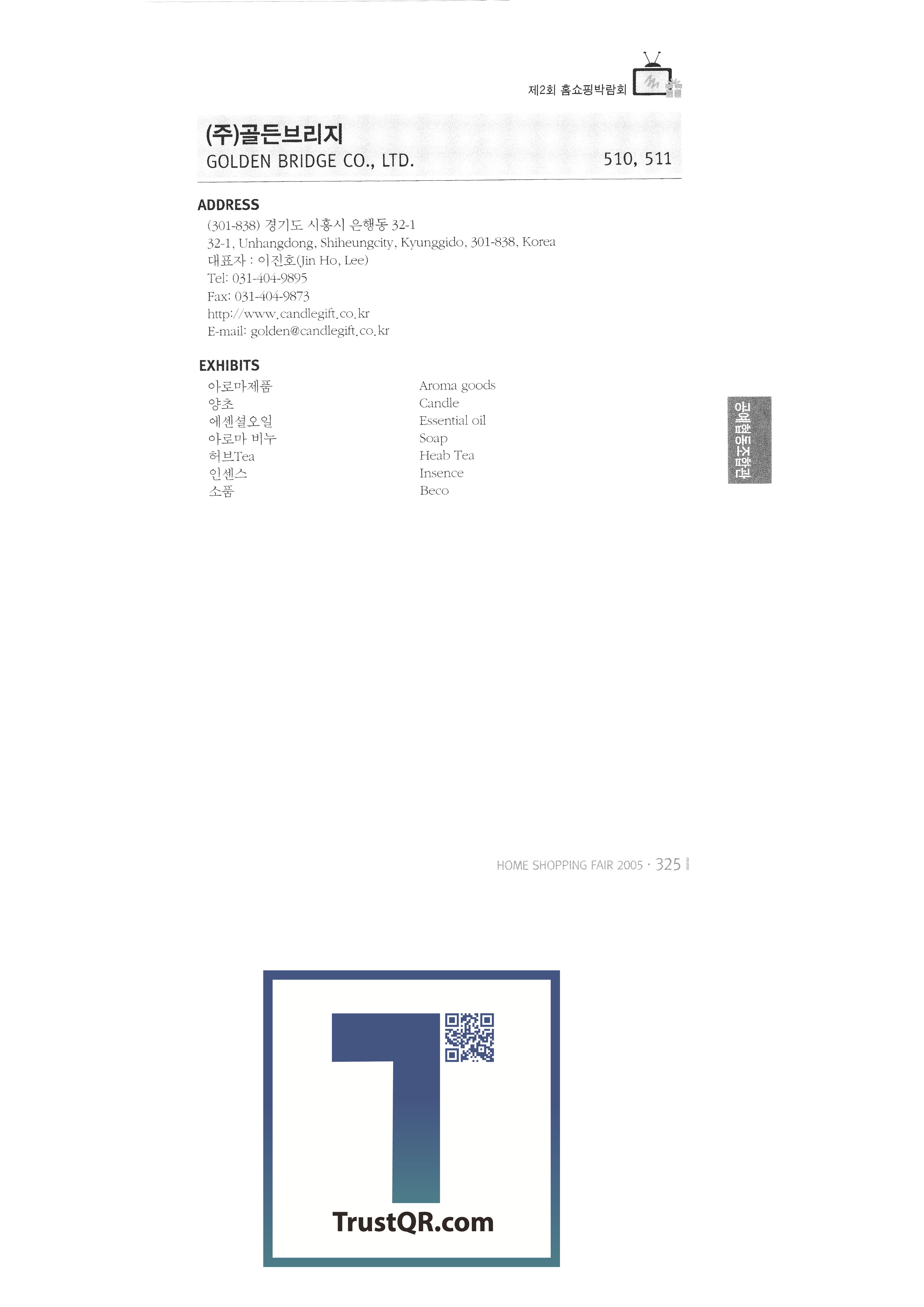 2005, International Consumer Goods Fair, Tamna Vegetable Village Farming Association Taelim Trading Co., Ltd. Jeju Noksanjang Farming Association Corporation Csai Co., Ltd. Jisung New Technology Co., Ltd. Golden Bridge Co., Ltd. NIT Ado Global Co., Ltd. Bloomings Advanced Engineering Research Institute Cami silver clay craft Chunha General Co., Ltd. Skytech International Co., Ltd. Jeongjin Craft 2005 Seoul Gift Show |