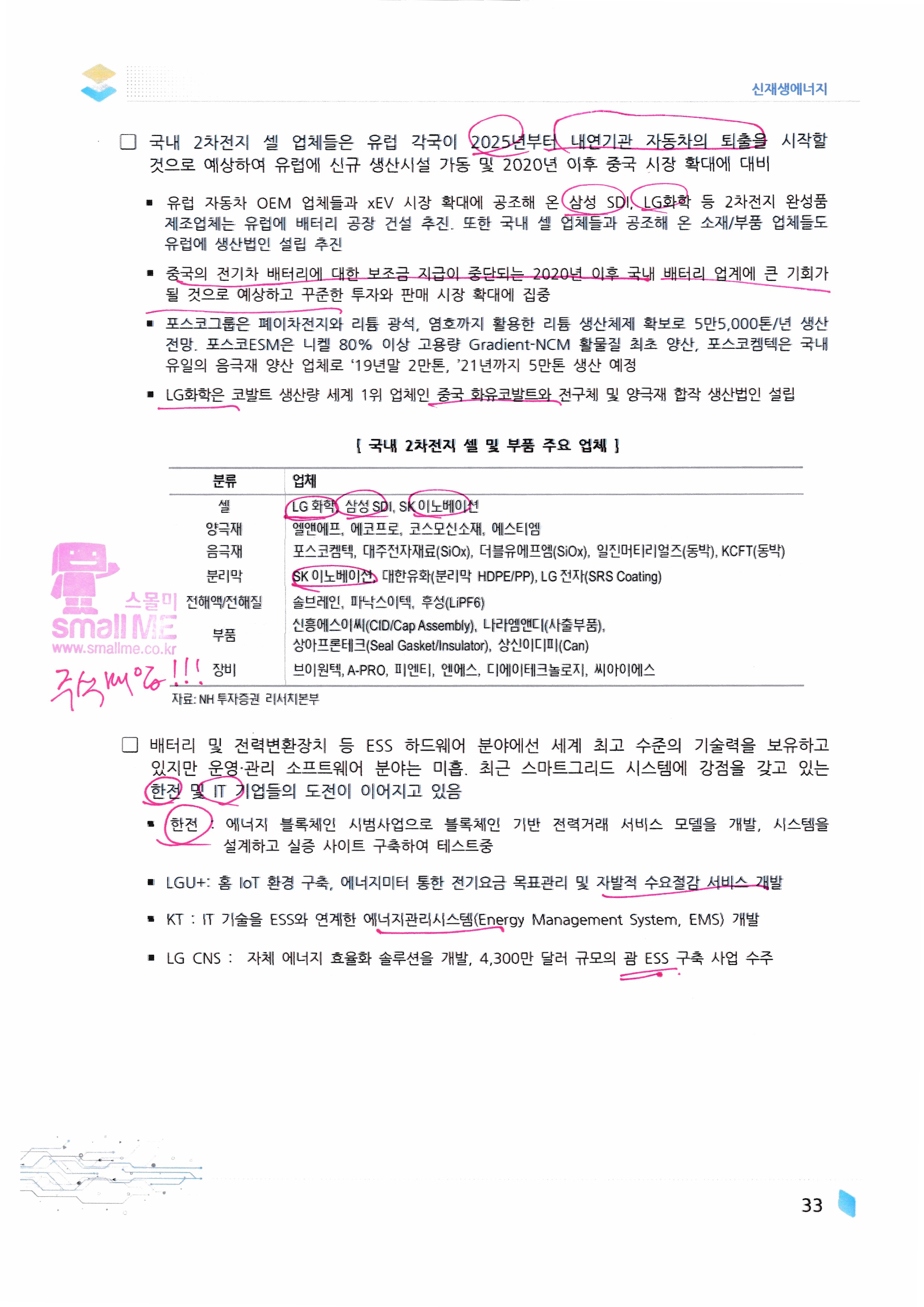 지속적으로 성장하는 사업, 태양광, 풍력, 에너지 저장장치 등.