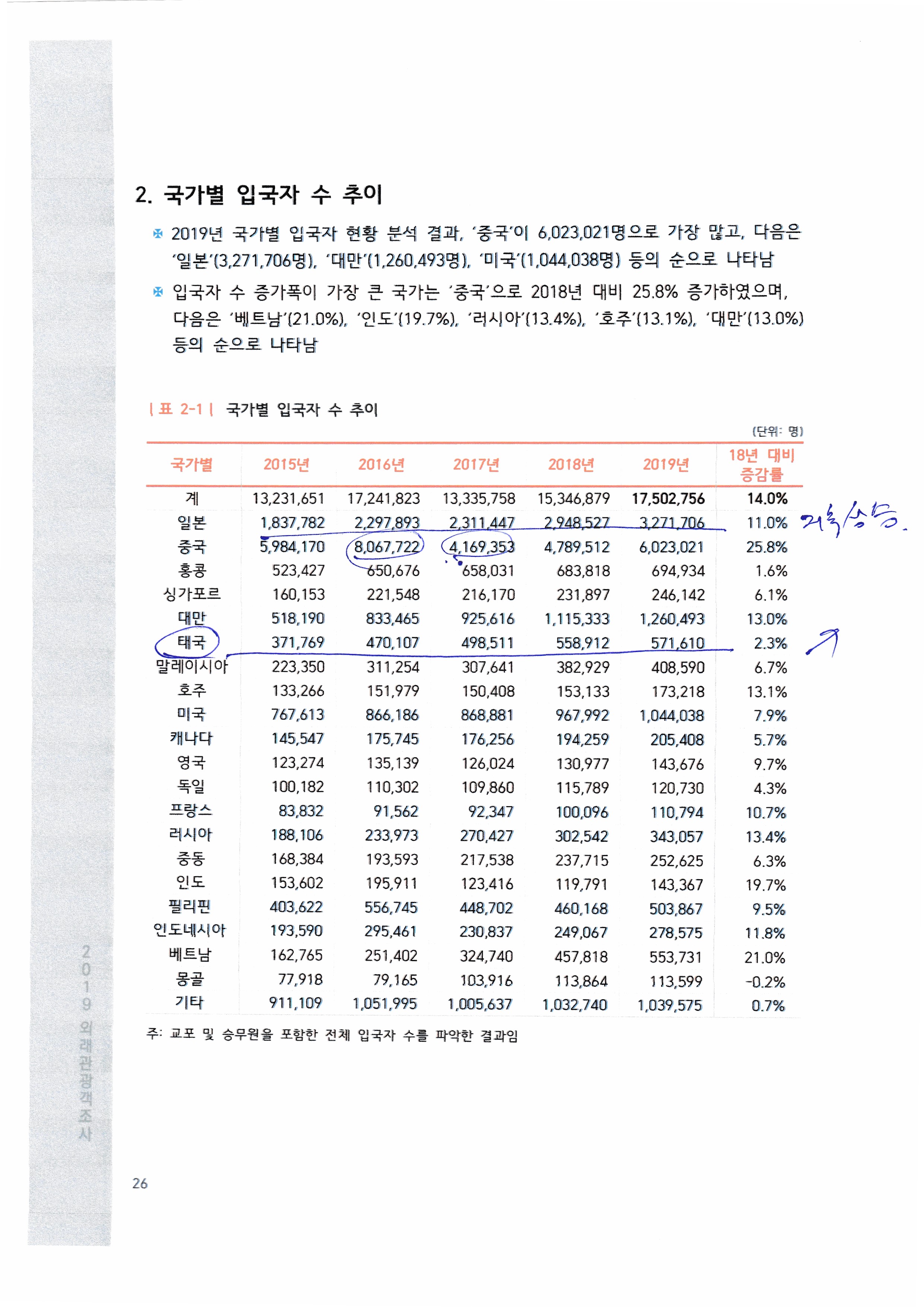 2019년 한국방문 관광객, 외래관광객 조사자료.