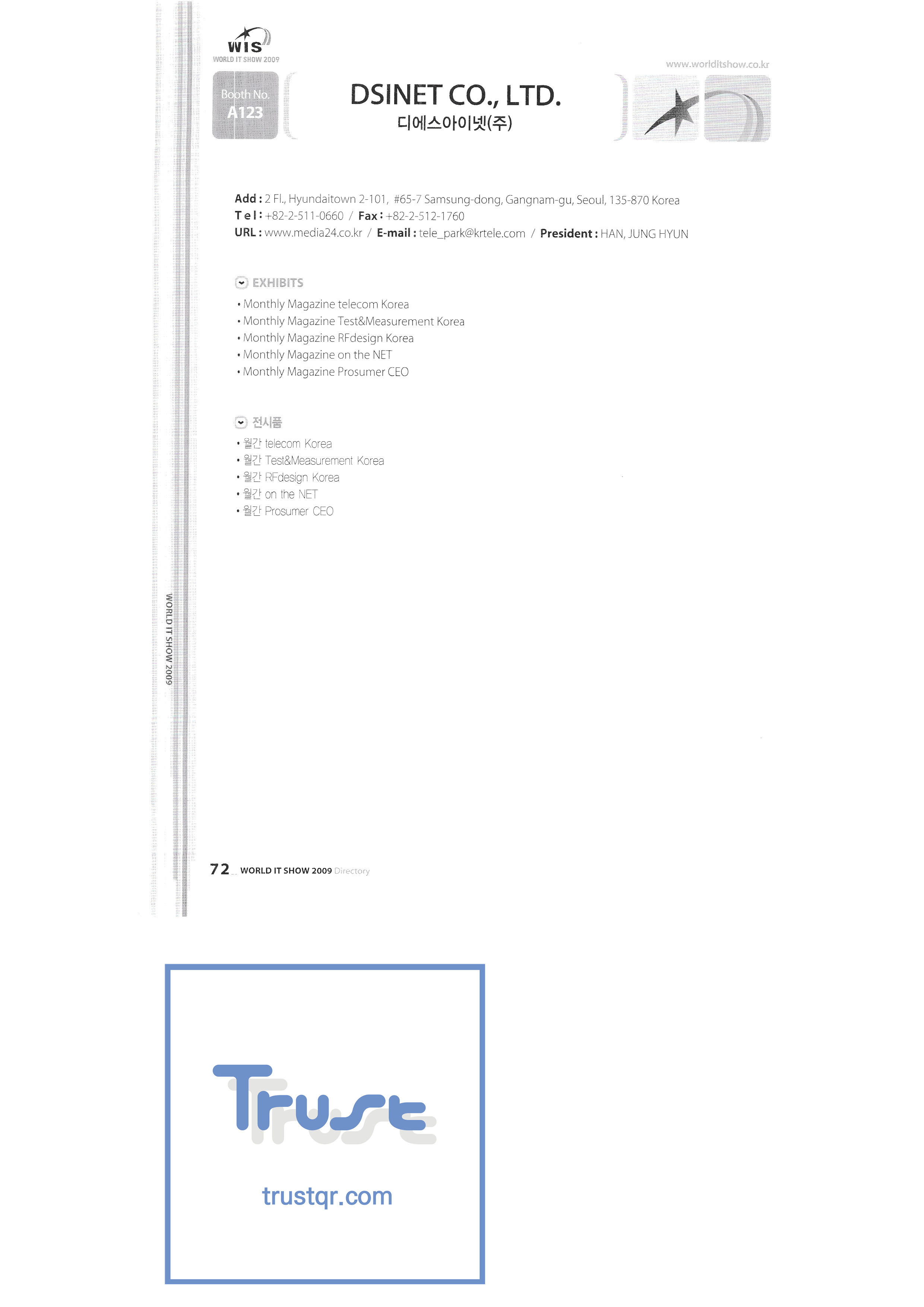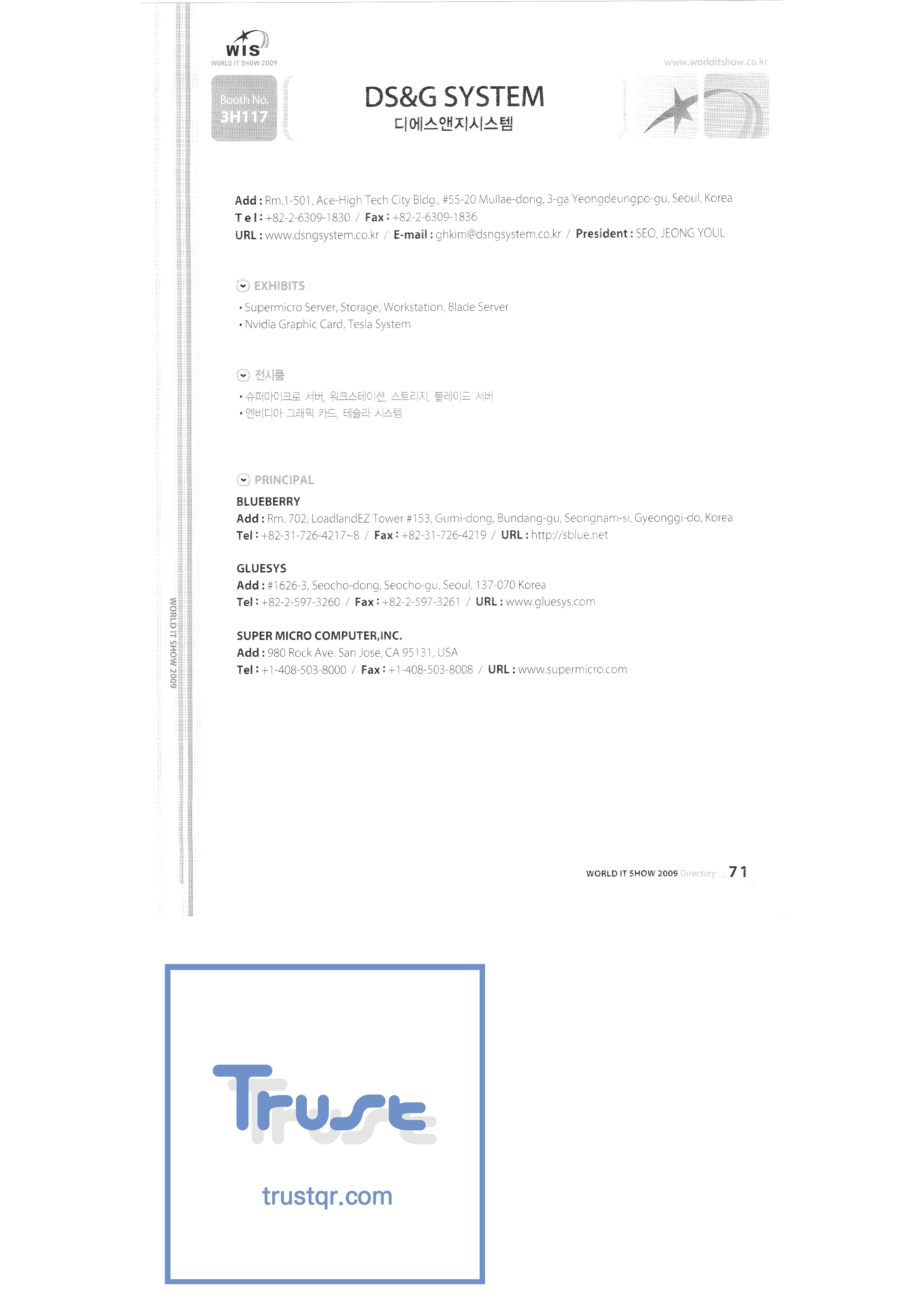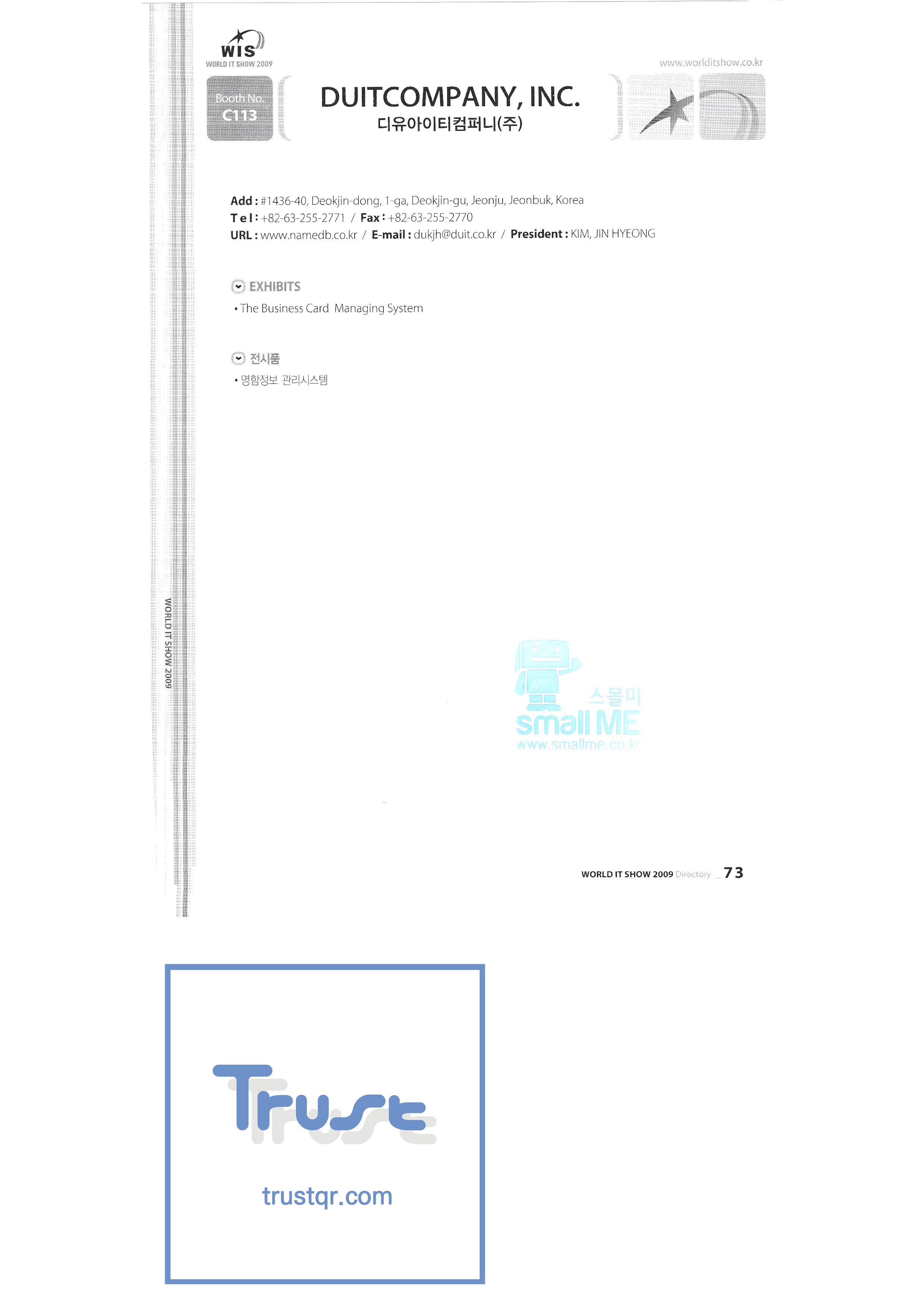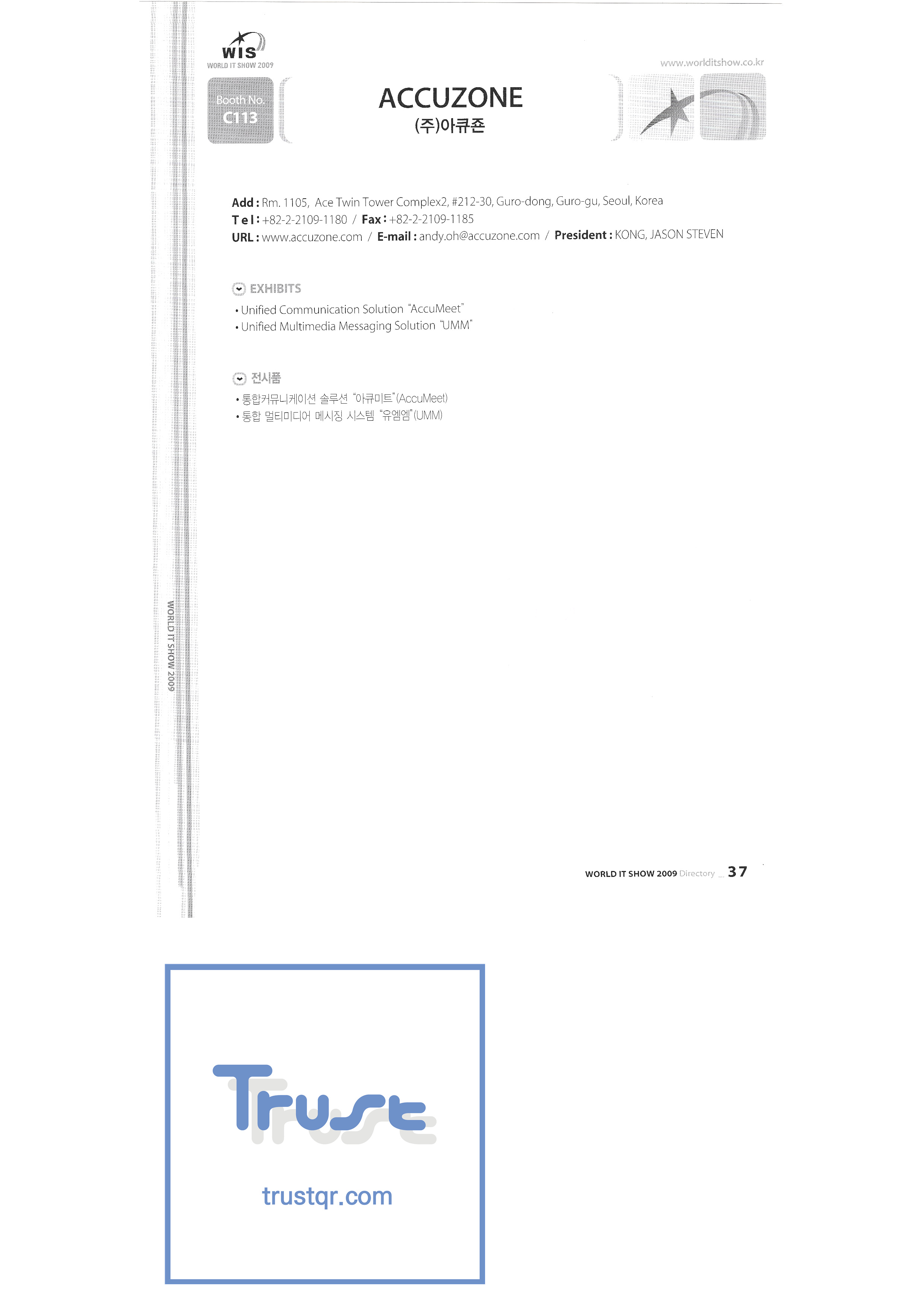 WORLD IT SHOW 2009-2 Able Store Co., Ltd. AC&P Accuzone Edtech Co., Ltd. Apos Technology Co., Ltd. Ahn Cheolsu Research Institute Aim2G RTI Base Co., Ltd. Altsoft Co., Ltd. Anyang City Hall Anyjet APC Korea Co., Ltd. Seoul Graduate School of Science ATKOR Co., Ltd. Avitech Bain P International Co., Ltd. Biz Win S Broadcade Korea Co., Ltd. C&C Instruments Co., Ltd. CICM Tech Co., Ltd. Click Electronic Information System Click hand Core Biz Core Voice Co., Ltd. Crown Publisher Daejin Mediatech Co., Ltd. Daejin Technology Information Co., Ltd. DAIL TECH Daishin Information and Communication Dasan Electronics Co., Ltd. Ford Culture Co., Ltd. Dica Pack D-Q Digital Sense Donghan Electronics Dongshin Information Technology Co., Ltd. DSNG System DS Inet DUT Company Co., Ltd. Duruan Co., Ltd. |
