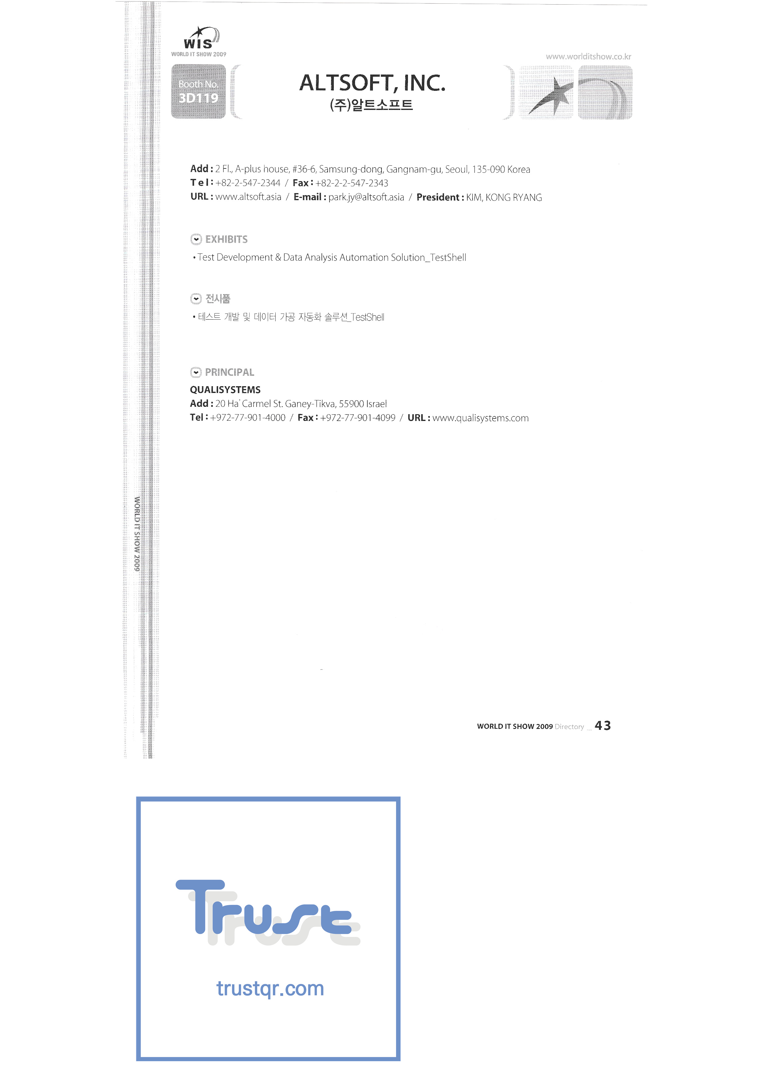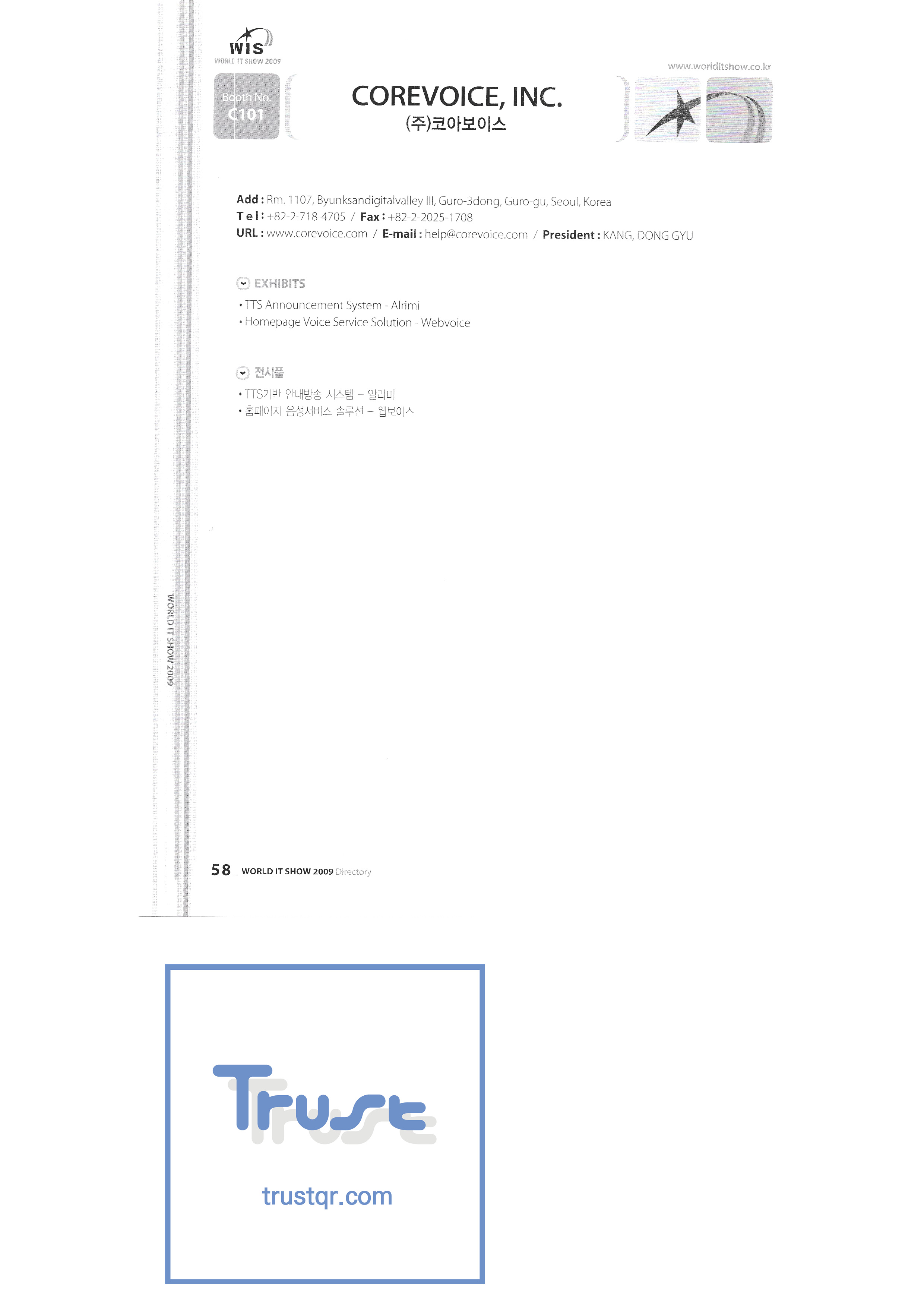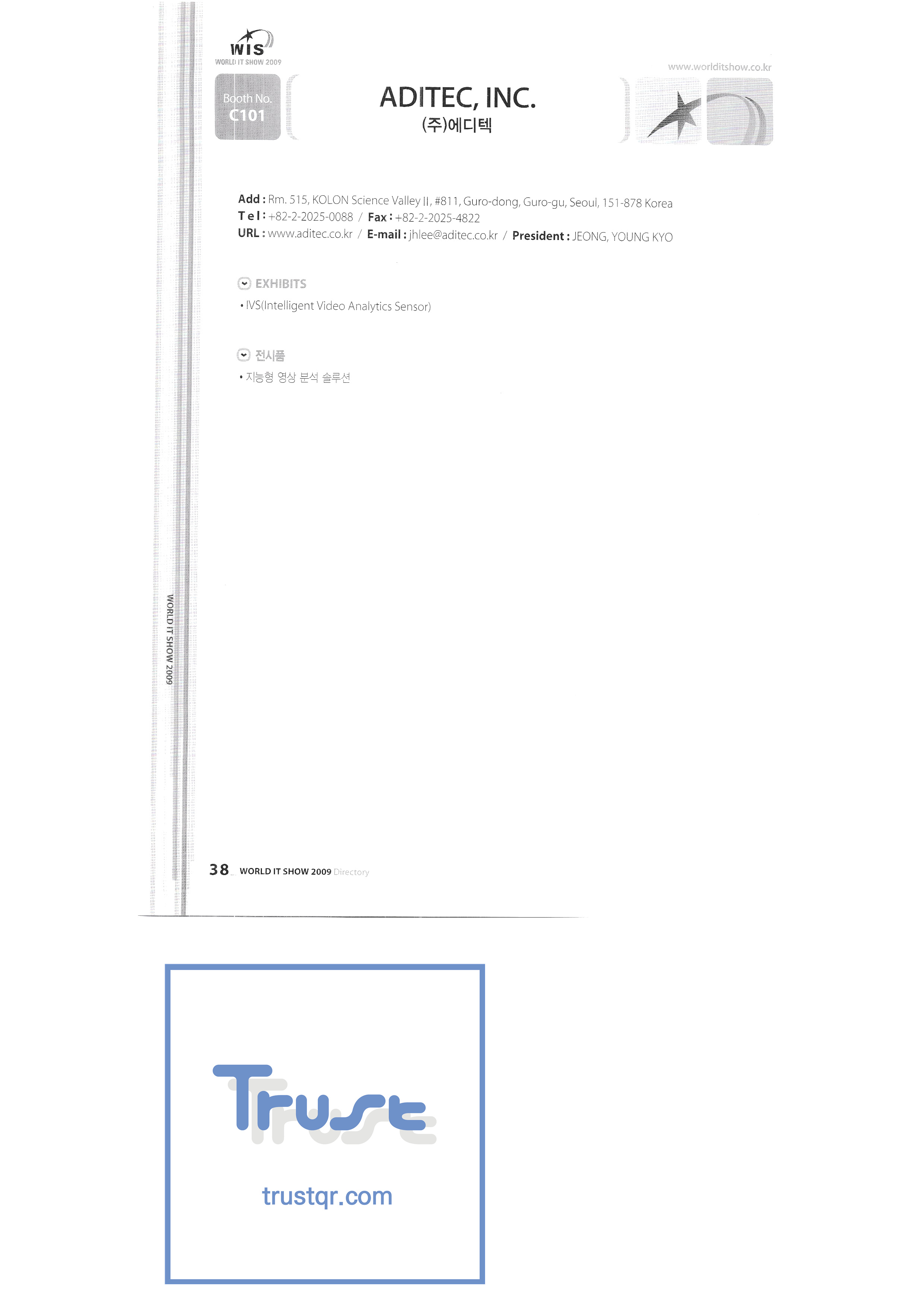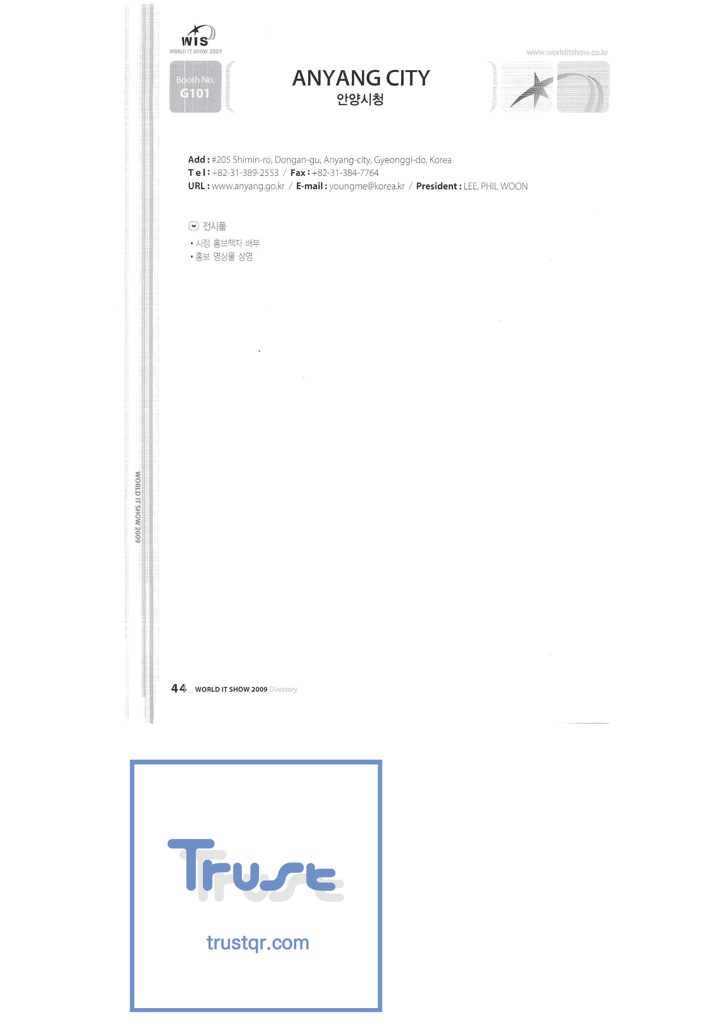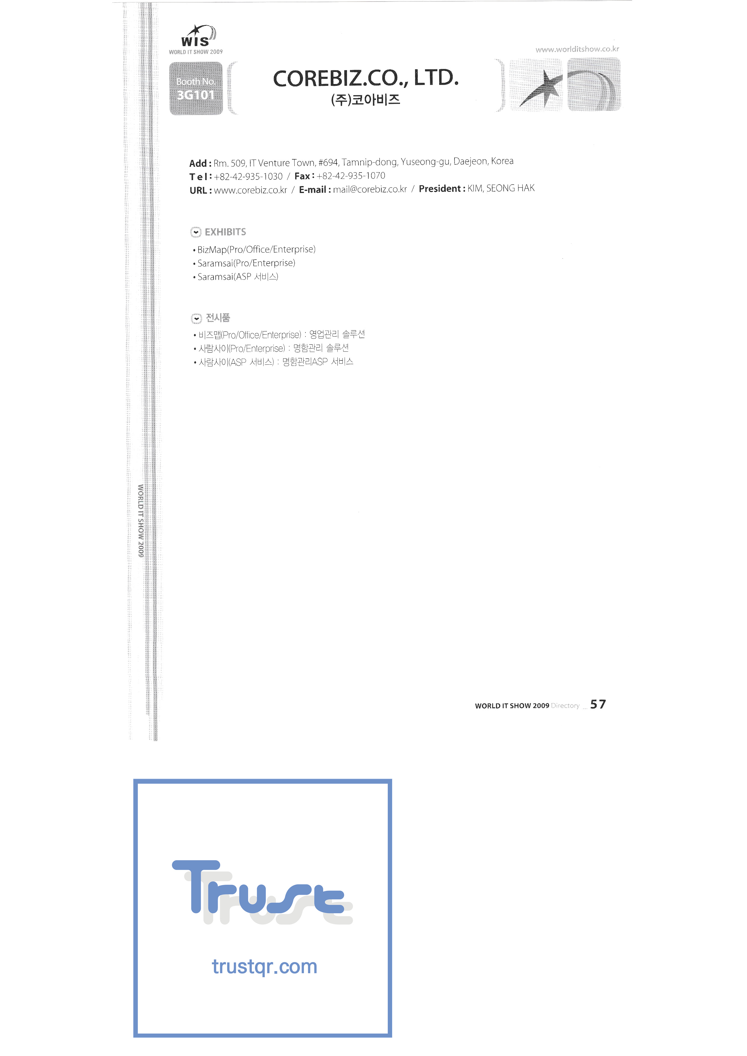 WORLD IT SHOW 2009-2 Able Store Co., Ltd. AC&P Accuzone Edtech Co., Ltd. Apos Technology Co., Ltd. Ahn Cheolsu Research Institute Aim2G RTI Base Co., Ltd. Altsoft Co., Ltd. Anyang City Hall Anyjet APC Korea Co., Ltd. Seoul Graduate School of Science ATKOR Co., Ltd. Avitech Bain P International Co., Ltd. Biz Win S Broadcade Korea Co., Ltd. C&C Instruments Co., Ltd. CICM Tech Co., Ltd. Click Electronic Information System Click hand Core Biz Core Voice Co., Ltd. Crown Publisher Daejin Mediatech Co., Ltd. Daejin Technology Information Co., Ltd. DAIL TECH Daishin Information and Communication Dasan Electronics Co., Ltd. Ford Culture Co., Ltd. Dica Pack D-Q Digital Sense Donghan Electronics Dongshin Information Technology Co., Ltd. DSNG System DS Inet DUT Company Co., Ltd. Duruan Co., Ltd. |