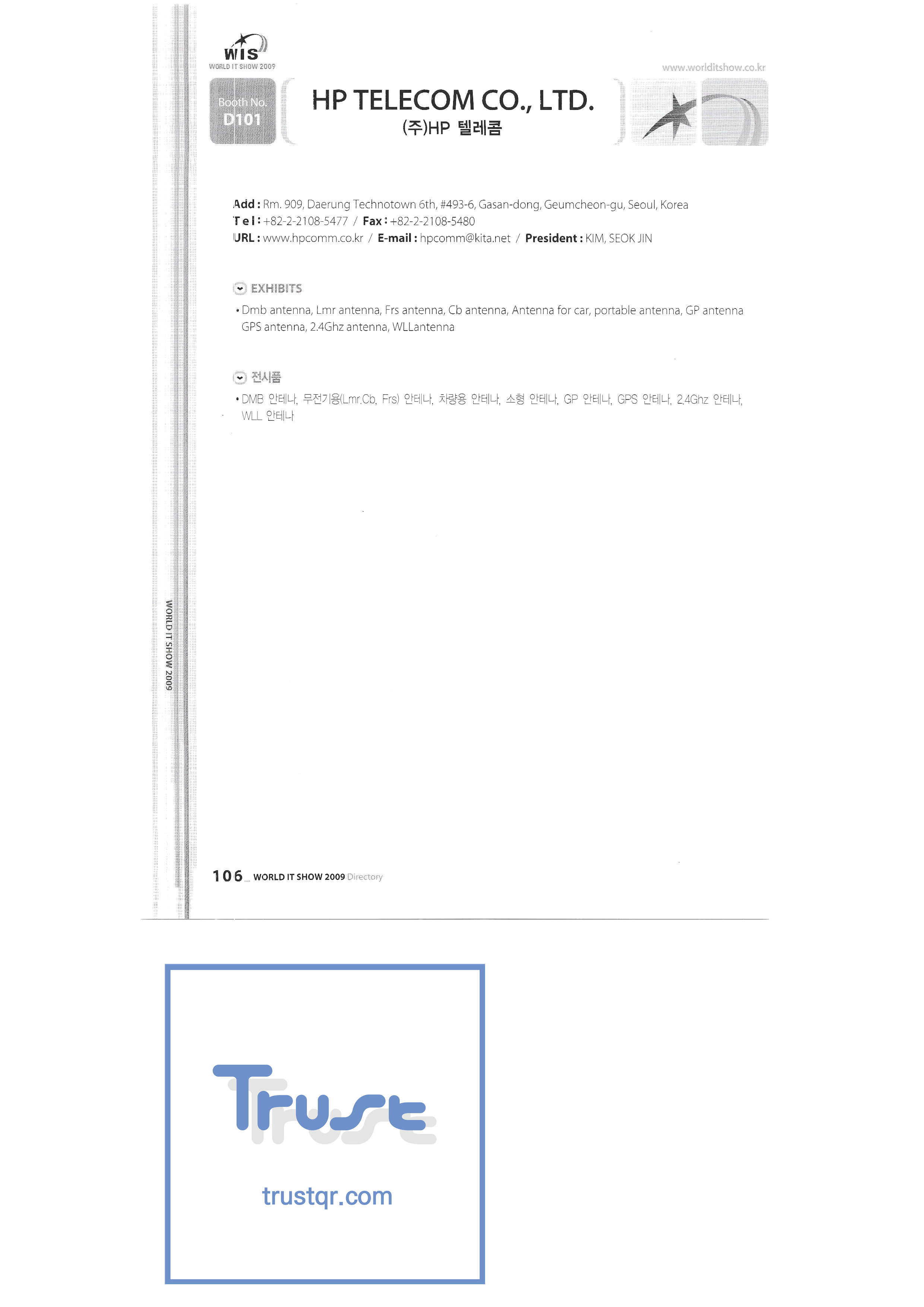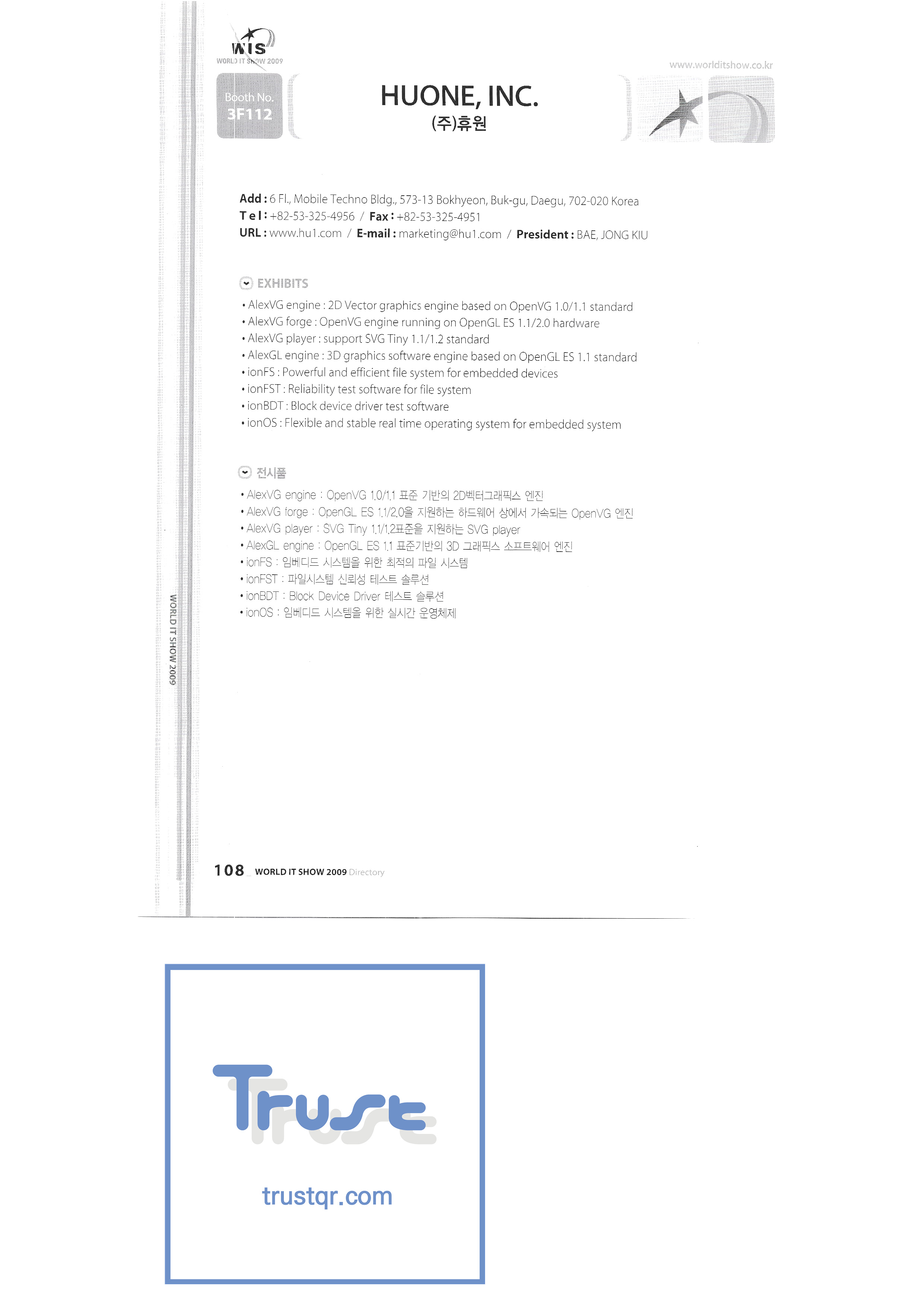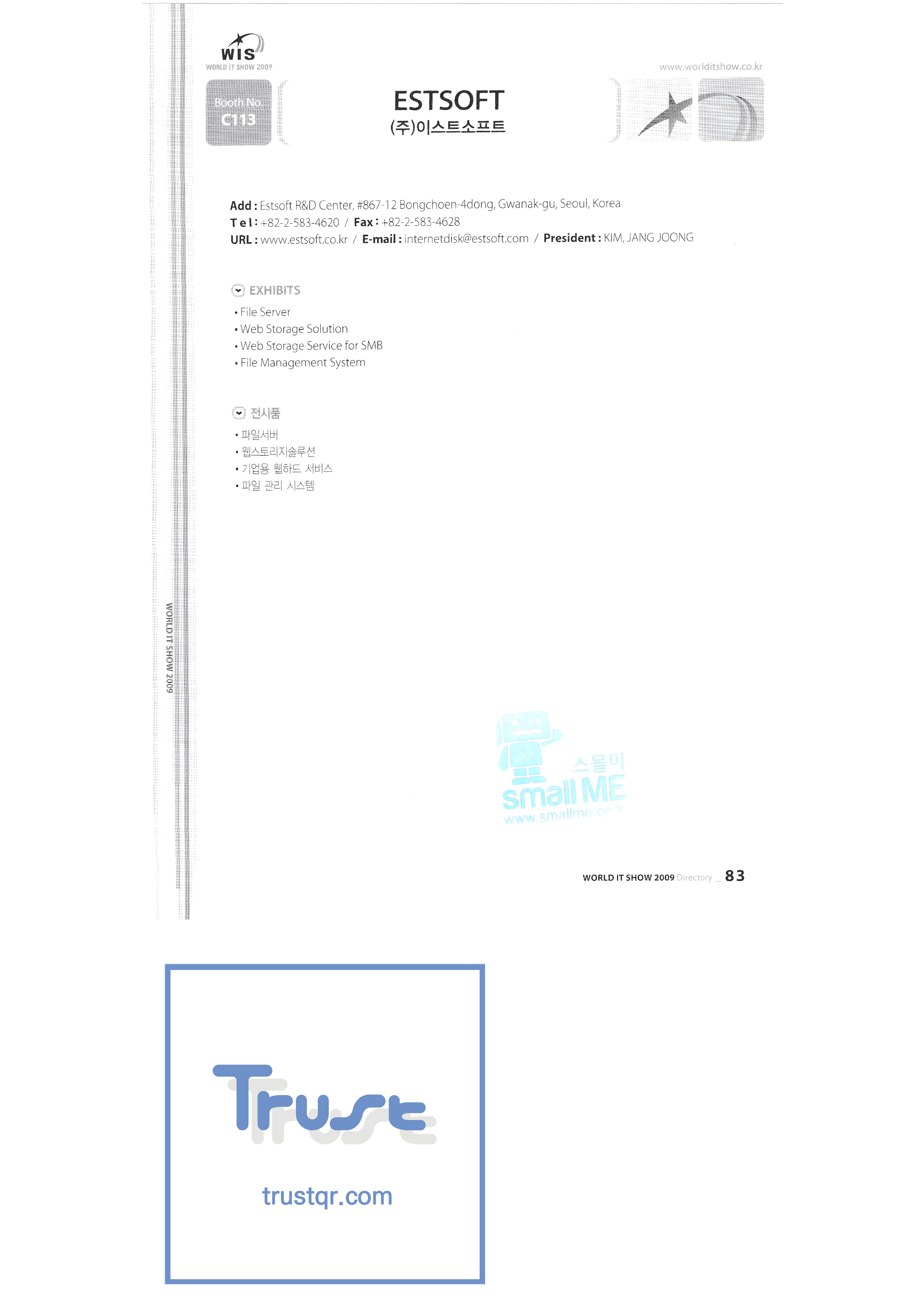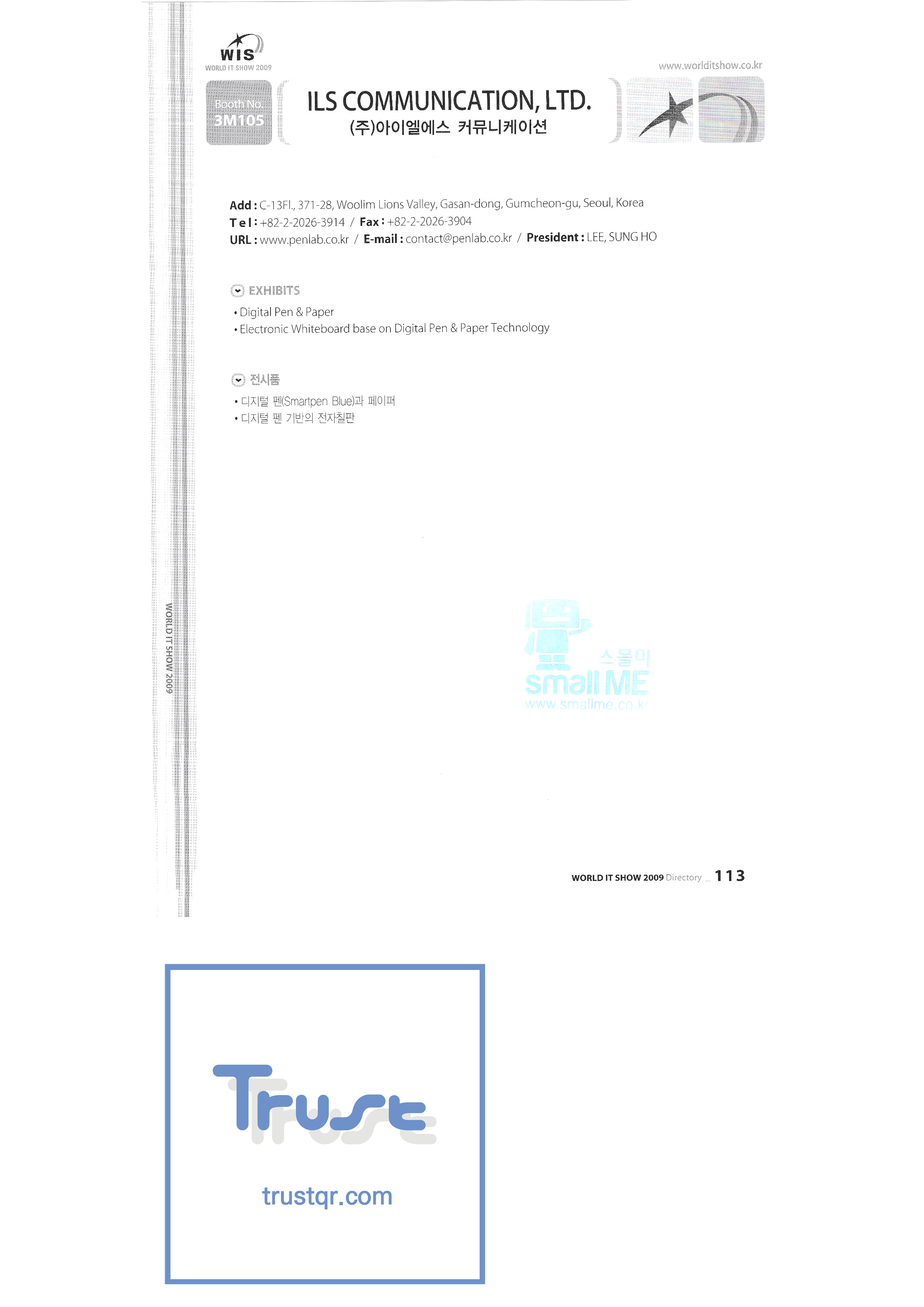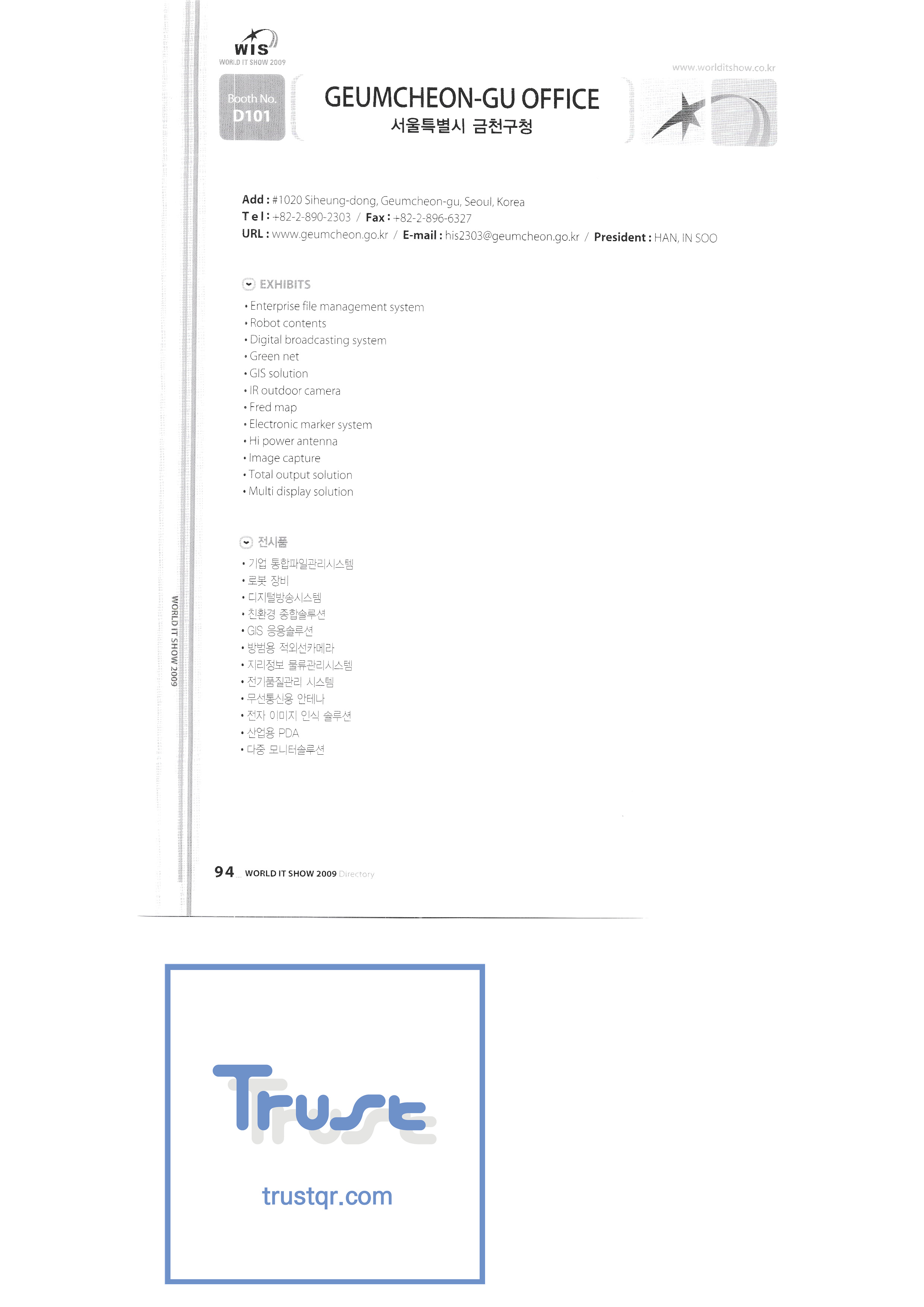 WORLD IT SHOW 2009-3 Earzone Co., Ltd. East Photonics EDMS Co., Ltd. Eleccom Co., Ltd. Electronics and Telecommunications Research Institute Aeon Co., Ltd. Eronix Co., Ltd. ESOL Information Communication Co., Ltd. East Soft Co., Ltd. Eurotrade Evenstar Xsoft Co., Ltd. IMAX Easy Pt Tech Co., Ltd. Pasu.com FR Tech Co., Ltd. Fusion Soft Game Park Holdings Kangwon Embedded Software Research Center Seoul Geumcheon-gu Office GK Co., Ltd. GLOBAL IP SOLUTIONS GNS Instruments Guro-gu H2O System Technology Co., Ltd. Hadong Machine Tools Hansol Inticube Co., Ltd. Hanbit Touch Histo Valley Co., Ltd. Hoeseong coil parts Hong Kong Trade Development Bureau HP Telecom Huins Co., Ltd. Hyuwon Co., Ltd. IBIT Iboson Systems Co., Ltd. IG Works Co., Ltd. Isaac SNC Co., Ltd. ILS Communication Incheon Information Industry Promotion Agency |