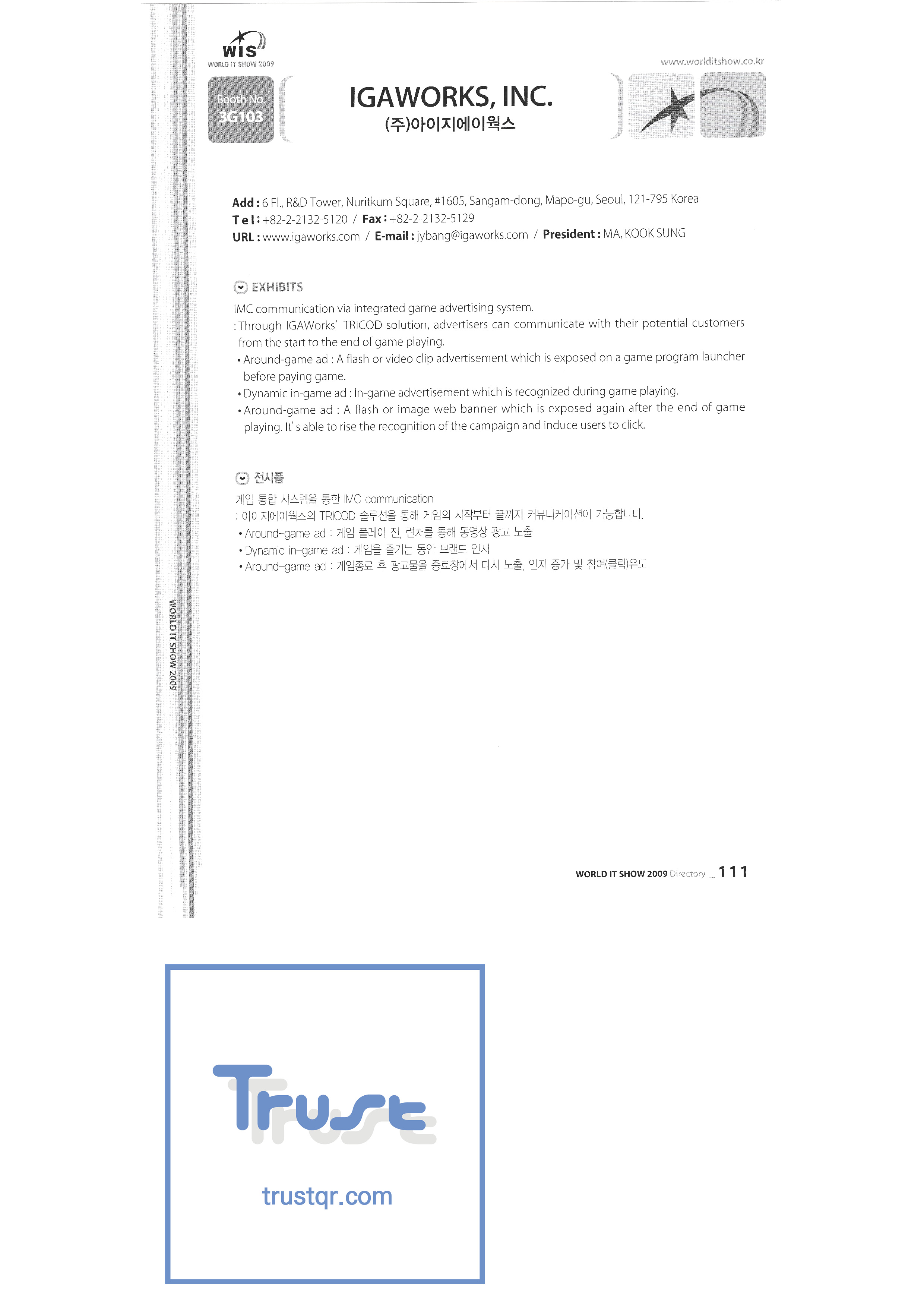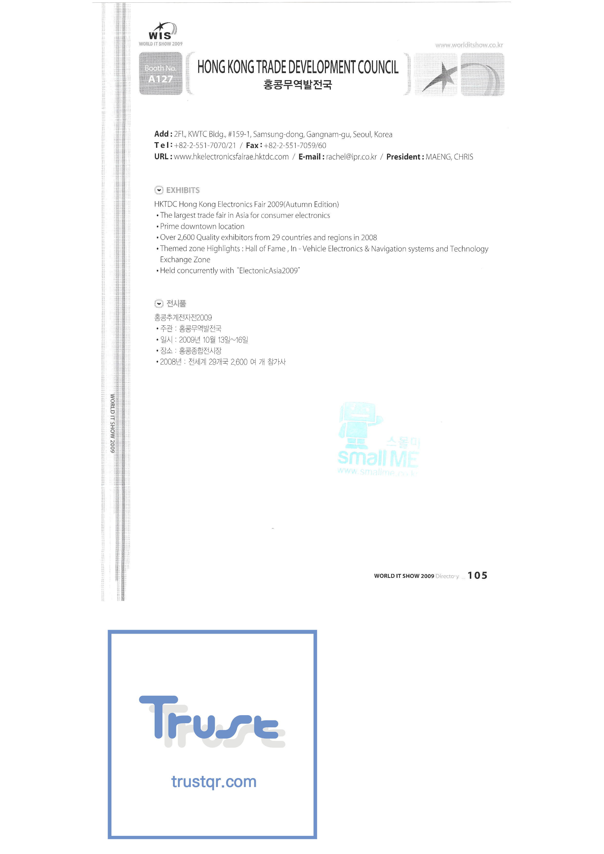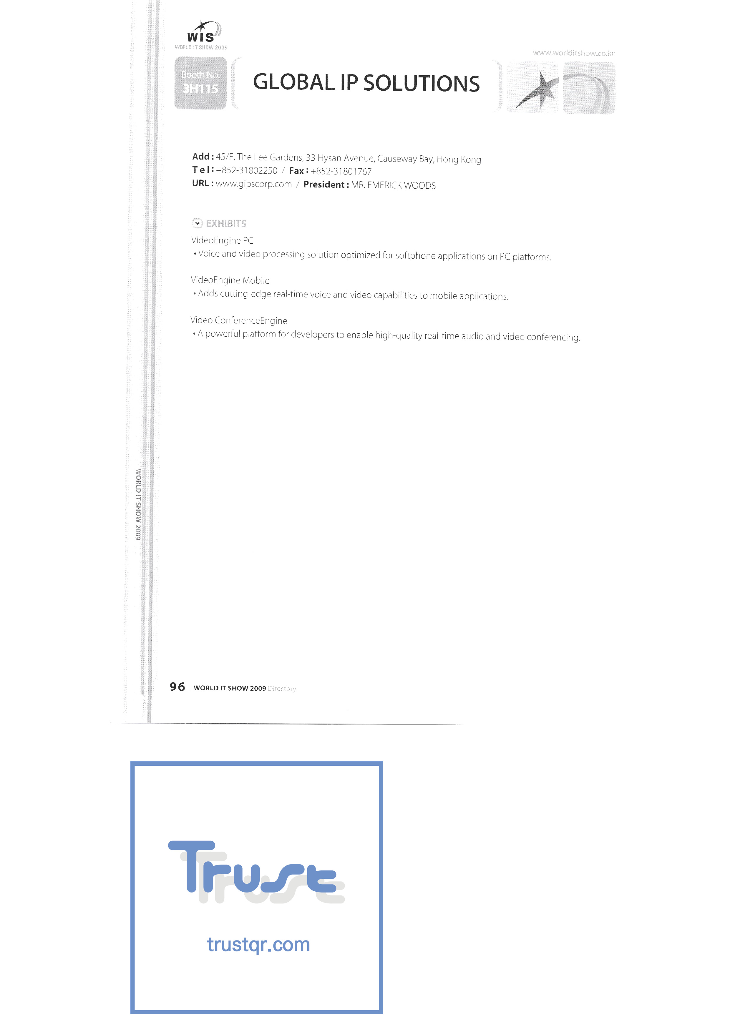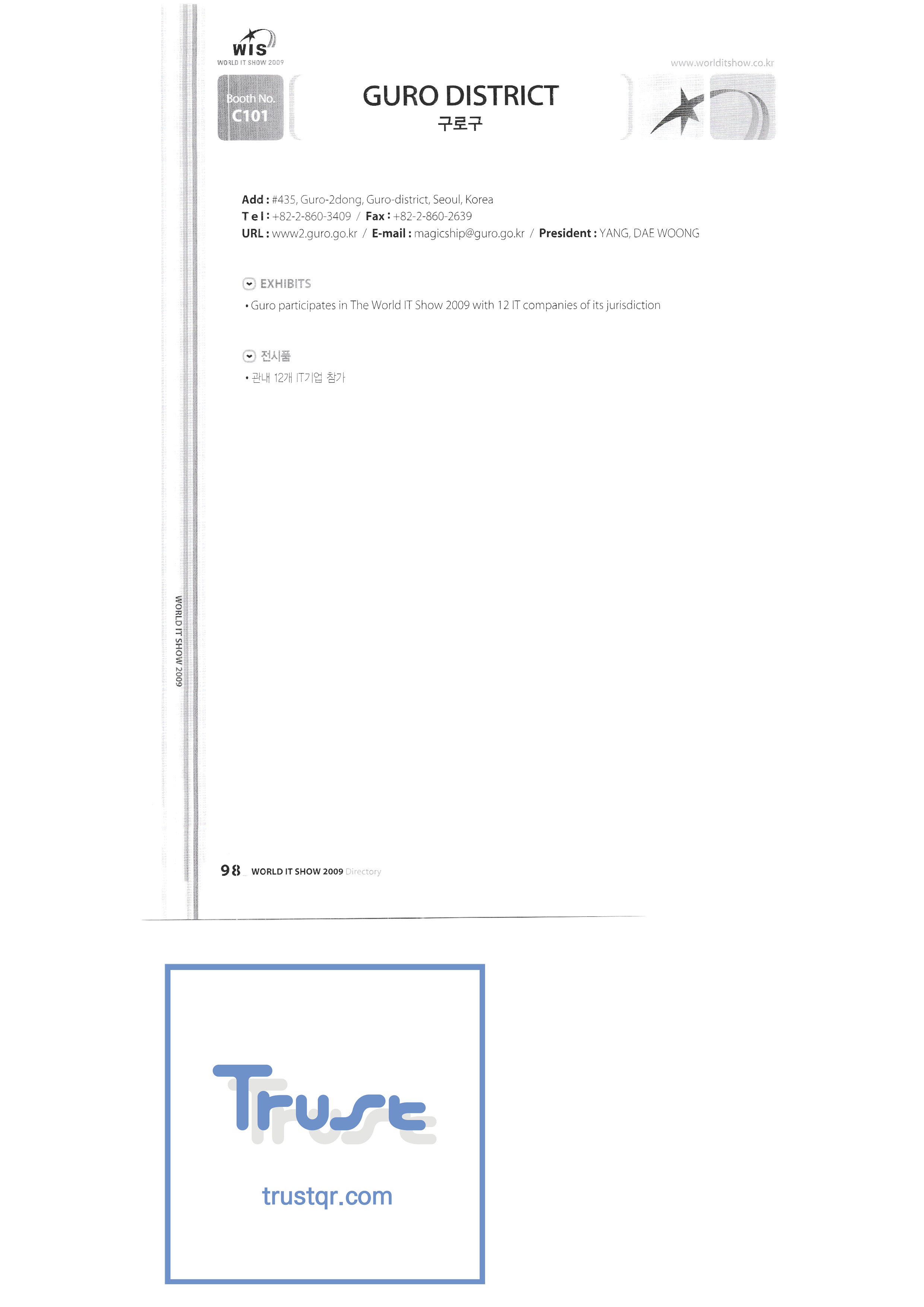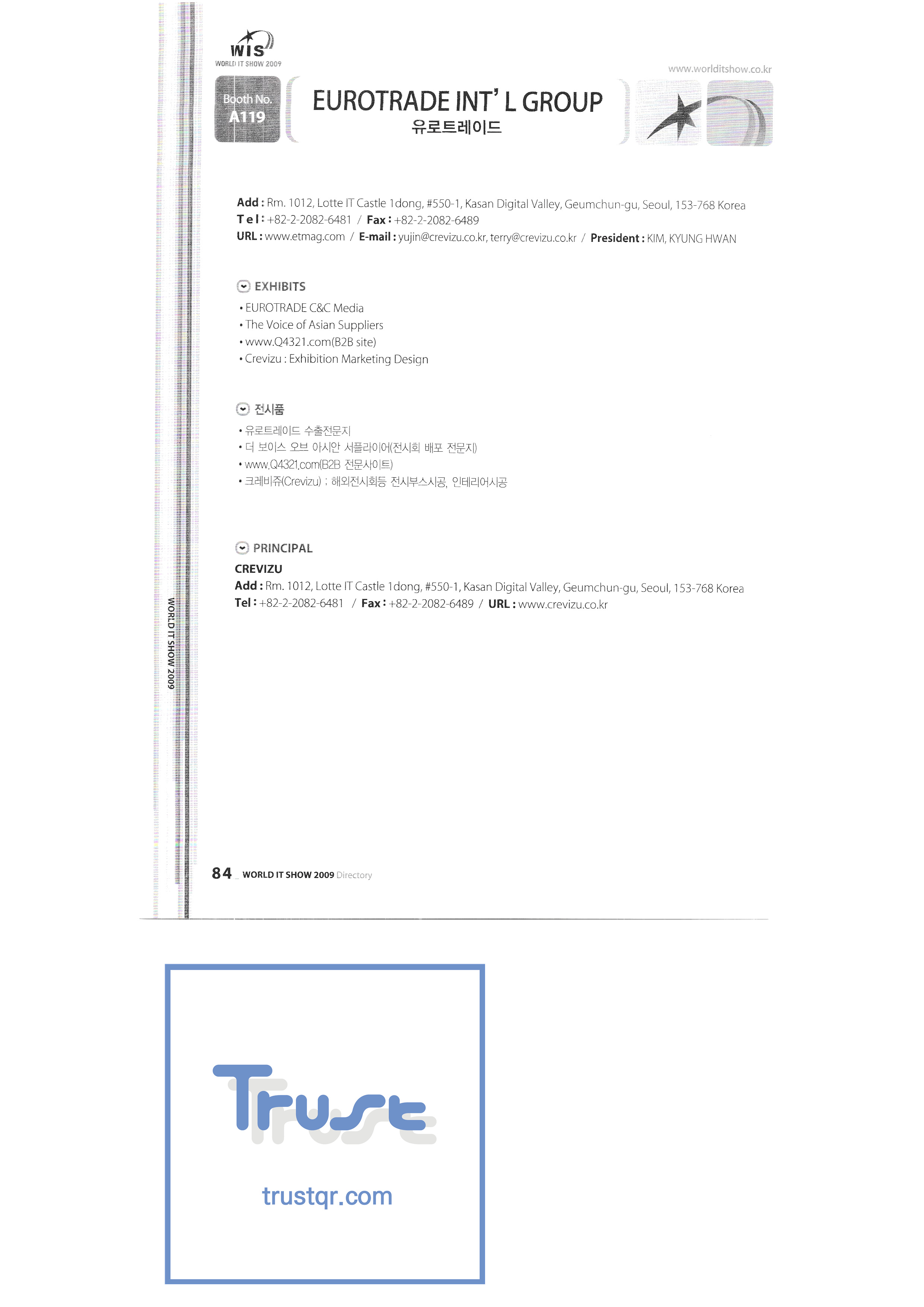 WORLD IT SHOW 2009-3 Earzone Co., Ltd. East Photonics EDMS Co., Ltd. Eleccom Co., Ltd. Electronics and Telecommunications Research Institute Aeon Co., Ltd. Eronix Co., Ltd. ESOL Information Communication Co., Ltd. East Soft Co., Ltd. Eurotrade Evenstar Xsoft Co., Ltd. IMAX Easy Pt Tech Co., Ltd. Pasu.com FR Tech Co., Ltd. Fusion Soft Game Park Holdings Kangwon Embedded Software Research Center Seoul Geumcheon-gu Office GK Co., Ltd. GLOBAL IP SOLUTIONS GNS Instruments Guro-gu H2O System Technology Co., Ltd. Hadong Machine Tools Hansol Inticube Co., Ltd. Hanbit Touch Histo Valley Co., Ltd. Hoeseong coil parts Hong Kong Trade Development Bureau HP Telecom Huins Co., Ltd. Hyuwon Co., Ltd. IBIT Iboson Systems Co., Ltd. IG Works Co., Ltd. Isaac SNC Co., Ltd. ILS Communication Incheon Information Industry Promotion Agency |