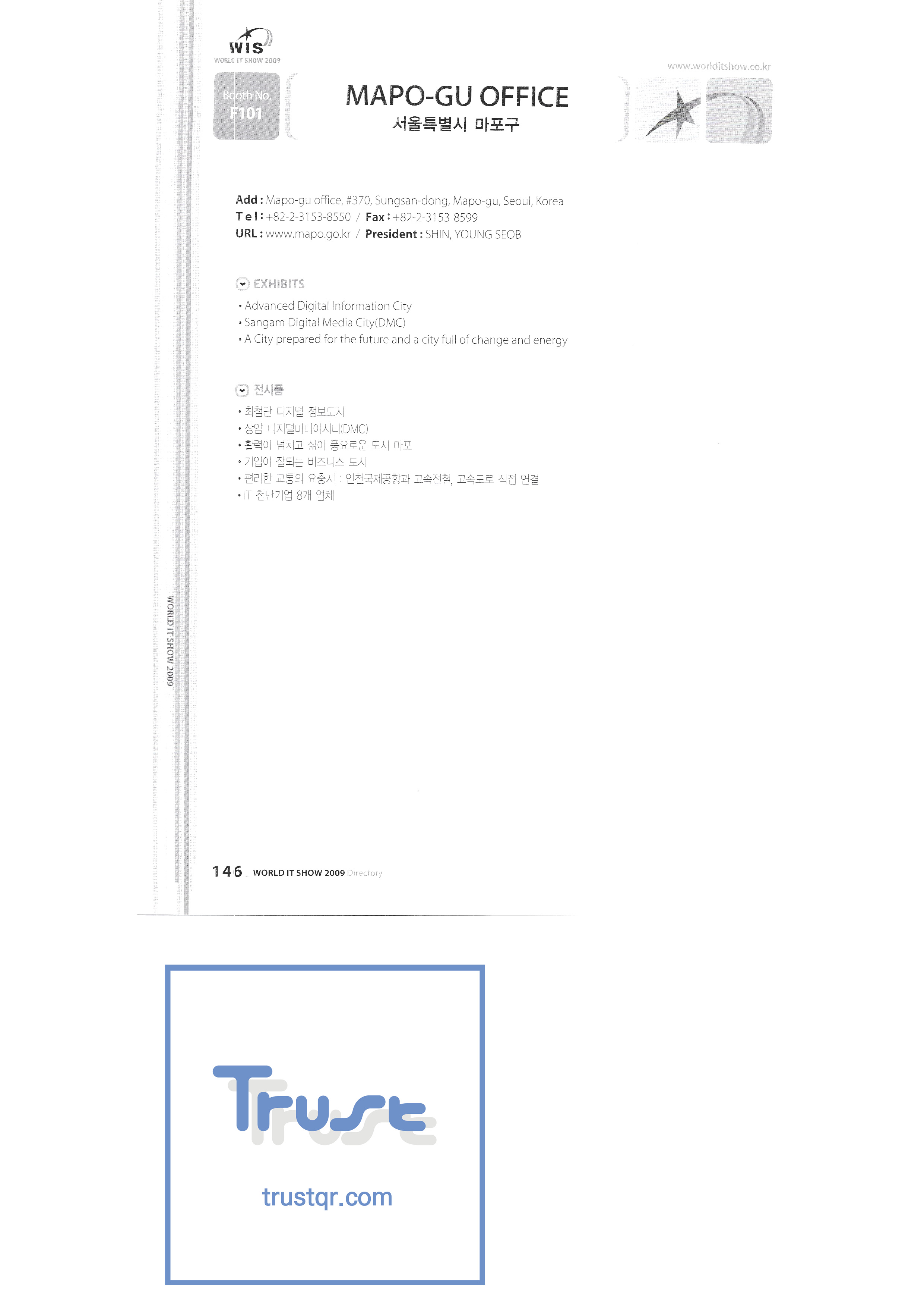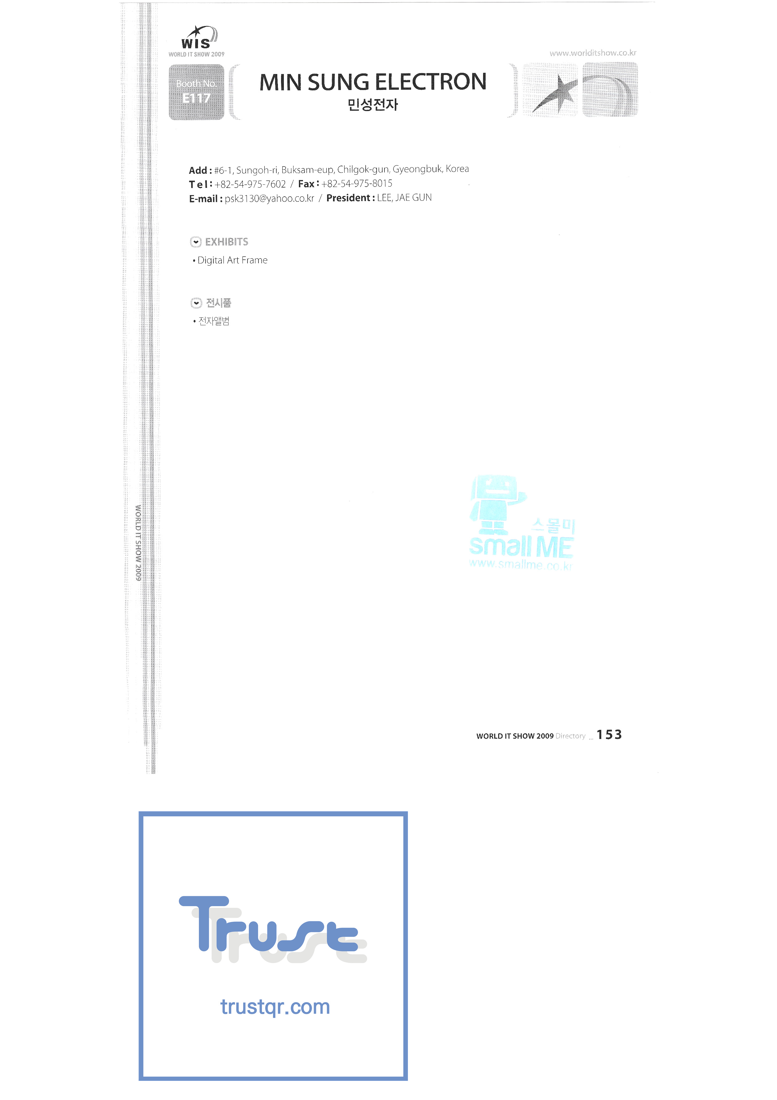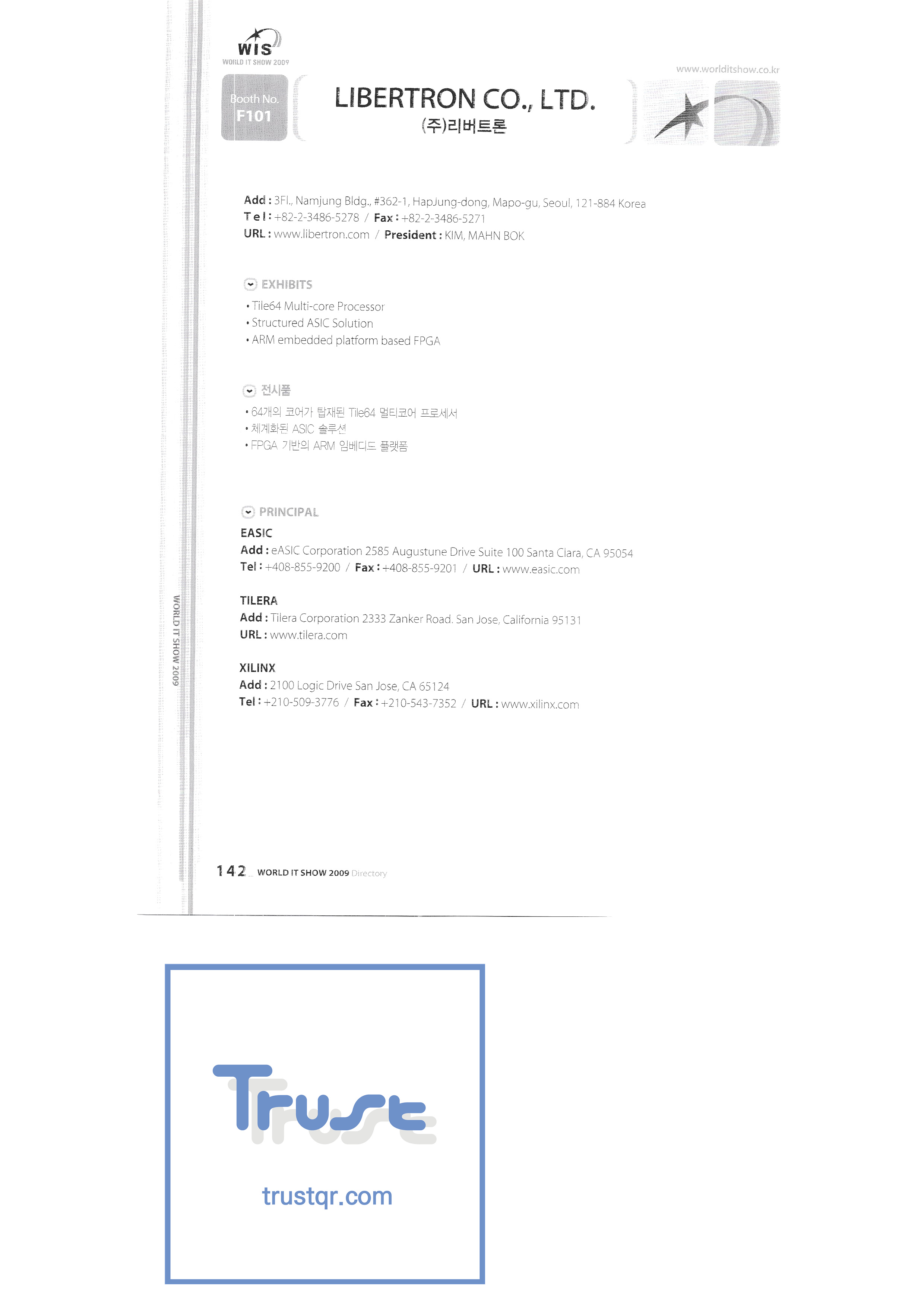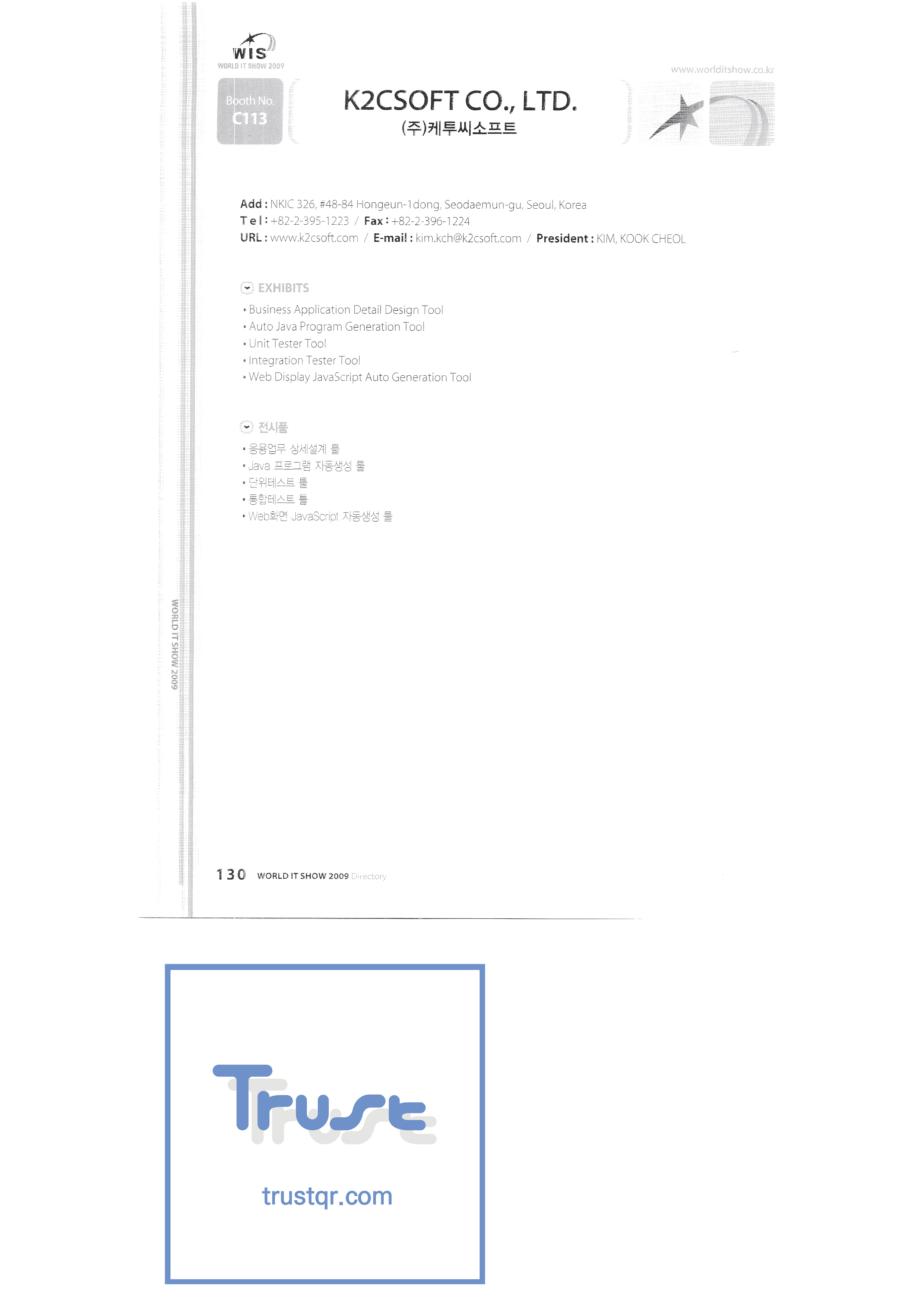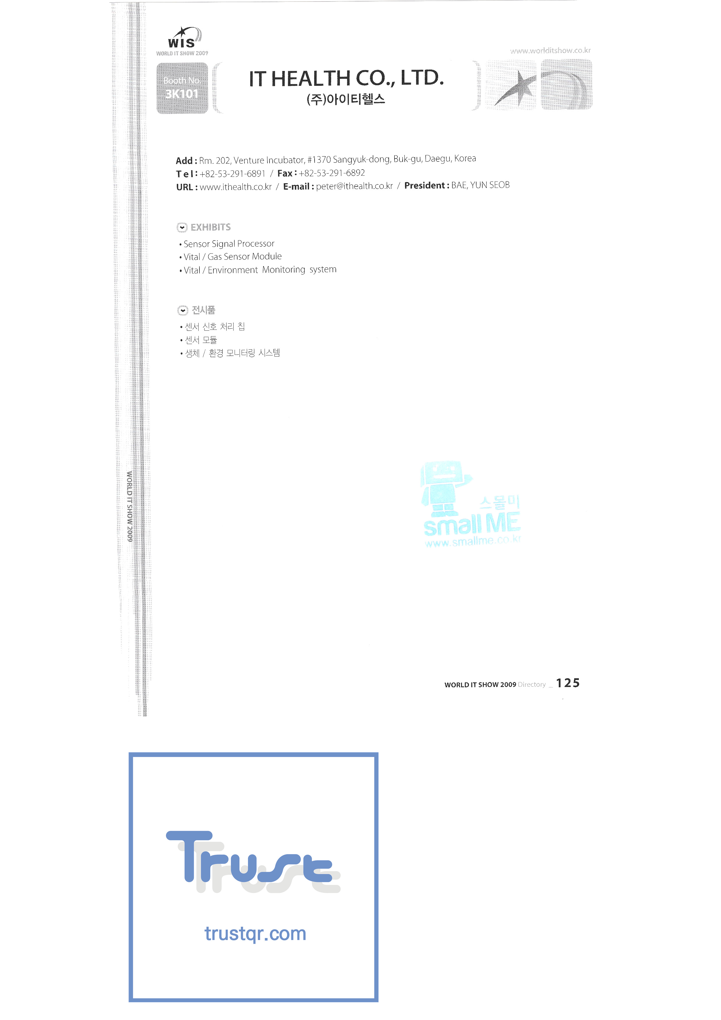 WORLD IT SHOW 2009-4 Incore Co., Ltd. Keimyung University Industry-Academic Cooperation Foundation FTB Project Group Inno Touch Technology Intellian Systems InterSave Co., Ltd. Intratech Intrikat INUS Technology Irutec ISA Tech Co., Ltd. IT Health Co., Ltd. Euncom Jo Jisung I&C JP Sun Co., Ltd. JRT Networks Co., Ltd. K2C Soft Co., Ltd. Kines Co., Ltd. KD Tech Knet Co., Ltd. Know-How Bank Co., Ltd. Kodak Korea KOT Co., Ltd. Korea Radio Promotion Agency Cotrox KT KTS Optonics Co., Ltd. LG Electronics Rivertron Co., Ltd. Lightcom Inc. Log Co., Ltd. M2Soft Co., Ltd. Mapo-gu, Seoul Maxcon Mega Searchnet Memoret World Mantech Micronware Co., Ltd. MIK21 Minsung Electronics Miyu Technology Co., Ltd. |