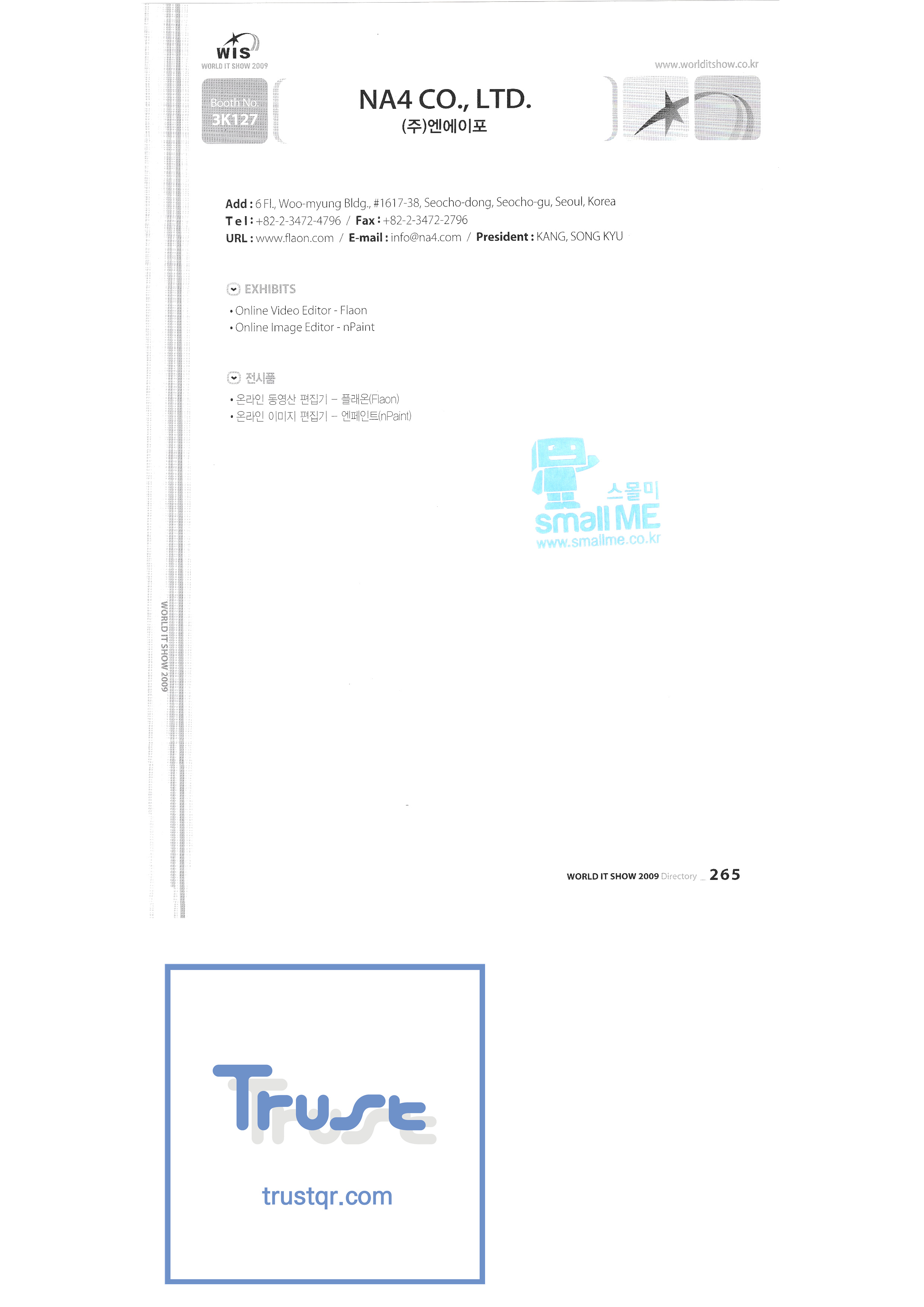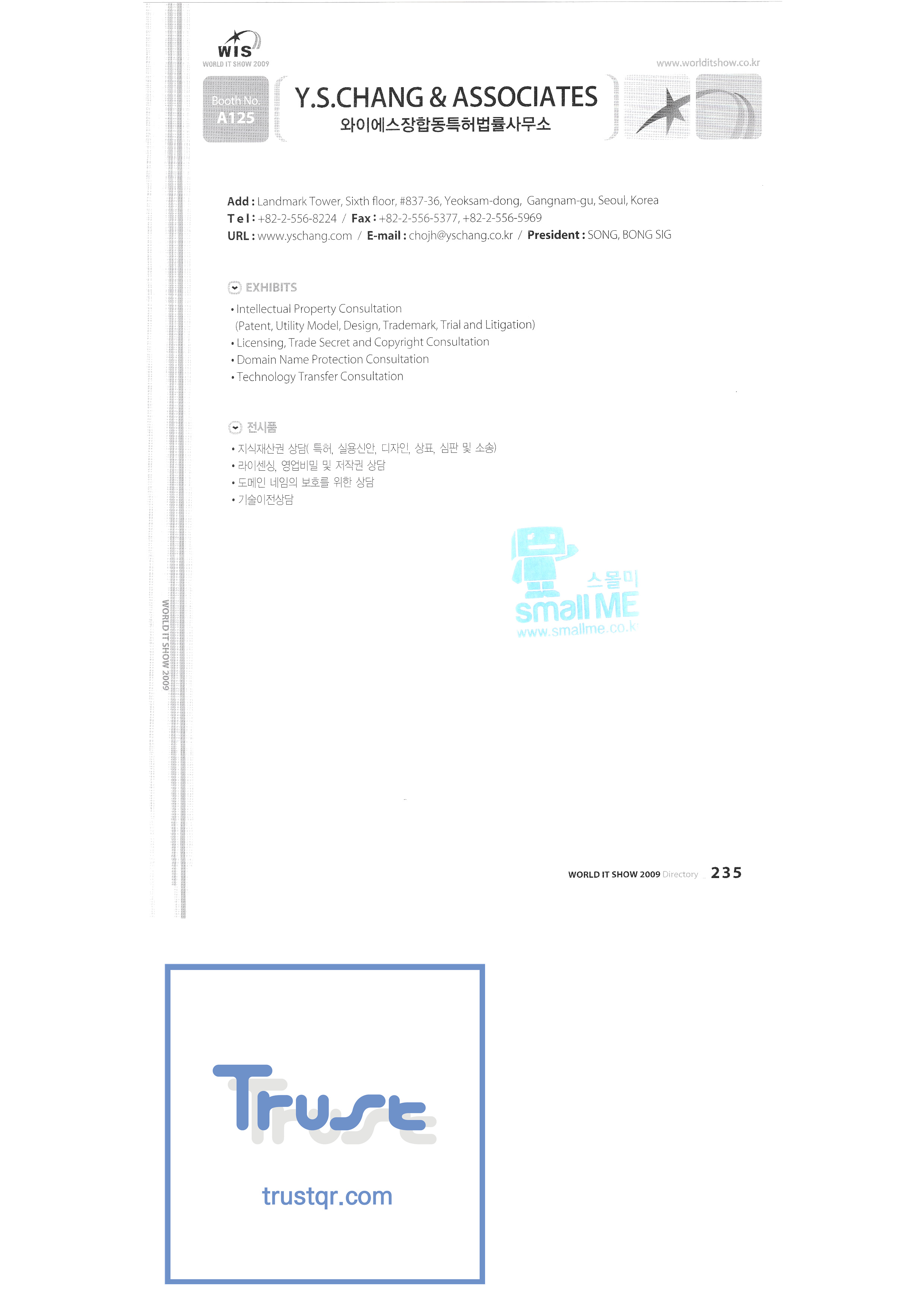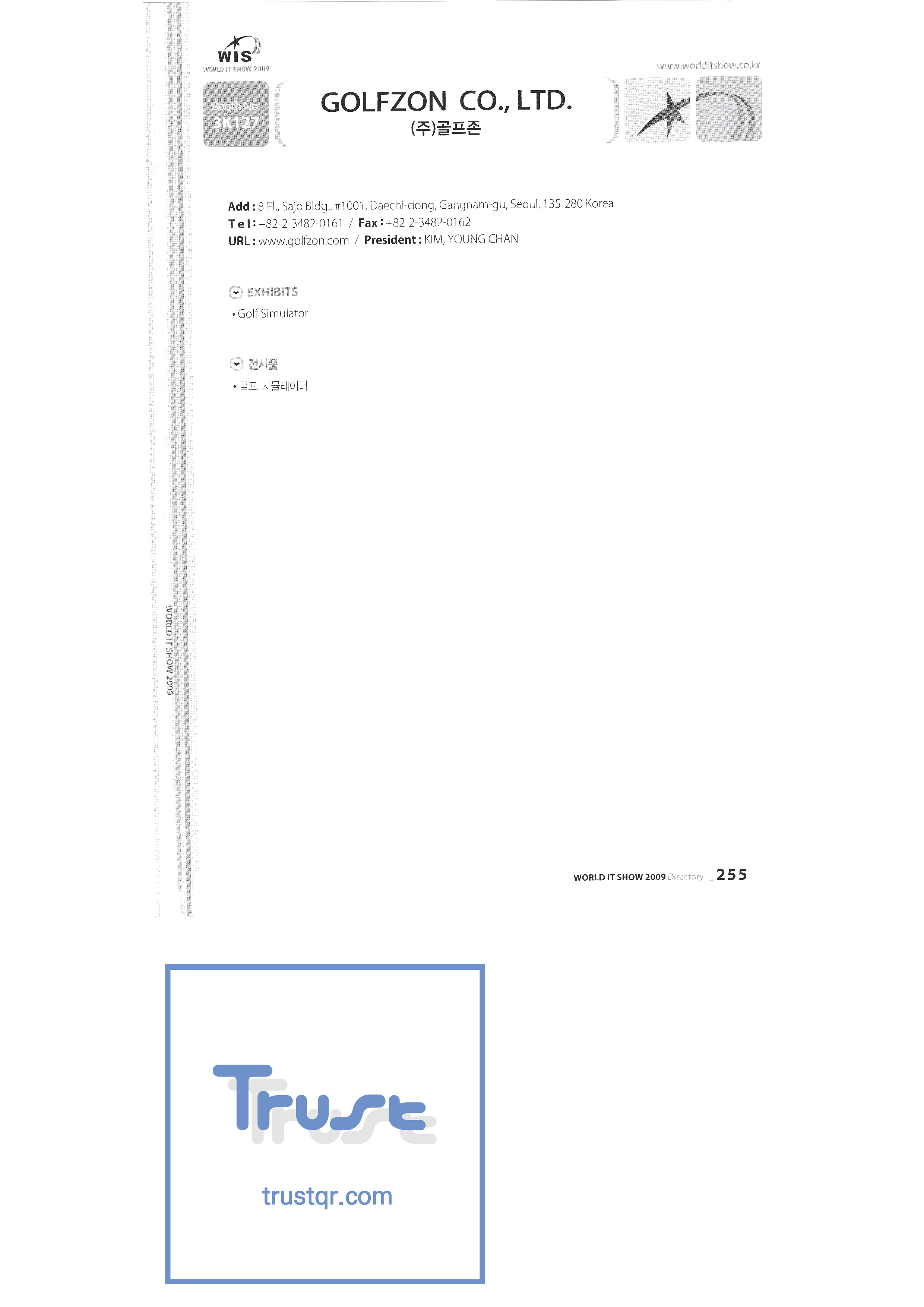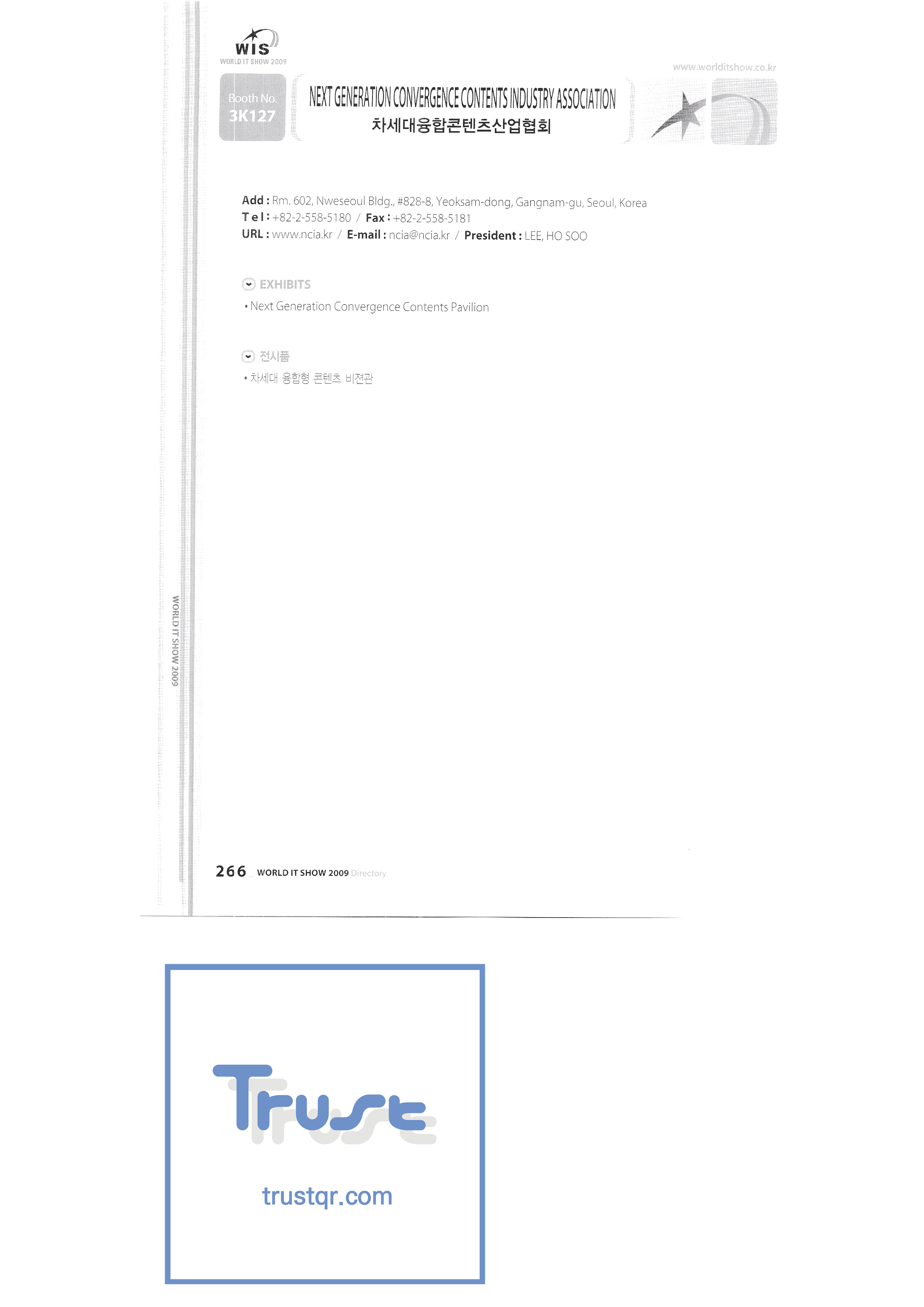 WORLD IT SHOW 2009-7 Wisjang Joint Patent Law Firm YHB Yookyung Youhost Co., Ltd. Yujin Robot Co., Ltd. Zaall Soft Co., Ltd. XicoAD Co., Ltd. Asadal Co., Ltd. Big I Entertainment Co., Ltd. Cheongju Cultural Industry Promotion Foundation Chungnam Cultural Industry Promotion Agency Cross Film Co., Ltd. Digital Oasis Co., Ltd. Ethreenet Co., Ltd. Edu Shipbuilding Electronics and Telecommunications Research Institute Pantalog Interactive Co., Ltd. Gangwon Information and Culture Promotion Agency Golf Zone Co., Ltd. Gravity Co., Ltd. Hansol DK Korea Contents Industry Association Nak Media Co., Ltd. Korea Creative Content Agency Korea Virtual Realization Co., Ltd. LG CNS Metacon Modern Nsis NAPO Next Generation Convergence Contents Industry Association Nexeasy Samsung Electronics |