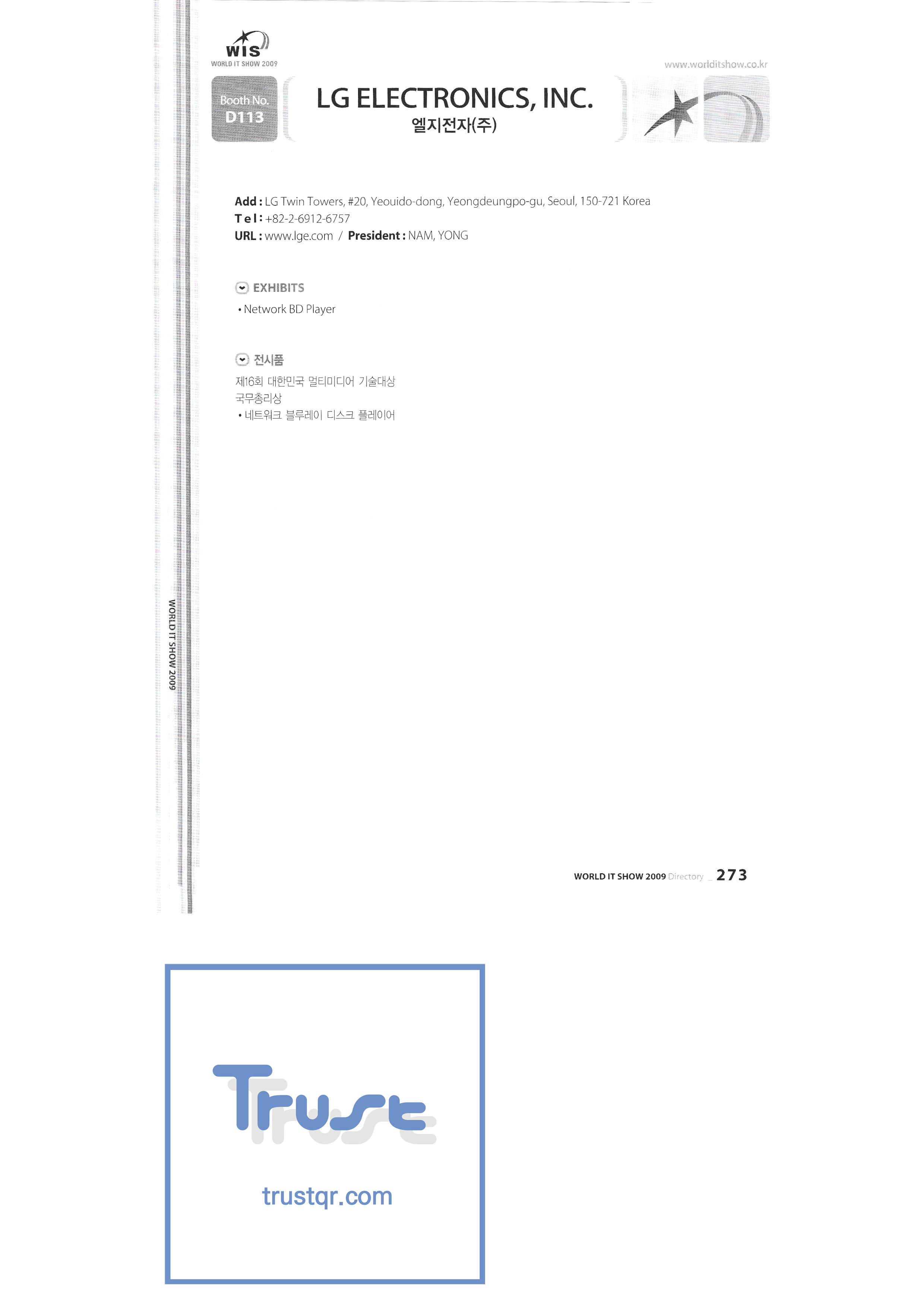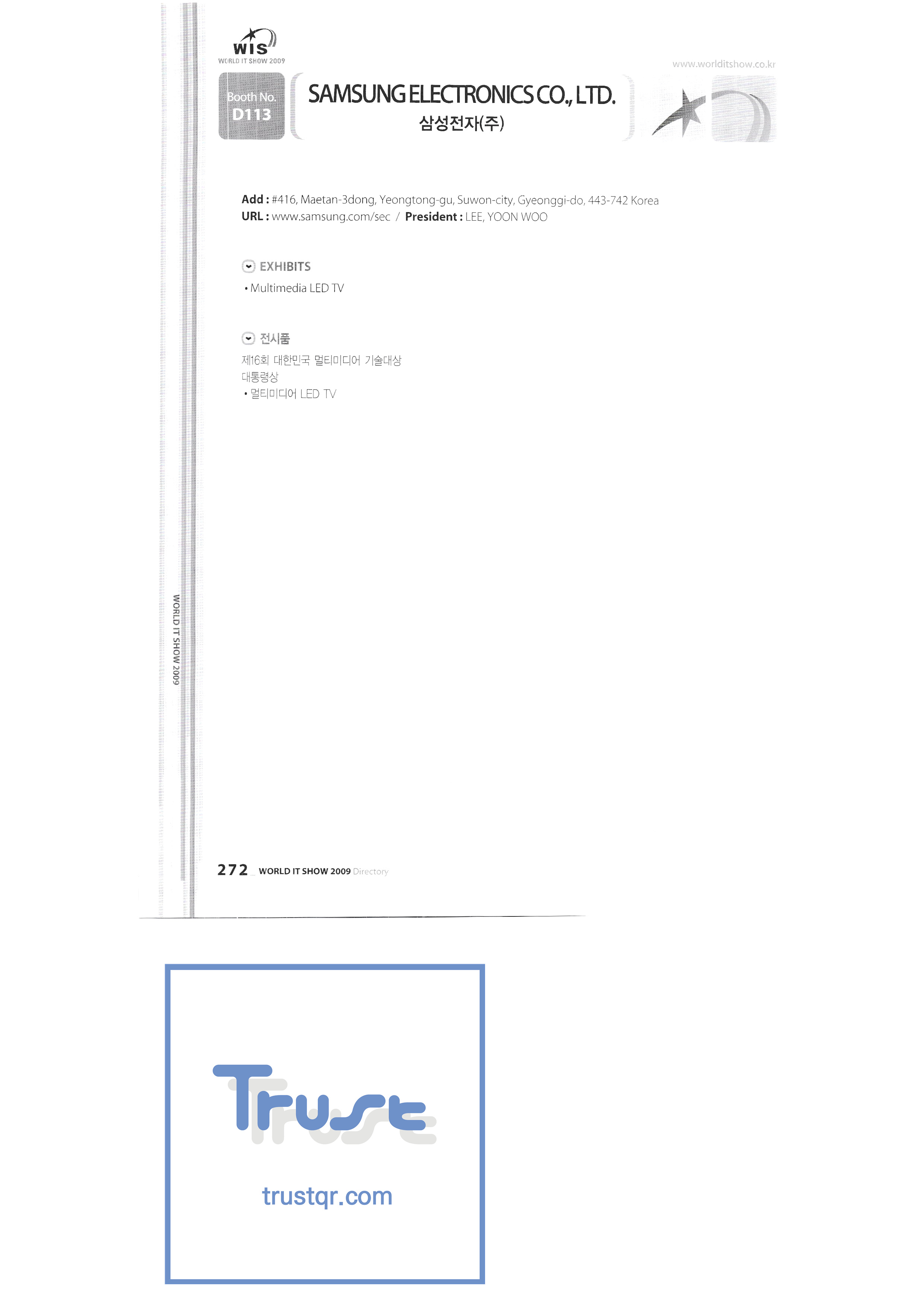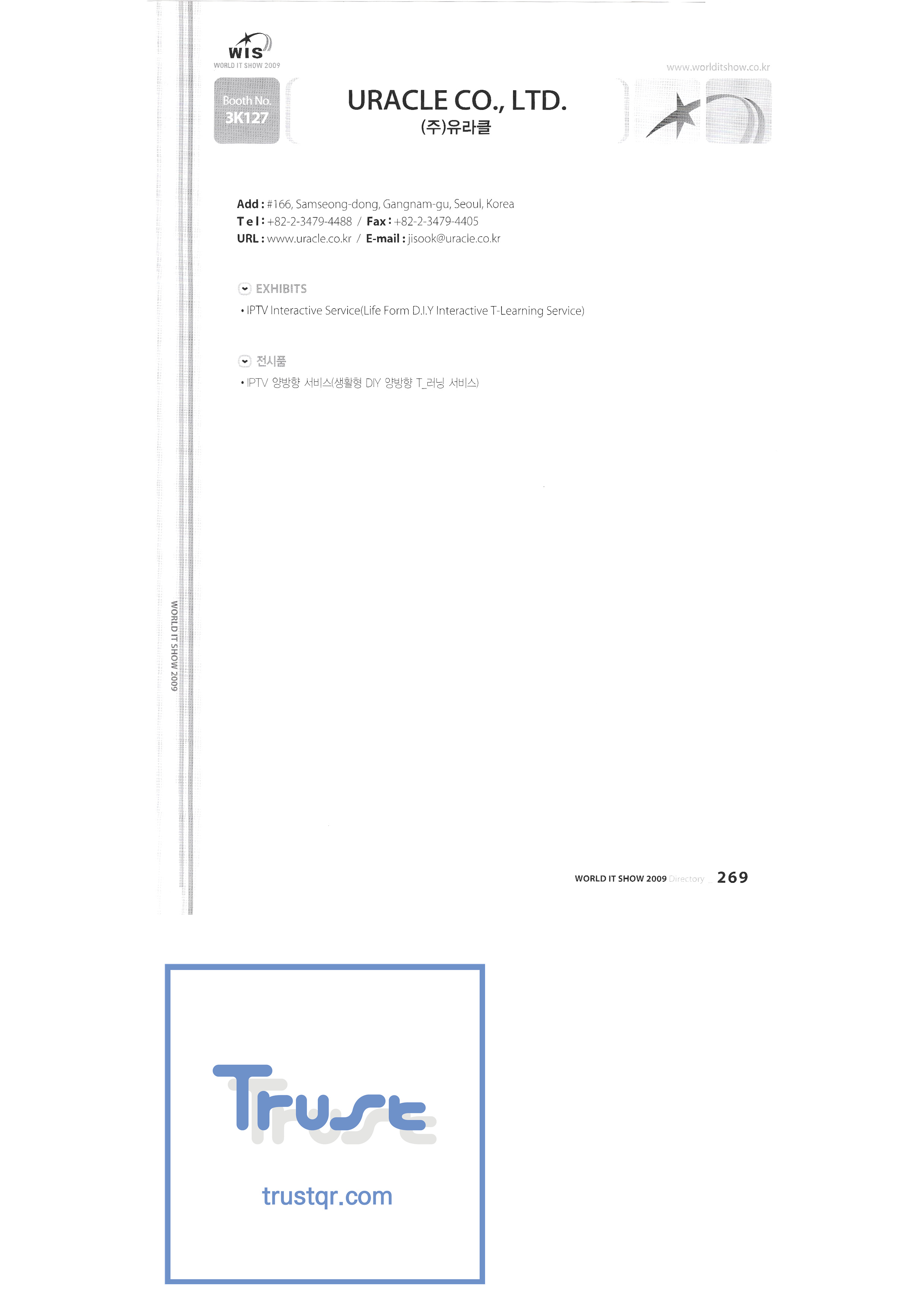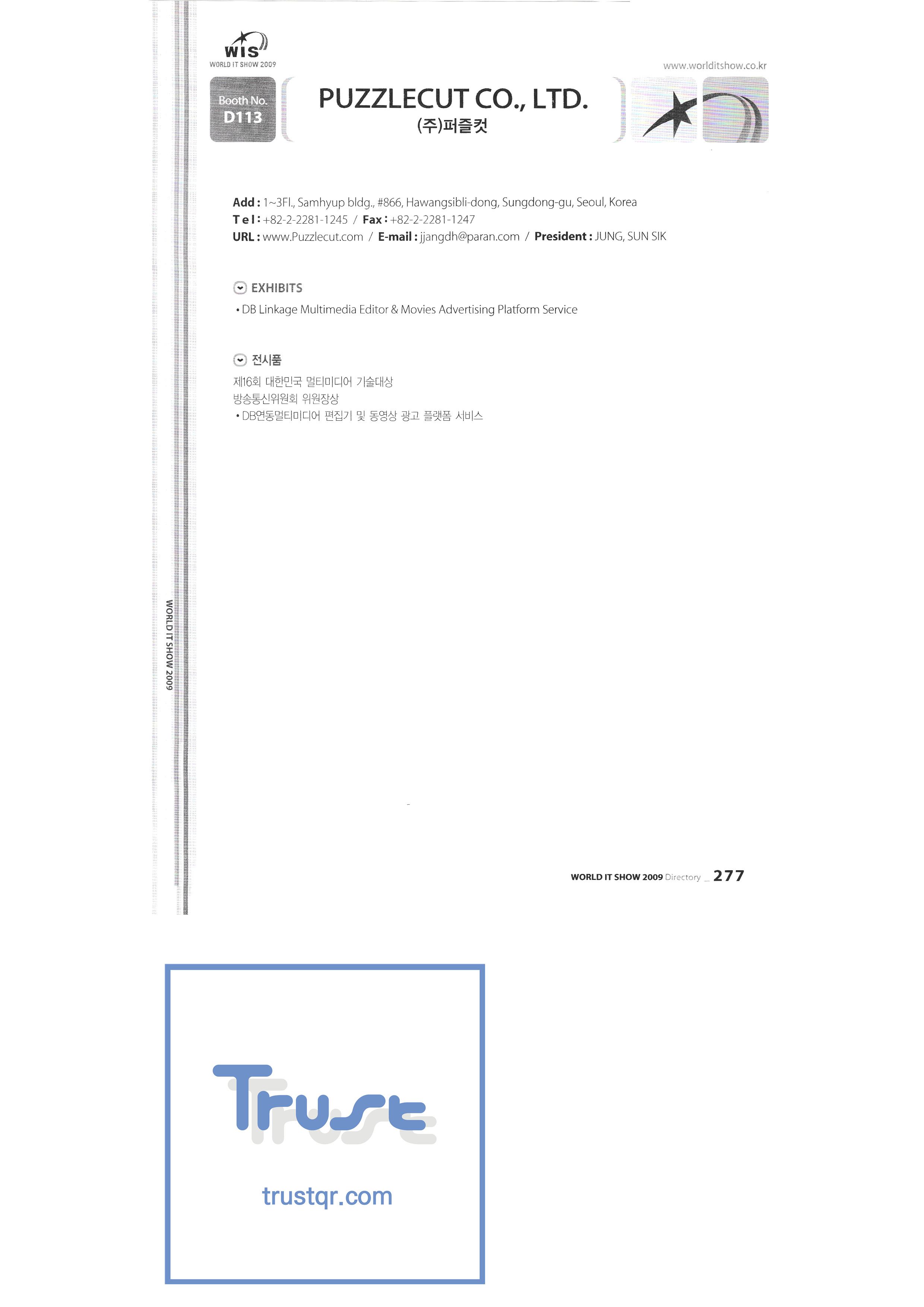 WORLD IT SHOW 2009-8 Euracle Co., Ltd. Genex Wave Co., Ltd./Mix Film Co., Ltd. Samsung Electronics LG Electronics TV Storm Samsung Onnuri Electronics Co., Ltd. Puzzle Cut Co., Ltd. Arion Games Co., Ltd. Live ABC Co., Ltd./ PoC Soft Co., Ltd. |