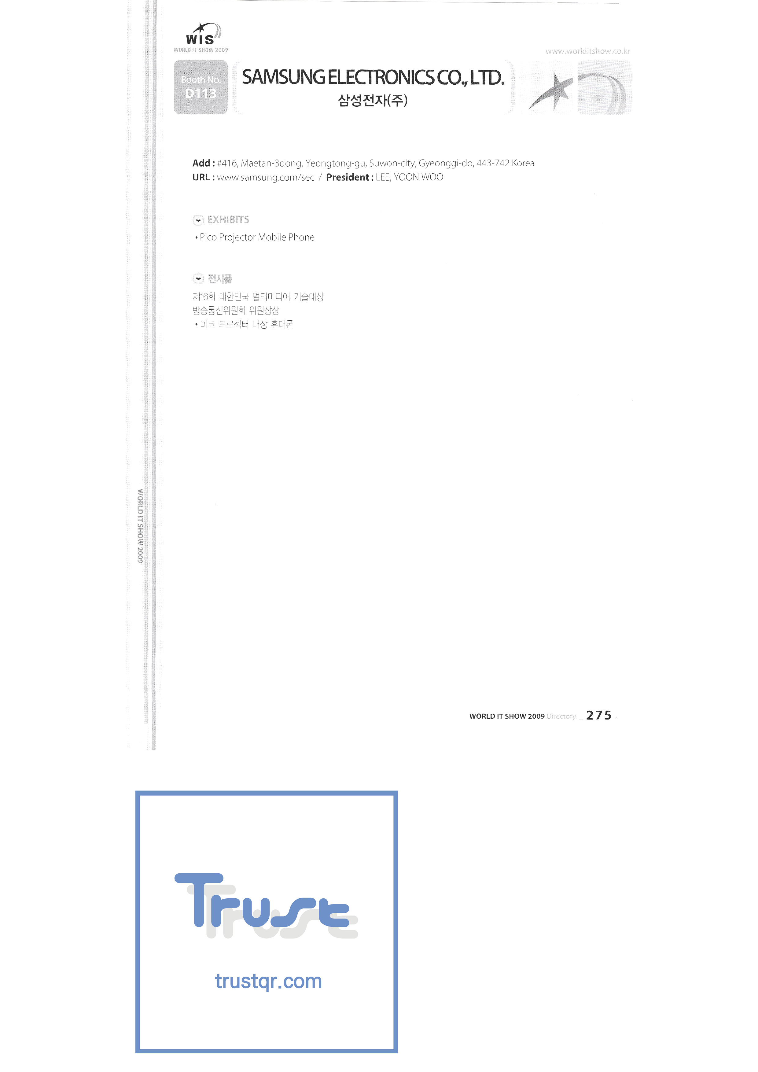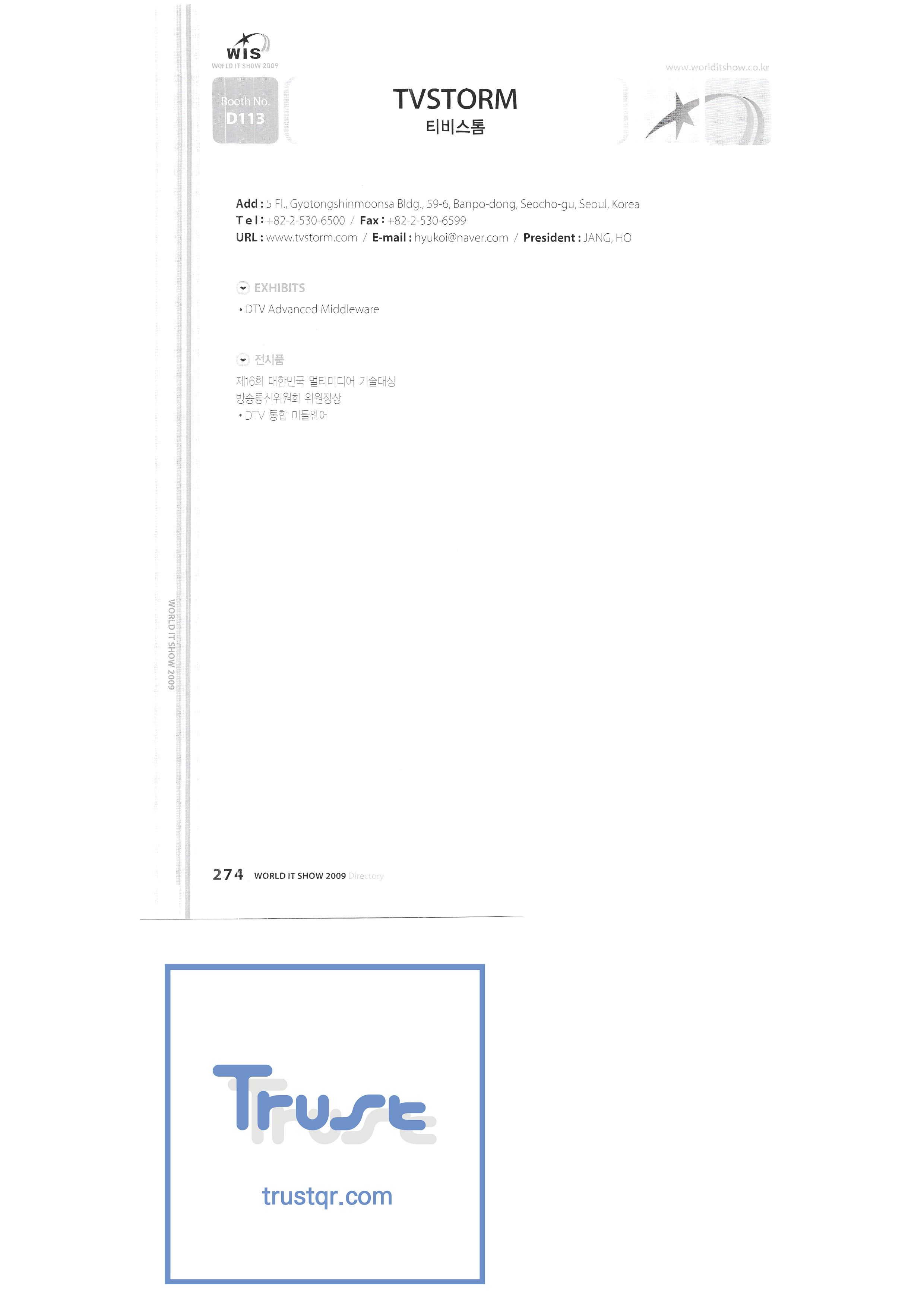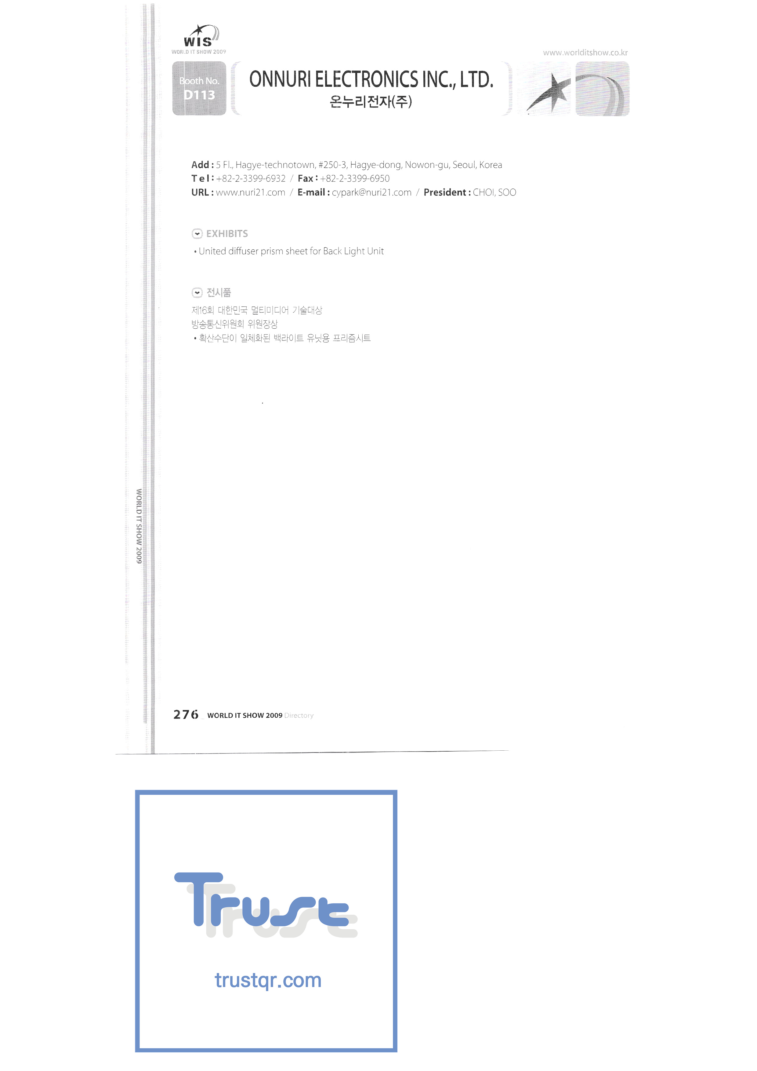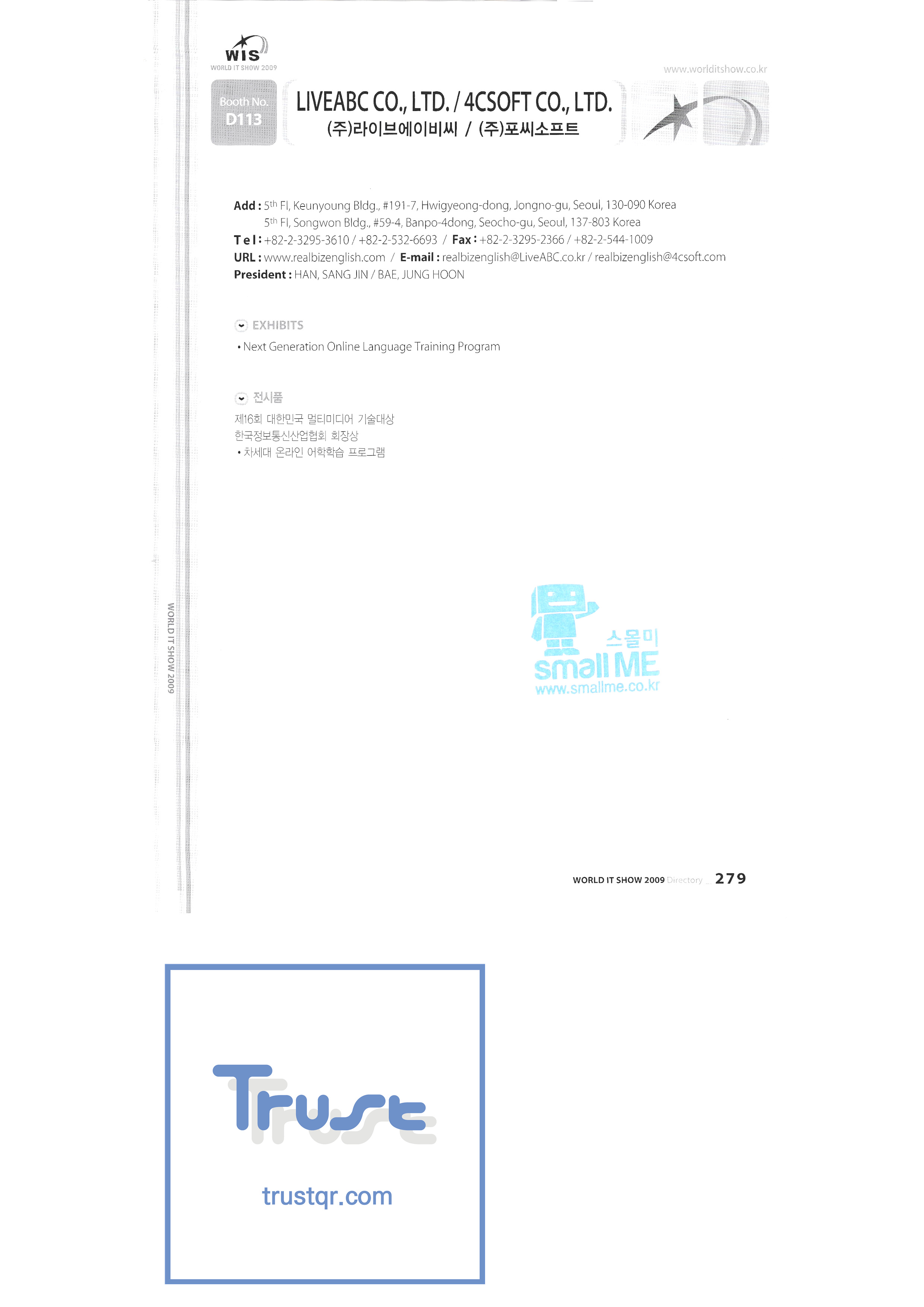 WORLD IT SHOW 2009-8 Euracle Co., Ltd. Genex Wave Co., Ltd./Mix Film Co., Ltd. Samsung Electronics LG Electronics TV Storm Samsung Onnuri Electronics Co., Ltd. Puzzle Cut Co., Ltd. Arion Games Co., Ltd. Live ABC Co., Ltd./ PoC Soft Co., Ltd. |