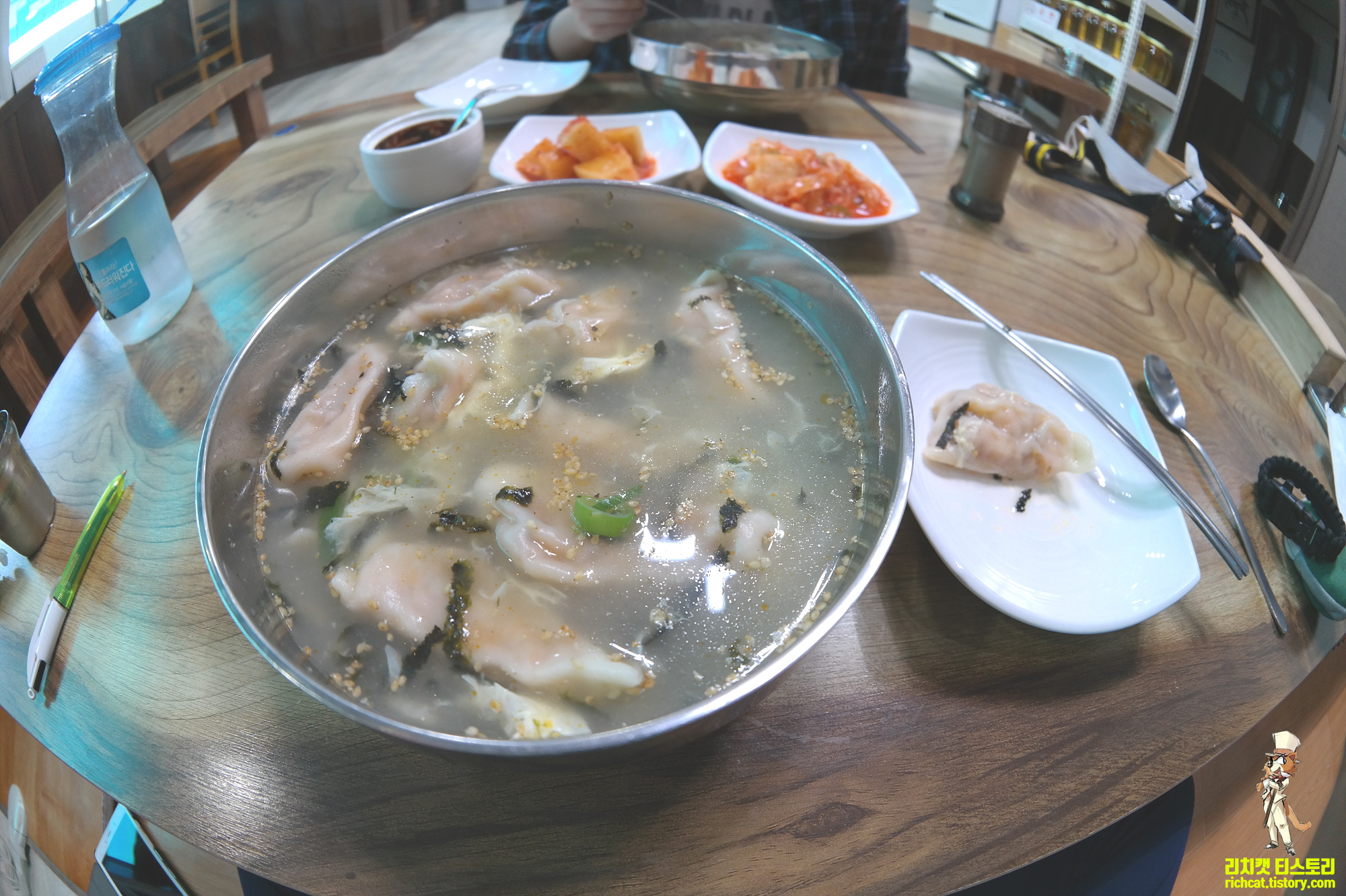 닭만두국 맛있었음. 8000원. 만두안에 닭이 들어 있다는...