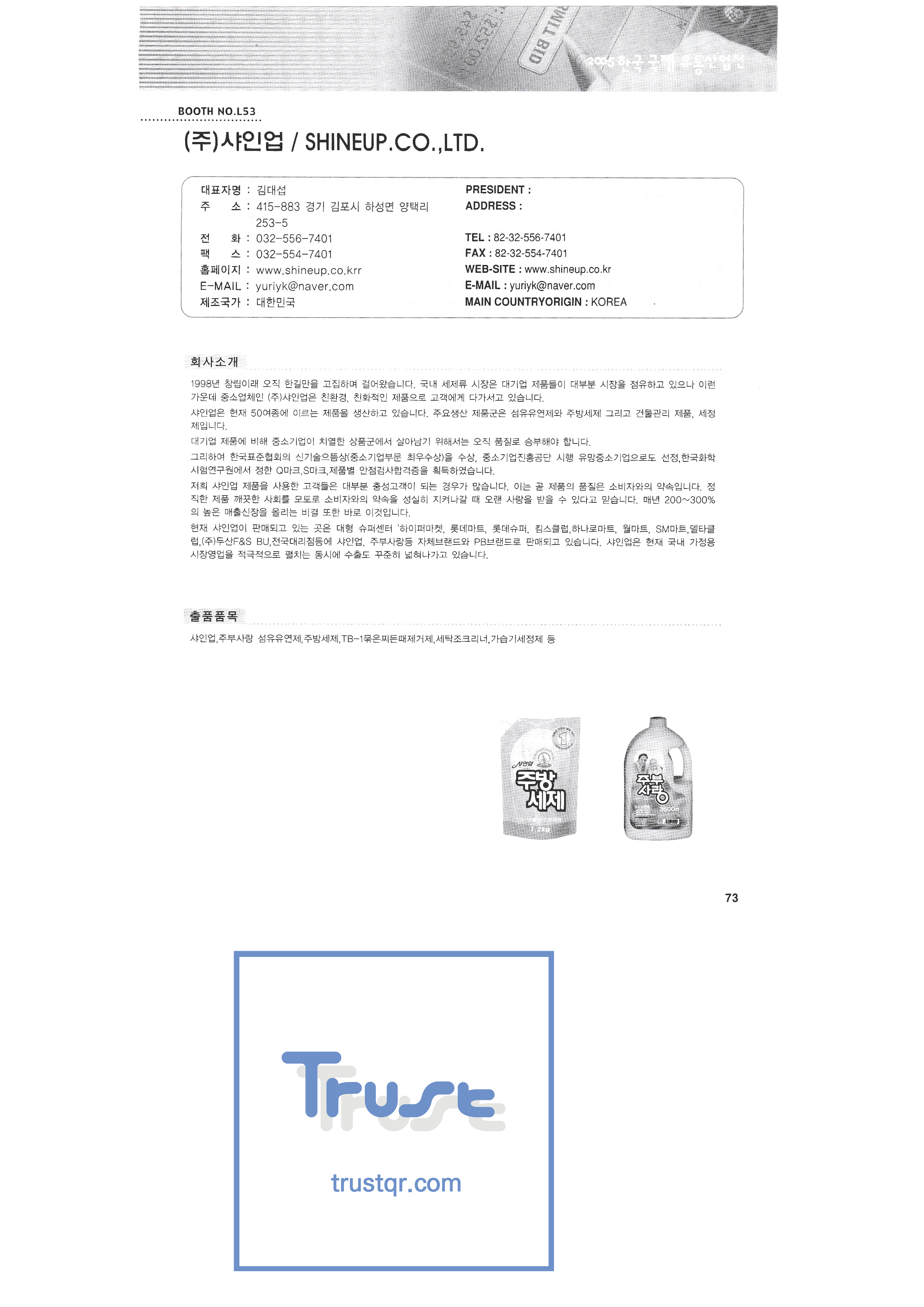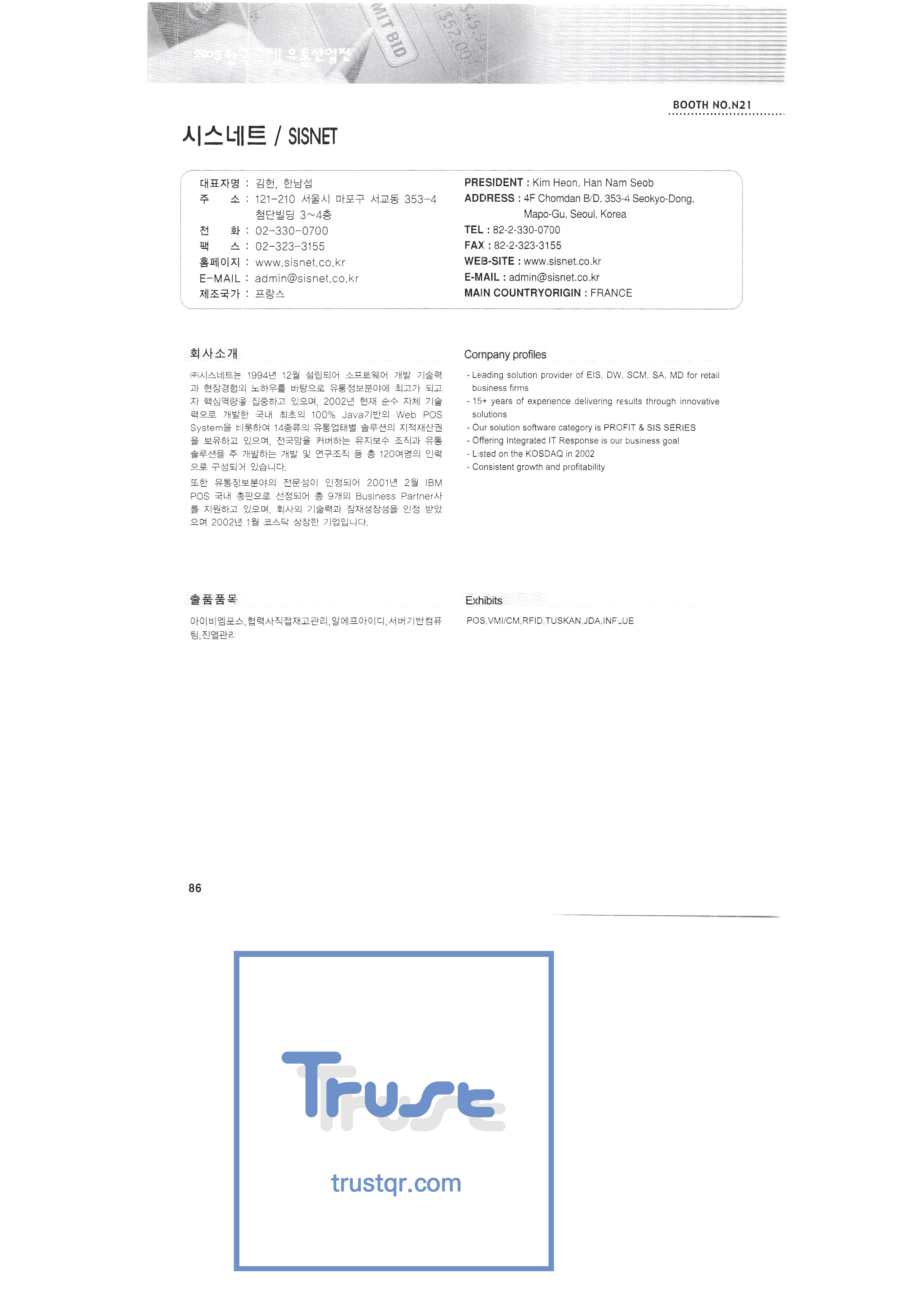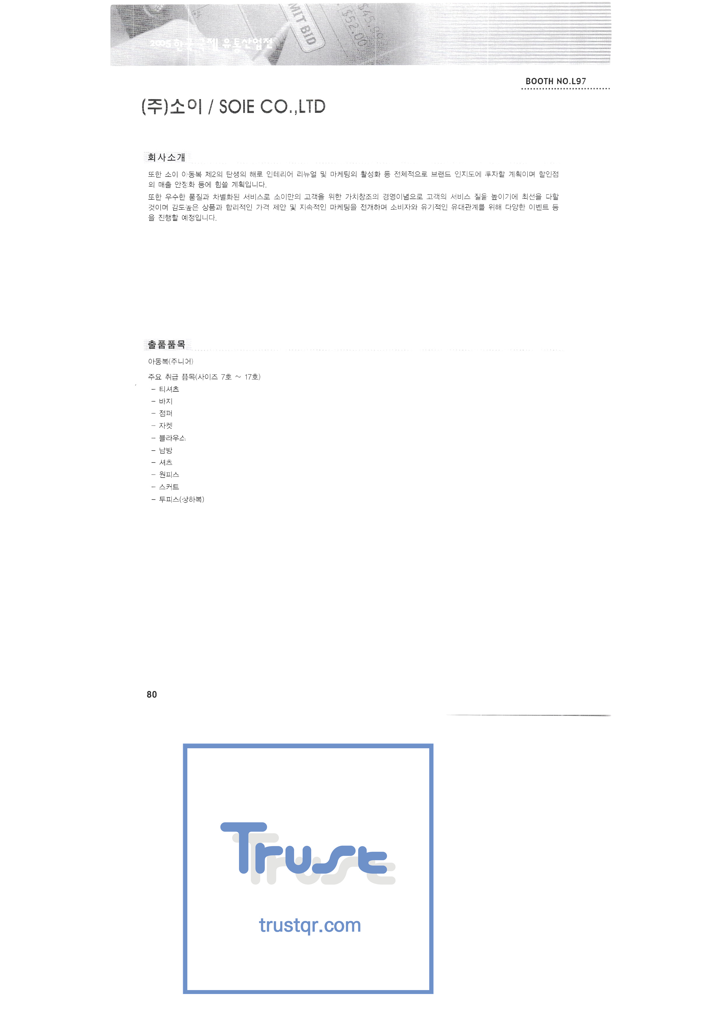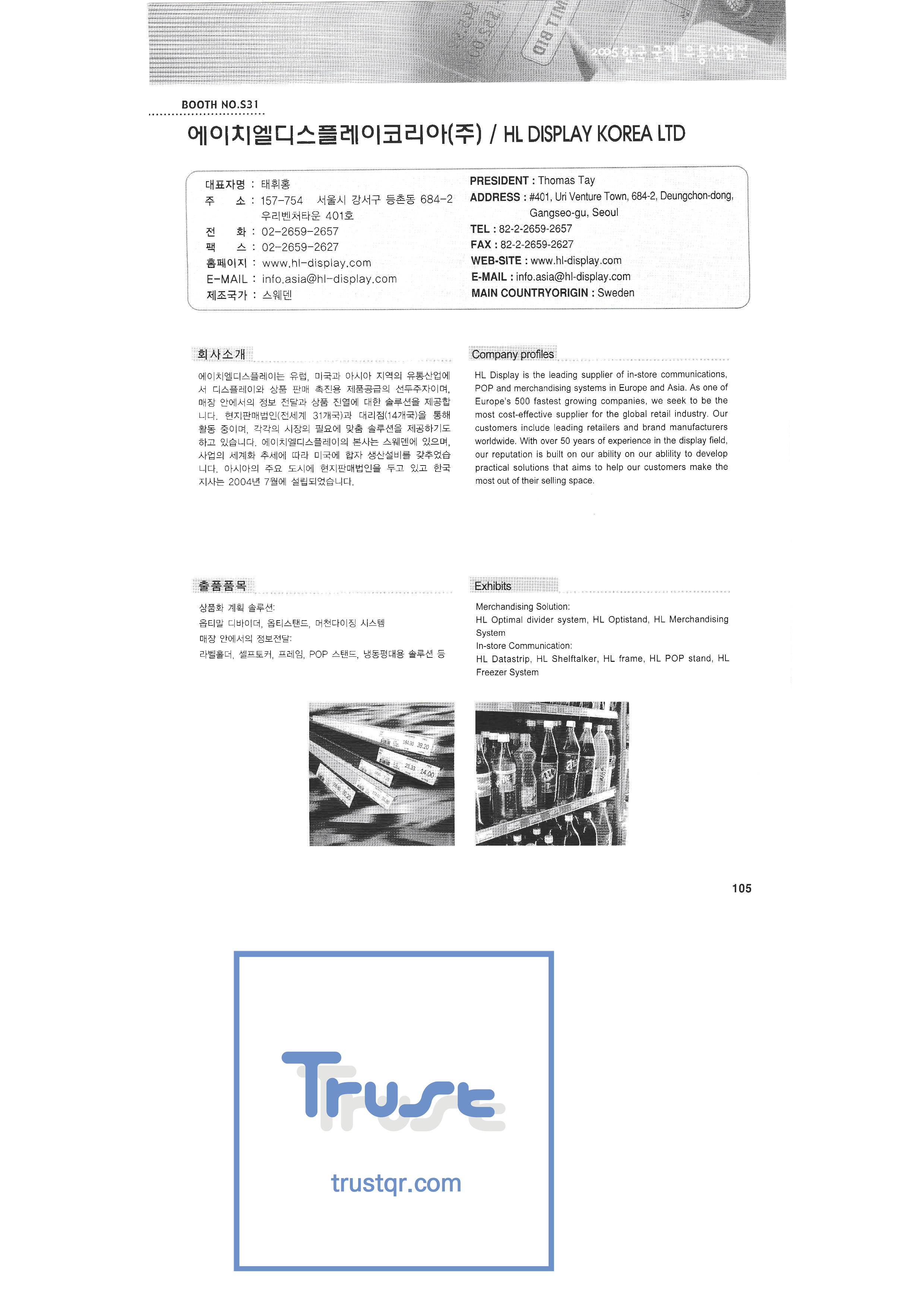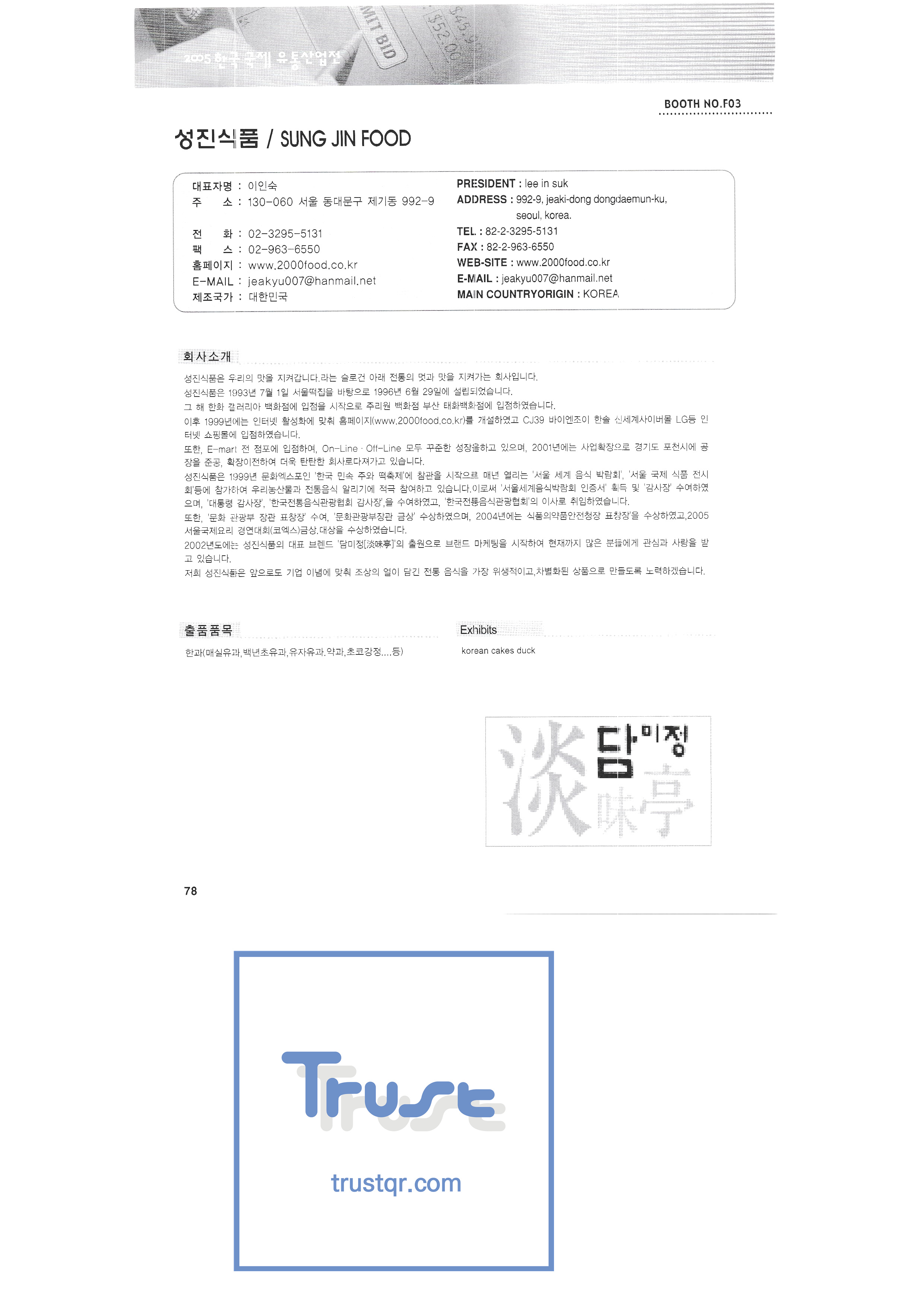 2005 Korea International Distribution Industry Exhibition-3 Sangha Gwangju Factory Sampyo Food Shine up Seoul Milk Cooperative Lyric cooking Sunjin Clean Fork Sunglim Paper Industry Sungjin Food Soi Senior trade Smit Industry Spobank Sigma Plus Cisnet Food journal Shingang Corporation Shingung Traditional Korean Confectionery CNP Tech Arum Acetech Astems Out system Iris Korea Ain Art Aju Electronic System Aekyung Hey SJ Palms Airvita ADT Security Aend System HL Display Korea A-Tech Envisual LG Household & Health Care Youngdong Tech Ottogi |