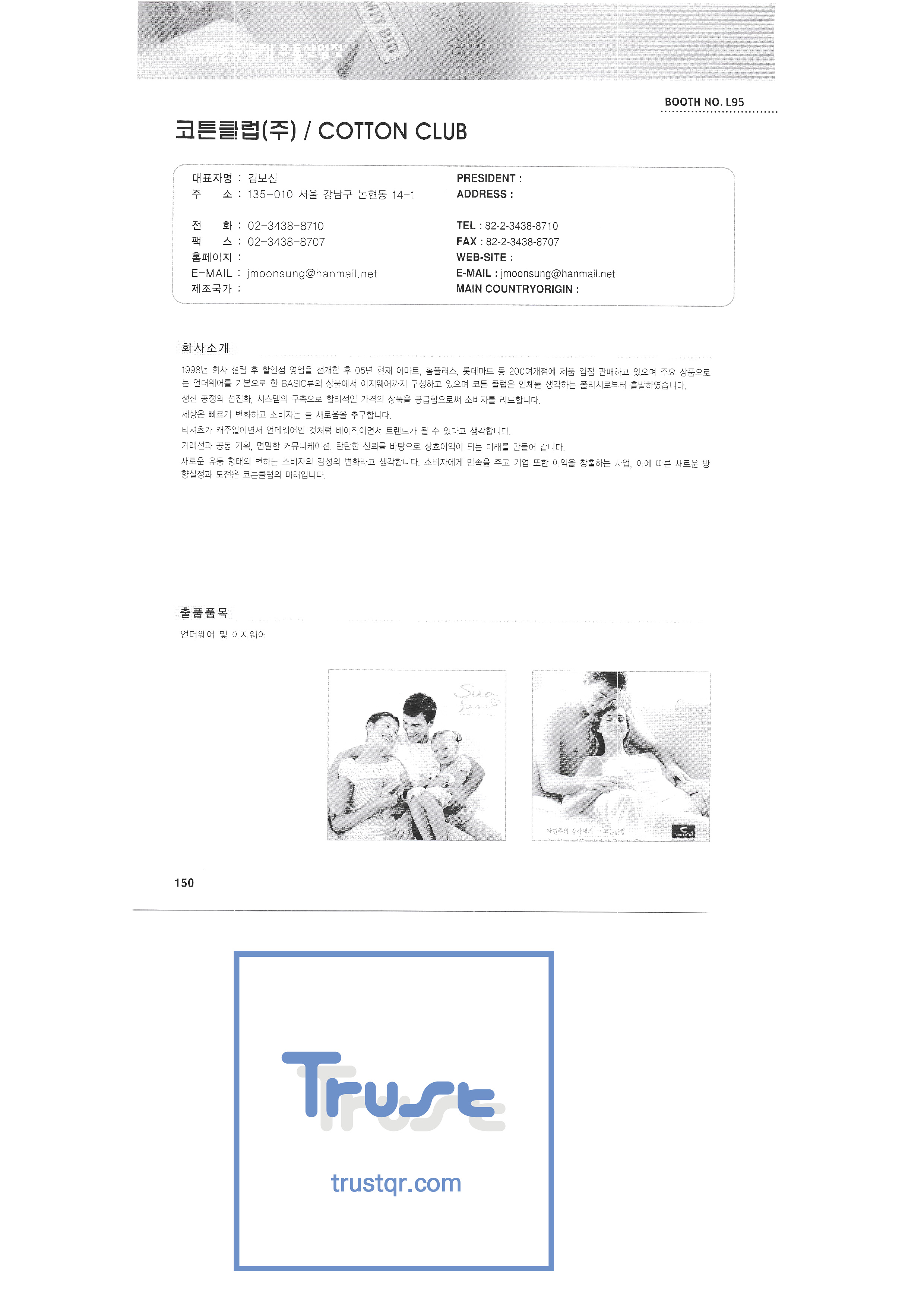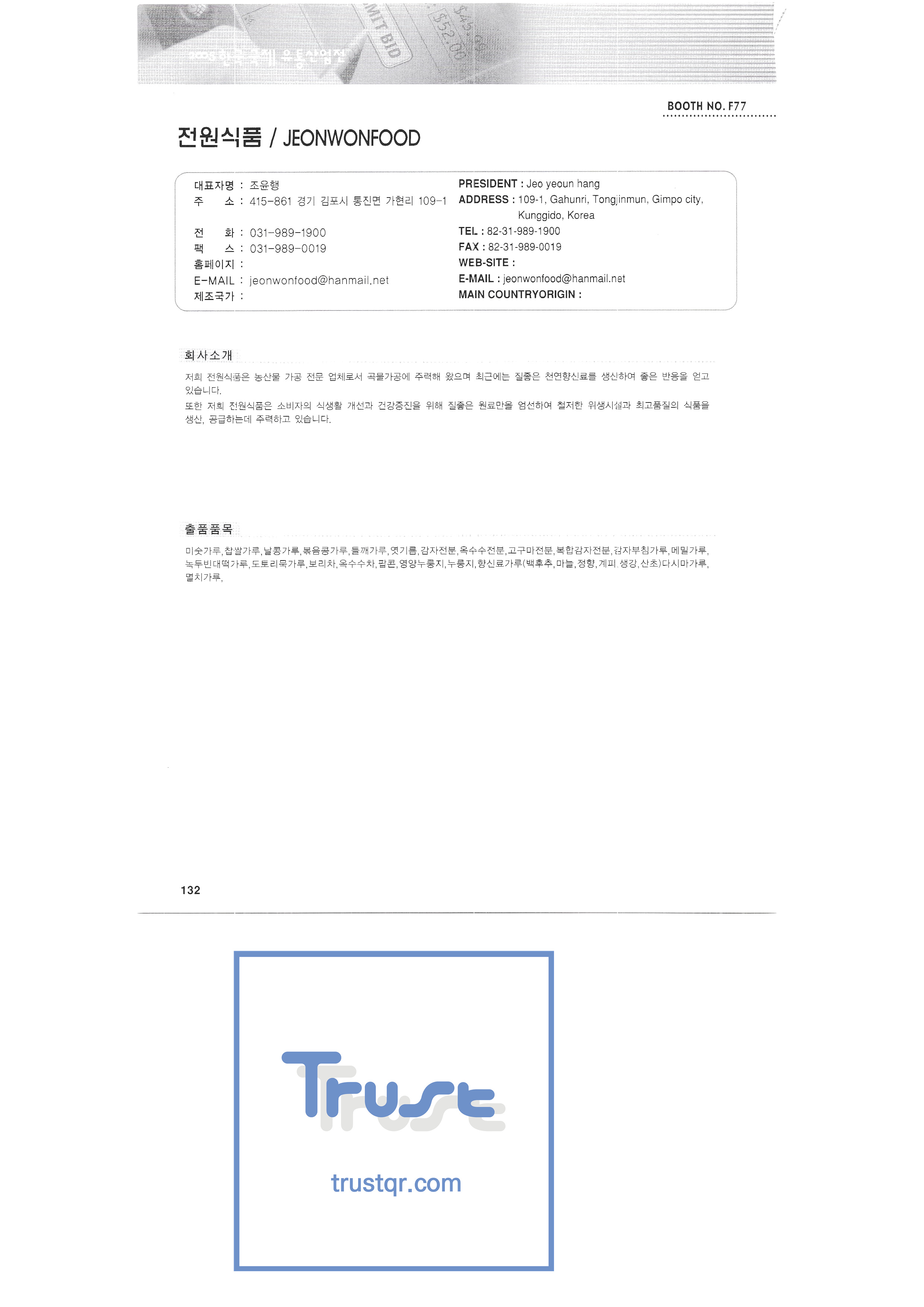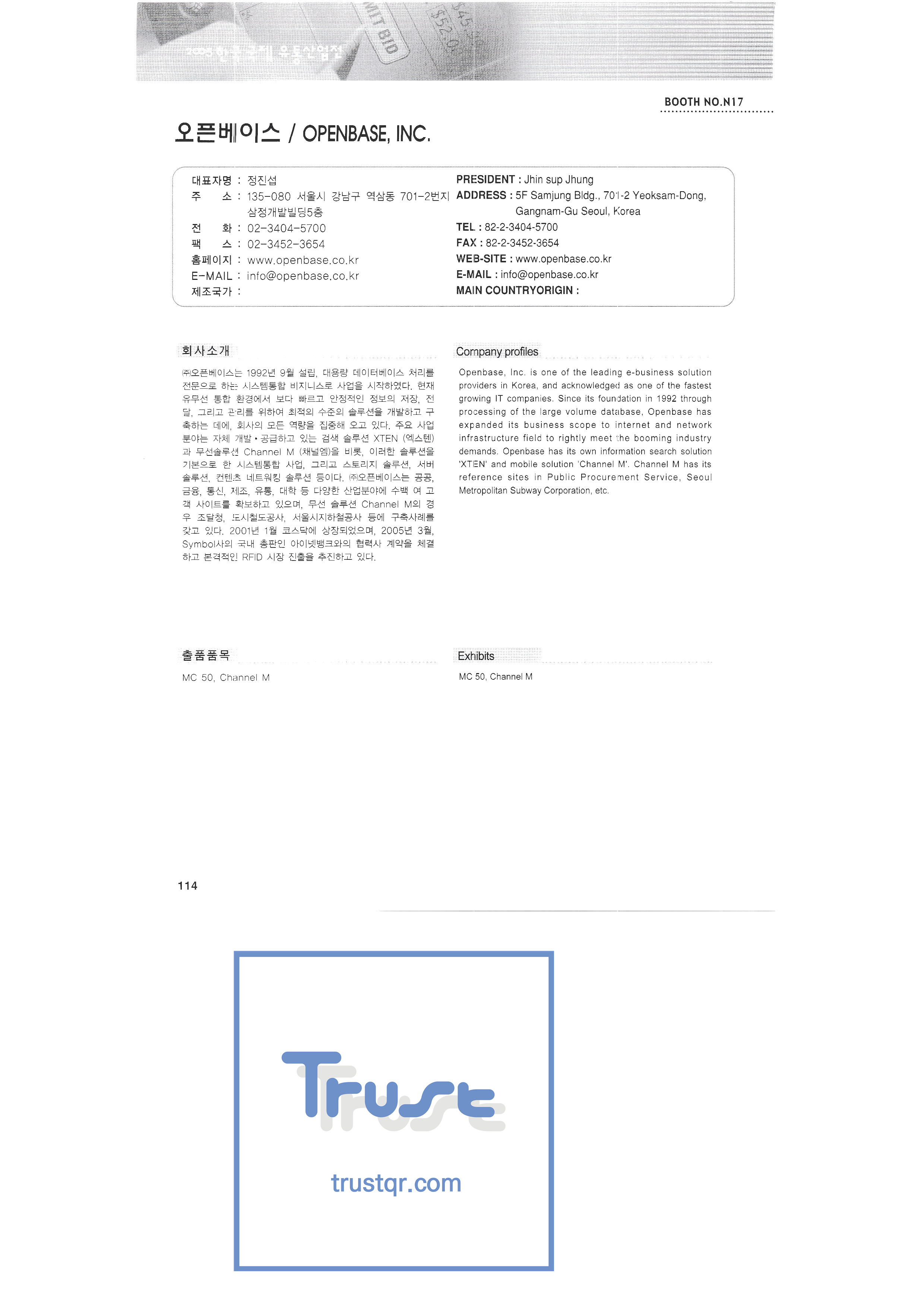 | 2005 한국 국제유통산업전 - 4 오렌지나라 오리온 오비맥주 오픈베이스 옥스포드 옥시레킷벤키저 옥천 우리와인 우성하이텍 우신엔티아이주식회사 월간 식품산업 윙스텍 유니레버코리아 서울지 유니참주식회사 유니코이엔지 유한엠엔시 유한킴벌리 인성캐스터 인터토이 인투텍 일등수산 전원식품 정우교역 제너럴밀스코리아 주식회사 제이엔에프 제주도 주연인트룹 지에스지엠 질레트코리아(유) 천하종합 첨단 청산유통 카렐코리아 케이.비.인터내쇼날 케이에스넷 케이제이지엘에스 케이티 코텍전자 코튼클럽 |