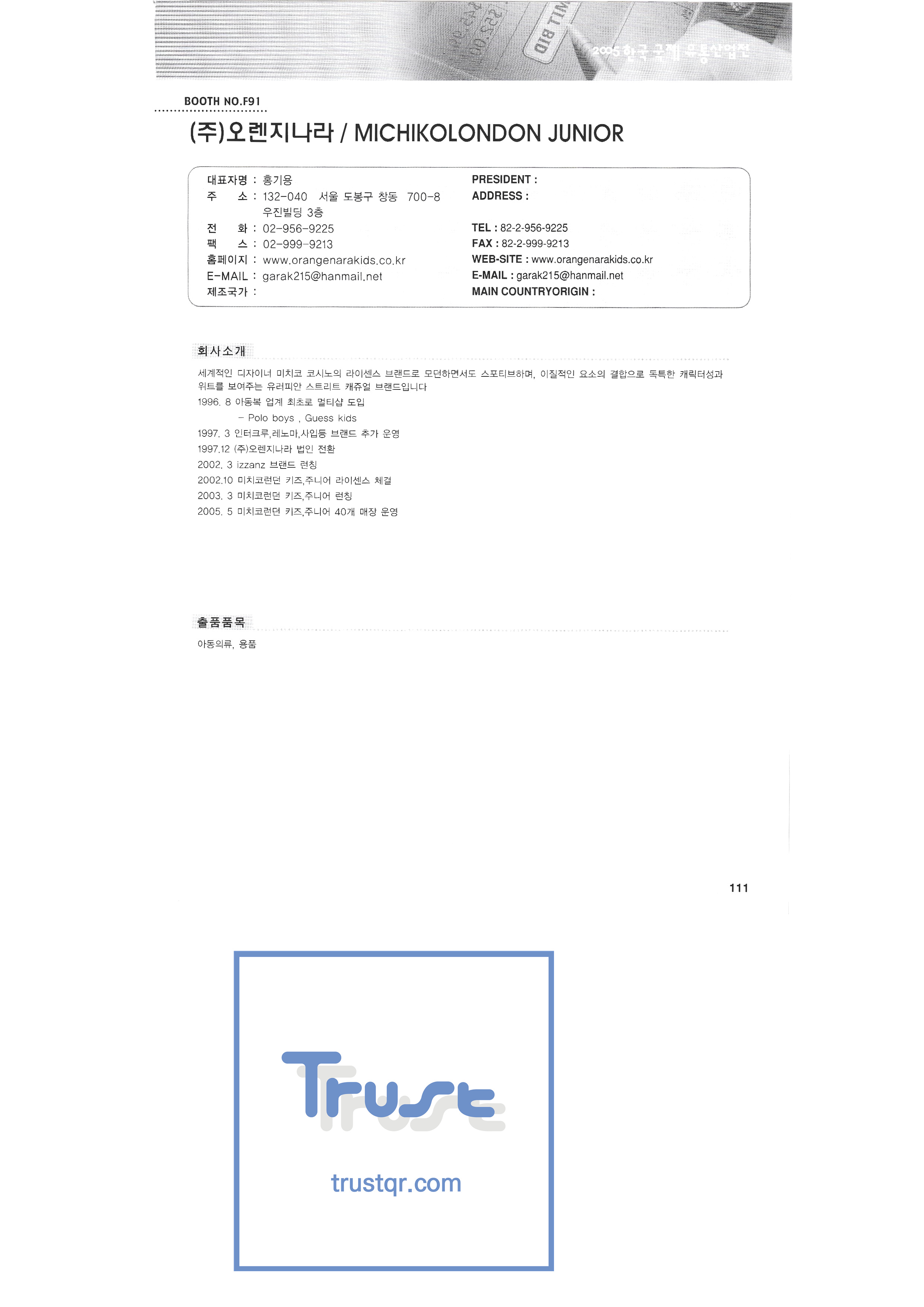 2005 Korea International Distribution Industry Exhibition-4 Orange country Orion Obi Beer Open base Oxford Oxyrekit Benckiser Okcheon Woori Wine Woosung Hitech Wooshin NT Co., Ltd. Monthly food industry Wingstack Unilever Korea Seoul Magazine Unicharm Co., Ltd. Unico ENG Yuhan M&C Yuhan Kimberly Insung Caster Intertoy Intotech First Class Fisheries Power food Jeongwoo Trade General Mills Korea Co., Ltd. J&F Jeju Island Starring troop GSGM Gillette Korea Co., Ltd. All over the world peak Liquidation distribution CAREL KOREA K.B.International KSnet KJ GLS Katie KOTEC Electronics Cotton Club |
