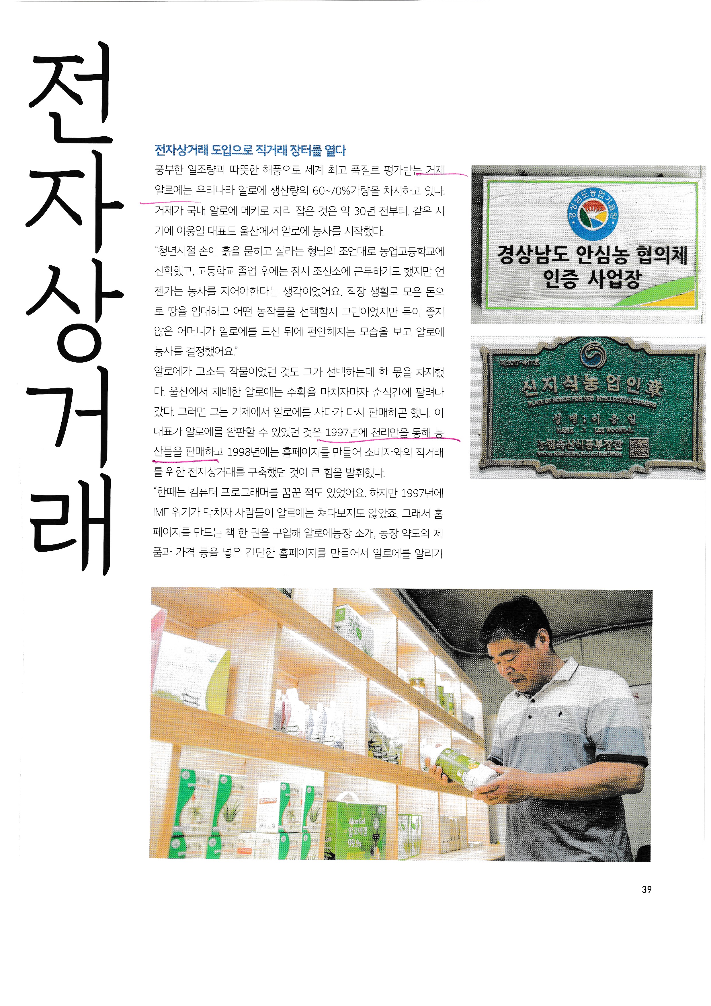 알로에 쥬스를 좋아해서 많이 마셨는데...이 분이 생산한거 아닐런지...