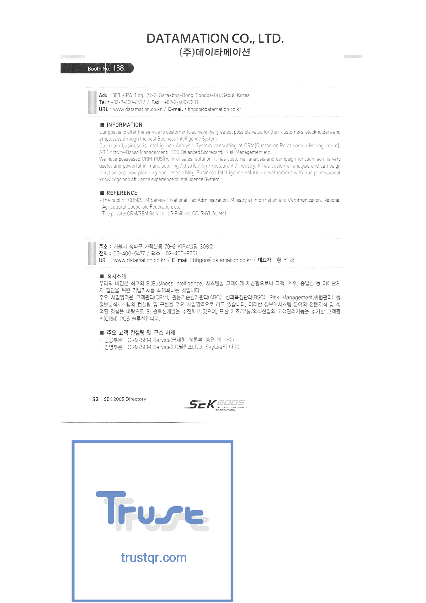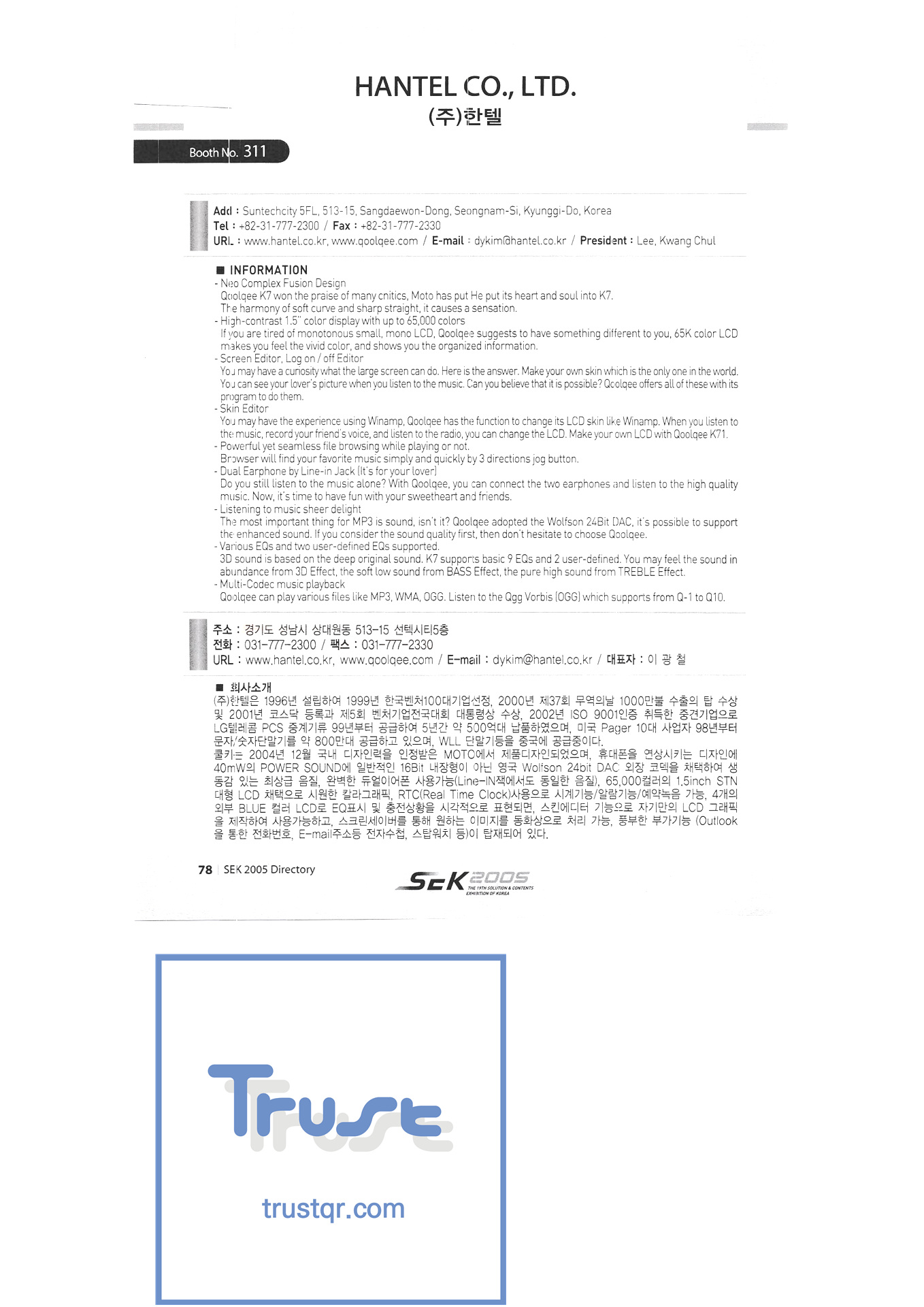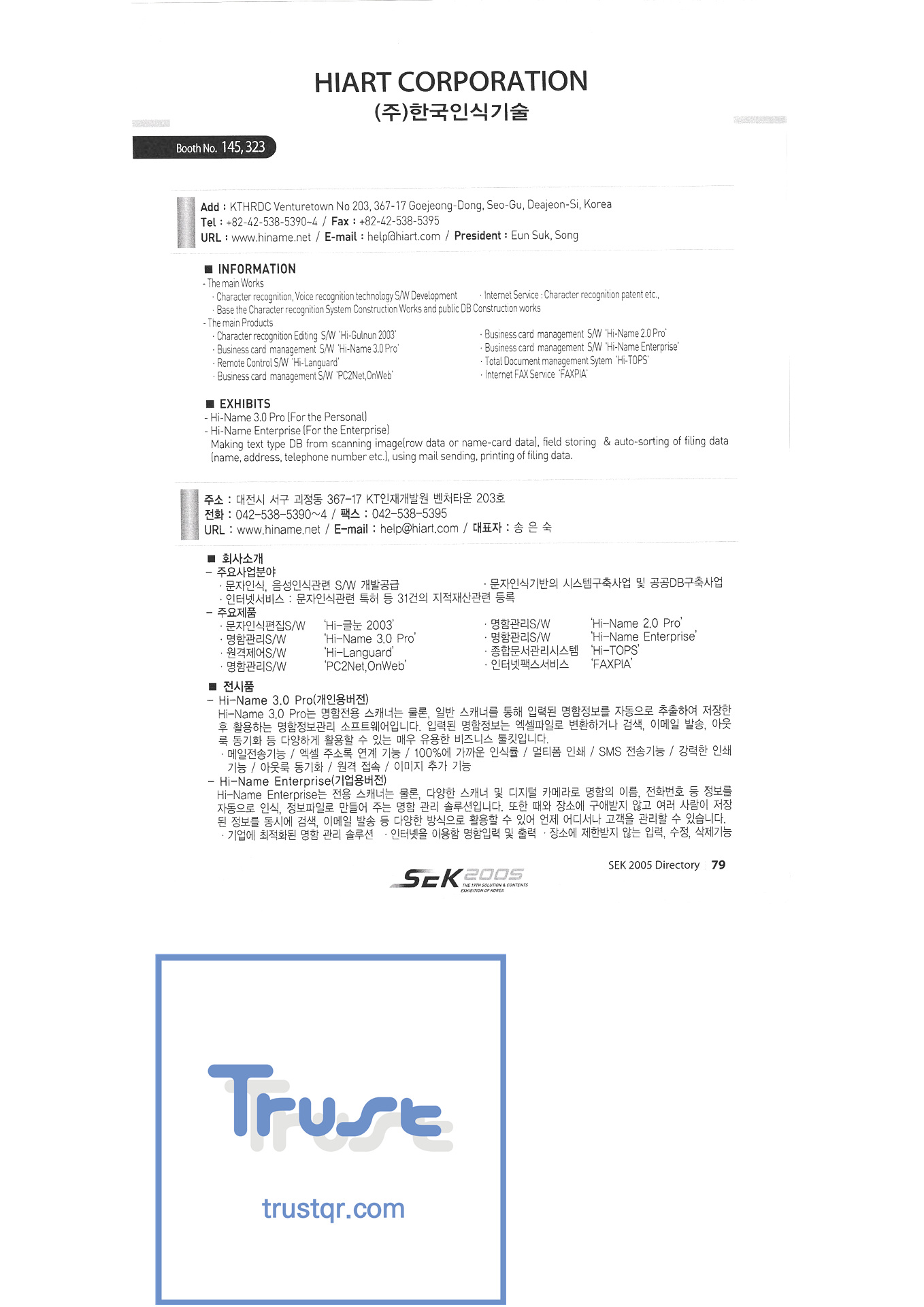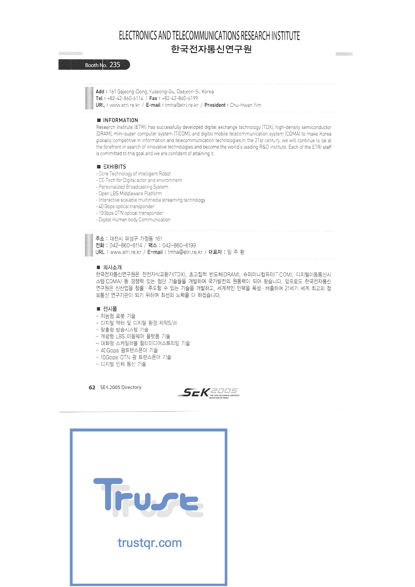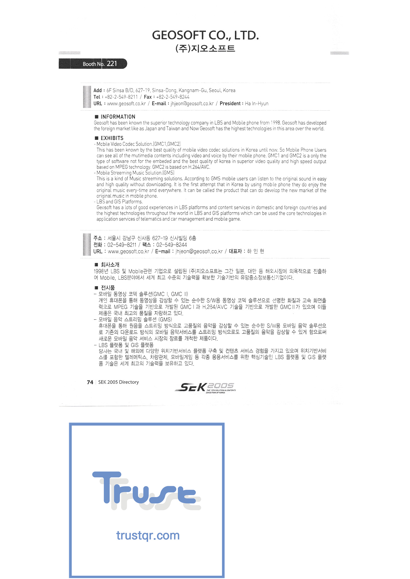 C&S Network C&S Technology Seyeon Technology Green est Cisven Cisco Systems Korea Clounix Coa Voice Kosi Covision Cross Tee C Crown Publisher Cyclyde Korea Daedeok Techno Valley Daewoo Teletech Datamation Dabo Link Multizone technology Devpia Digi Tommy Dongsung Media DTS Information & Communication DTV Interactive Edu Box Aegis Electronics and Telecommunications Research Institute Electrobeat (Comtel Technology) Korea EMC Computer Systems ENJ Soft Papyrus Reason Soft I rank Pine Bee FCI Freesat Fusion Soft Zen Networks Geosoft Goodsen Technology GT Electronics Hangul and Computer Han tell Korean recognition technology H Planning |