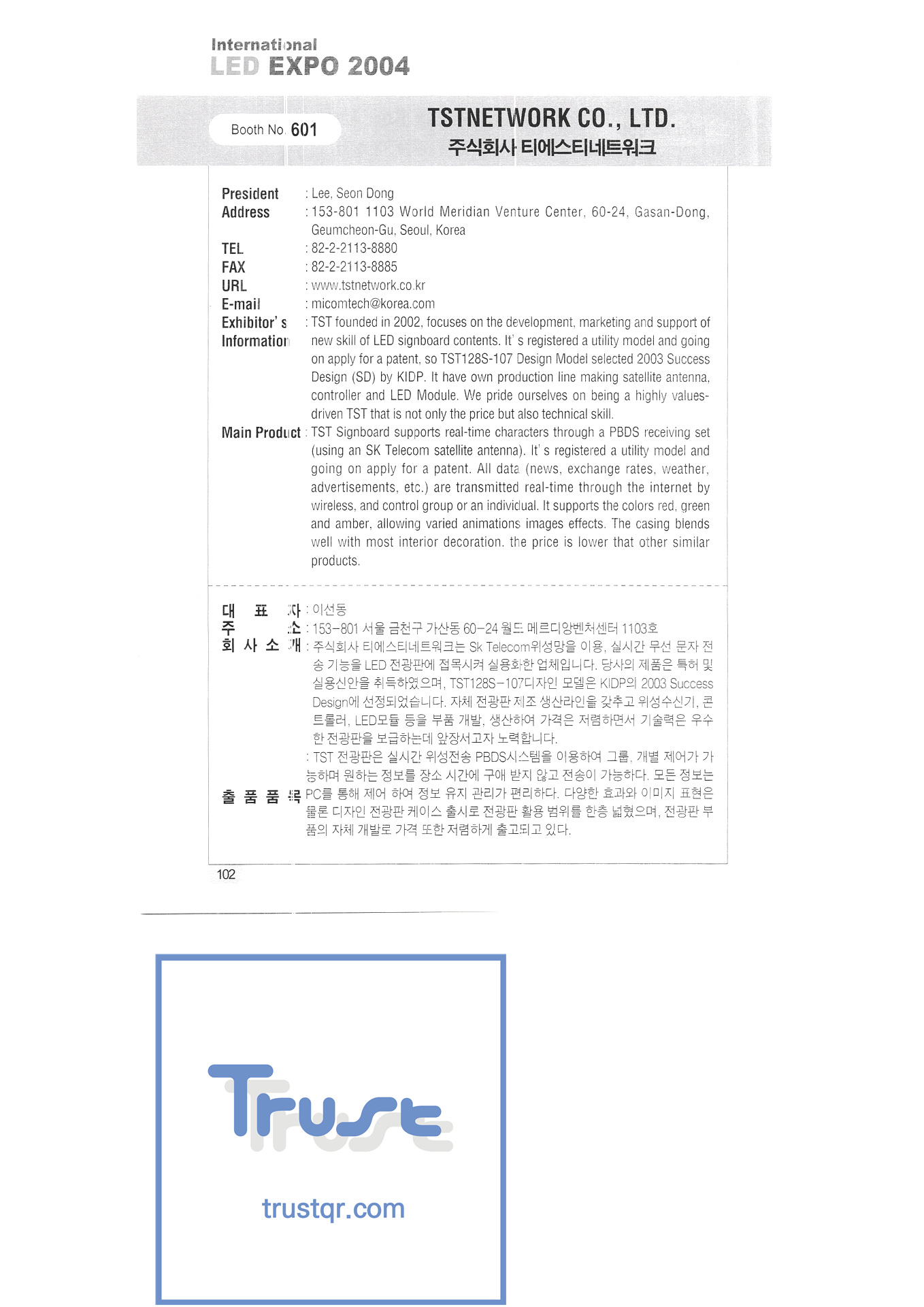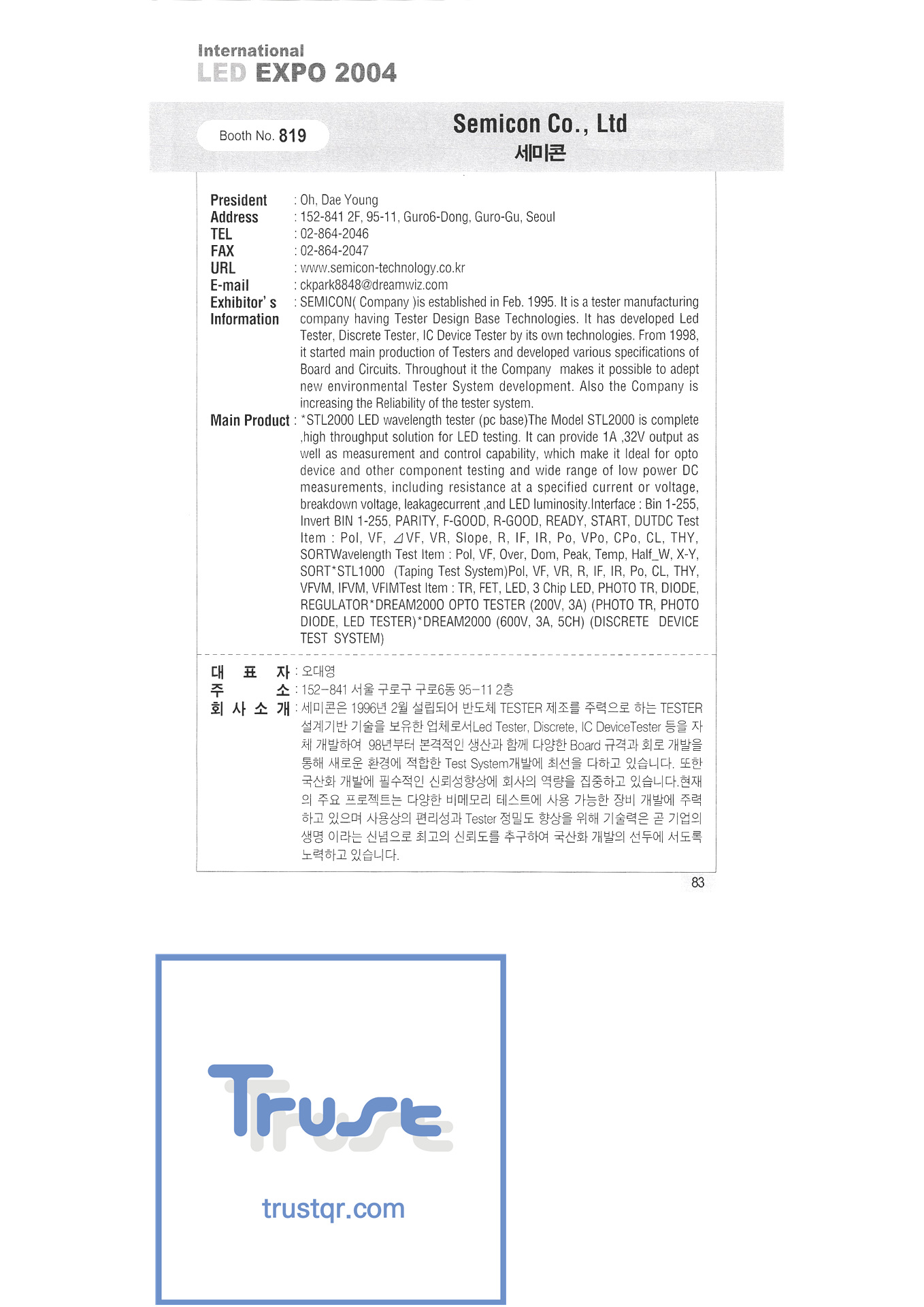 | "Photonics Industry & Technology Development Association(PIDA)" 주식회사 팝사인 ㈜새론 삼성전기㈜ 세미콘 ㈜세명에버에너지 SHARP LIGHT OPTO ELECTRONICS Co.,Ltd "Shen Zhen Pepnice Opto Electronics Technology Co.,Ltd." Shenzhen BOE Intelligent Display Technology Co.,Ltd "Shenzhen Golden Moon Light Source Technology Development Co.,Ltd" Shenzhen HONGYA OPTO Electronic Co.,Ltd ShunDe Corso Electronics Co.,Ltd ㈜싸인텔레콤 ㈜신코 에스엔유프리시젼㈜ ㈜써니테크무역 태종 이.에스.티 Taiwan Oasis Technology Co.,Ltd 테크월드㈜ ㈜테리텍 ㈜더, 넷스 Tongzhou Puri Lighting Co.,Ltd ㈜티에스이 주식회사 티에스티네트워크 빛샘전자주식회사 |