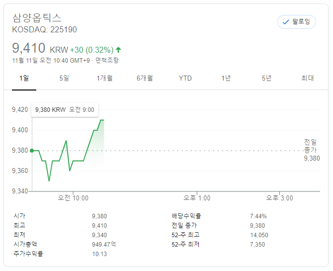 삼양옵틱스 : 7.44% : 배당율은 높은데...실적이 엉망이다. 고민중....