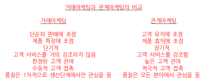 거래마케팅과 관계마케팅의 비교
