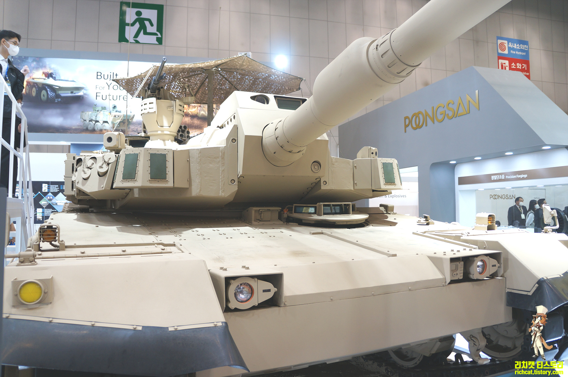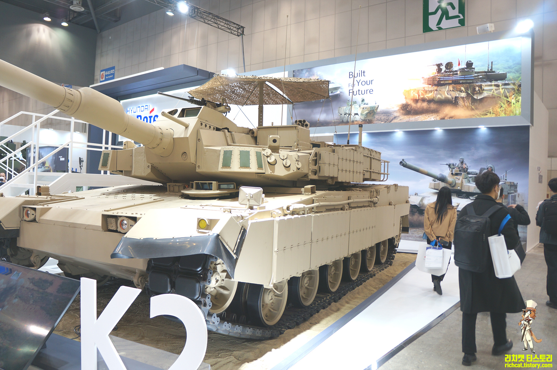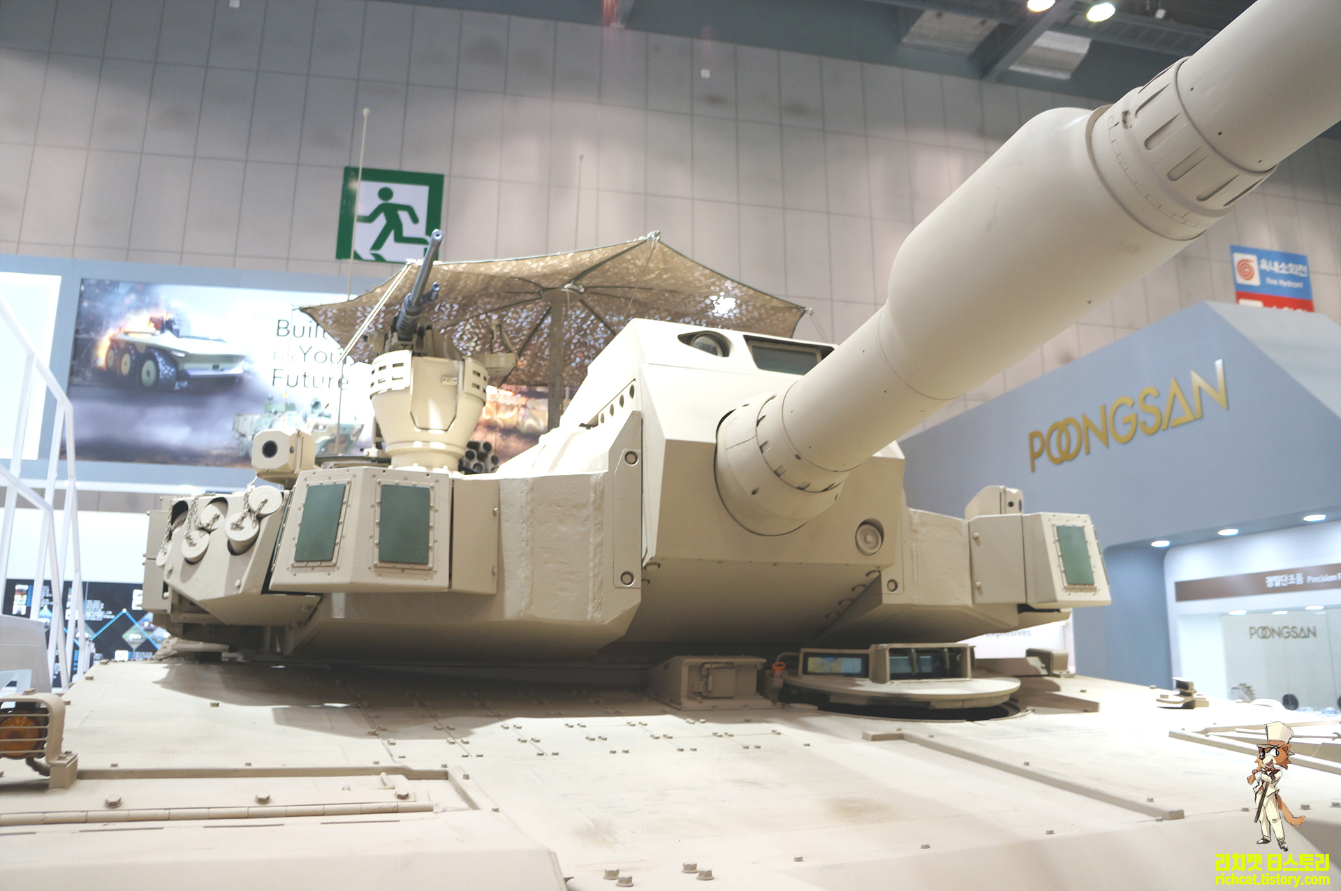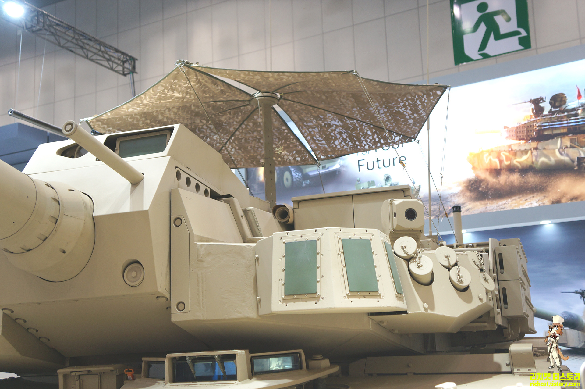 ㅋ 멋진 K-2 흑표. 사막 페인팅 버전... 전차장을 위한 파라솔이 극강임. ㅋㅋㅋ