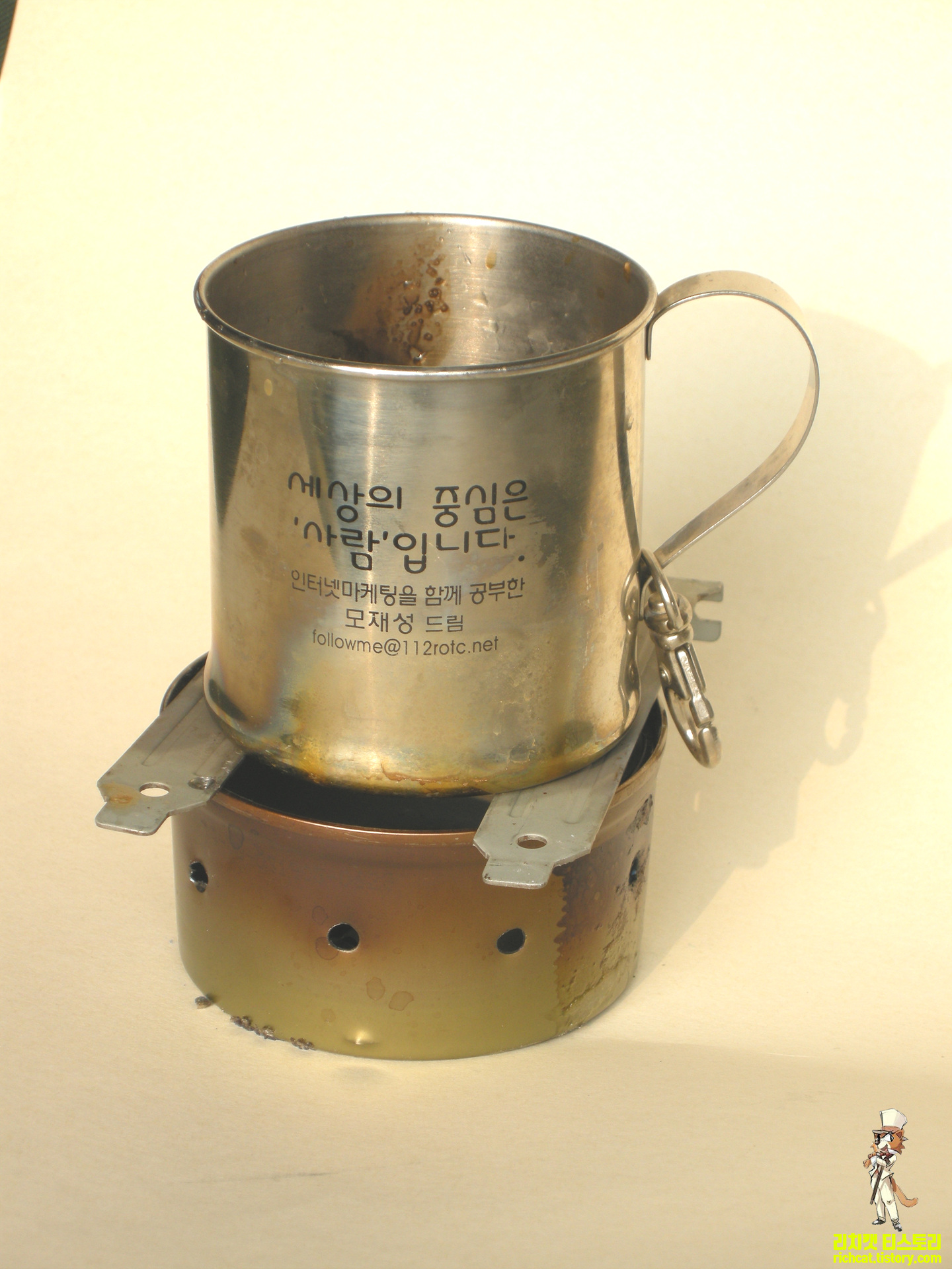 고체연료 소형 2개 정도 넣고서...커피 1-2잔 끓일수 있었던 기억이....
