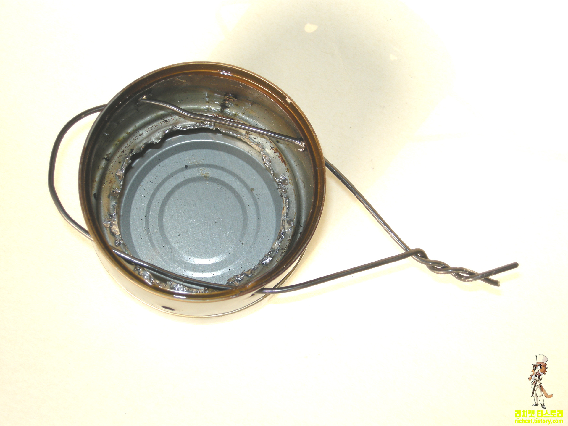 참치캔,연어캔과 옷걸이 철사로 제작.