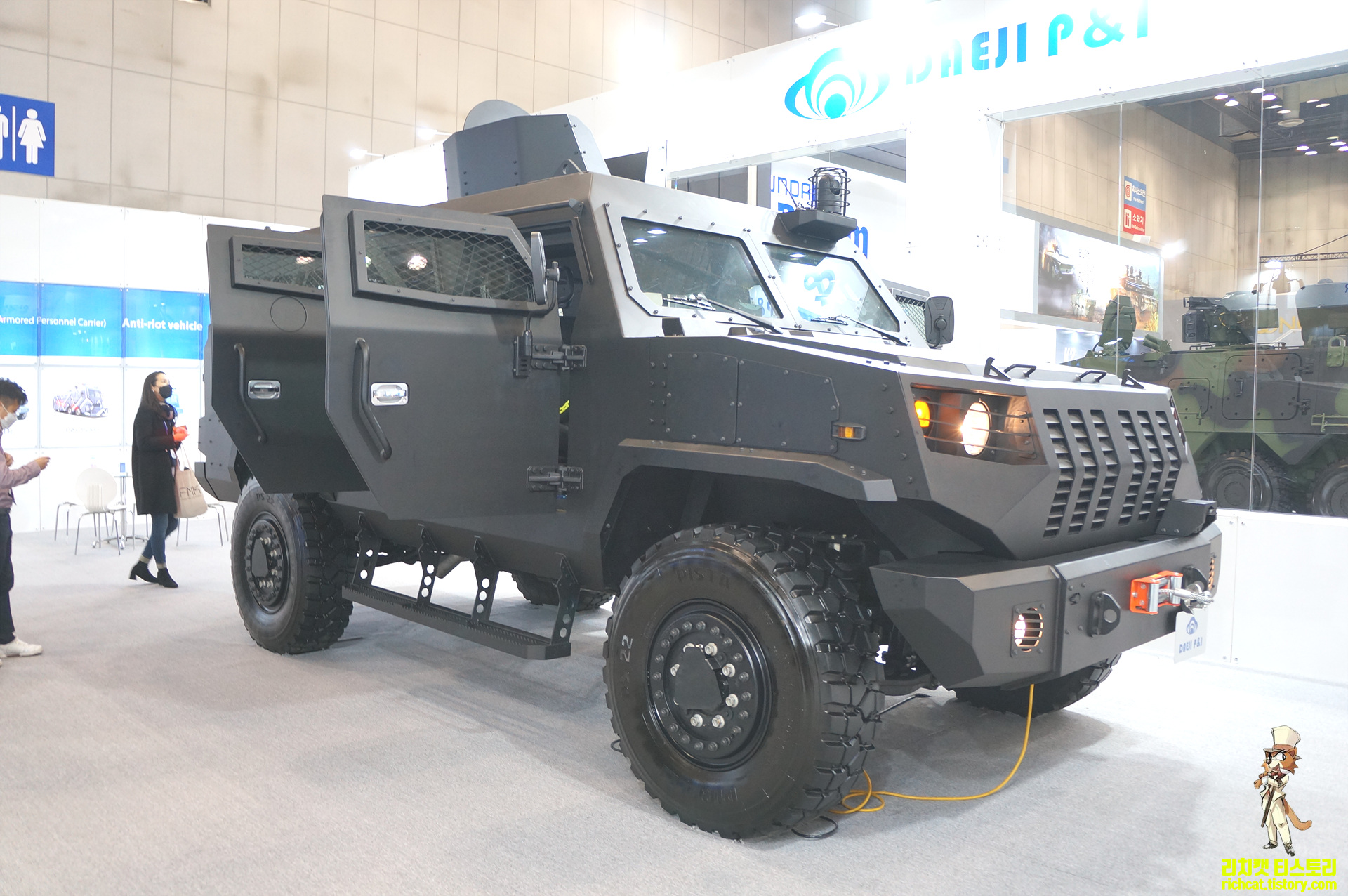 공차중량만 10톤인 막강한 장갑차량...대인지뢰까지도 방어가 된다고 함. 단 대전차지뢰는 방어가 안되는 상황이라..향후 바닥에 V바닥화 해서 대전차지뢰 방어도 모색중이라 한다. 가격도 알게 되었다. ㅎㅎ 해외수출 해봐야지...