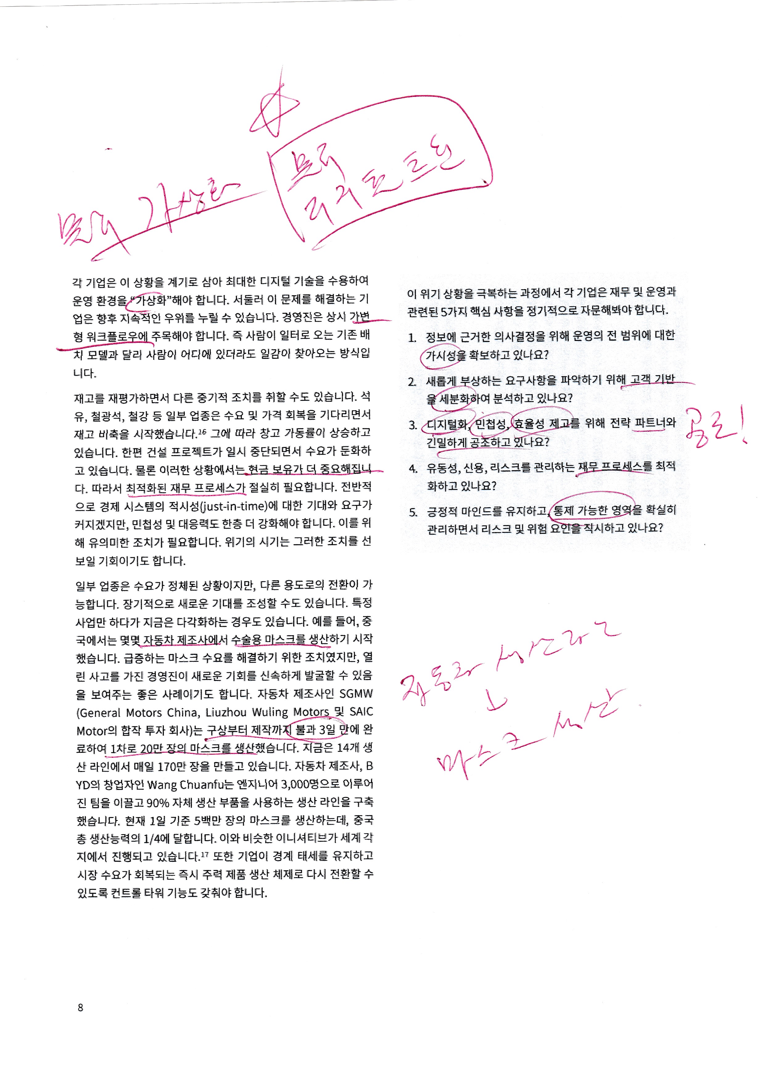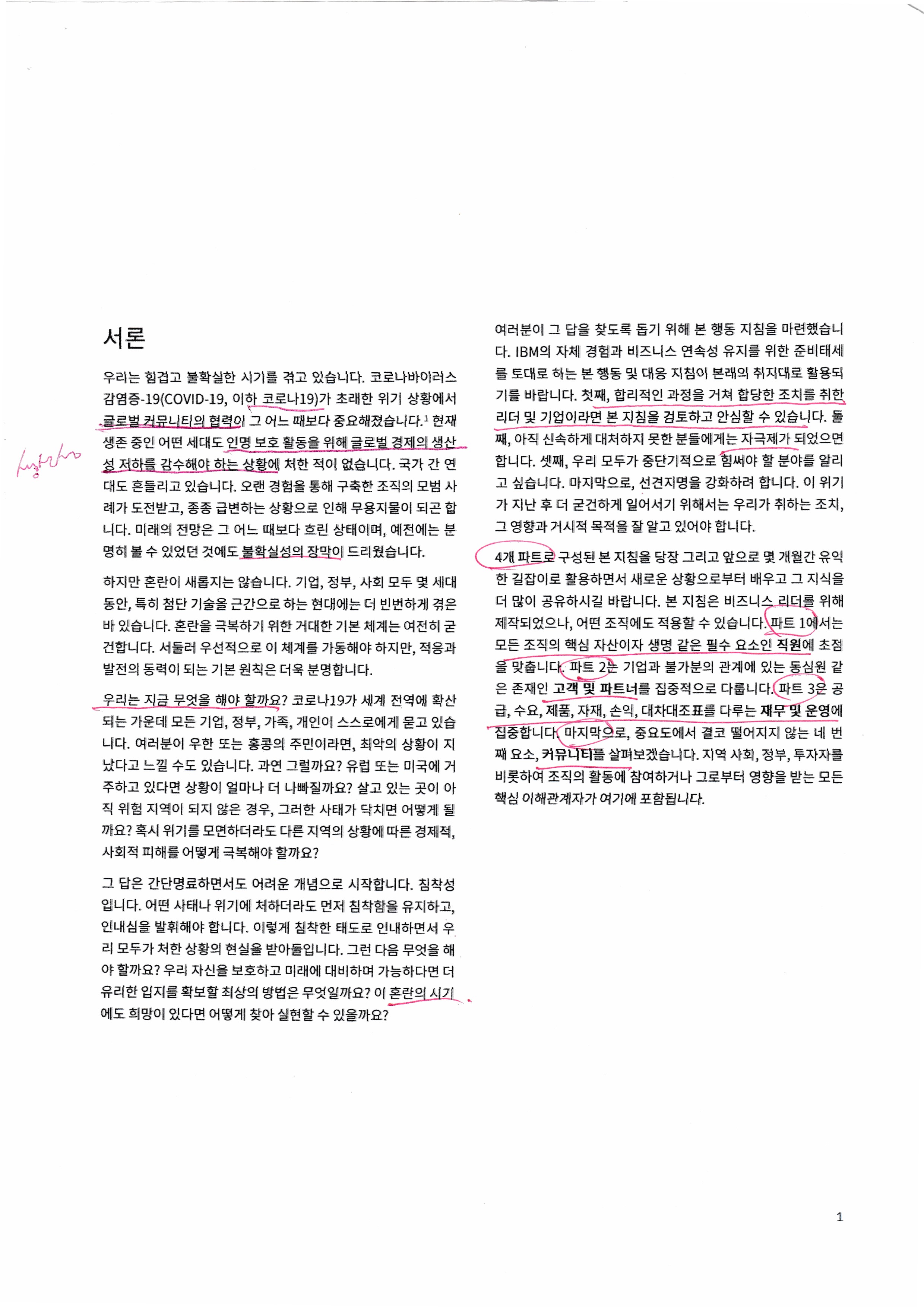 기업의 위기대응방침, 재난관리방안 같은 내용이다. 방향성을 참고하기에 적합하다.