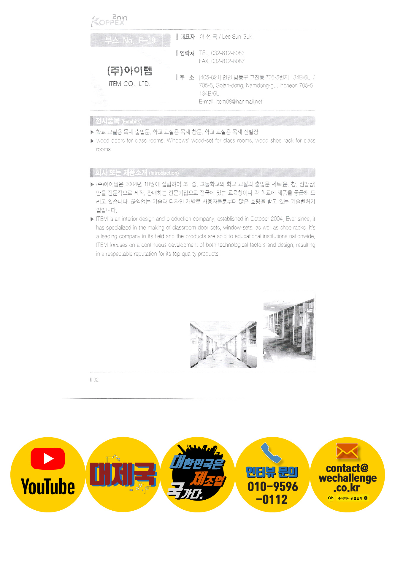 | Samyoung E&T ซัมจุงอินเตอร์เนชั่นแนล Samju ENG Co. , Ltd. Samjin Precision Co. , Ltd. Seogwang Corporation ซอฮันแอนตามิน Seoho Ecotop Co. , Ltd. Sunwoosys Semyung Elevator Co. , Ltd. บริษัท เซมยุงเทค จำกัด บจก. โซมินภูมิทัศน์ บจก. เซยอน Sewonri Tech Co. , Ltd. Sewon Entech บจก. โซลาร์ลูซ Add-in อัจฉริยะ บจก. สเปซลิงค์ เงายางเอเบเน่เซลล์ ชินจินแม่นยำ Sigio O / A ค. โลก บจก. ซีวอน Ct & T เอมมี่ ไอ. เจ. อุตสาหกรรม ไอเทมบจก. อาร์ตเซ็นบจก. บจก. แอปเปิลเจน Yangji ผลิตภัณฑ์ทั่วไป พลังงานเกาหลี บจก. เอสเอ็นเอส บจก. เอสเคไลท์ติ้ง เอ. อาร์. บจก. H&C บจก. เอเทค |