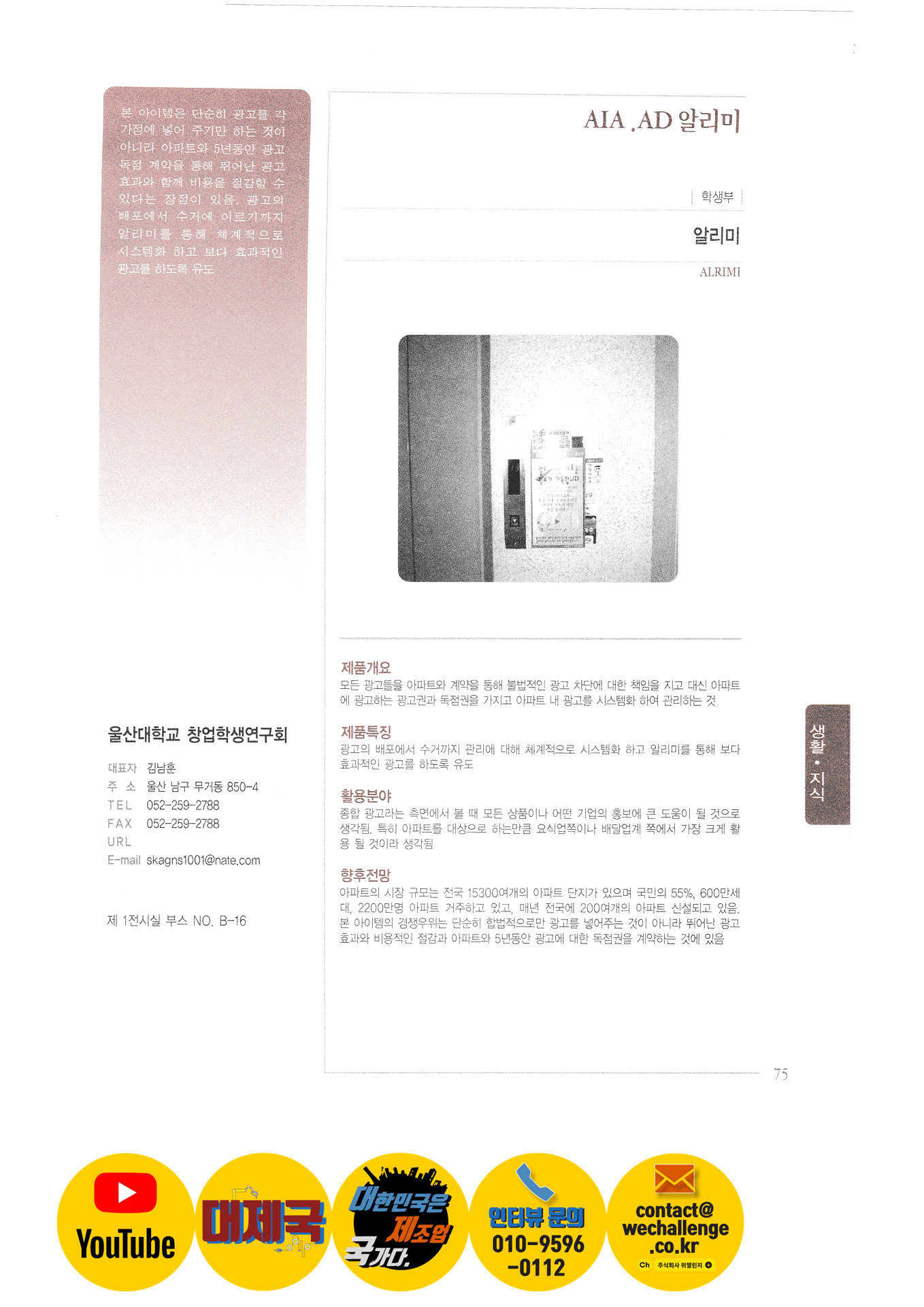 มีนบี บาน การออกแบบ Cera โซโลมอน endothelium ของเด็ก สมาคมวิจัยนักศึกษาผู้ประกอบการมหาวิทยาลัยแห่งอุลซาน Chunhae University Startup Club BIS แทแบค สิ่งทอซินโดรม ทำลายเพิ่ม มันคือสมุนไพร KM Enterprise ลีไฮ - เทค nocnoc PURECO ระบบ SG TEE Nanophotonics Inc. บจก. เน็กไซท์ บจก. เน็ตปลั๊ก แผนที่ซอฟท์ มีเดียเวฟ บริษัท ซันเมดิเทค จำกัด เจ. ดี. เทคโนโลยี VMMS มีเดีย Apo Infotics G&G Commerce บริษัท KnetP จำกัด มาโครโทรศัพท์ มะม่วง วิสัยทัศน์มาโคร Ireal AirWins |