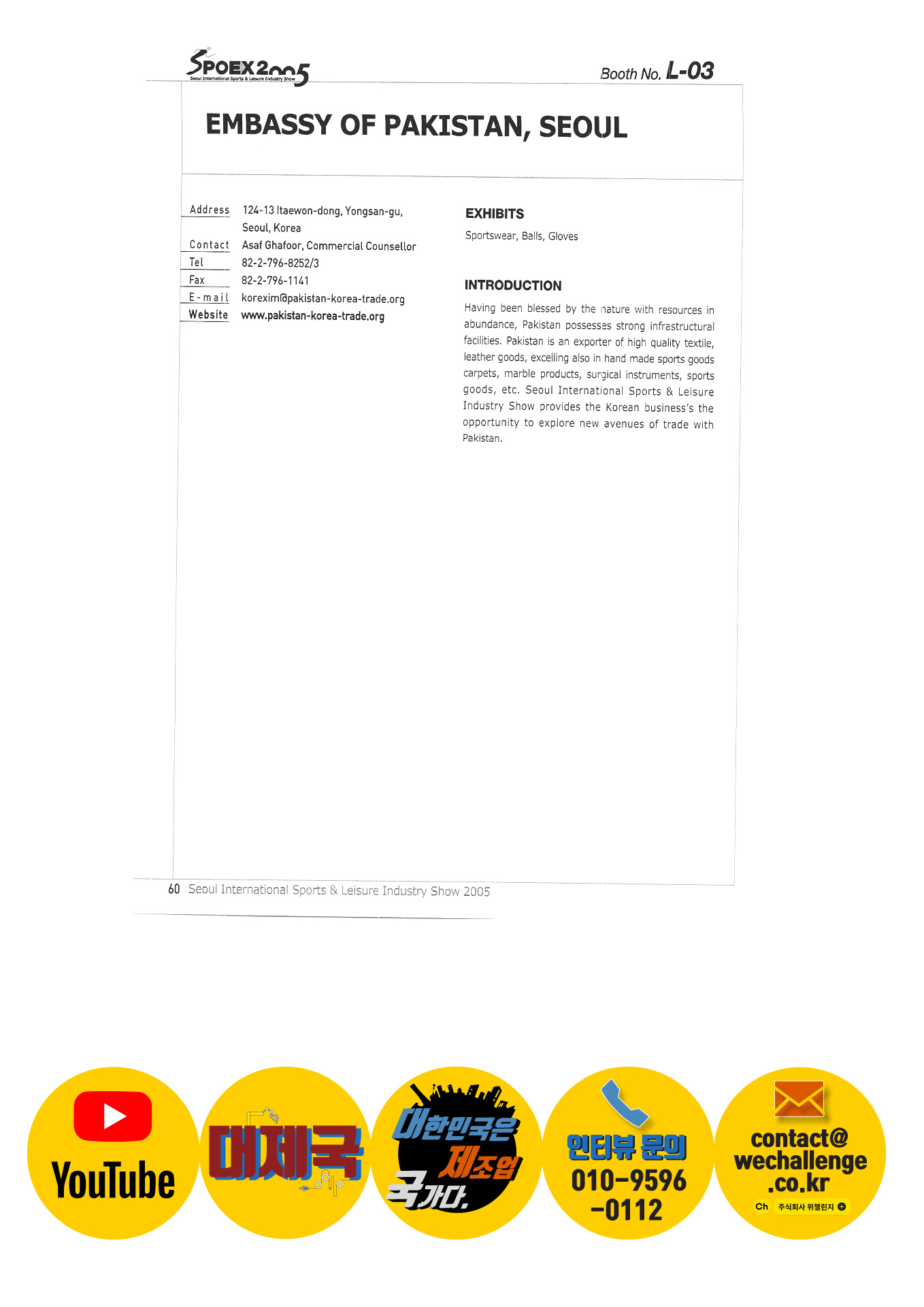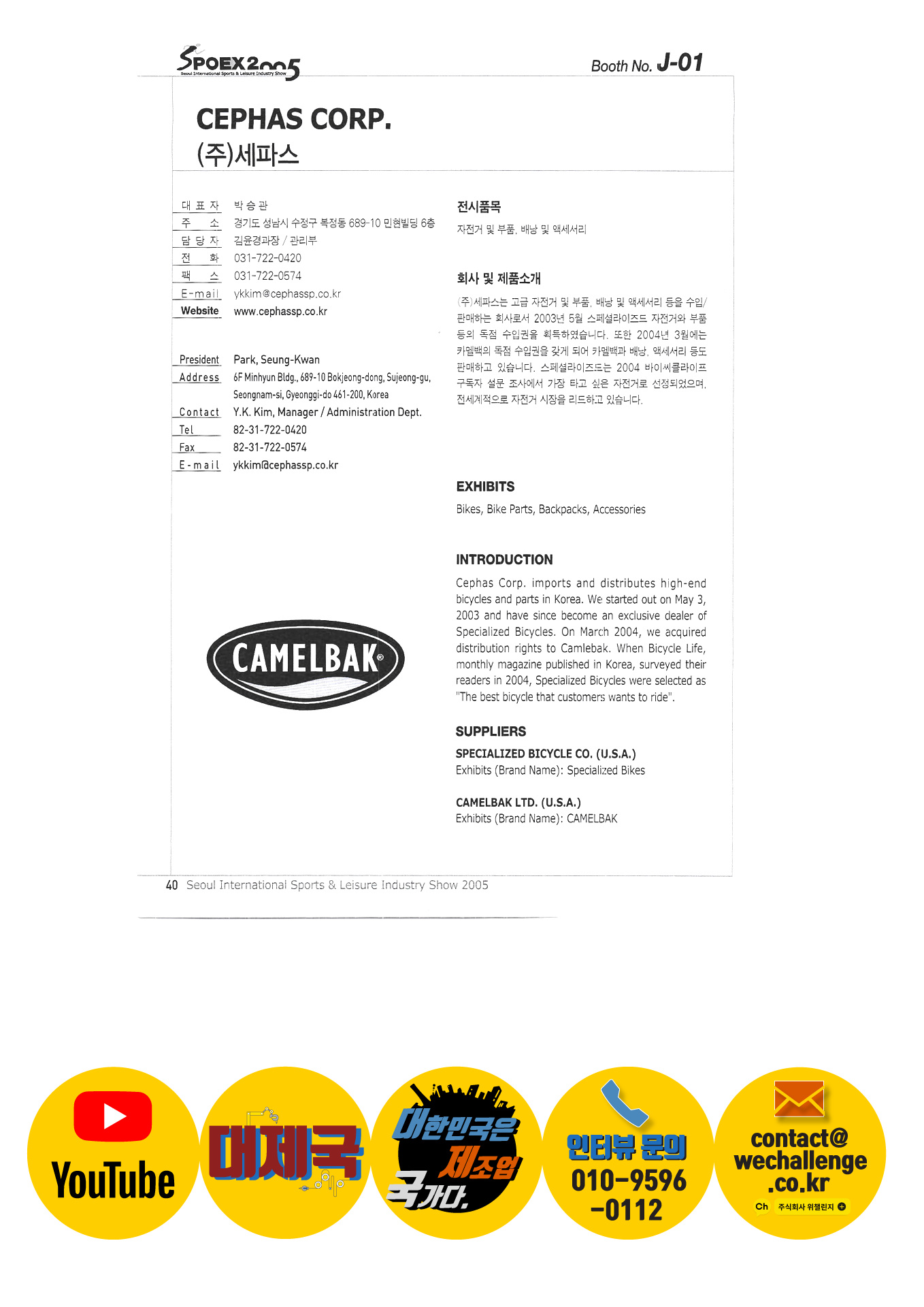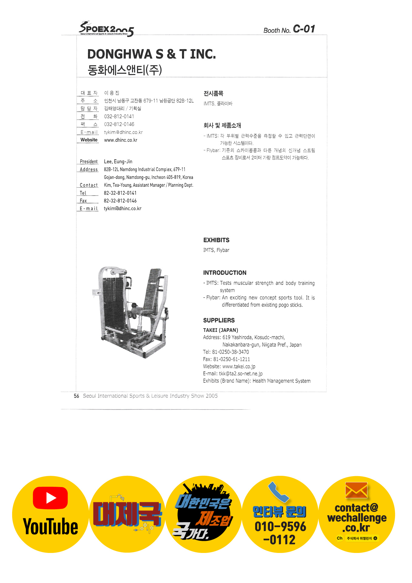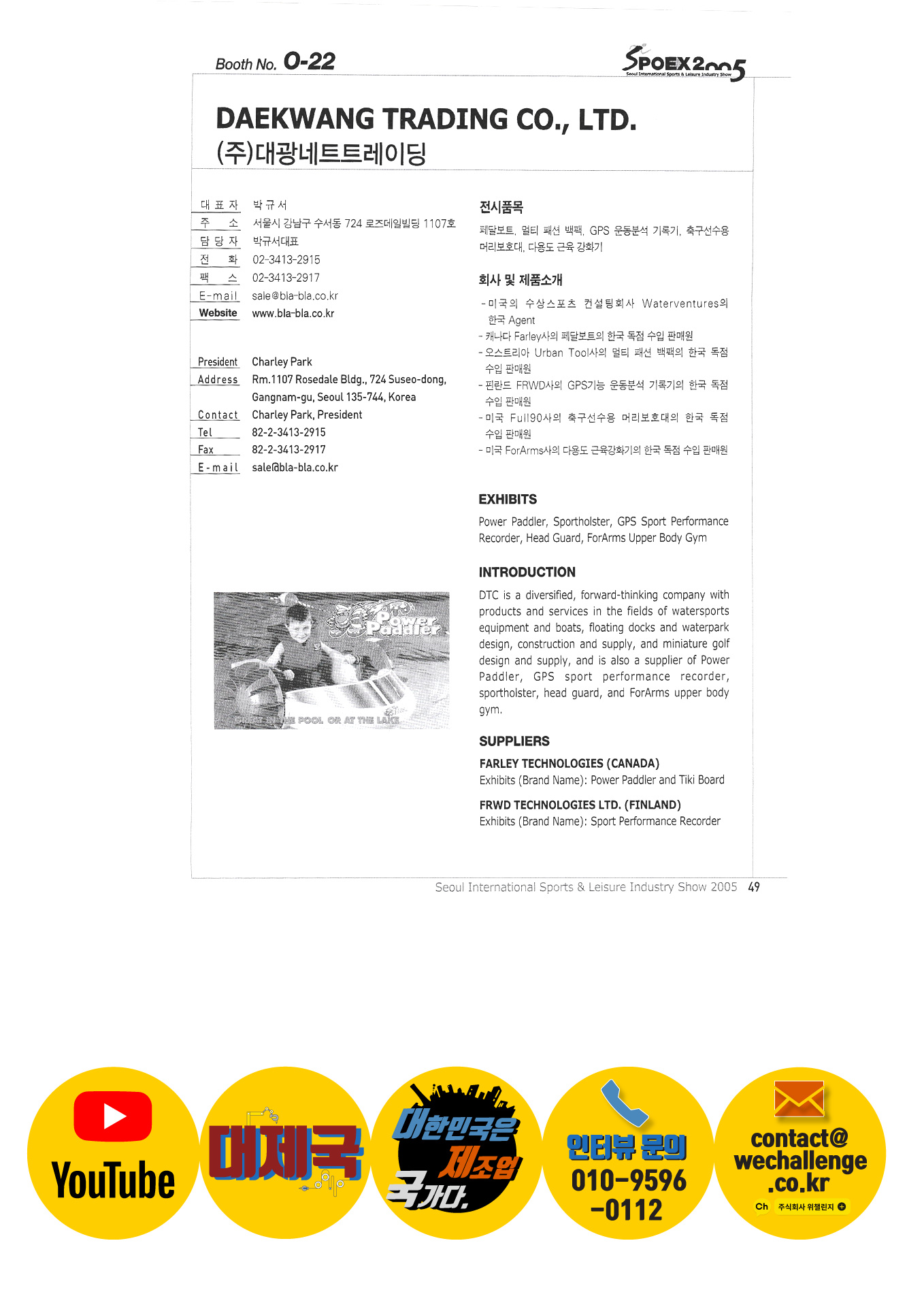 Boat Country Korea Body for you Campline Co., Ltd. Hanchang Trading Co., Ltd. Sepas Co., Ltd. Crio Korea Co., Ltd. City Hands Company Seamas Korea Co., Ltd. Codysoft Inc. COMER Coremore Co., Ltd. DI Y Shoes DK Marine Daekwang Net Trading Co., Ltd. Daesung Hitech Daeyang CS Co., Ltd. Dart Fish Korea Dow Industries Dongwha G&C Donggyu Industry Donghwa S&T Dongyang Printing Doowon Corporation Dream Aviation Co., Ltd. EMBASSY OF PAKISTAN, SEOUL Epic Soft Eunsong Trading FineM Co., Ltd. Fuji bike Puntrex Giant System Co., Ltd. Jin Glider Geo Sports Co., Ltd. Goldwin Korea Good Day Trading Co., Ltd. Good Diver Girl sports Haksung Sports Co., Ltd. Hanyang Sauna Industry Co., Ltd. Hana Plaza Harvest |