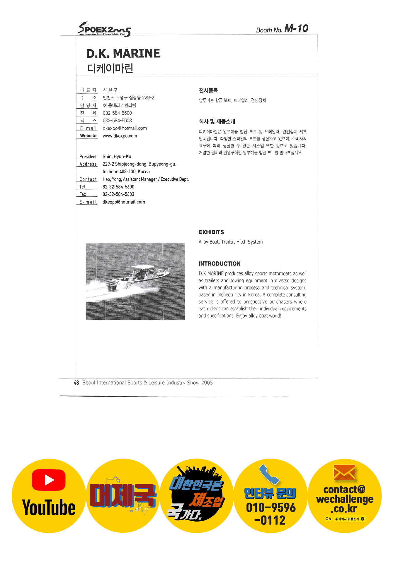| เรือประเทศเกาหลี ร่างกายสำหรับคุณ บจก. แคมป์ไลน์ ฮันชางเทรดดิ้งบจก. บจก. ซีพาส Crio Korea Co. , Ltd. บริษัท ซิตี้แฮนด์ Seamas Korea Co. , Ltd. Codysoft Inc. COMER คอร์มอร์บจก. รองเท้า DI Y ดีเคมารีน Daekwang Net Trading Co. , Ltd. แดซองไฮเทค บริษัท แดยังซีเอส จำกัด ปลาลูกดอกเกาหลี Dow Industries ดงวา G&C อุตสาหกรรม Donggyu ดงฮวา S&T Dongyang การพิมพ์ Doowon Corporation ดรีมเอวิเอชั่นบจก. สถานทูตปากีสถานโซล มหากาพย์ซอฟท์ อึนซองเทรดดิ้ง บริษัท ไฟน์เอ็ม จำกัด จักรยานฟูจิ Puntrex บจก. ไจแอนท์ซิสเต็ม จินร่อน จีโอสปอร์ตบจก. โกลด์วินเกาหลี กู๊ดเดย์เทรดดิ้งบจก. นักดำน้ำที่ดี กีฬาสาว บริษัท ฮักซุงสปอร์ต จำกัด Hanyang Sauna Industry Co. , Ltd. ฮาน่าพลาซ่า เก็บเกี่ยว |