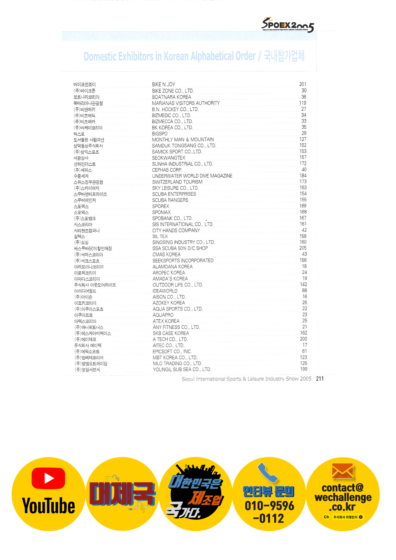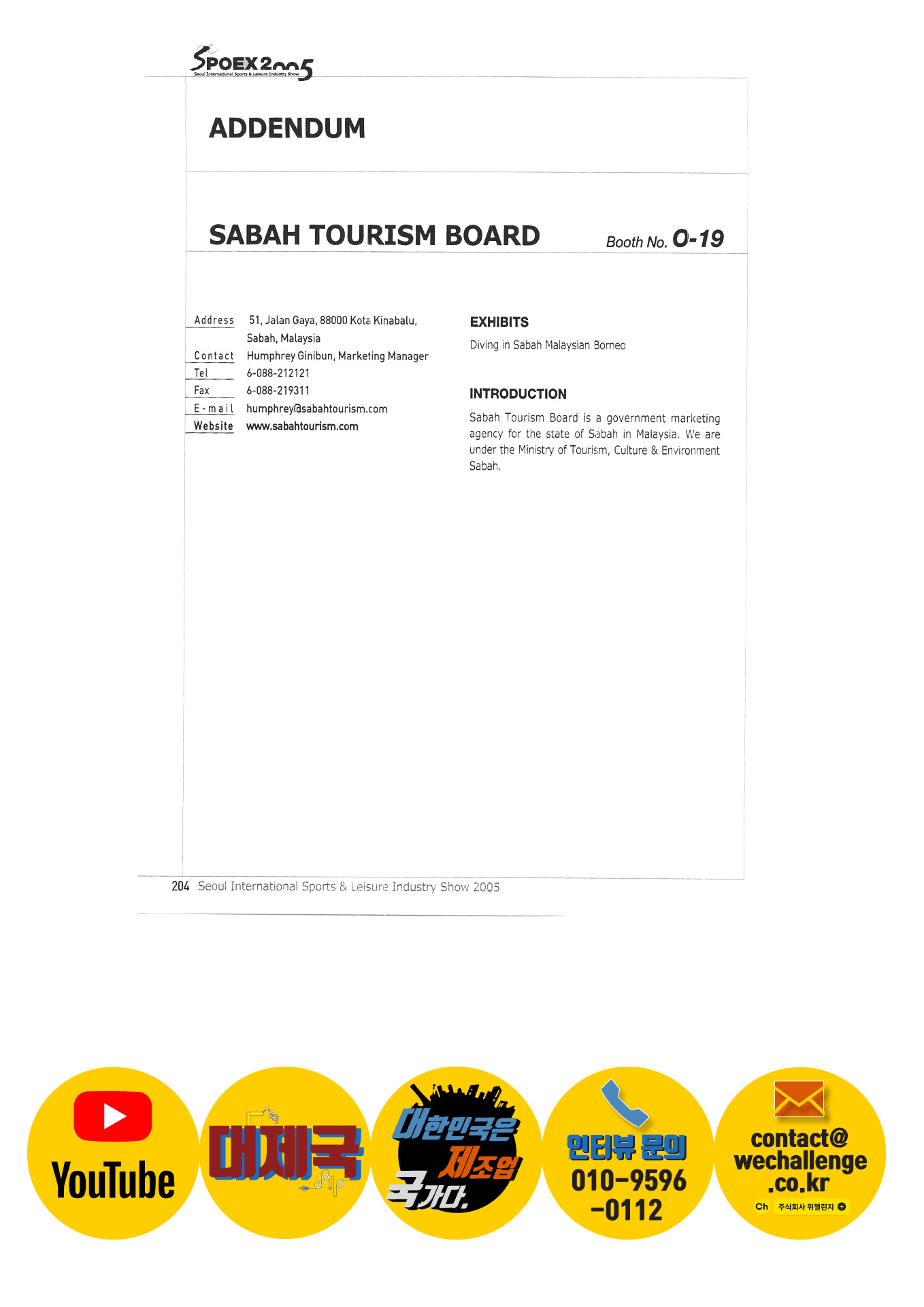 A-Tech Co., Ltd. Bike Enjoy Discovery artificial rock wall Dong-A Pharmaceutical Co., Ltd. SABAH TOURISM BOARD Sascuba 50% discount store Taeyoung Industry Uljin-gun Resort Association |